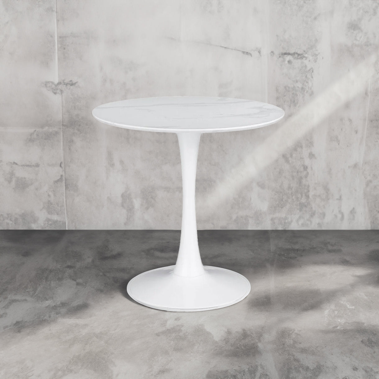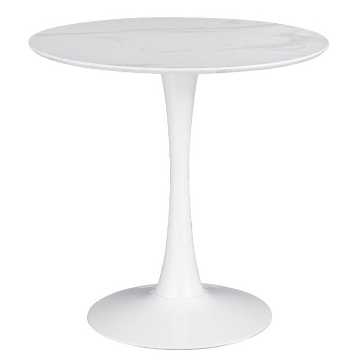This classic dining table, model 193041, offers an ideal solution for homeowners seeking style and function in a small space. A small tulip base and stylish faux marble top provide an attractive and durable dining surface perfect for an apartment, eat-in area, or townhouse.