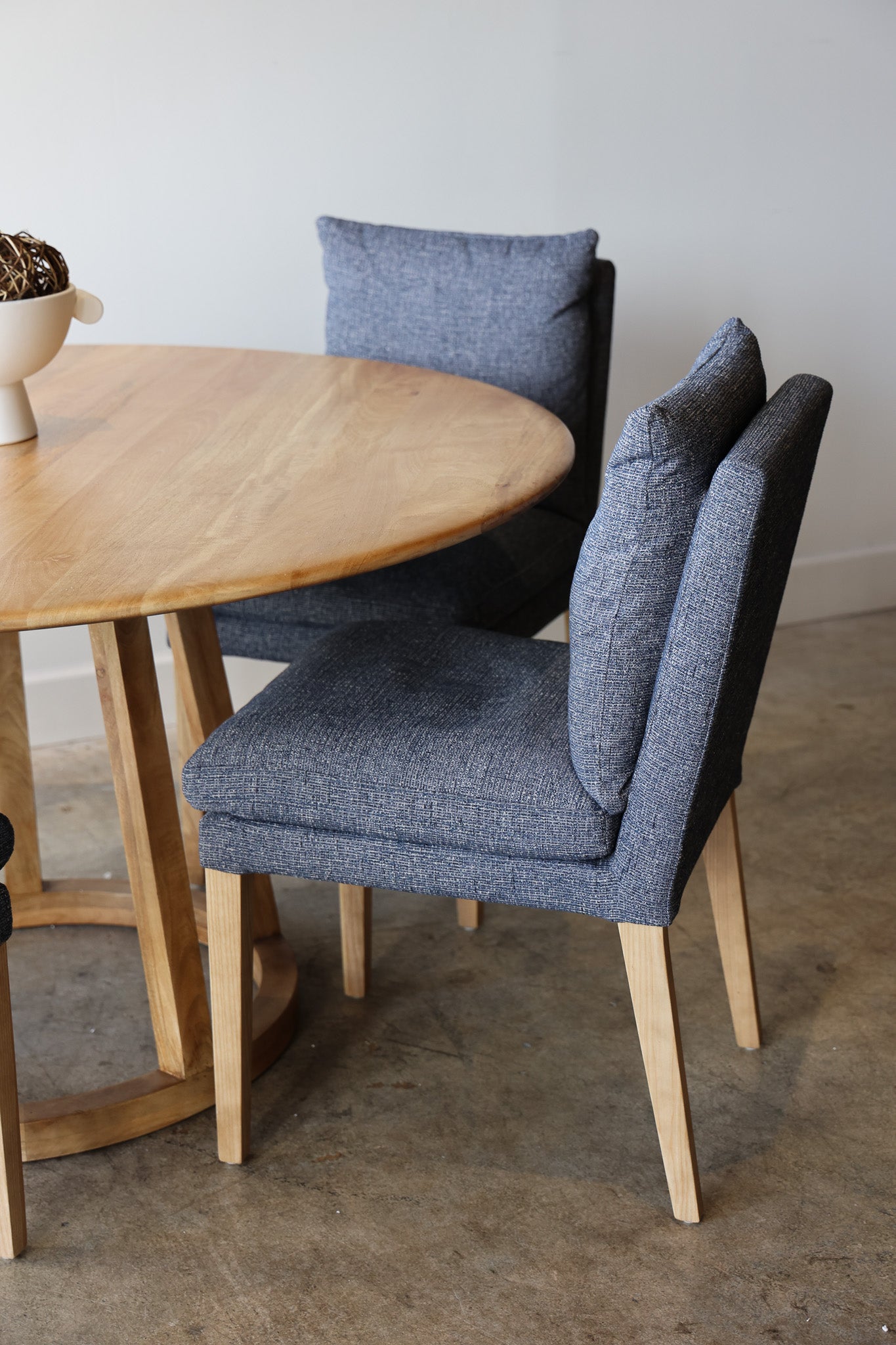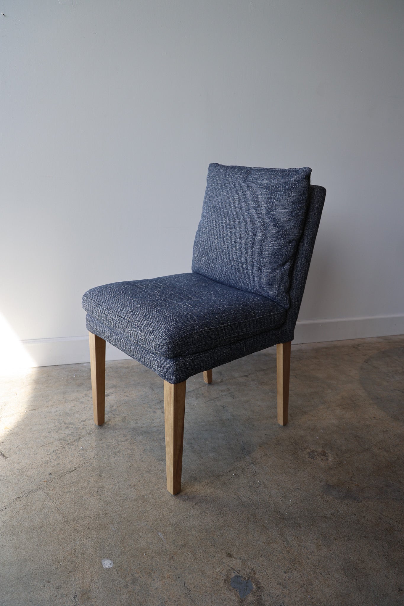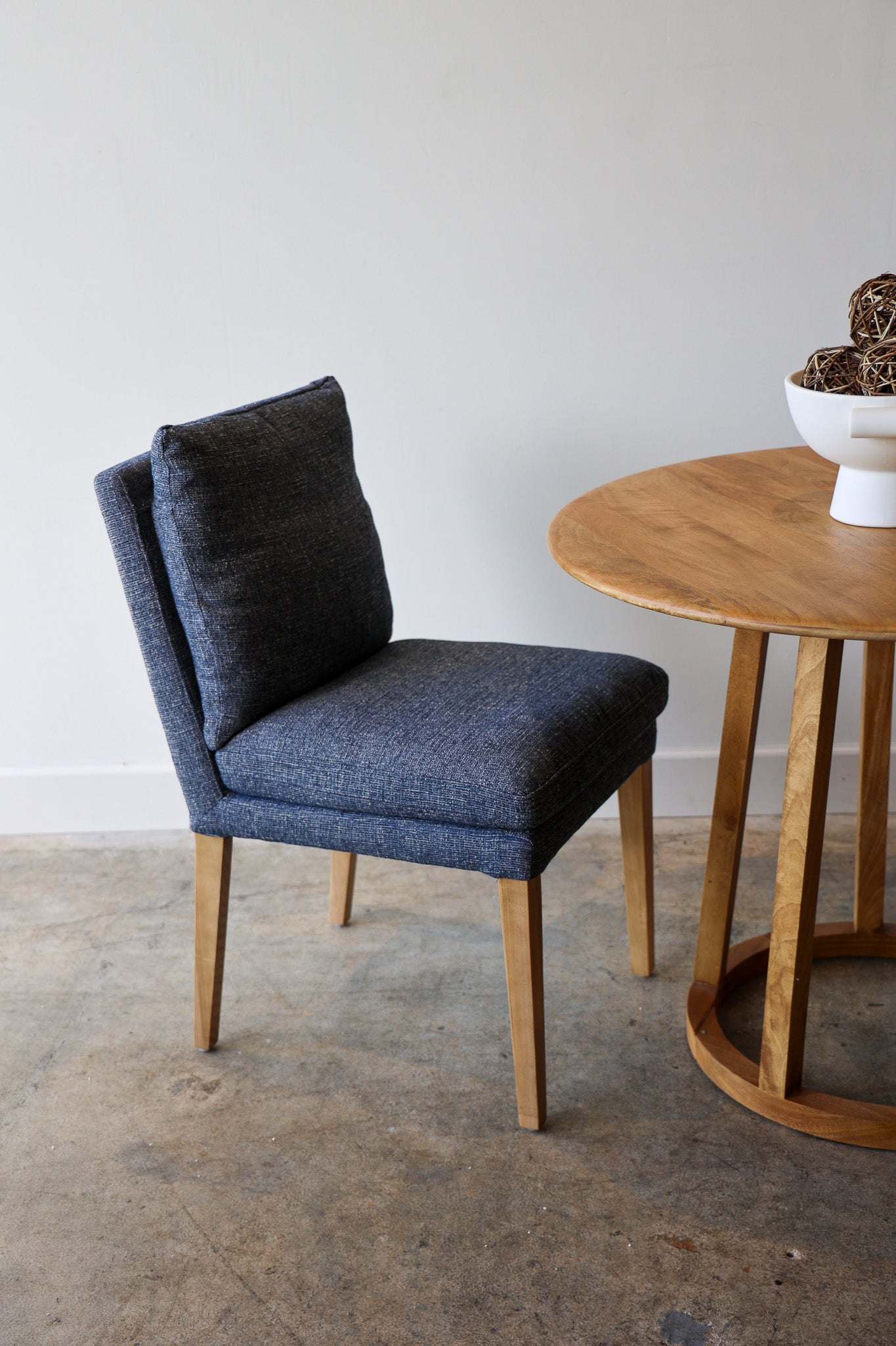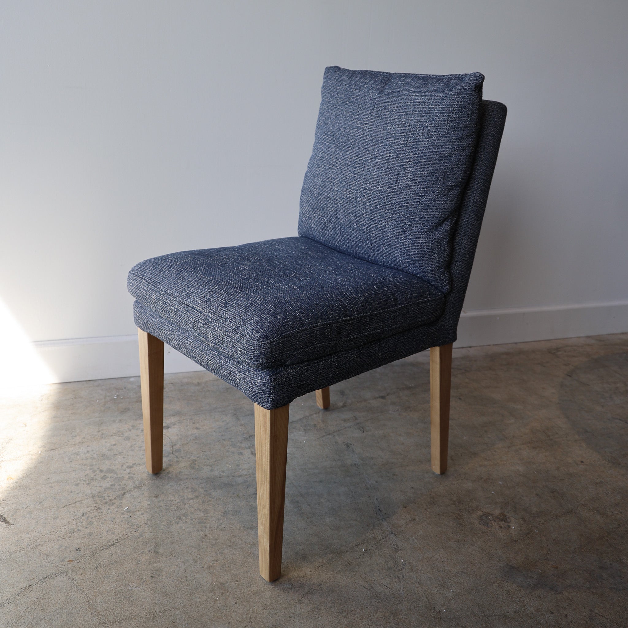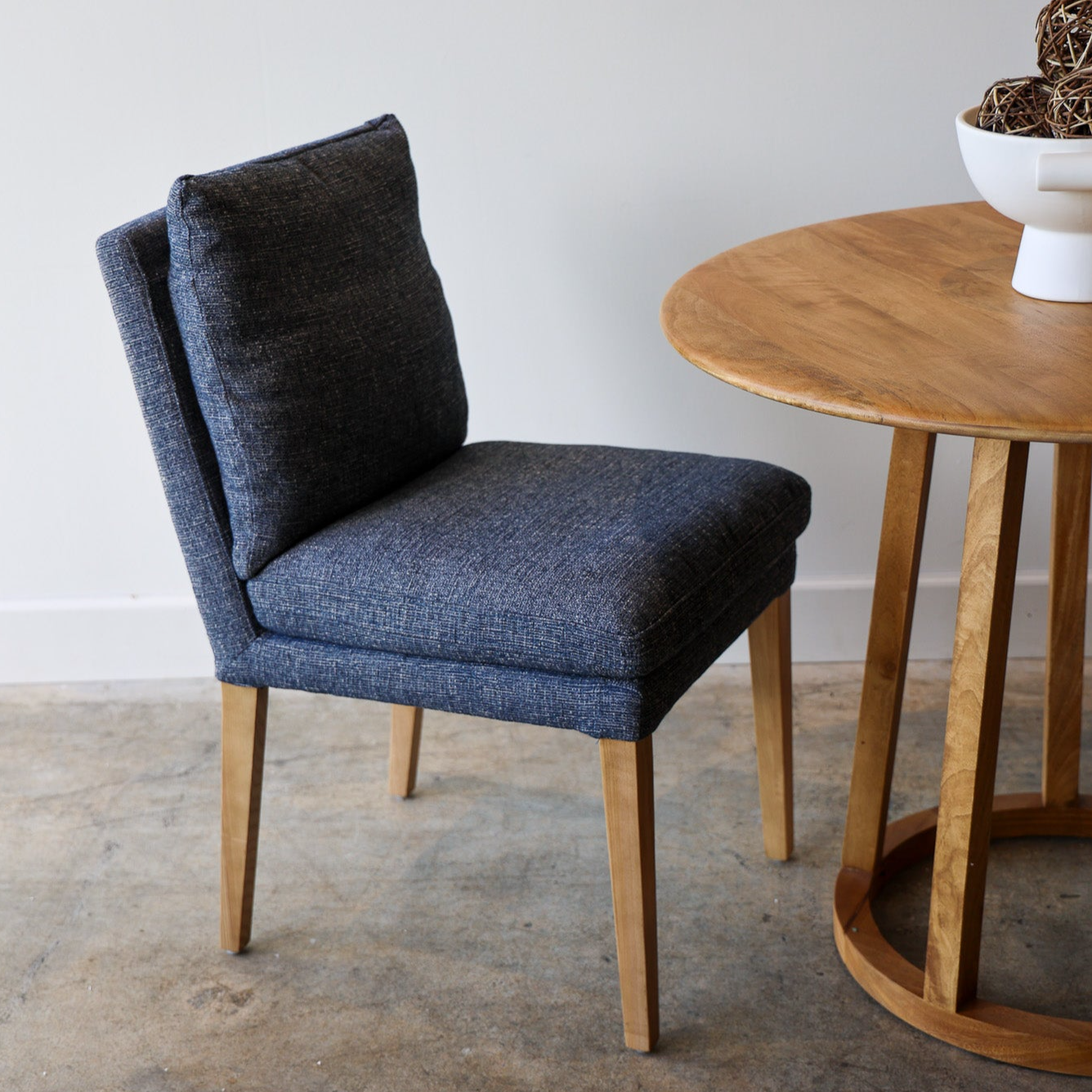 Sit in style with the Alstott Dining Chair. Upholstered in performance fabric, it's designed for comfortable seating. The down-mix fill stuffing ensures it is comfortable and supportive. This chair is the perfect addition to any dining space, and is available in navy.
