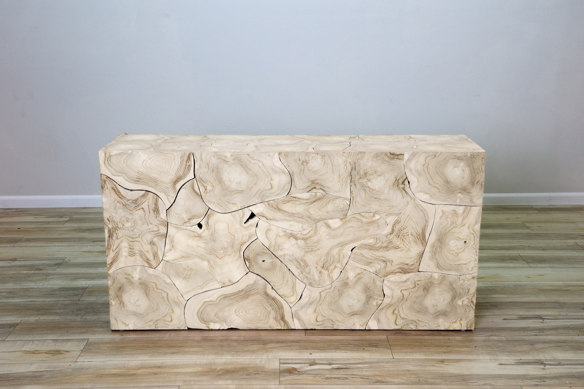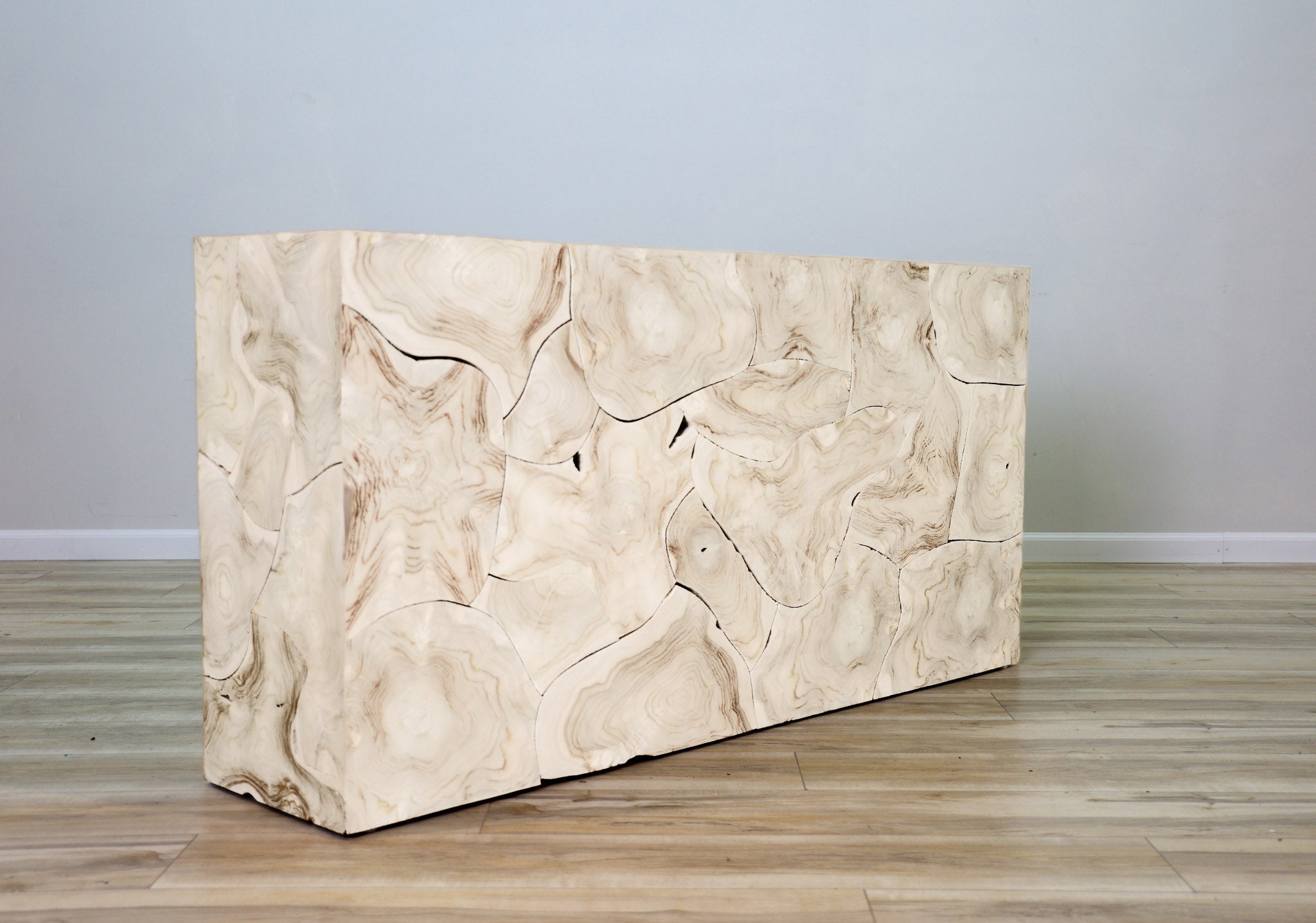 Meet your next statement piece that still maintains full functionality - the Anna Maria Console table is crafted of intricately cut and placed wood pieces thats bring a sleek, modern organic vibe to any space. Its flat, rectangular top offers ample storage and display space, and the overall look makes for an amazing conversation starter! Have it on its own or with the Anna Maria Coffee Table and Anna Maria Accent Table (Each Sold Separately)