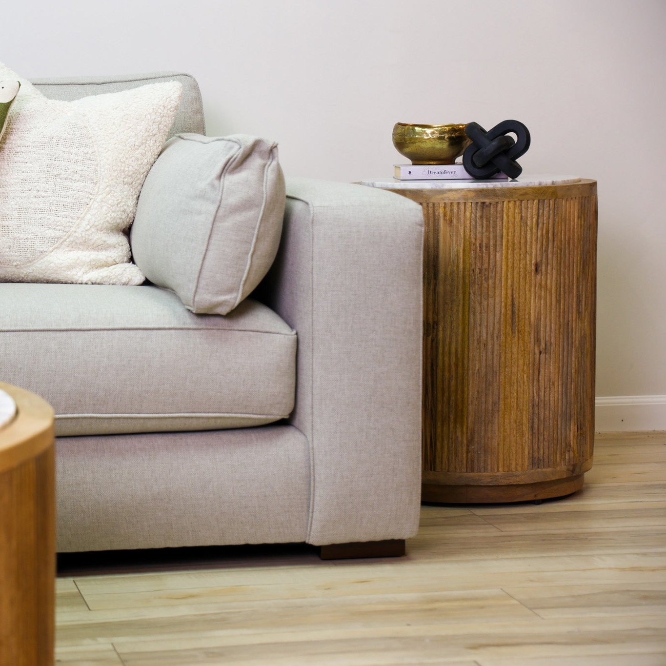 Crafted with high-quality mango wood and topped with luxurious marble, the Antonio Coffee Table boasts a sleek reeded design. Elevate your living space with this elegant piece and add a touch of sophistication to your home. Made for those who appreciate quality craftsmanship and timeless design.