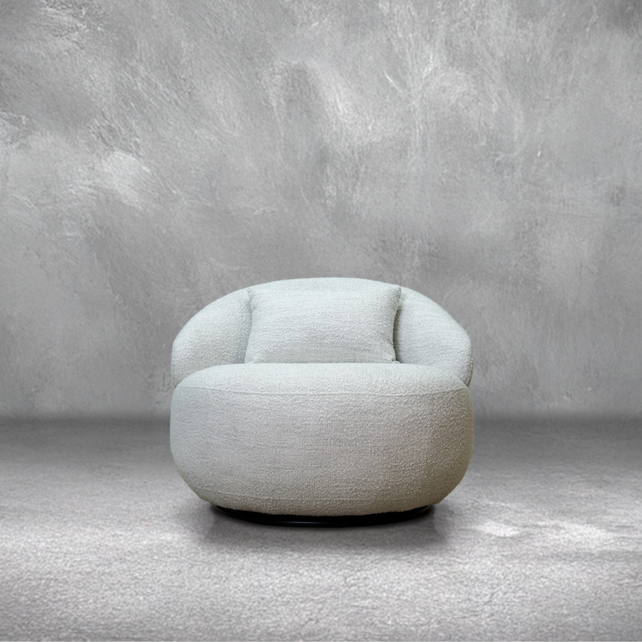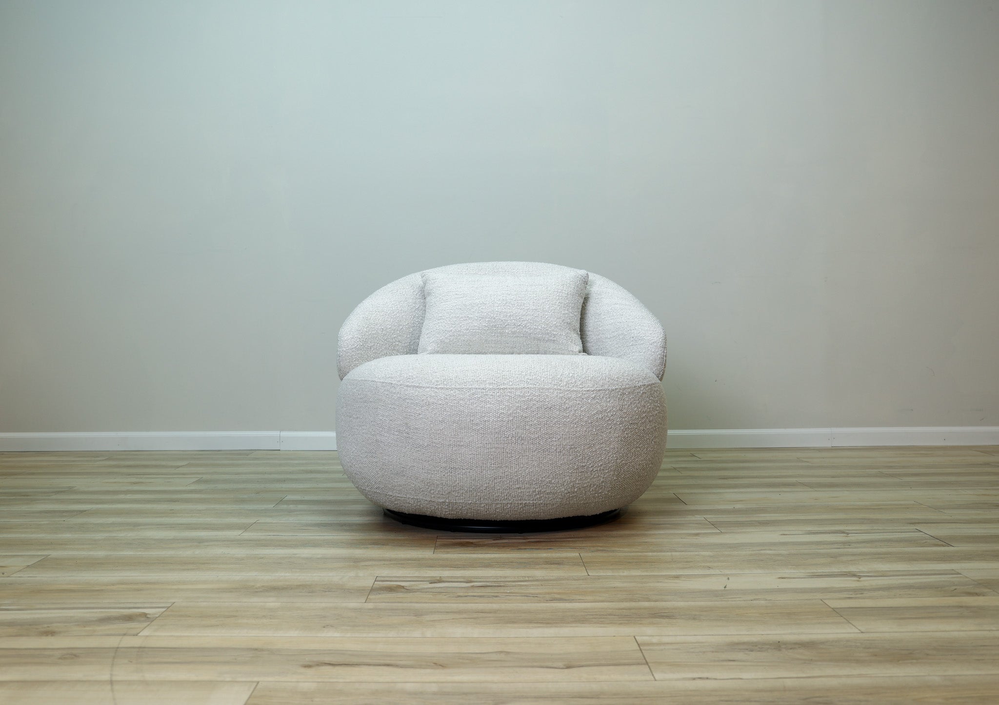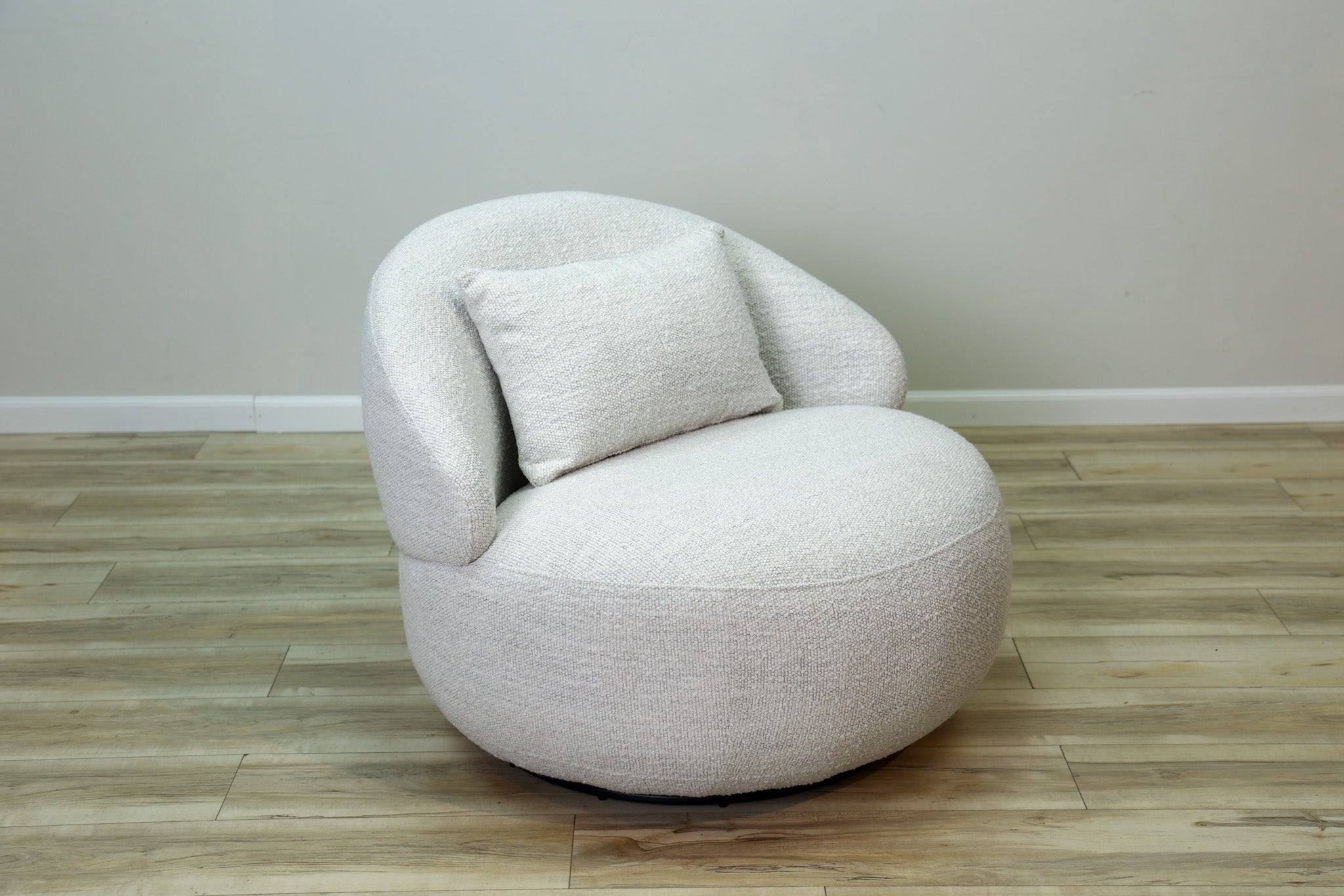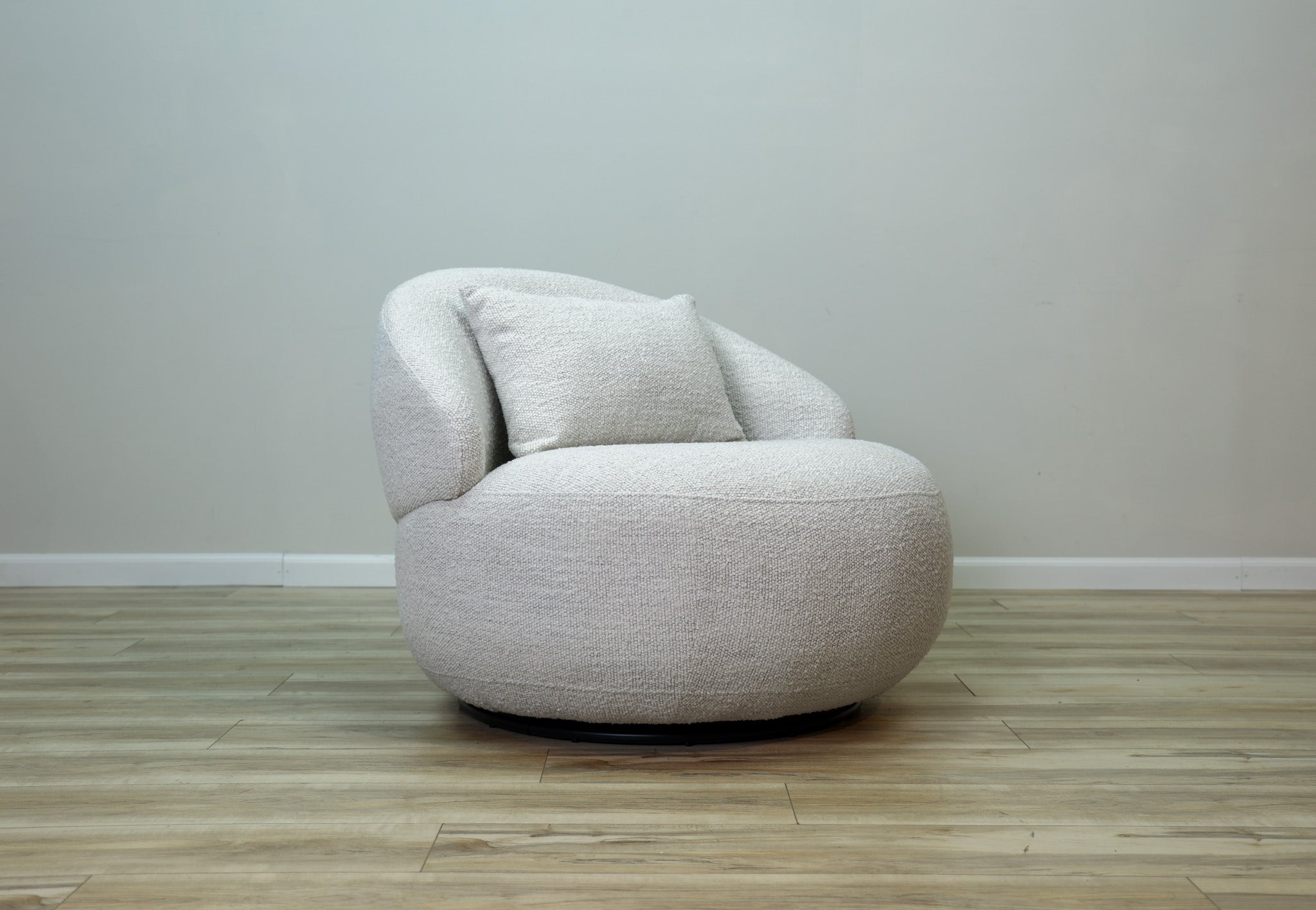 Combine the best of comfort and style with the Athena Swivel Chair. It's plush cushion and included lumbar support pillow make for one of the most comfortable seating experience on the market, while its swivel feature makes it versatile for any space. It's boucle fabric enhances the modern style of this chair without sacrificing comfort. Enjoy the luxury feel of the Athena Swivel Chair in the comfort of your home today!