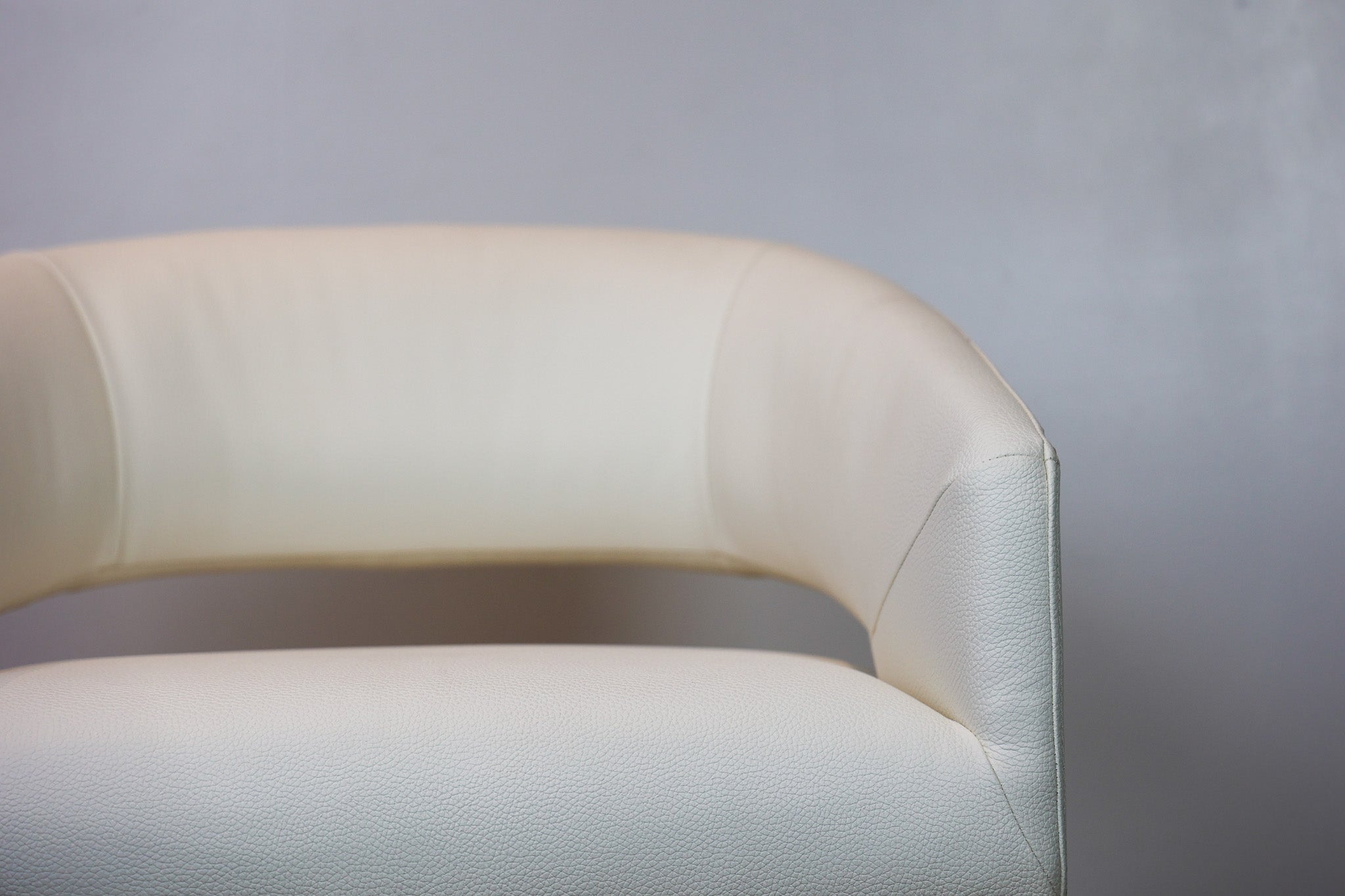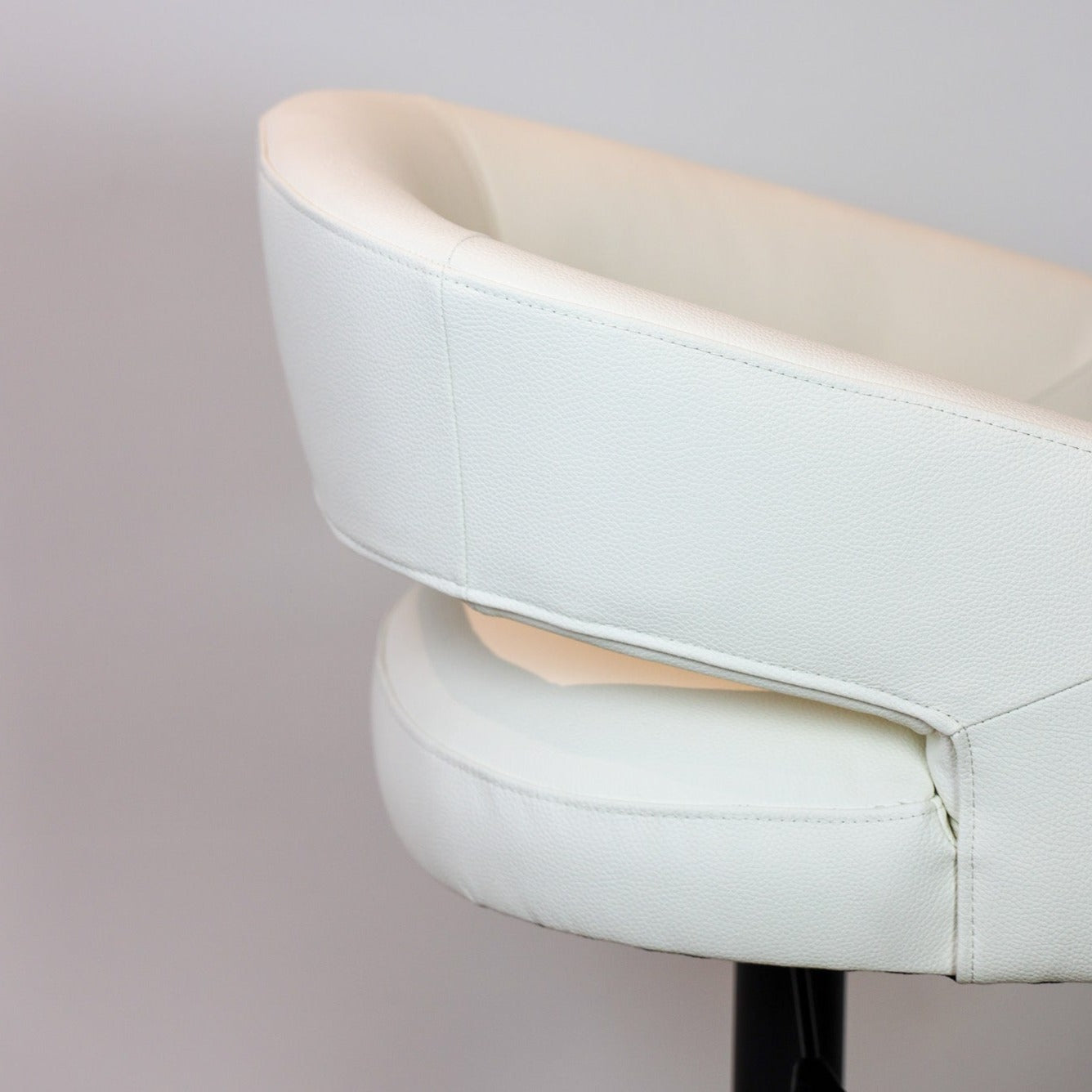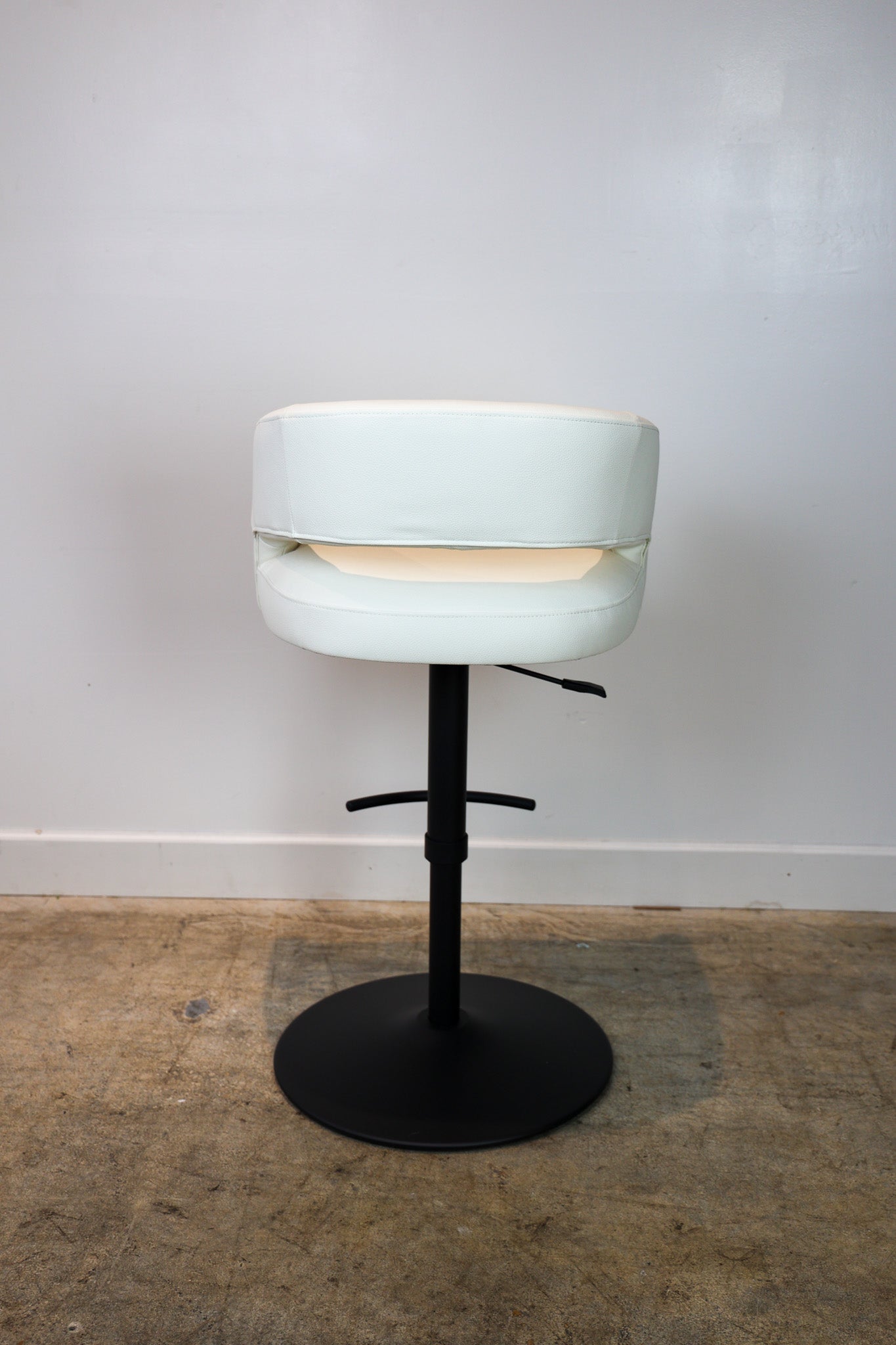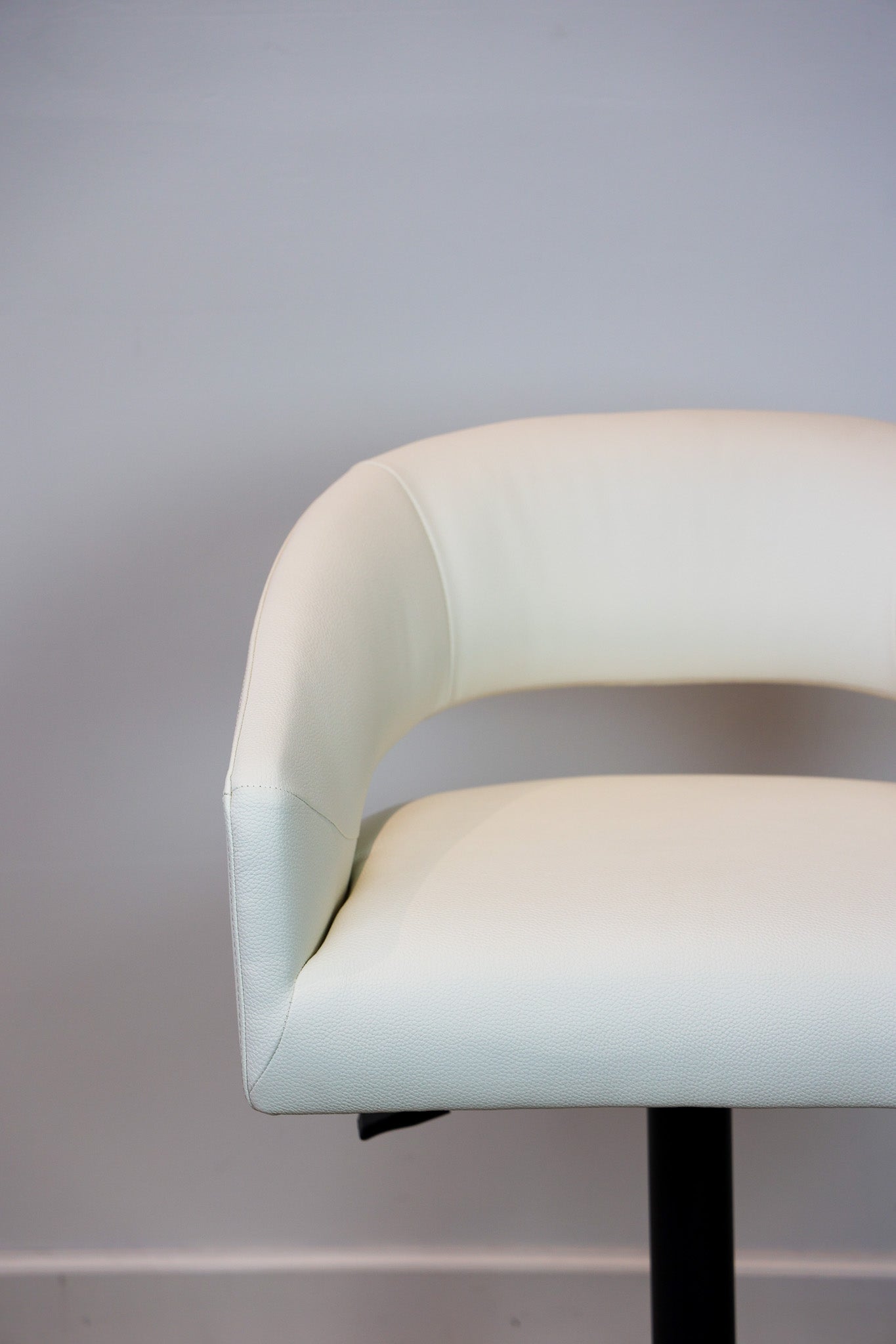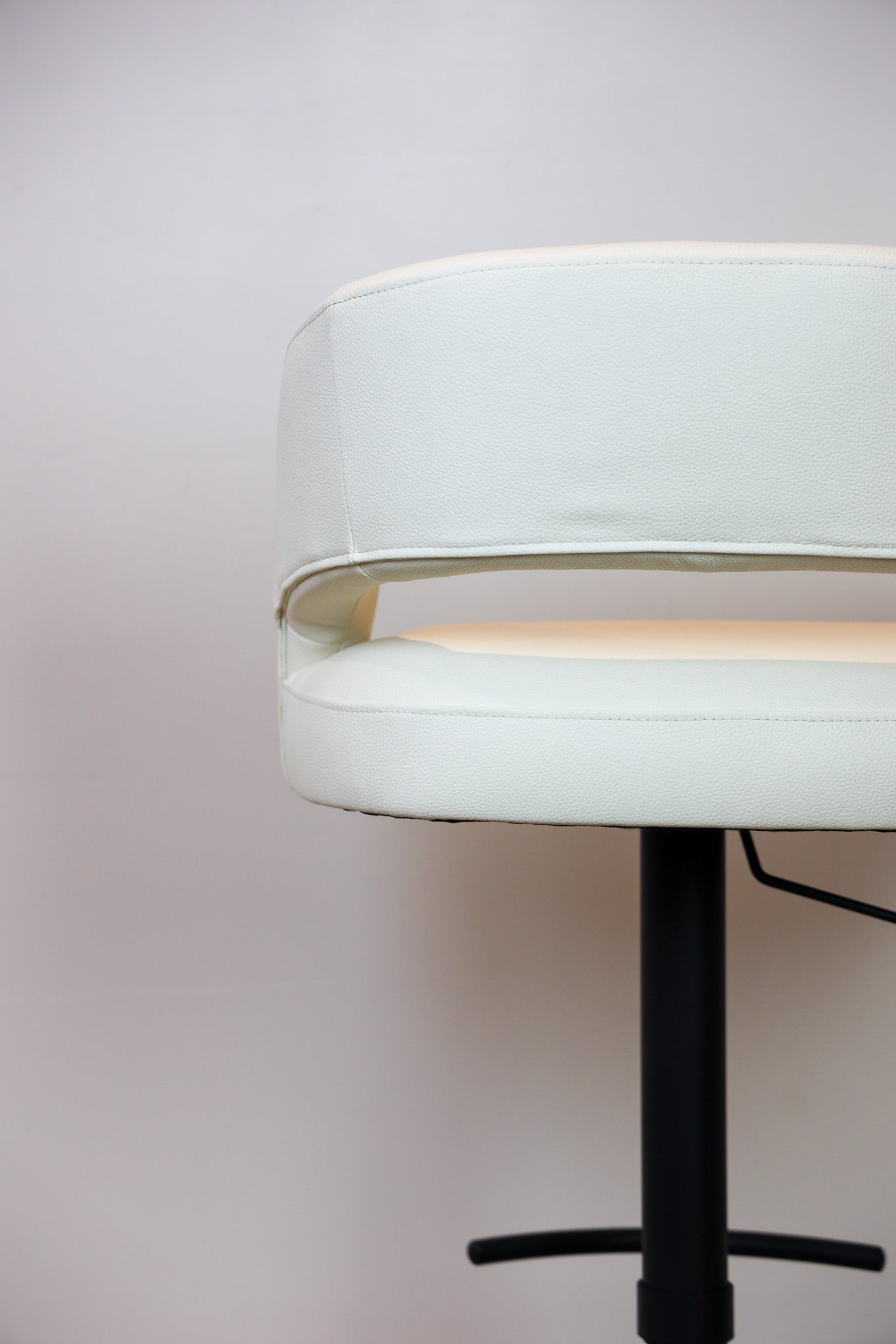 The Axel Swivel and Adjustable Barstool offers versatility and style with its genuine white leather swivel design. Easily adjust to counter or bar height with just a few simple adjustments. Experience comfort and elegance with this essential addition to any space.