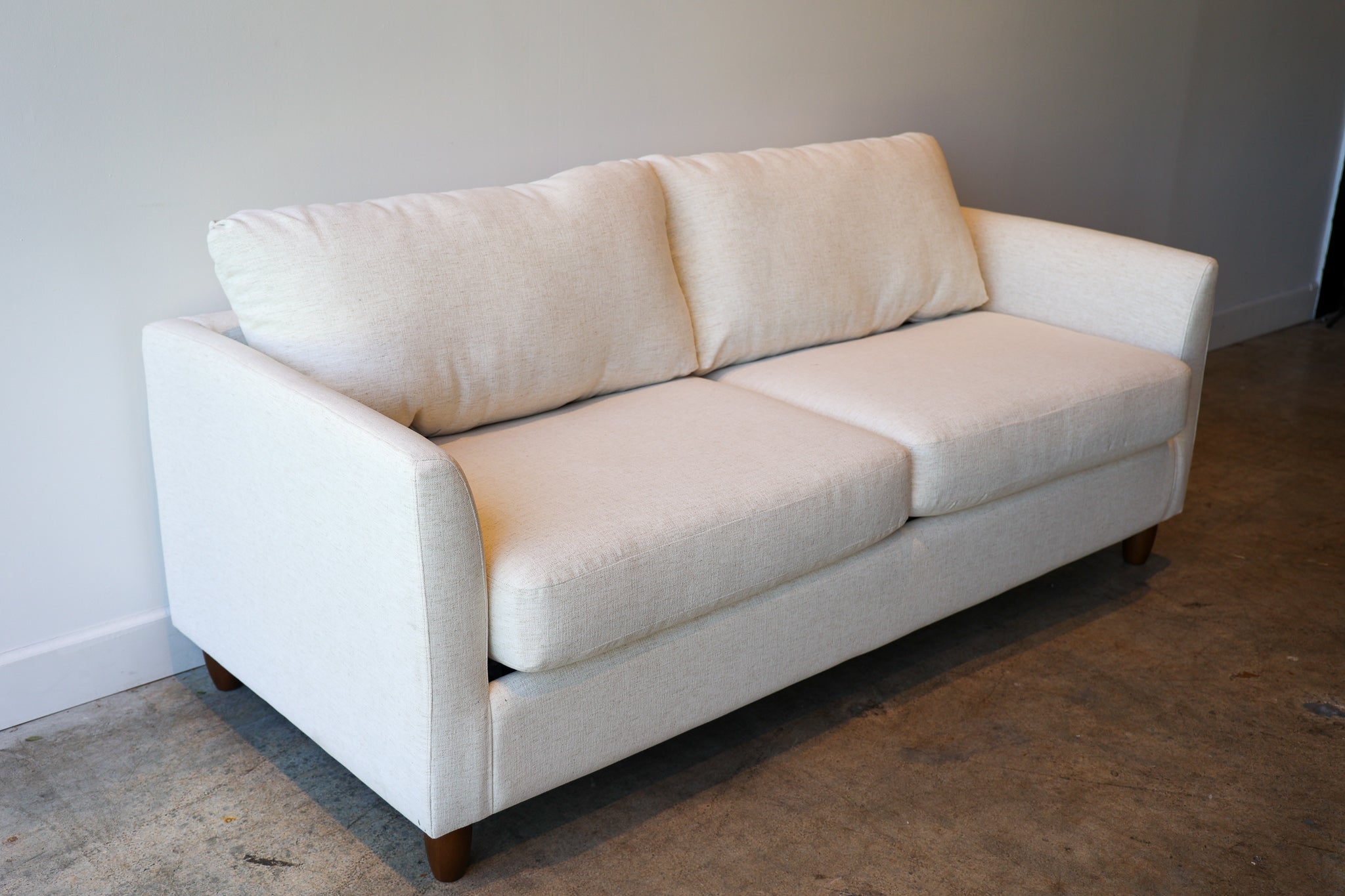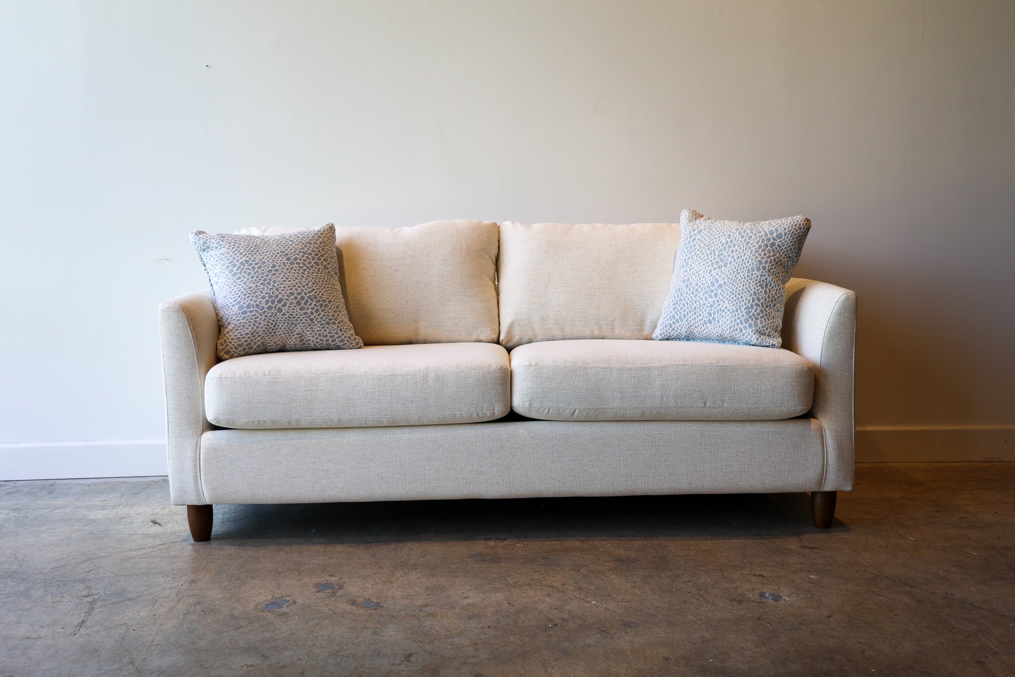 Our Baymont Snow Sleeper Sofa is upholstered in durable, Crypton fabric that is proven to be the best stain-resistant fabric available today. Plus, it comes in the classic Snow fabric color, with plenty of other custom order color options. Custom color options can be seen in store, all custom color sales are final. In stock items have a 7 day return policy!
