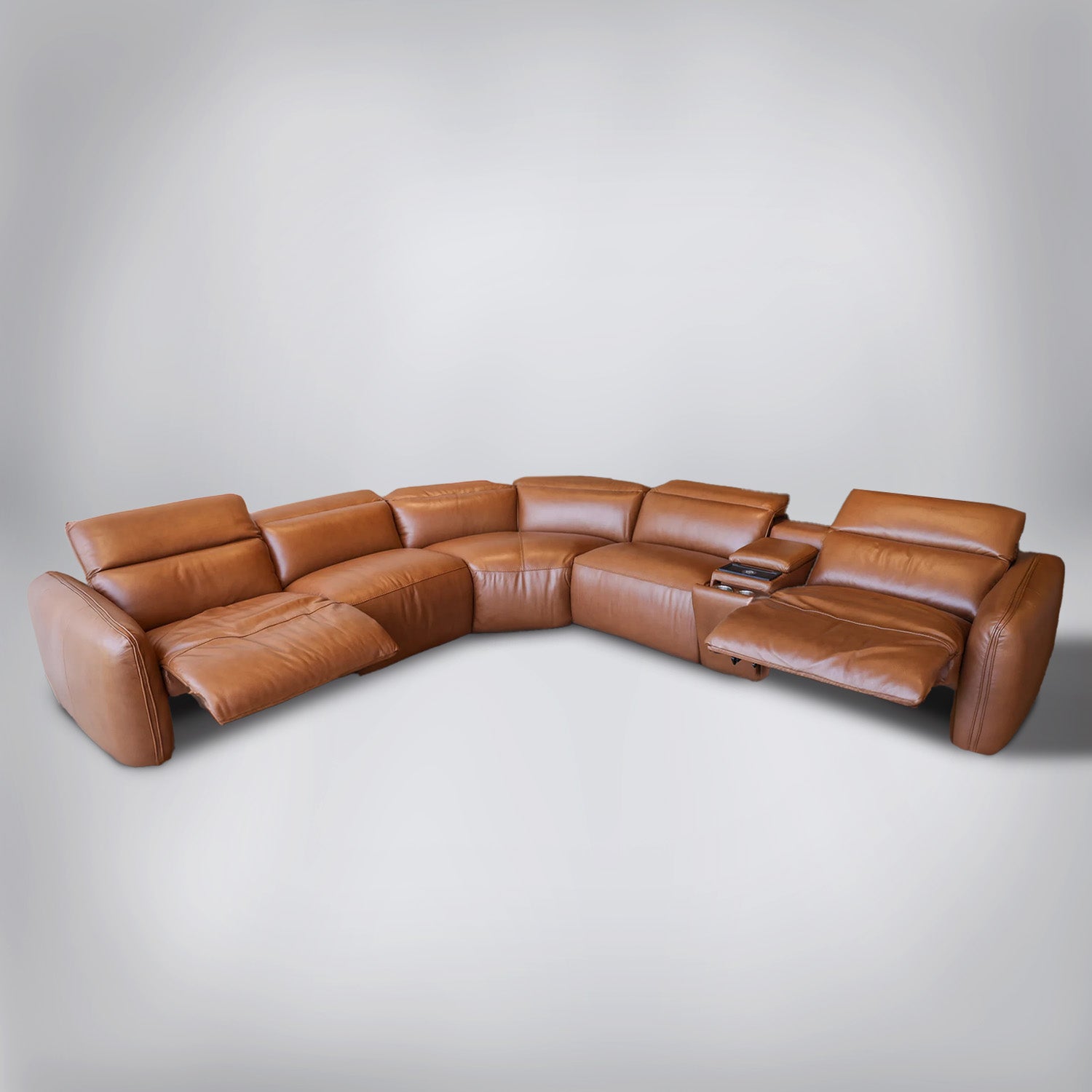 Discover the ultimate in comfort and style with the Bentley Reclining Sectional. Made with top grain leather upholstery, the modular design offers customized seating and reclining options for your home. It's perfect for watching movies, hosting friends, or just curling up and relaxing. The perfect compromise between the leather recliner he wants with the style you desire!