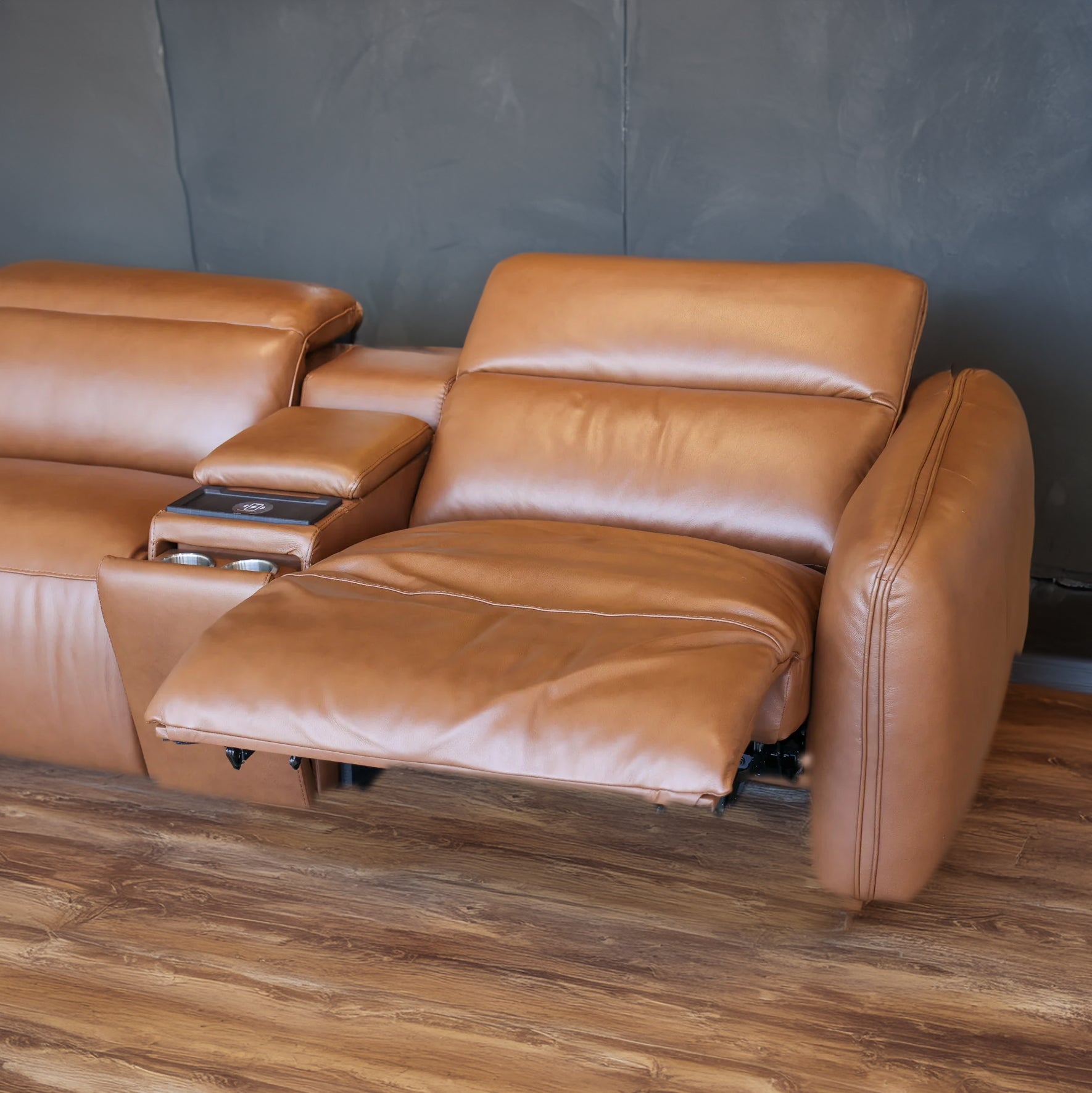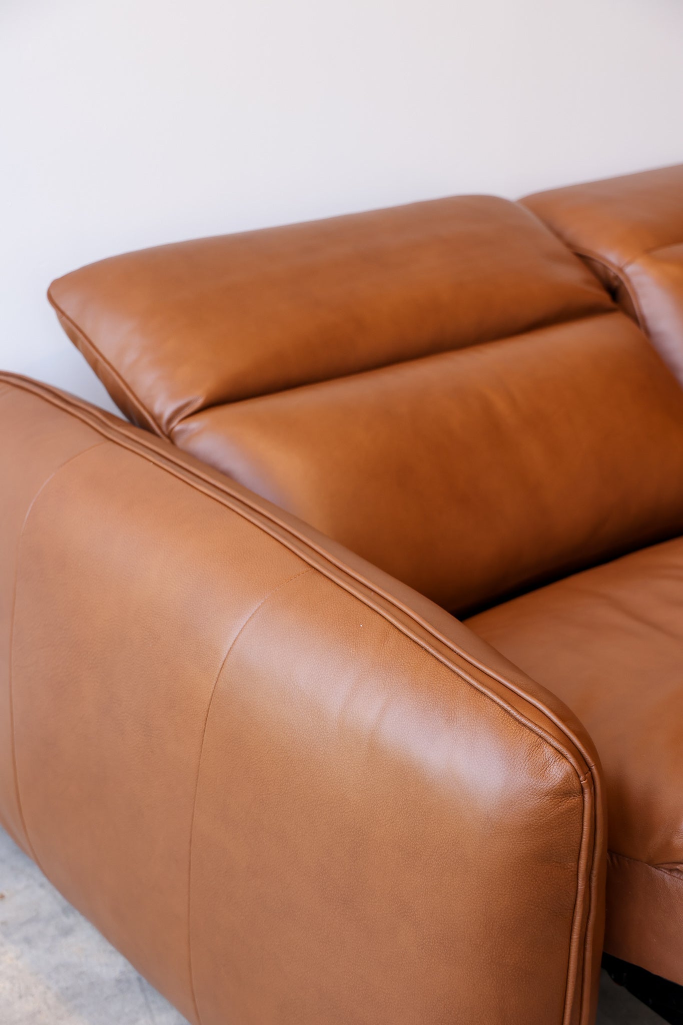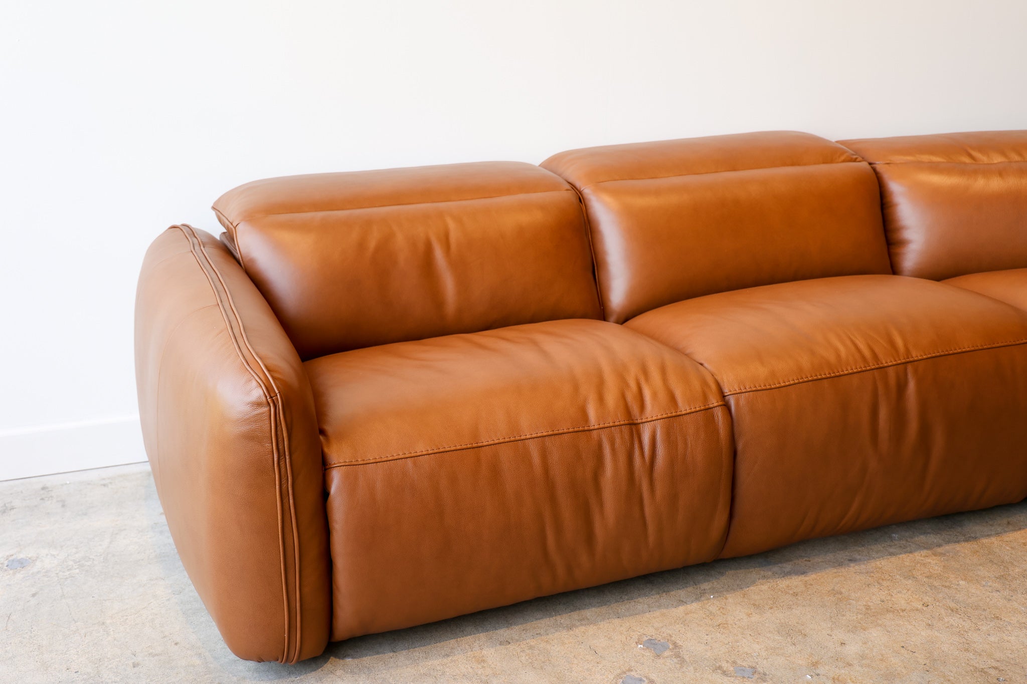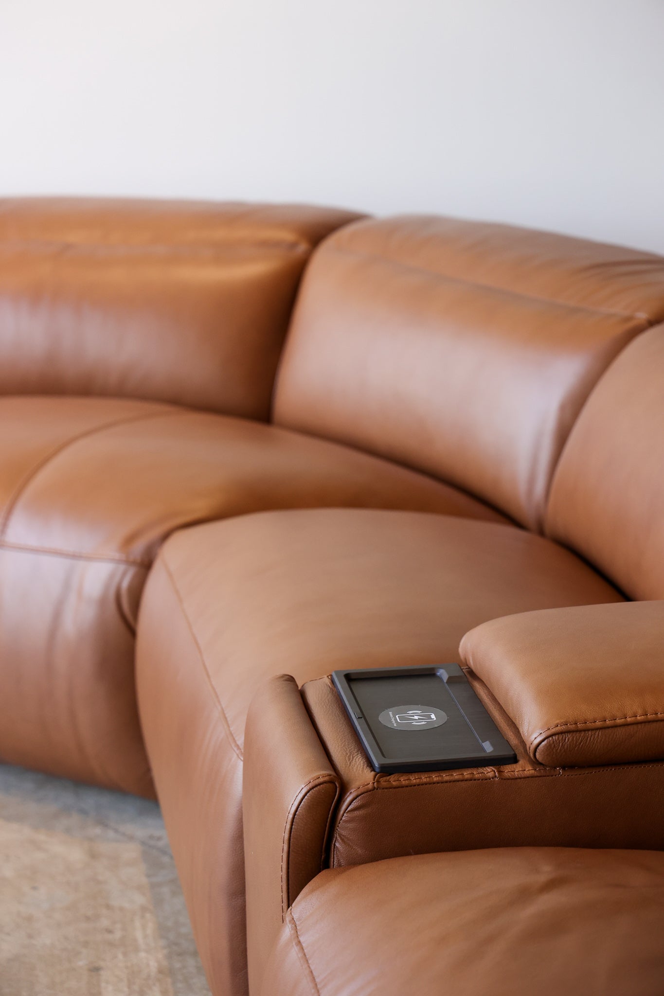 Discover the ultimate in comfort and style with the Bentley Reclining Sectional. Made with top grain leather upholstery, the modular design offers customized seating and reclining options for your home. It's perfect for watching movies, hosting friends, or just curling up and relaxing. The perfect compromise between the leather recliner he wants with the style you desire!