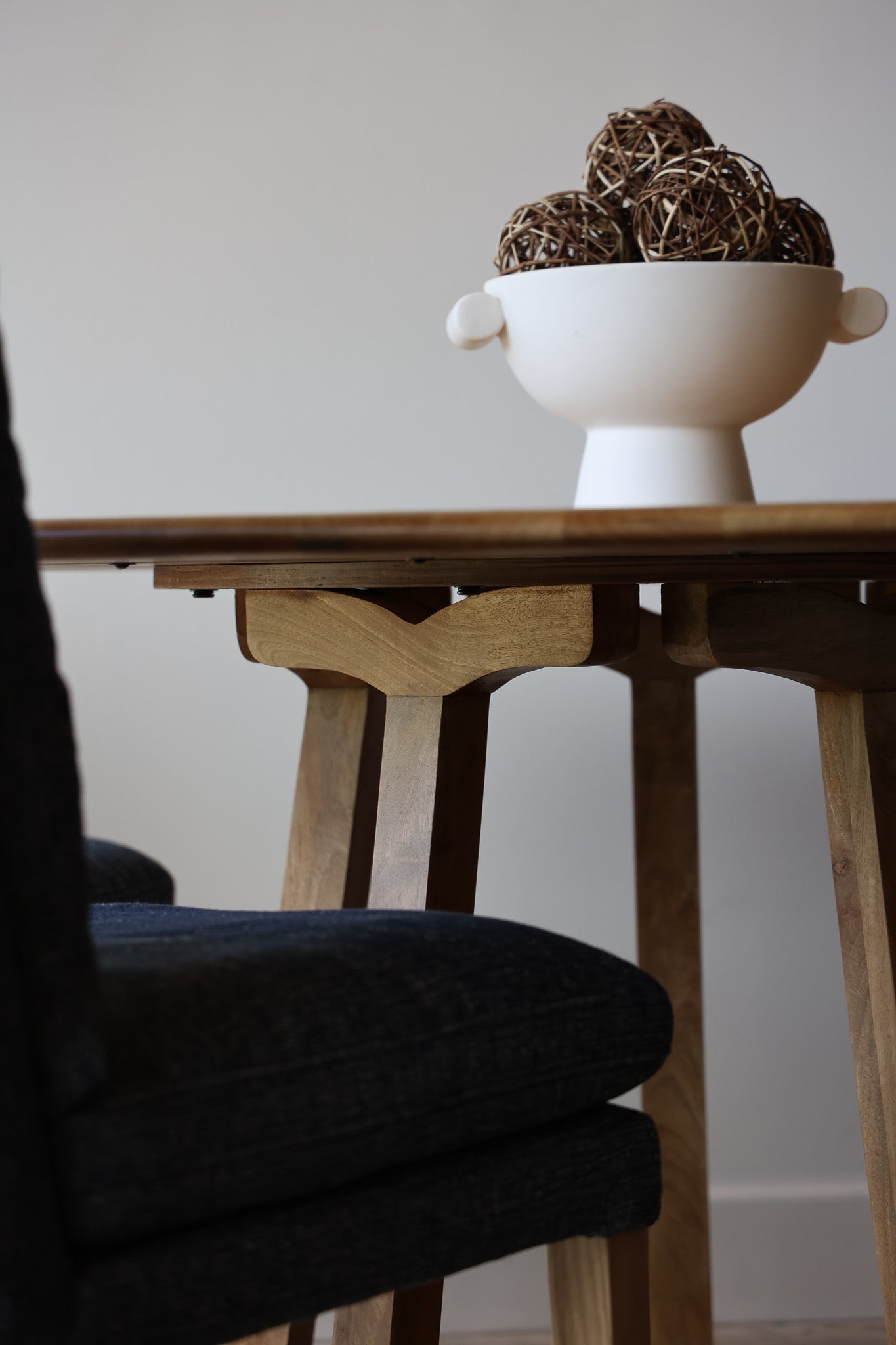 The Big Orbit Dining Table is crafted from solid mango wood – perfect for adding warmth and character to any home. Exclusively made by Dwell, it's sure to add a modern touch to your dining space.