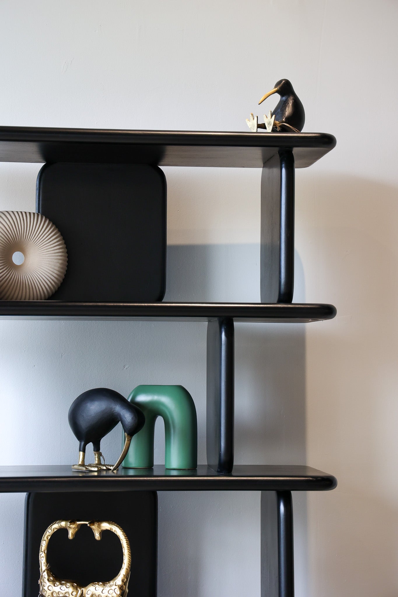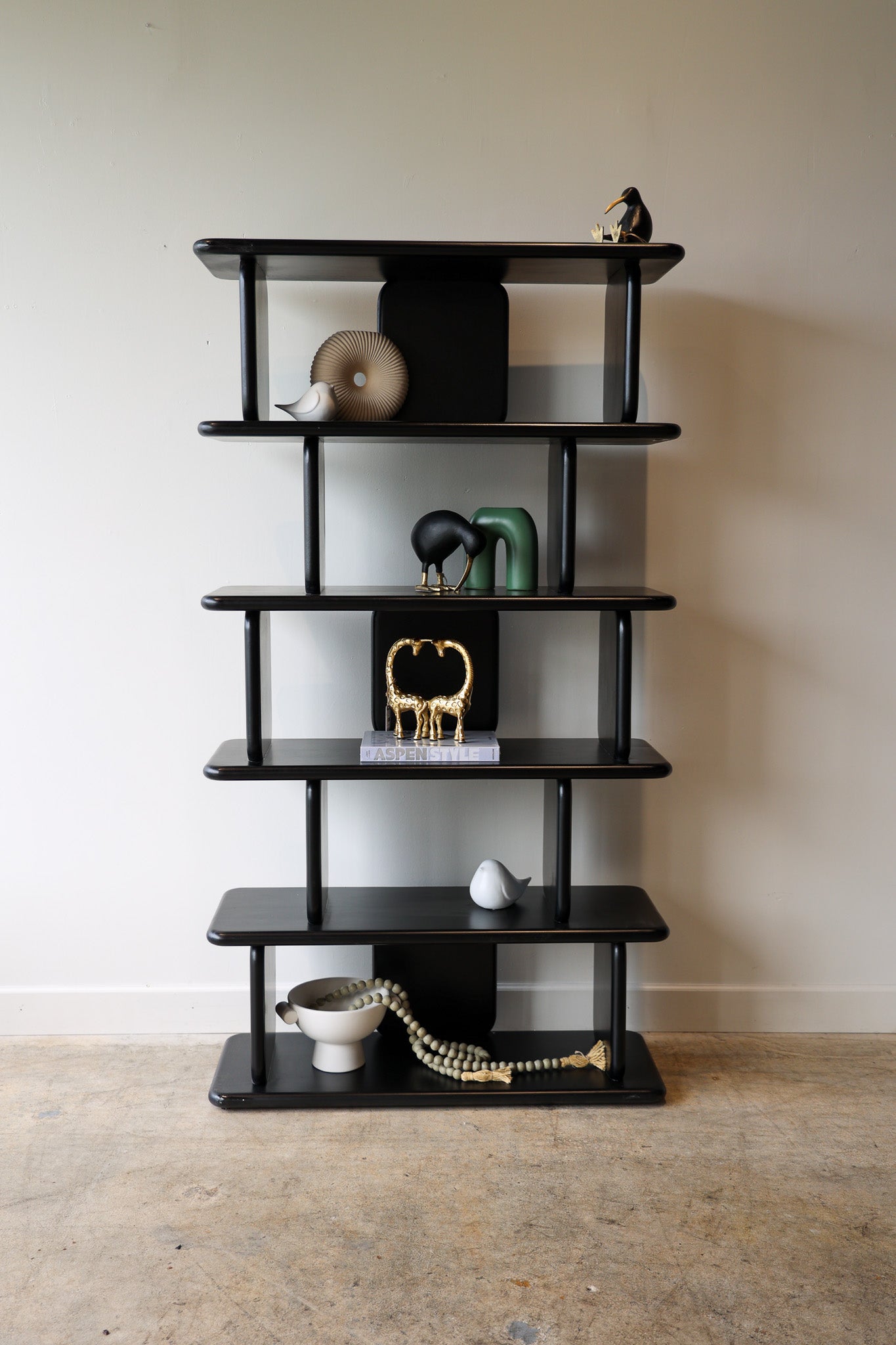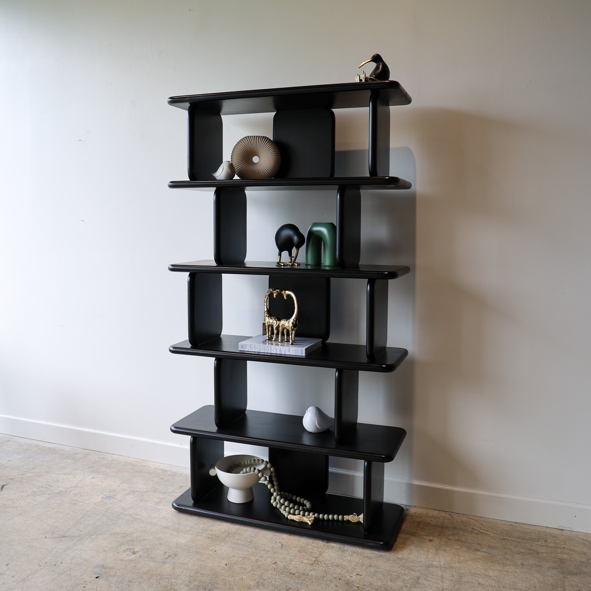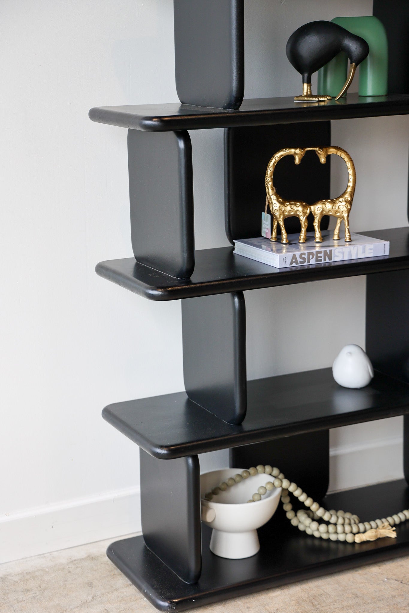 Transform your living space with our elegant black bookshelf made from high-quality mango wood. With its unique wood grain and sleek design, it adds a touch of sophistication to any room. Keep your books and decor organized and on display while also supporting sustainable furniture production. Elevate your home with this timeless piece!
