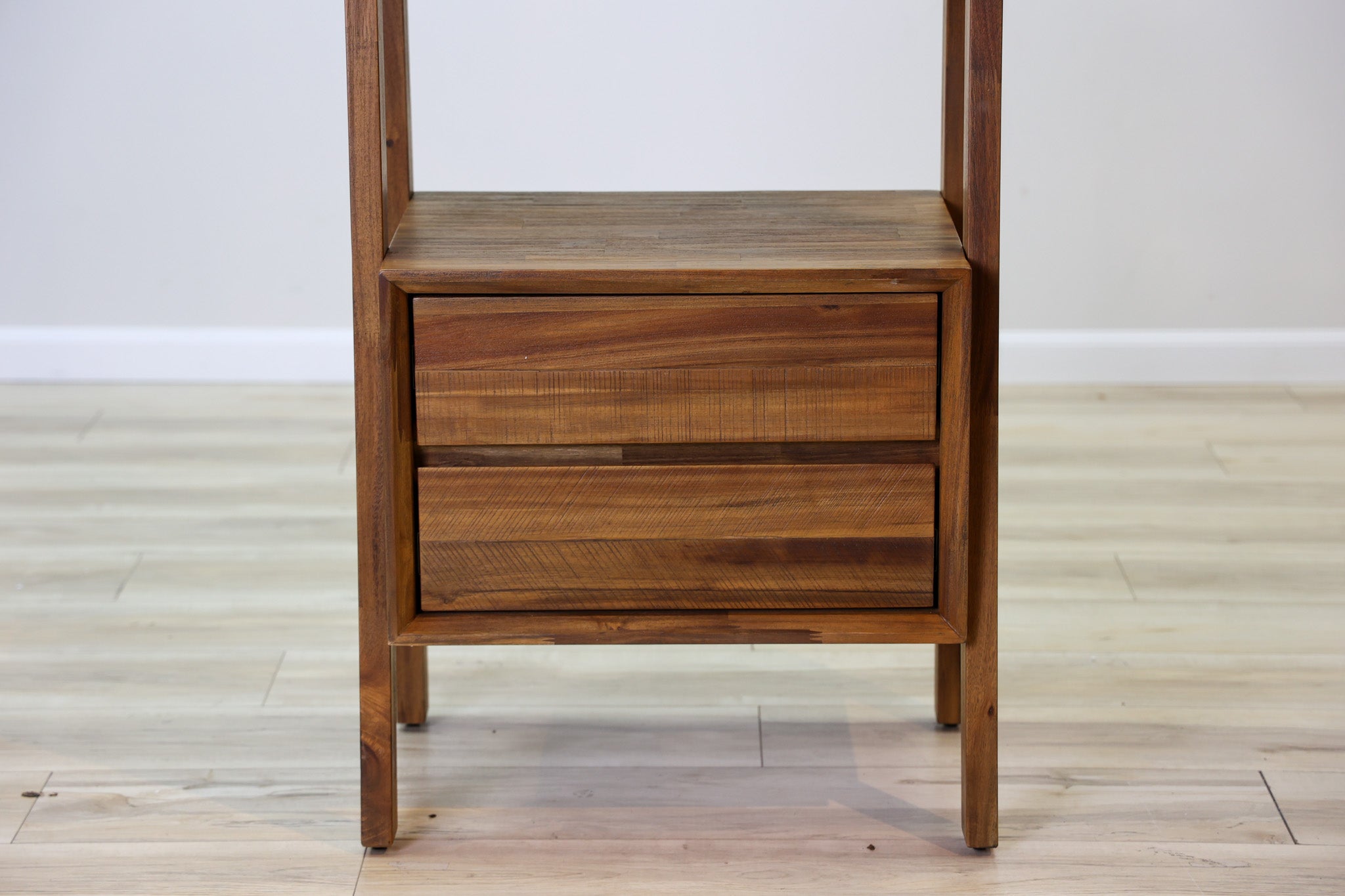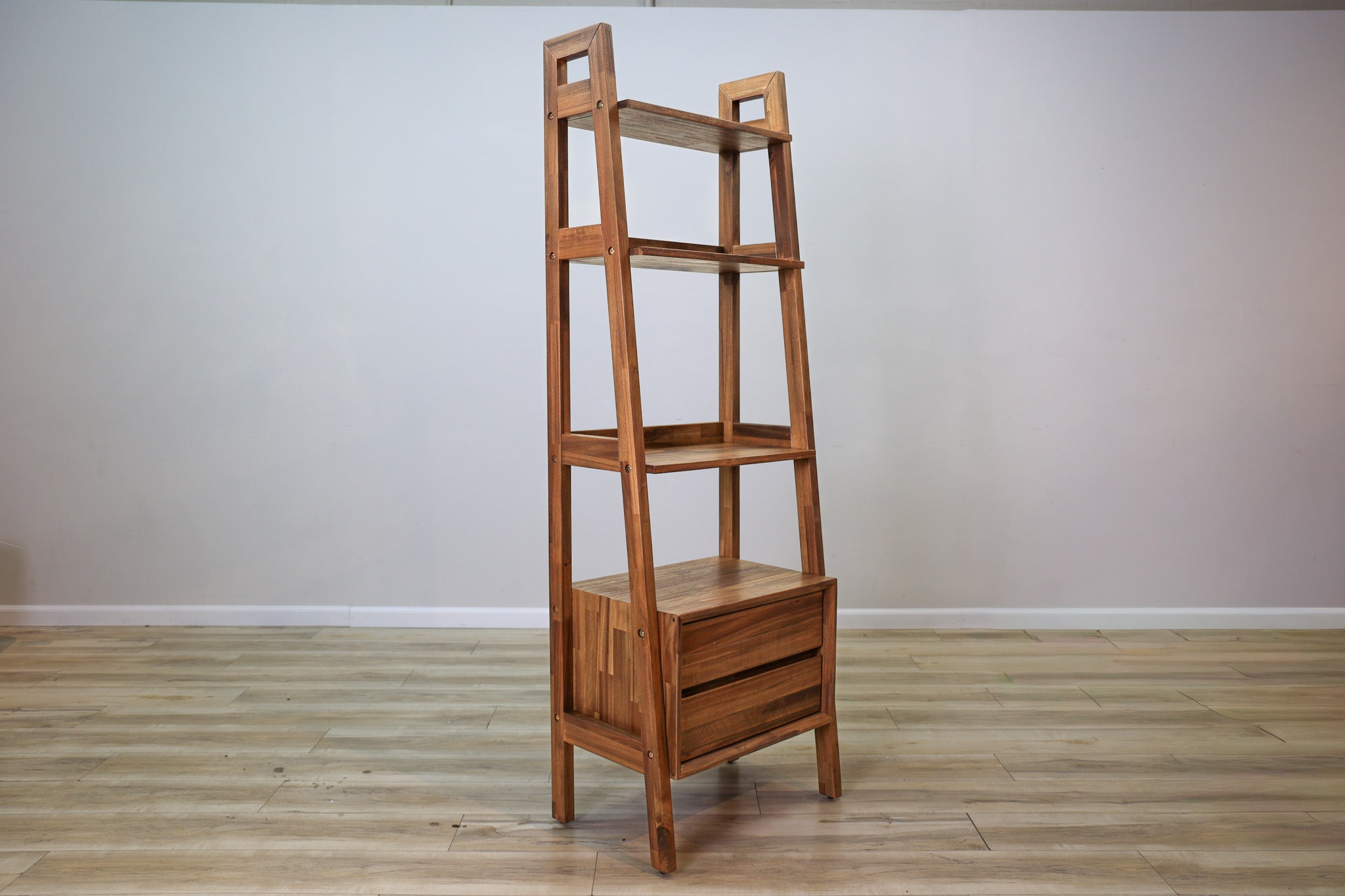 Solid acacia wood with a steel brushed finish bring a natural life to this durable and functional design. Offering ample and versatile storage space with its concealed drawers below open shelves. Durable and stylish with its open design never overtaking your space, the Brad bookshelf is the storage and display solution you've been waiting for!