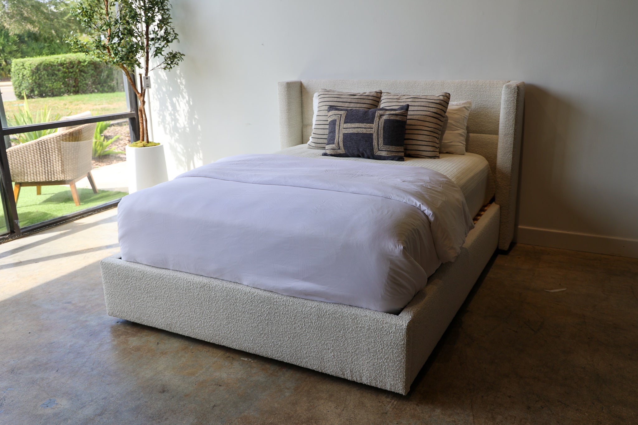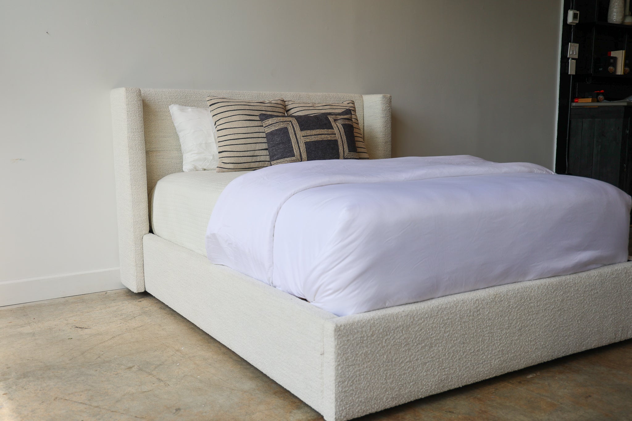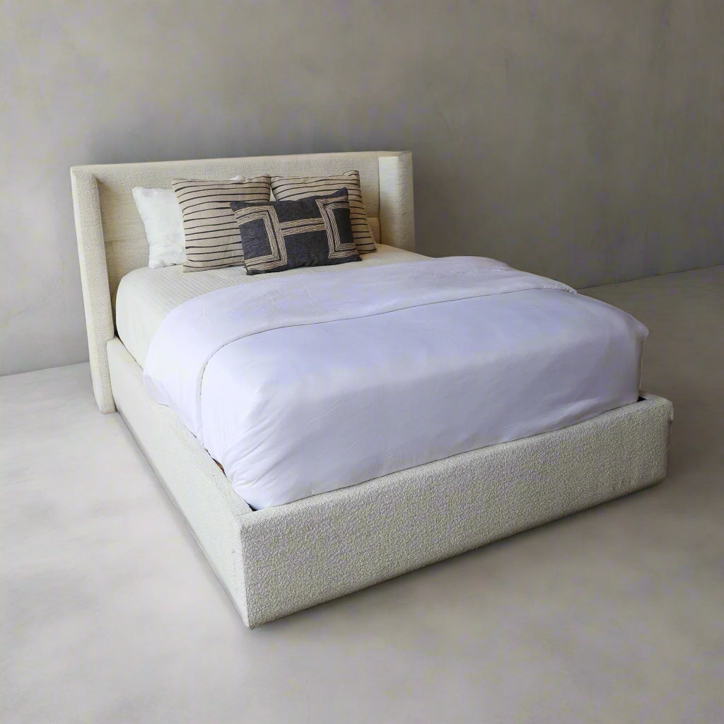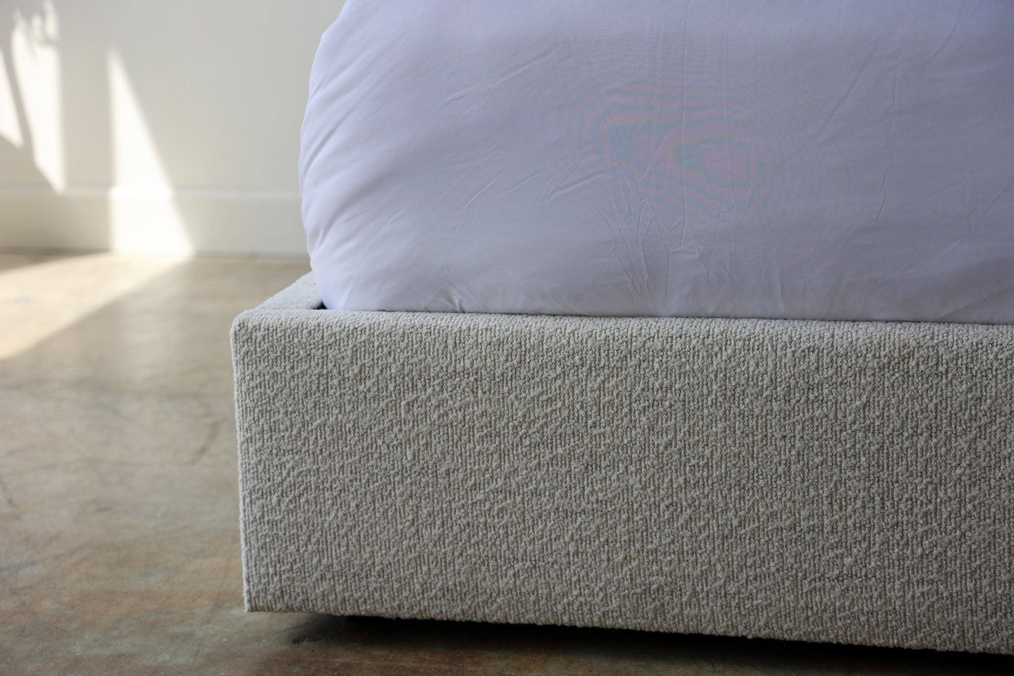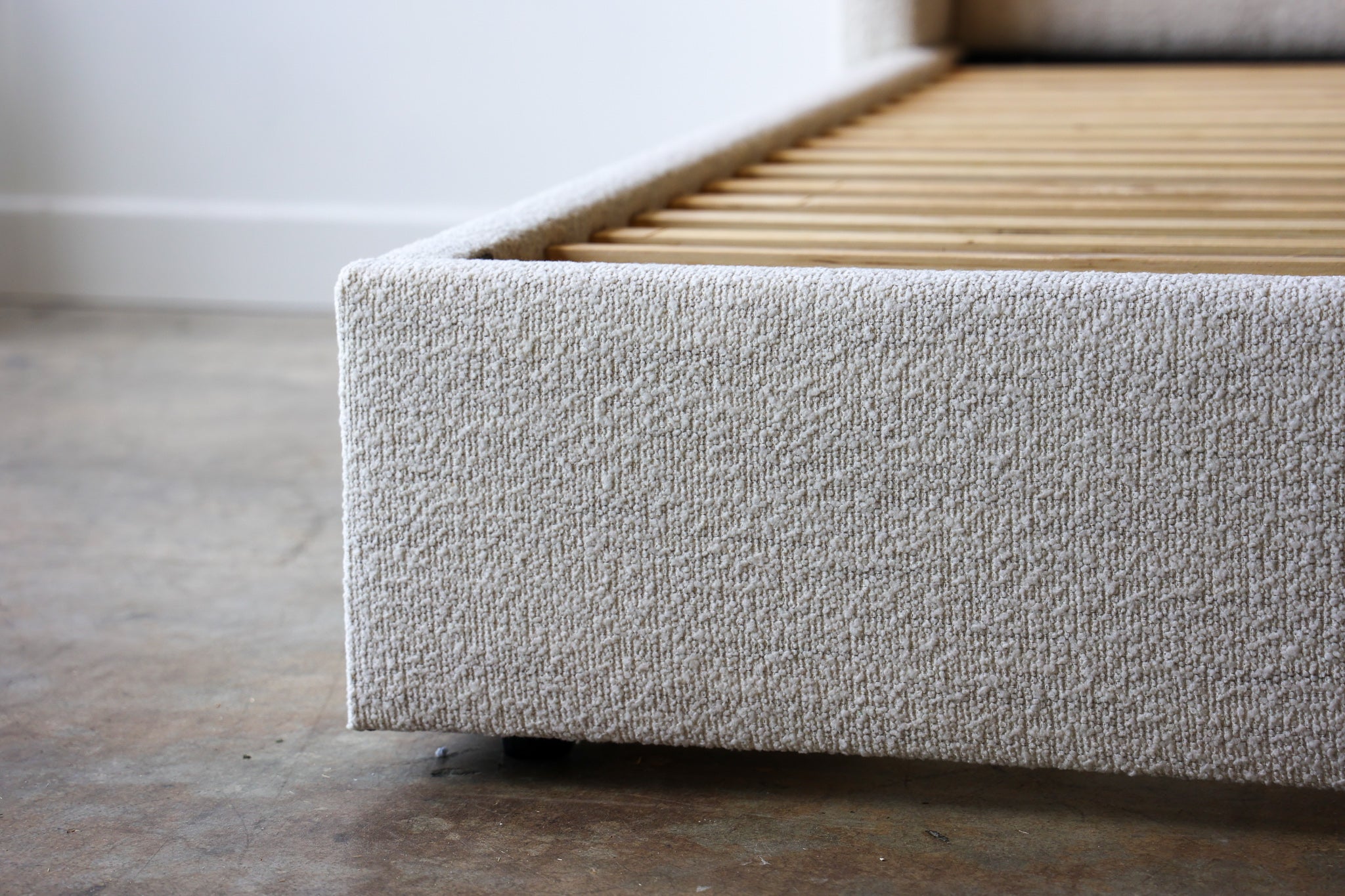 The Brahms Boucle Bed is a stylish and low profile bed with a luxurious boucle upholstery. Revamp your bedroom decor and enjoy the modern design with a timeless feel. Transform your bedroom into a cozy, inviting space.