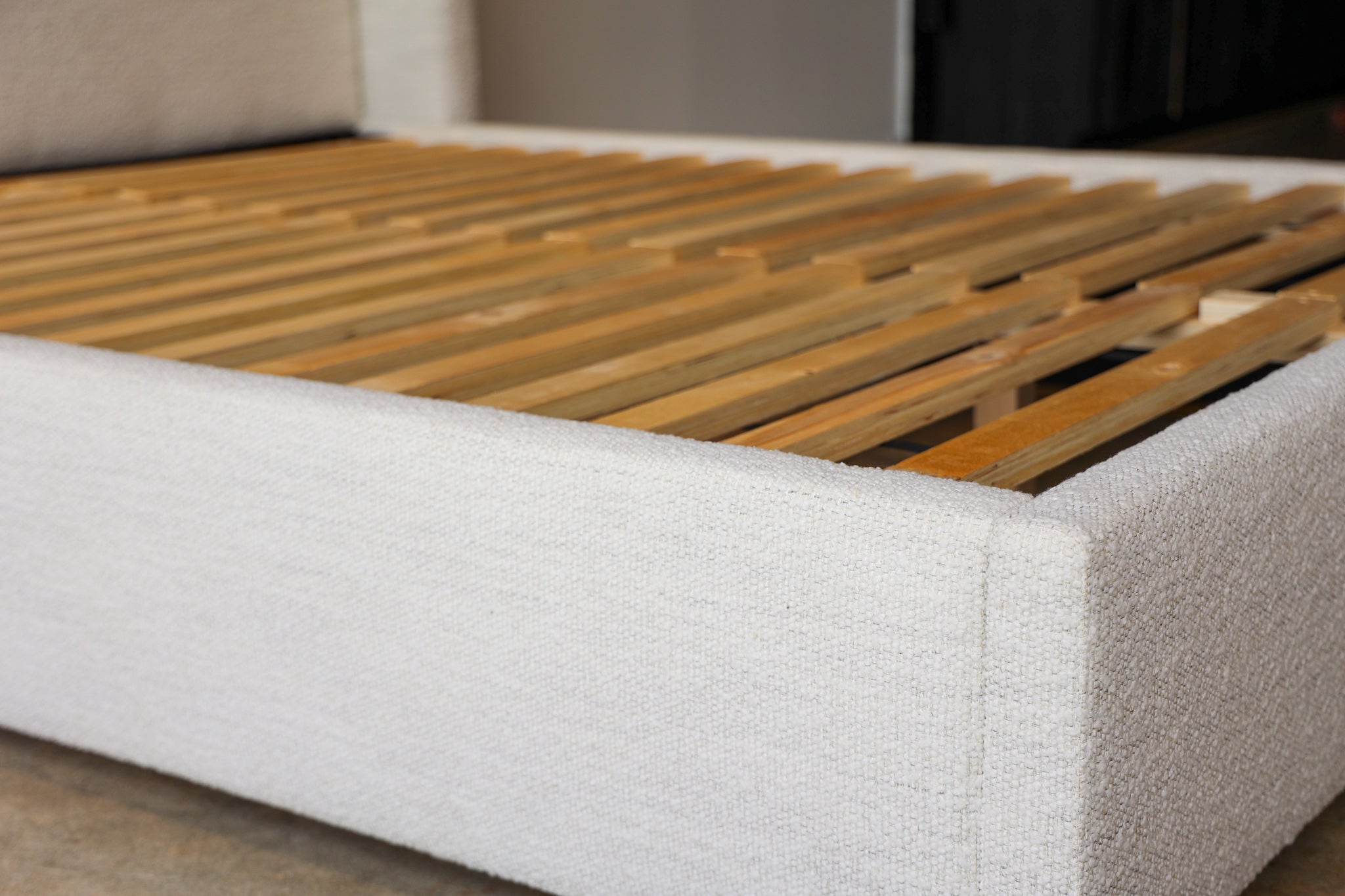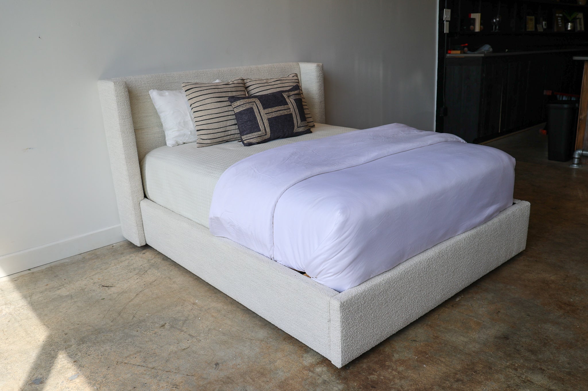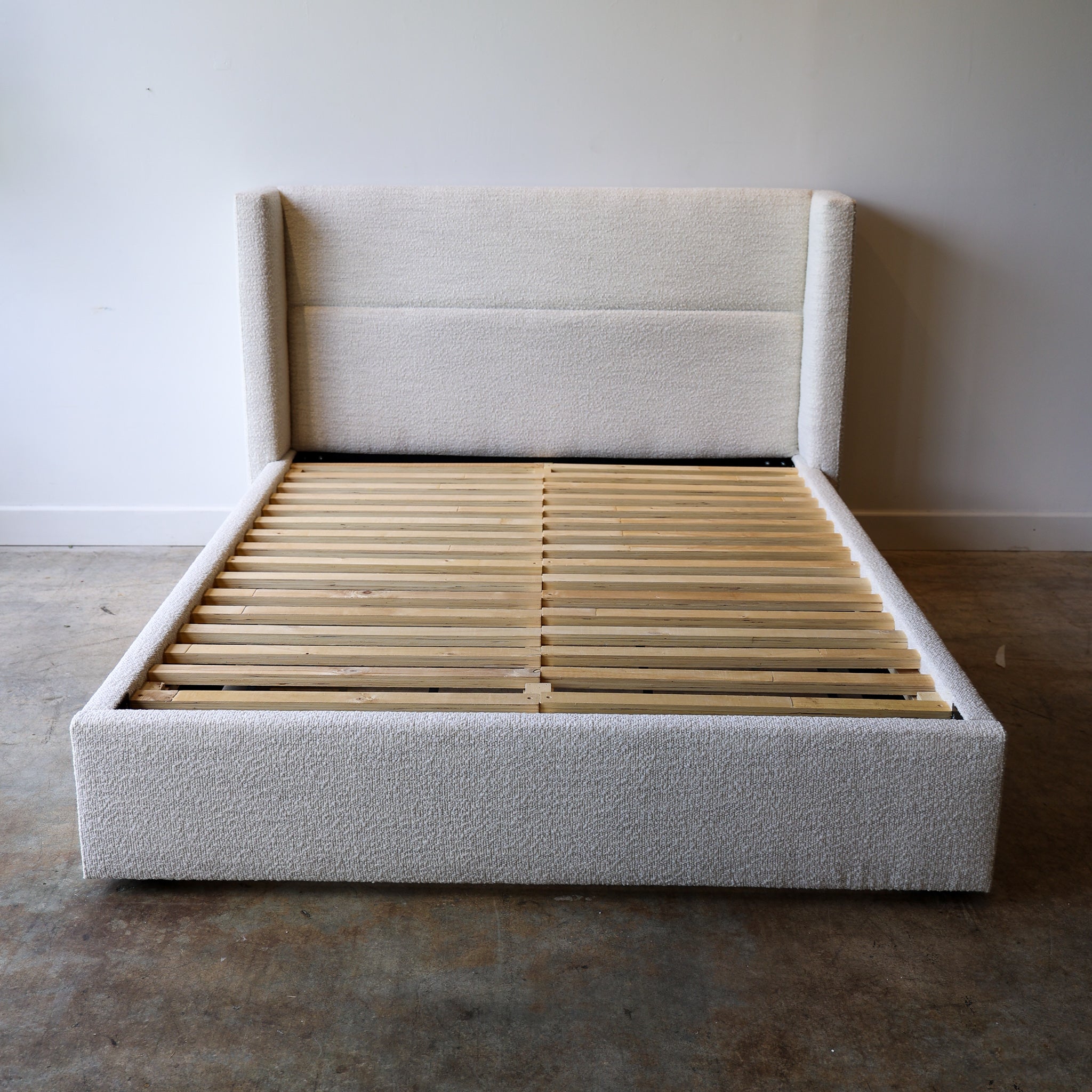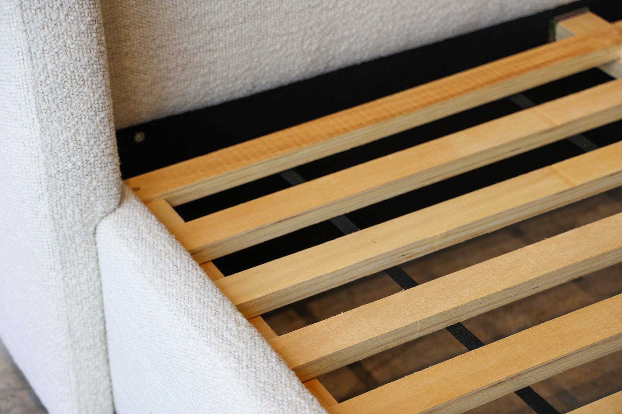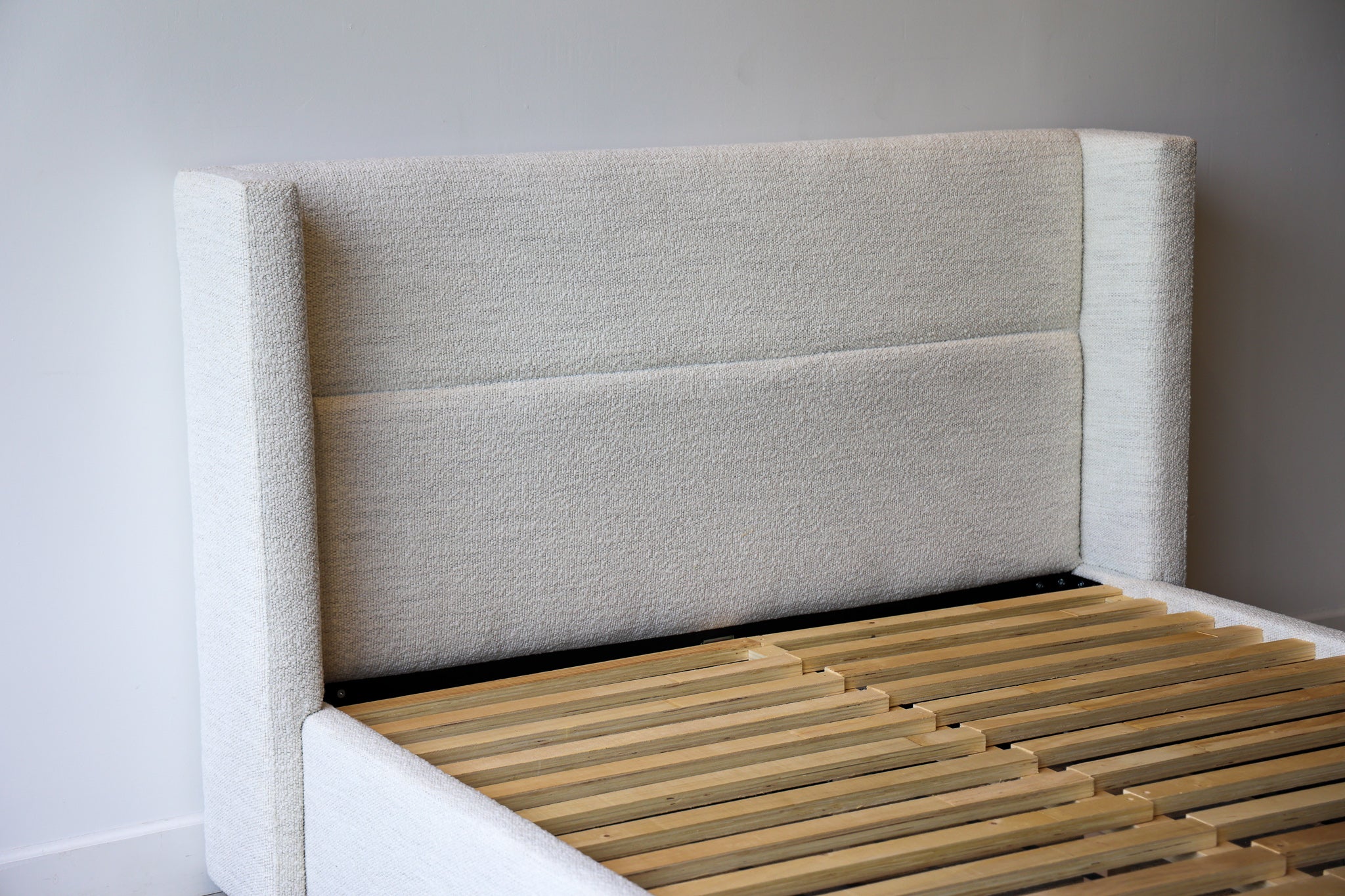 The Brahms Boucle Bed is a stylish and low profile bed with a luxurious boucle upholstery. Revamp your bedroom decor and enjoy the modern design with a timeless feel. Transform your bedroom into a cozy, inviting space.