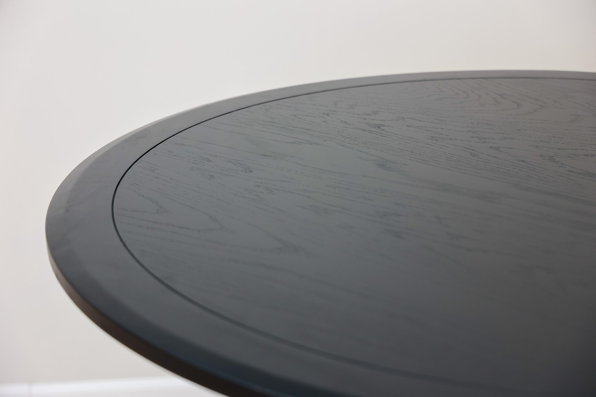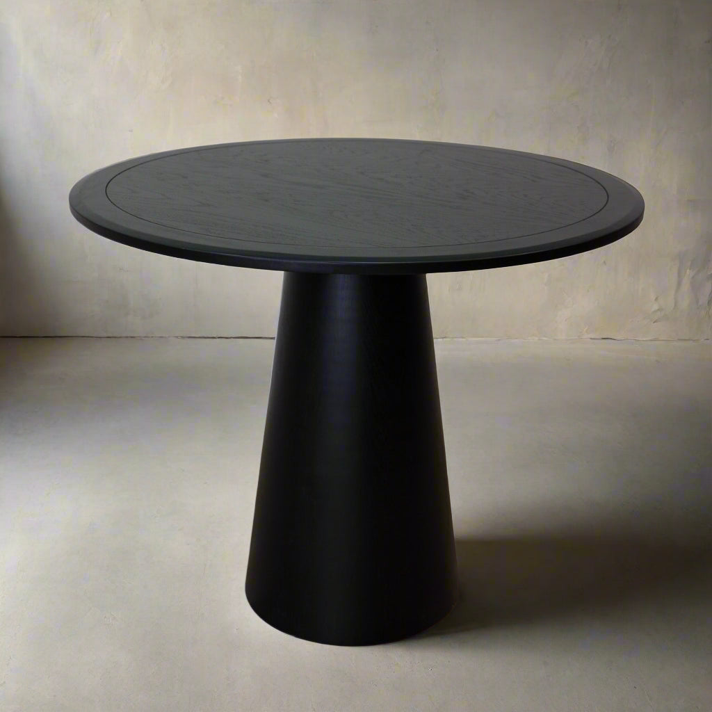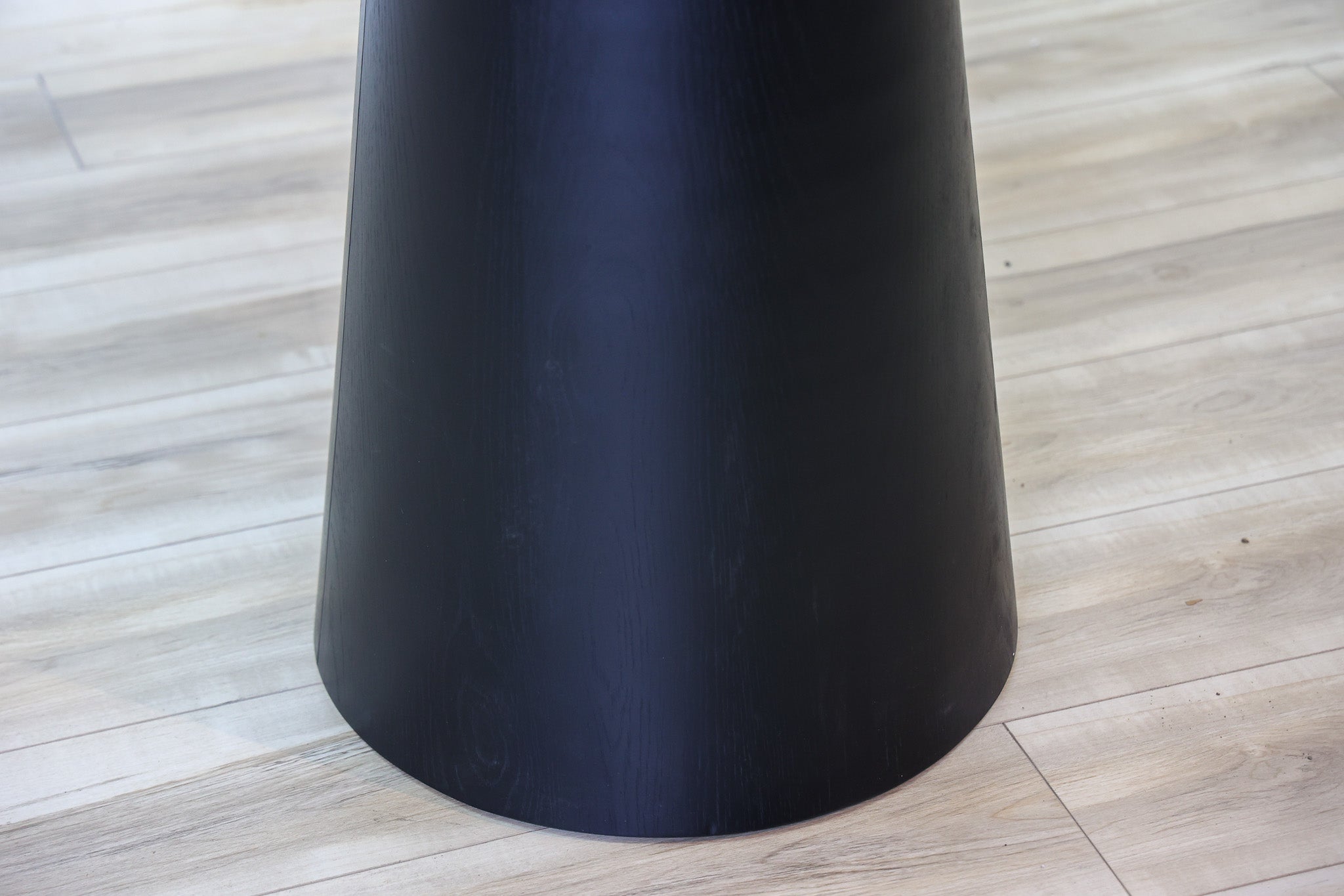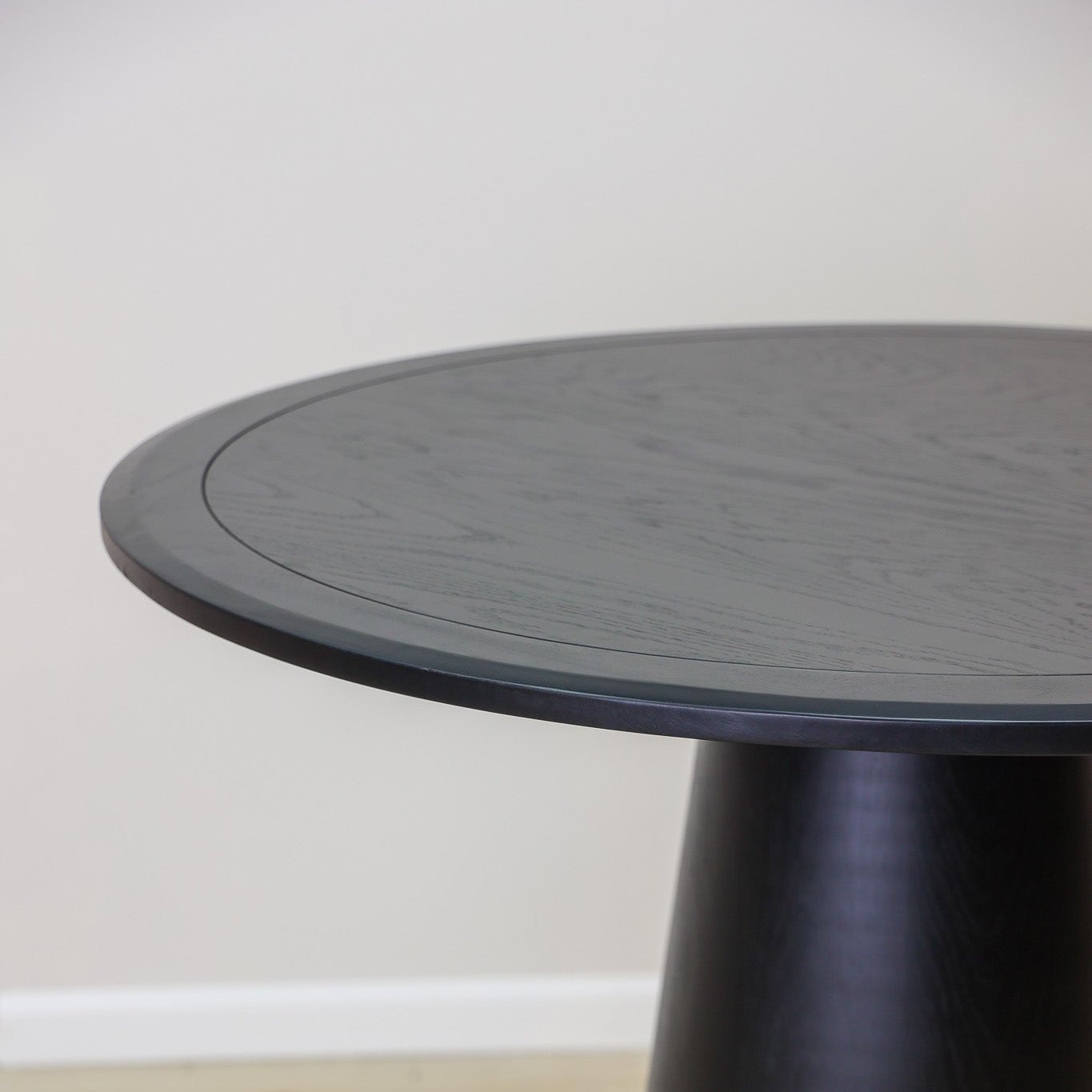 The Bridget Counter Table features a round black pedestal made of high-quality wood. This sturdy and stylish table effortlessly elevates any dining or kitchen space, providing a sleek and modern design. With its durable construction and elegant aesthetic, it adds both functionality and sophistication to any room.