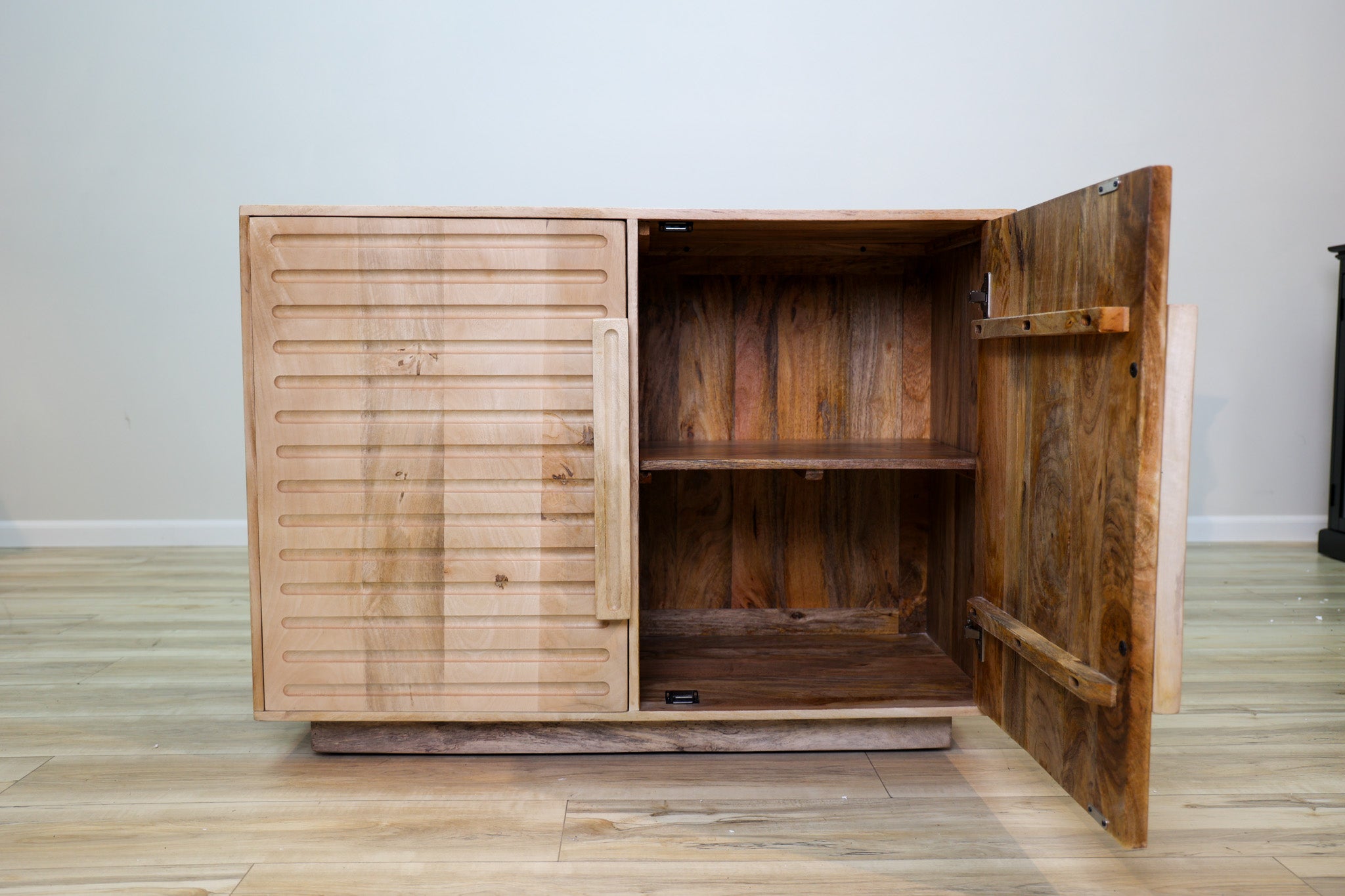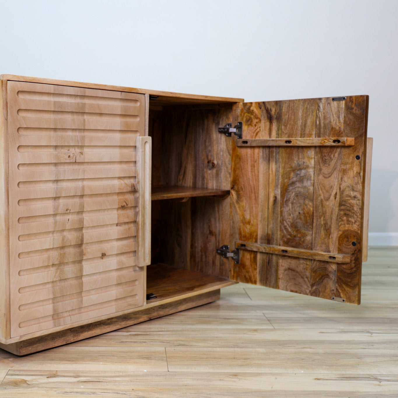 Introducing the compliment to the Brinkley Credenza, the Brinkley Cabinet offers a smaller and versatile storage solution. Crafted with solid mango wood and finished with a light natural tone on its exterior, the Brinkley Cabinet offers a light and organic touch to any design. Pair with its larger counter part or let it take the stage alone in your home today!