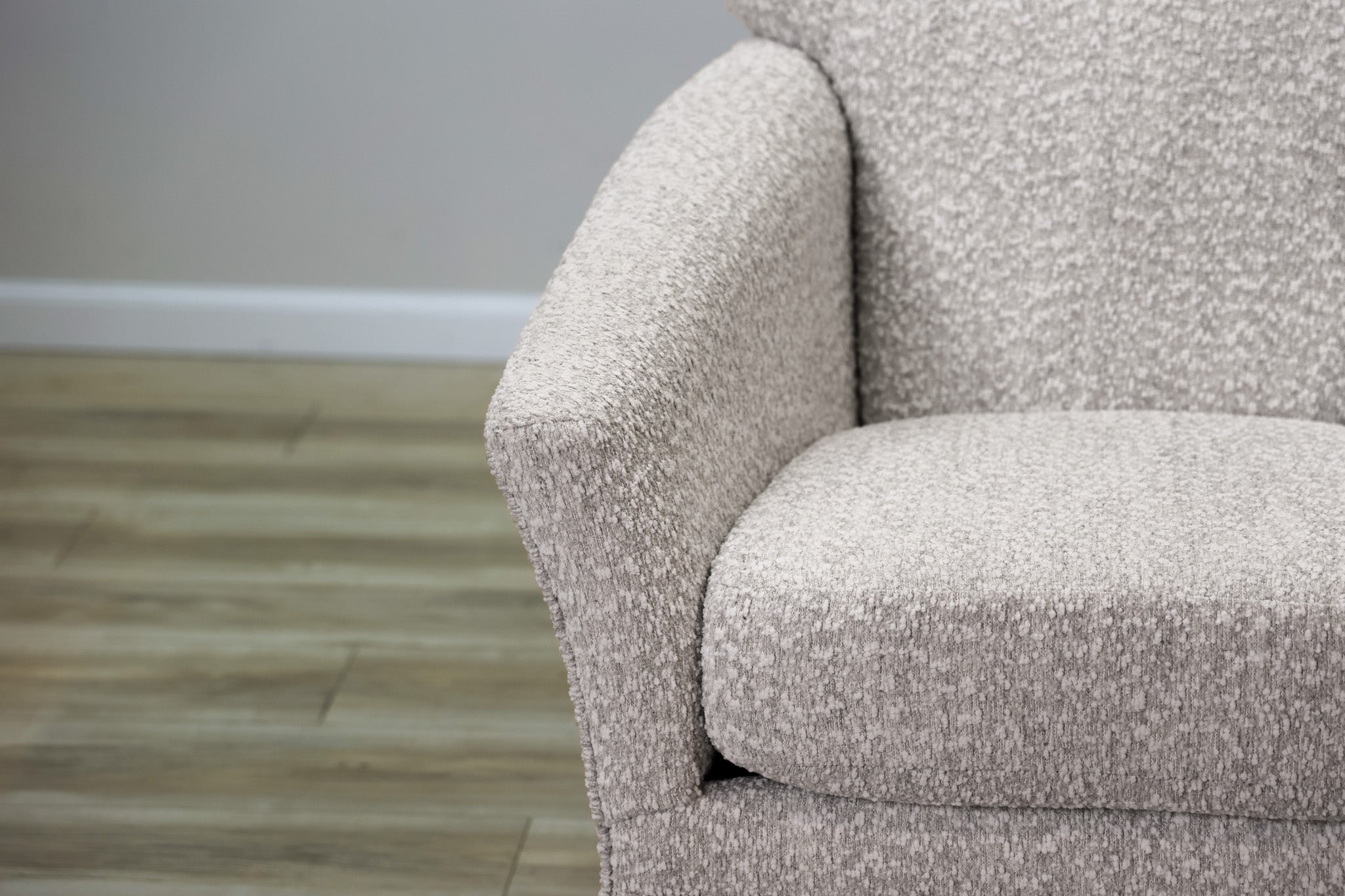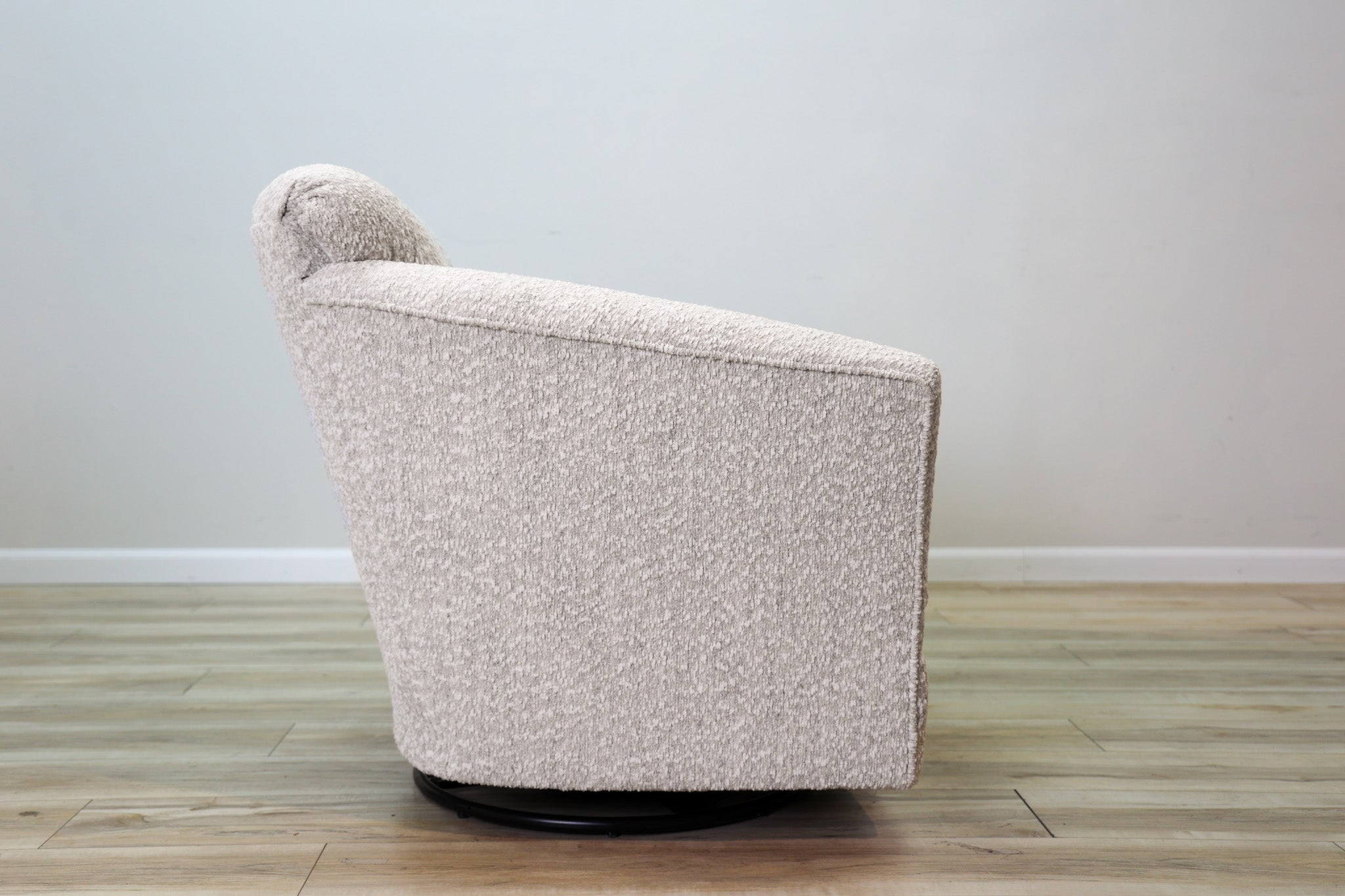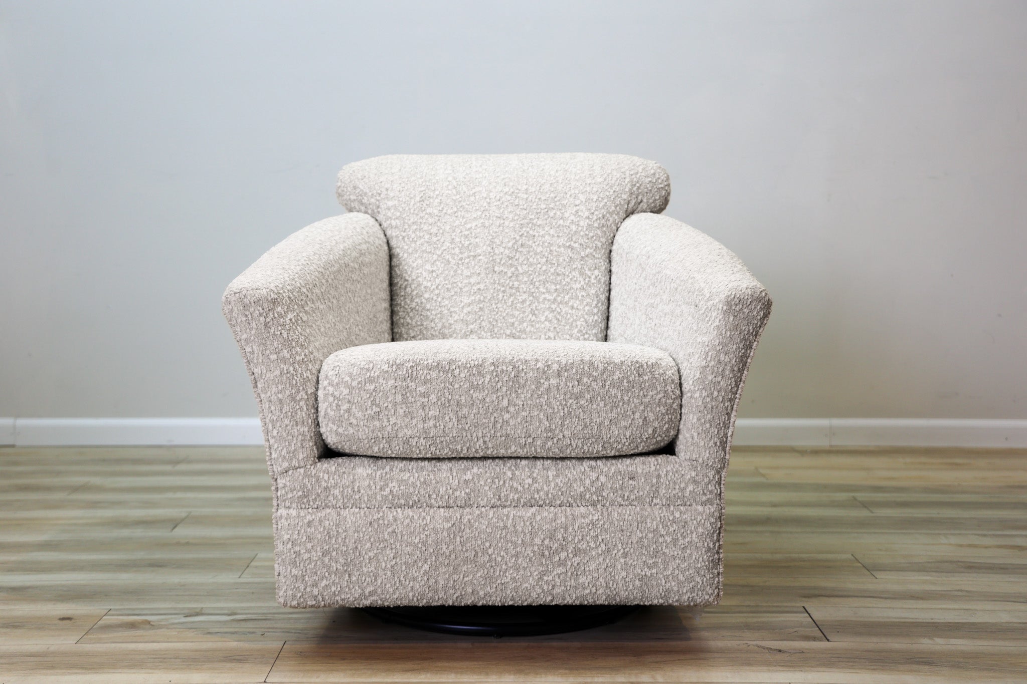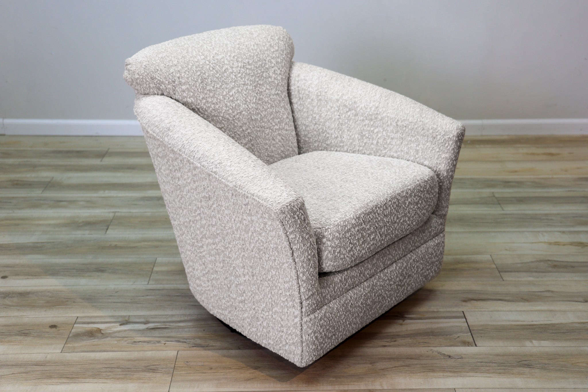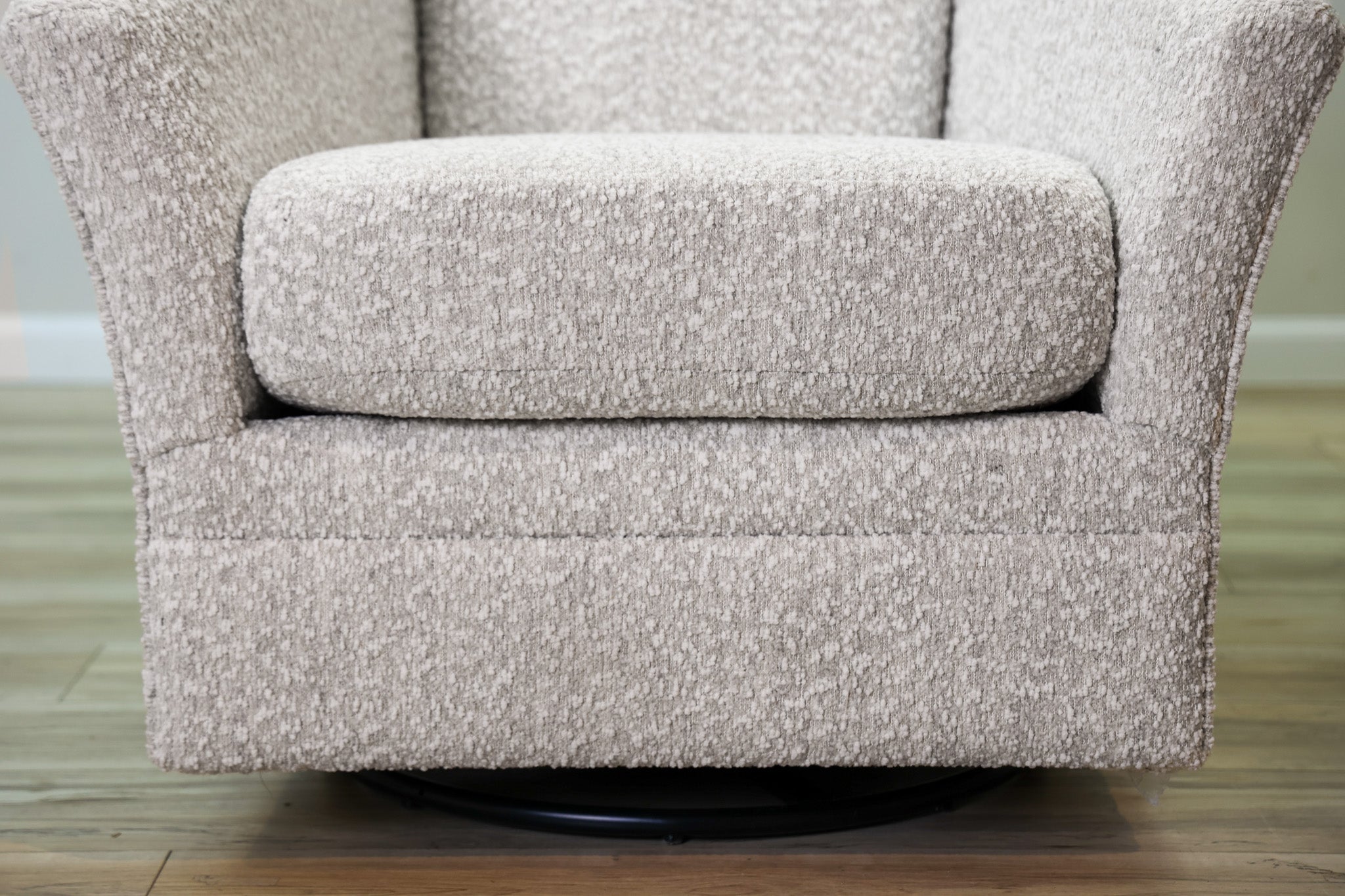 Swivel, Glider, Rocker, Stylish, Comfortable - there aren't enough words to describe the how amazing this accent chair is. Wrapped in a warm gray with light and beige fibers woven throughout - this chair invites you to sit down, relax, and get comfortable for a while. Loaded with features without sacrificing an ounce of style, make the Bucky Swivel Accent Chair apart of your space today!