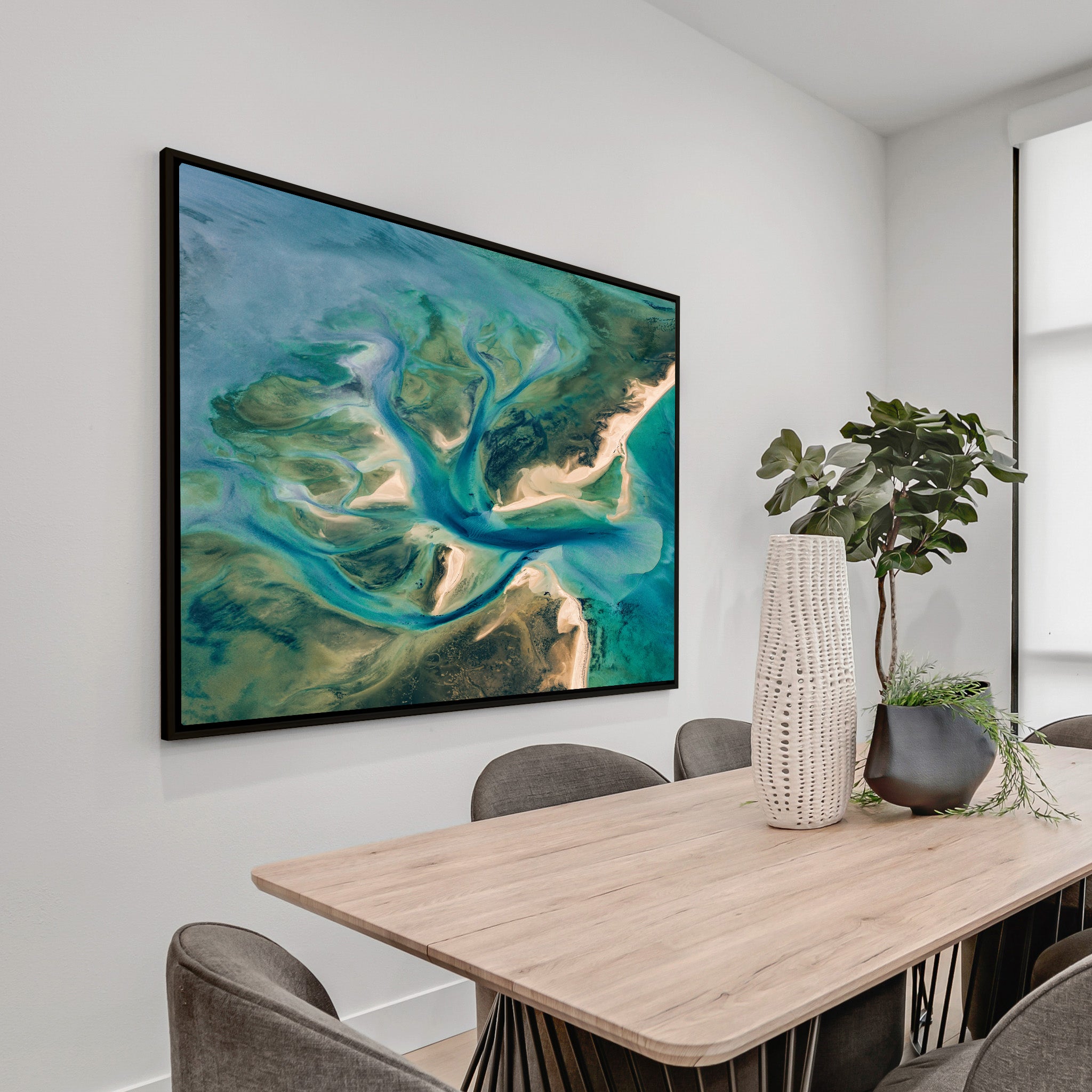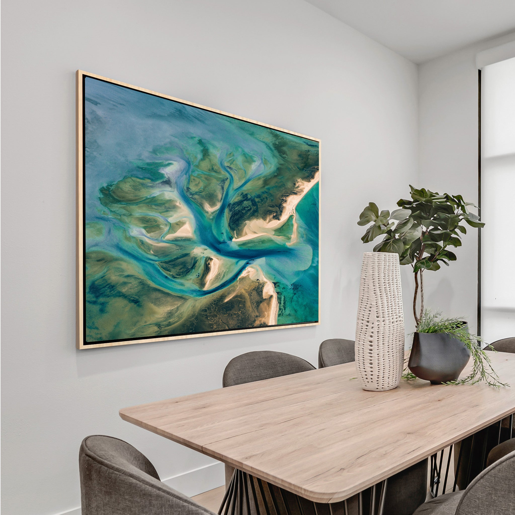 Hanging hardware is installed so art is displayed on your wall in the same orientation as shown. Please call us at 813-602-0360 if you'd like to display the art in a different orientation!