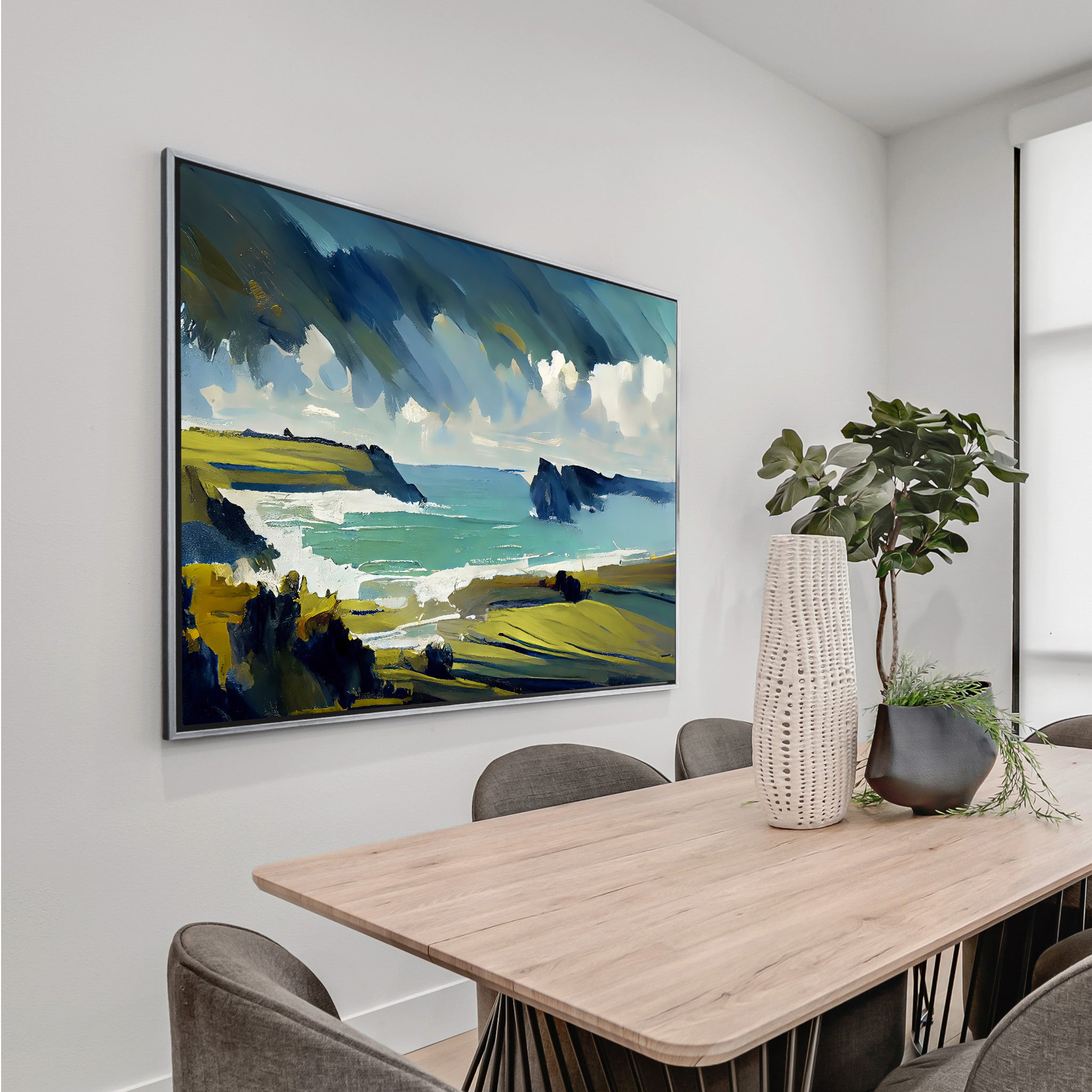 Hanging hardware is installed so art is displayed on your wall in the same orientation as shown. Please call us at 813-602-0360 if you'd like to display the art in a different orientation!