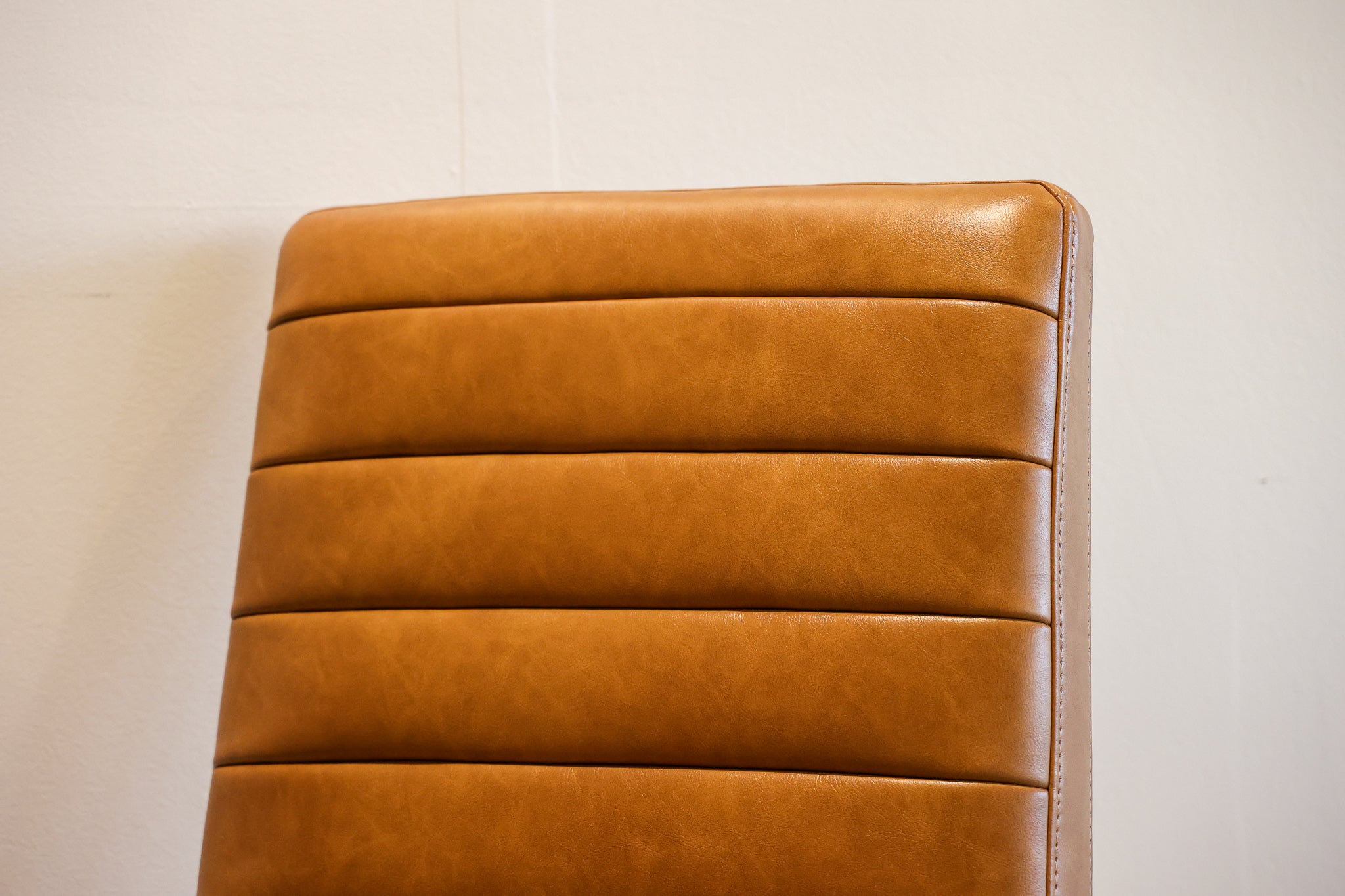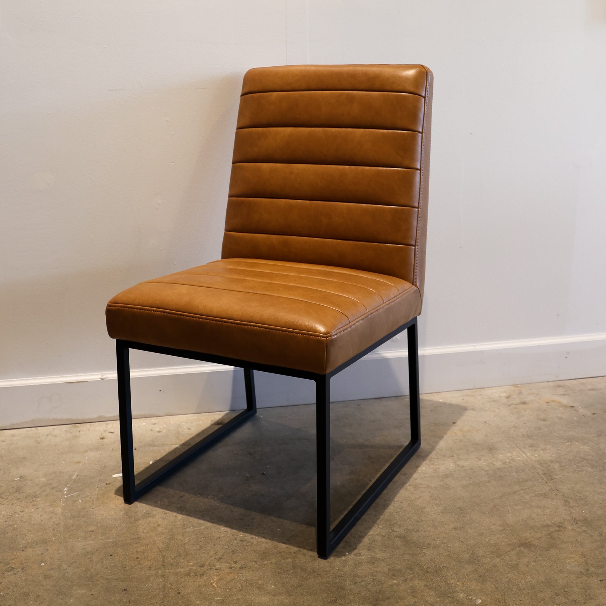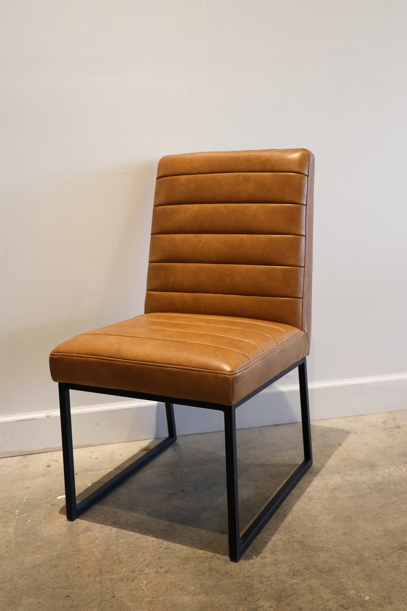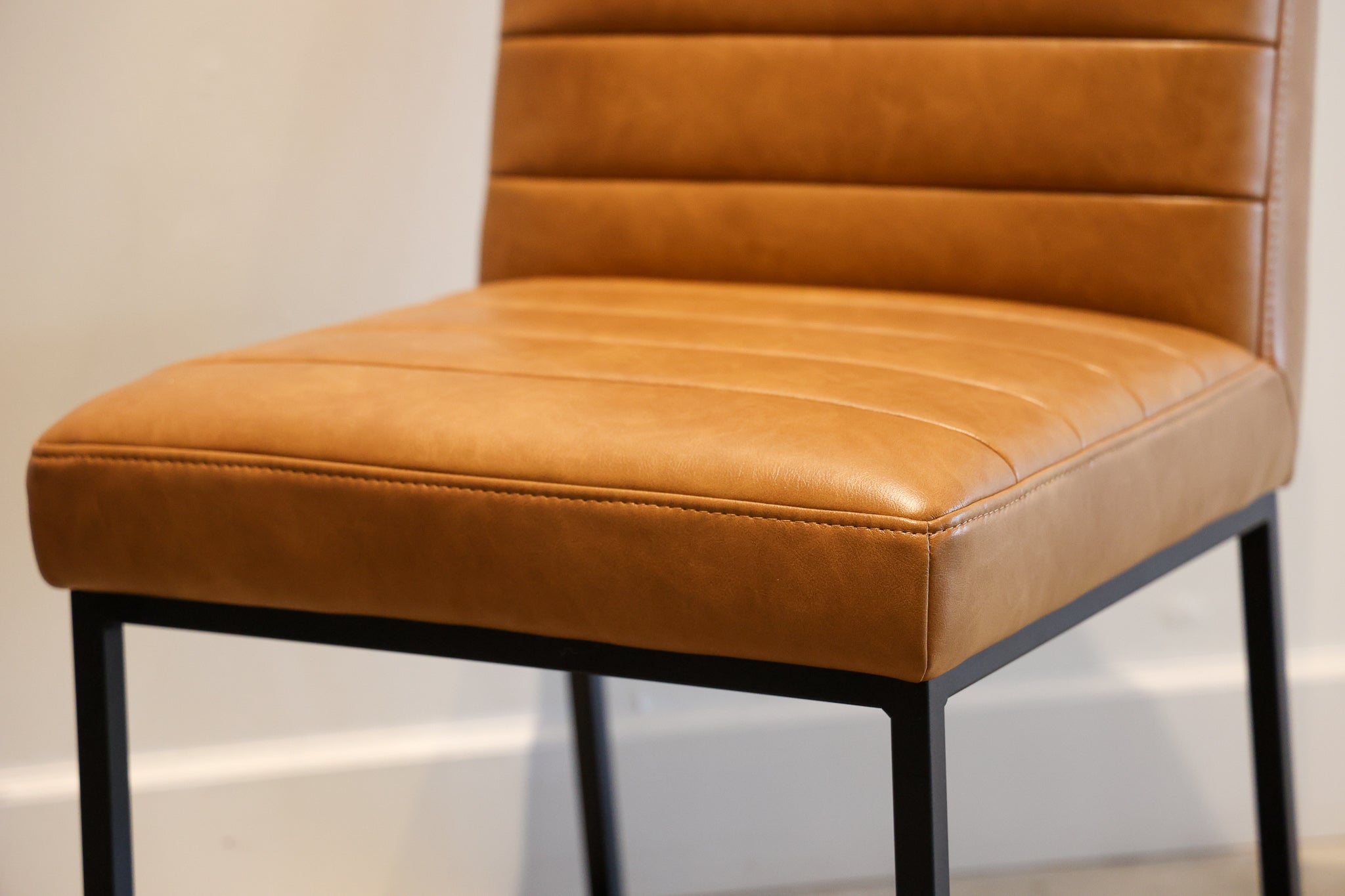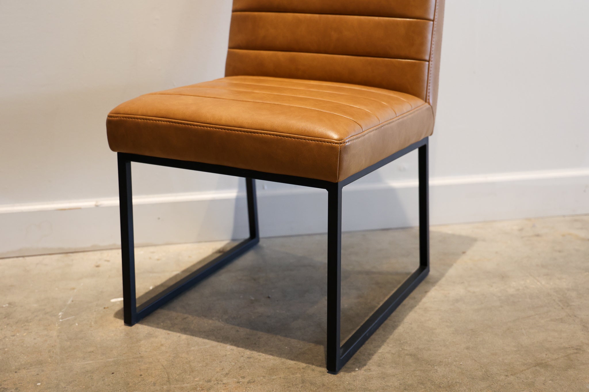 This sleek vegan leather dining chair features a modern style that will fit perfectly with any contemporary décor. Built on hardwood frame with a comfortable foam cushion, this chair provides unparalleled style and comfort. Embellished with clean lines and without compromising on quality, this chair will give your dining area a timeless, elegant look. chair: 36.5 x 21H / seat: 18.5H
