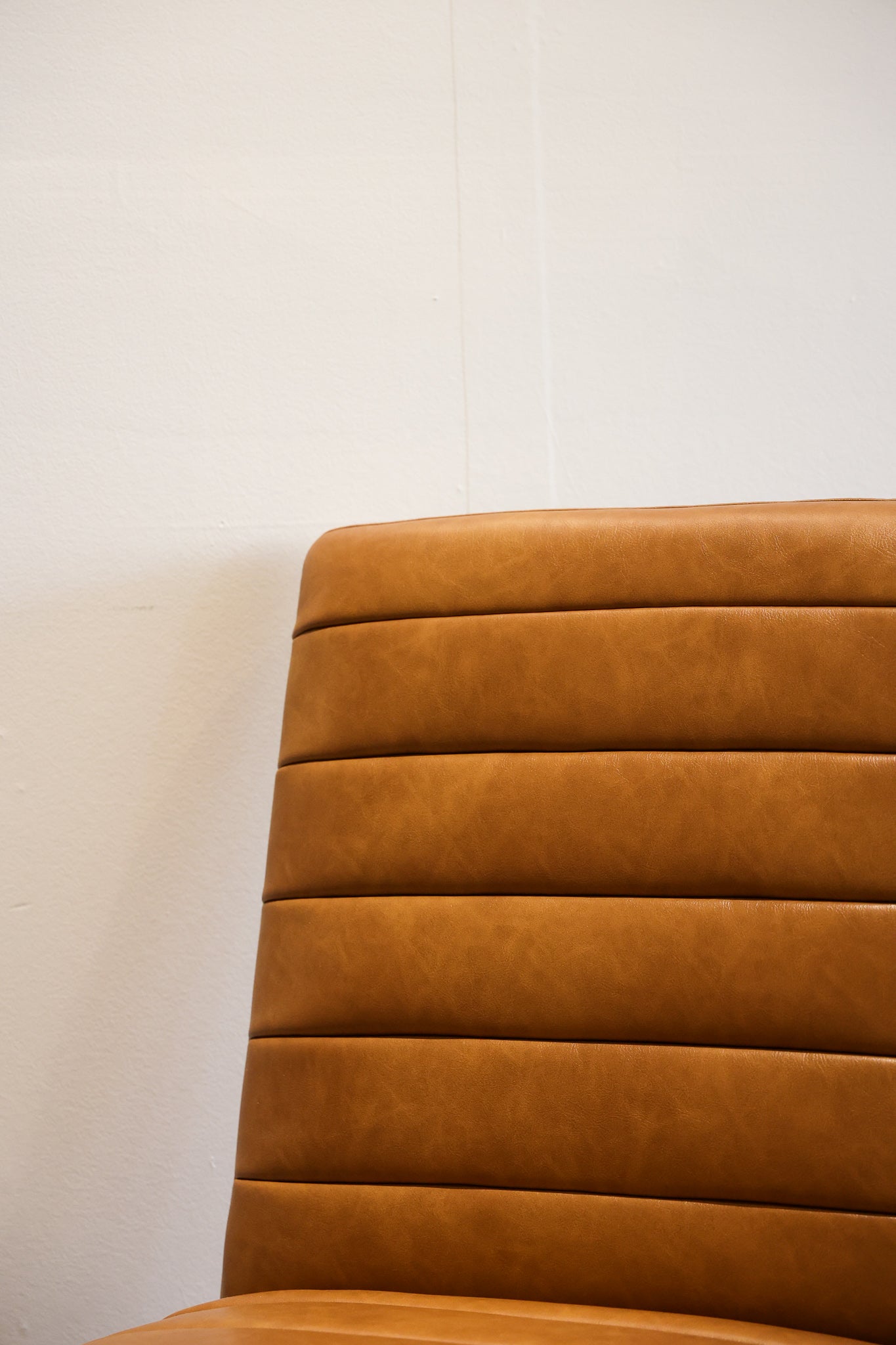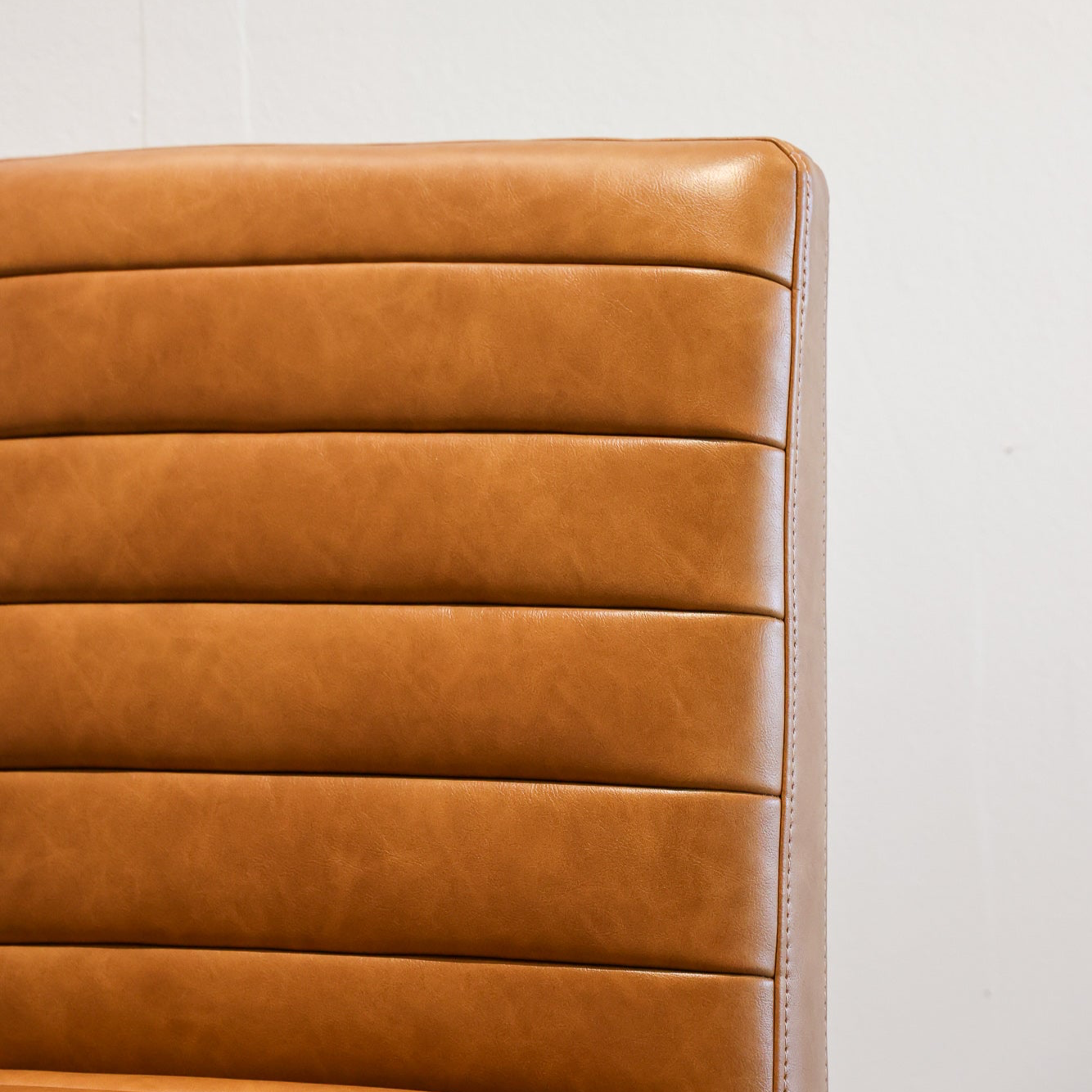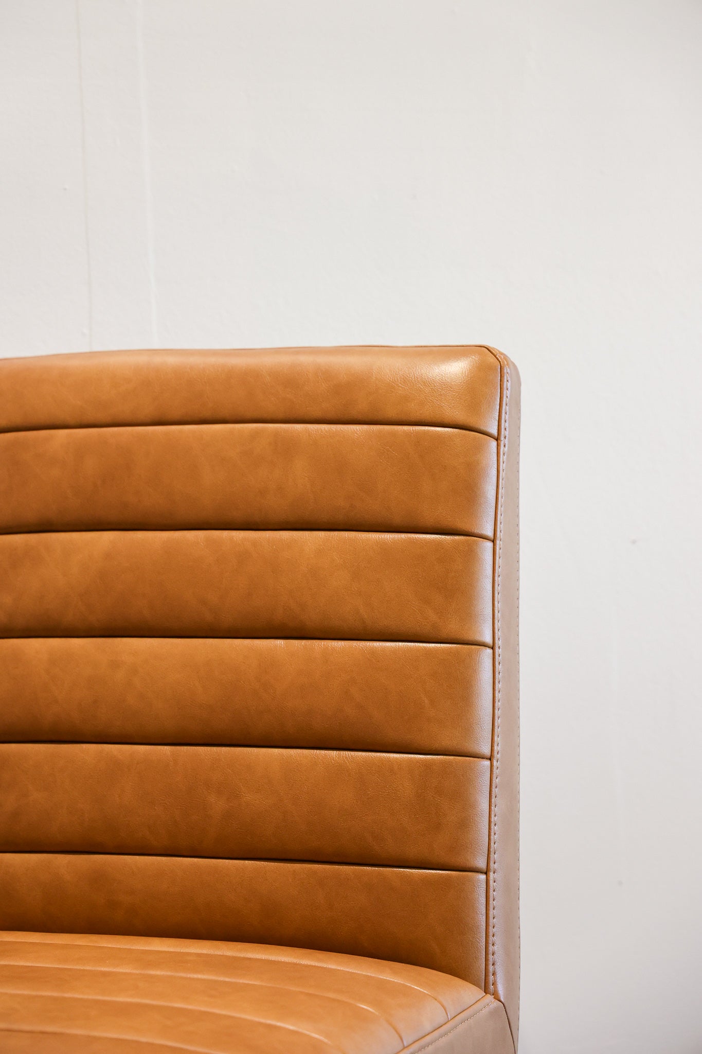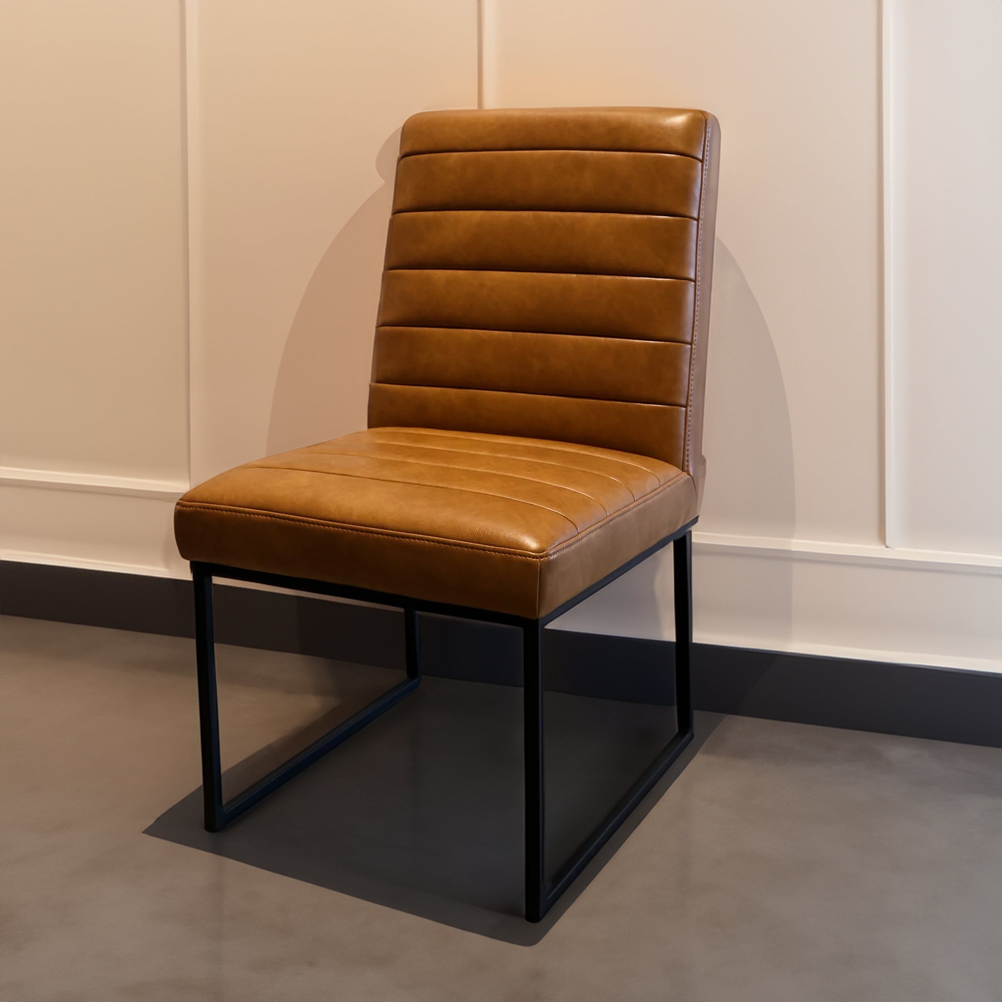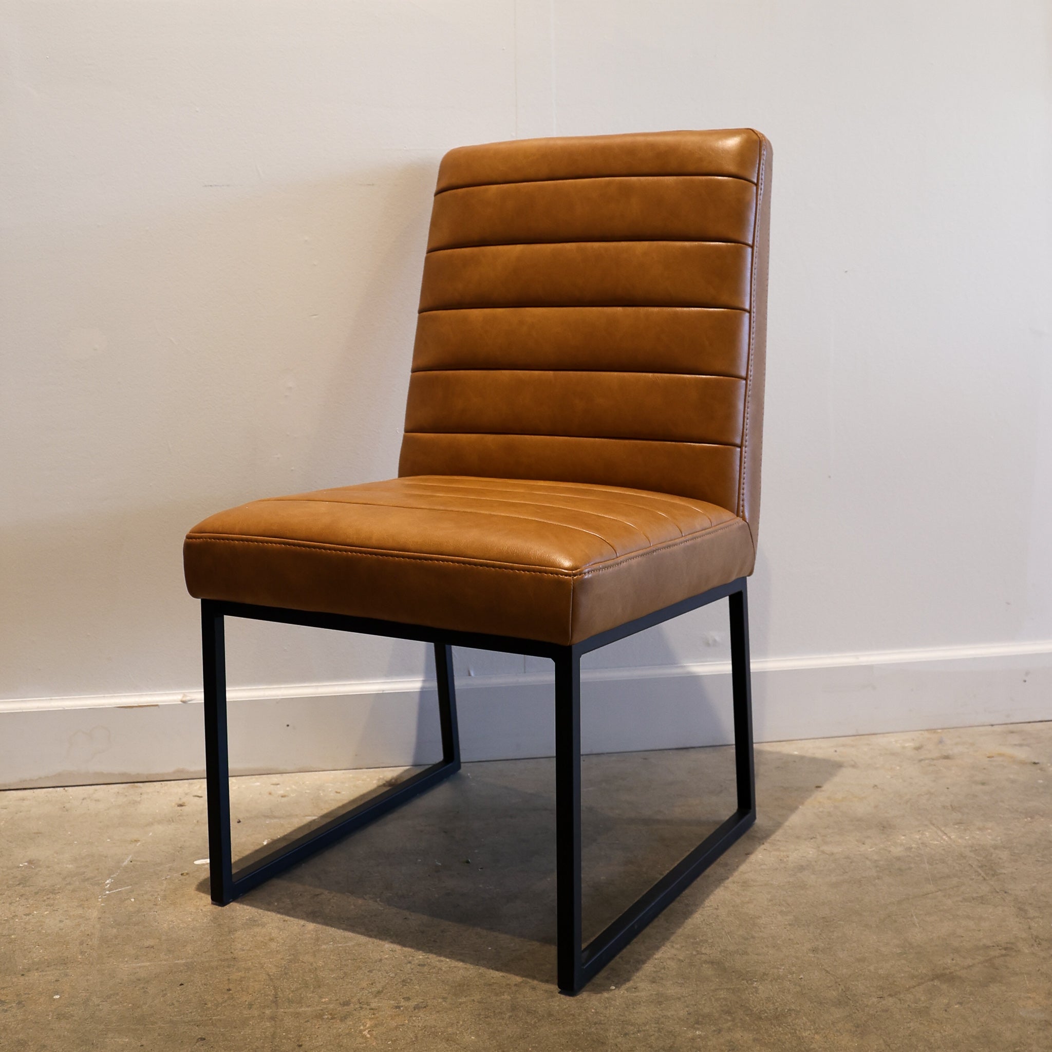 This sleek vegan leather dining chair features a modern style that will fit perfectly with any contemporary décor. Built on hardwood frame with a comfortable foam cushion, this chair provides unparalleled style and comfort. Embellished with clean lines and without compromising on quality, this chair will give your dining area a timeless, elegant look. chair: 36.5 x 21H / seat: 18.5H