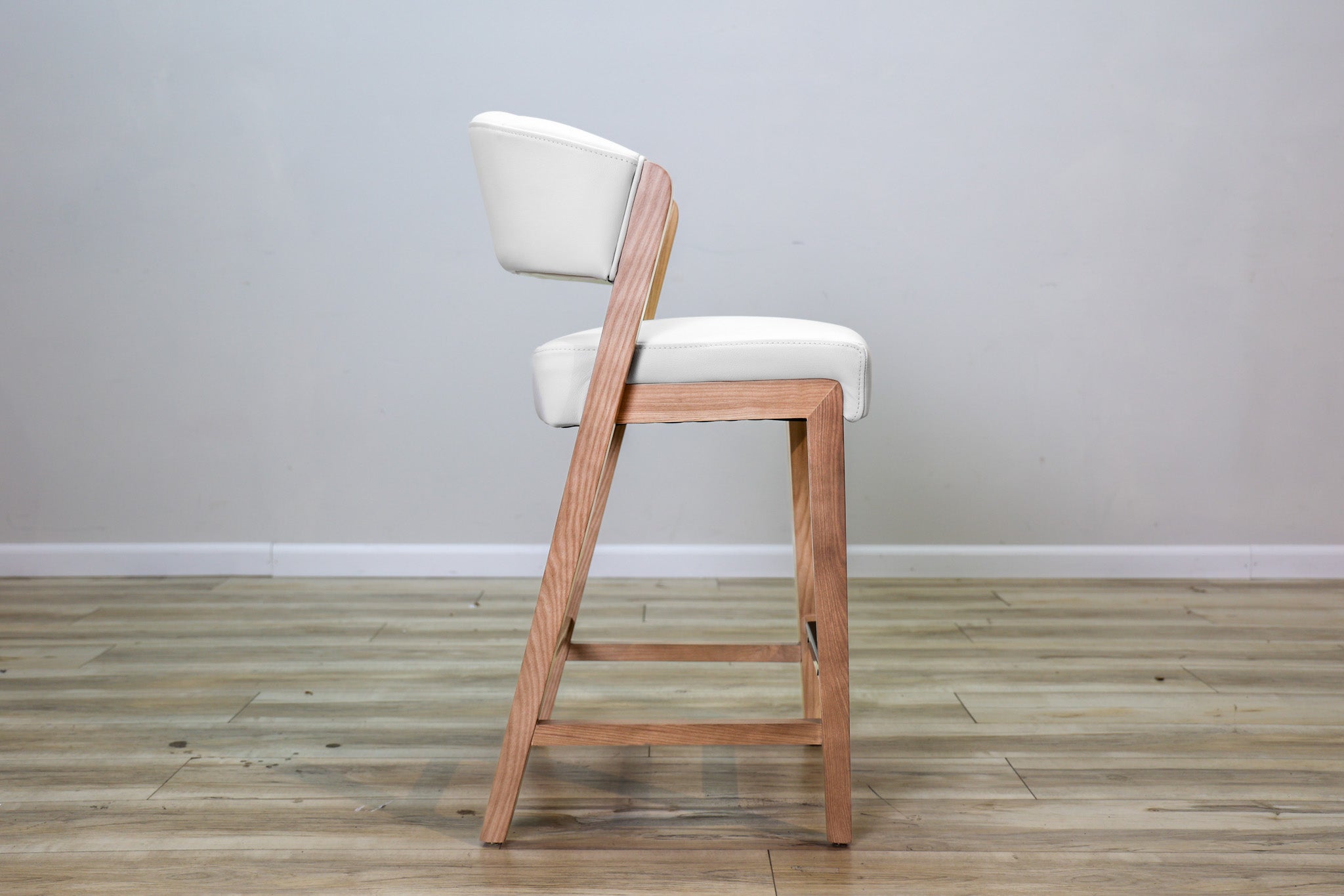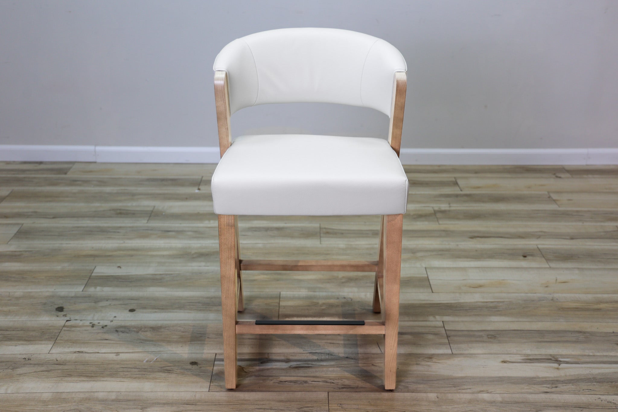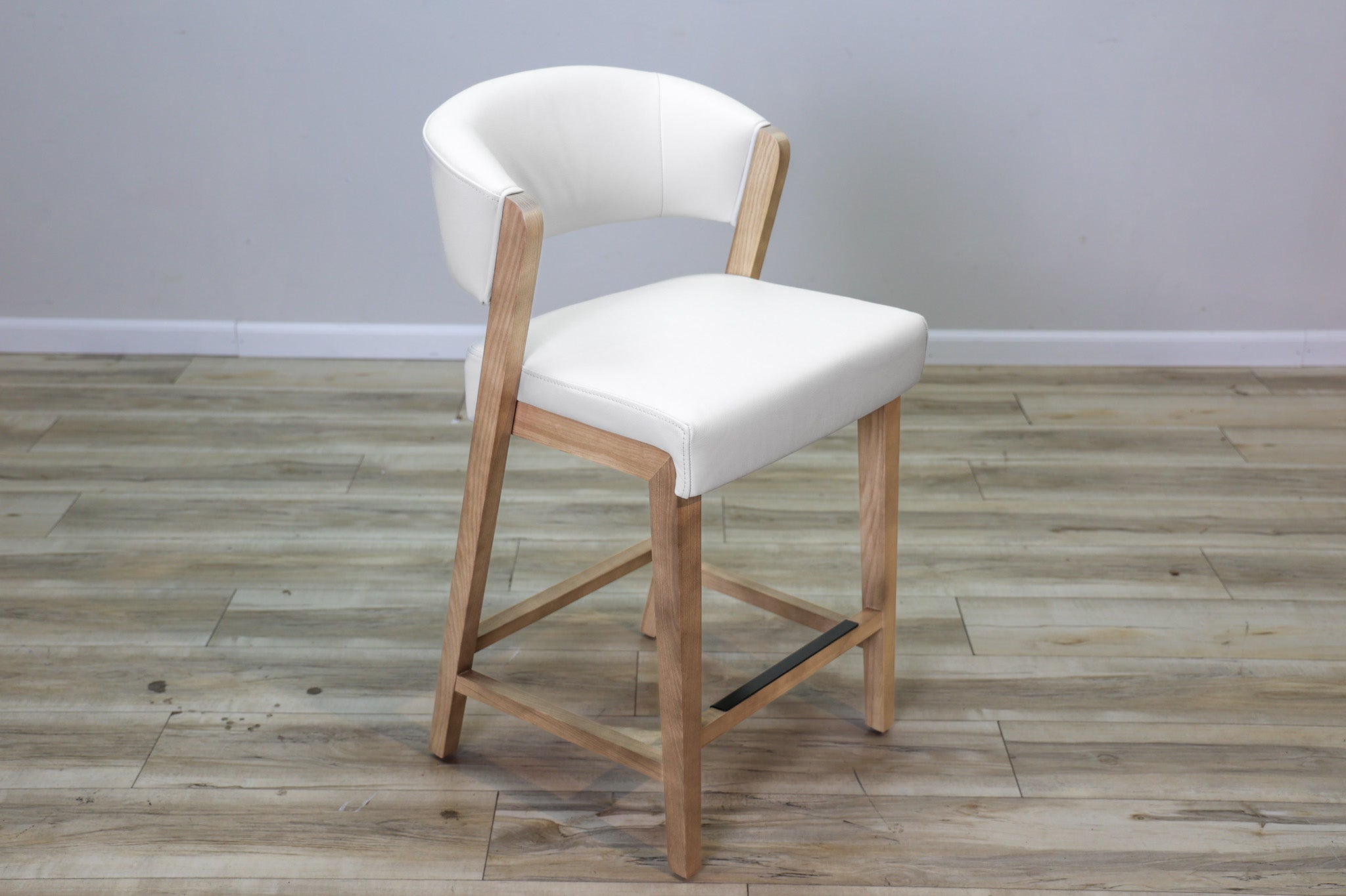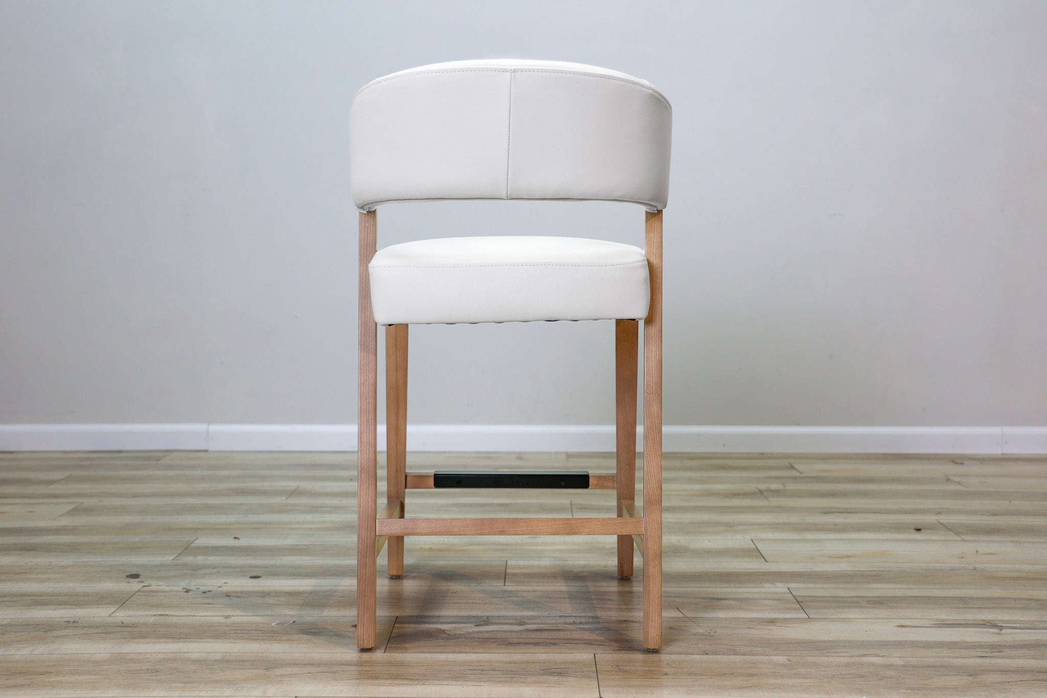 White top grain leather wrapped around high density foam and all supported by a solid wood frame - this stool is as durable as it is stylish. Designed to stand the test of time in both performance and style, this sleek and modern dining chair is the perfect addition to any dining or bar space!