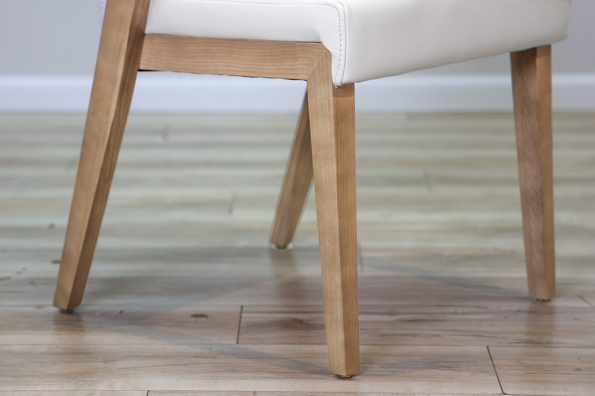 White top grain leather wrapped around high density foam and all supported by a solid wood frame - this chair is as durable as it is stylish. Designed to stand the test of time in both performance and style, this sleek and modern dining chair is the perfect addition to any dining space!