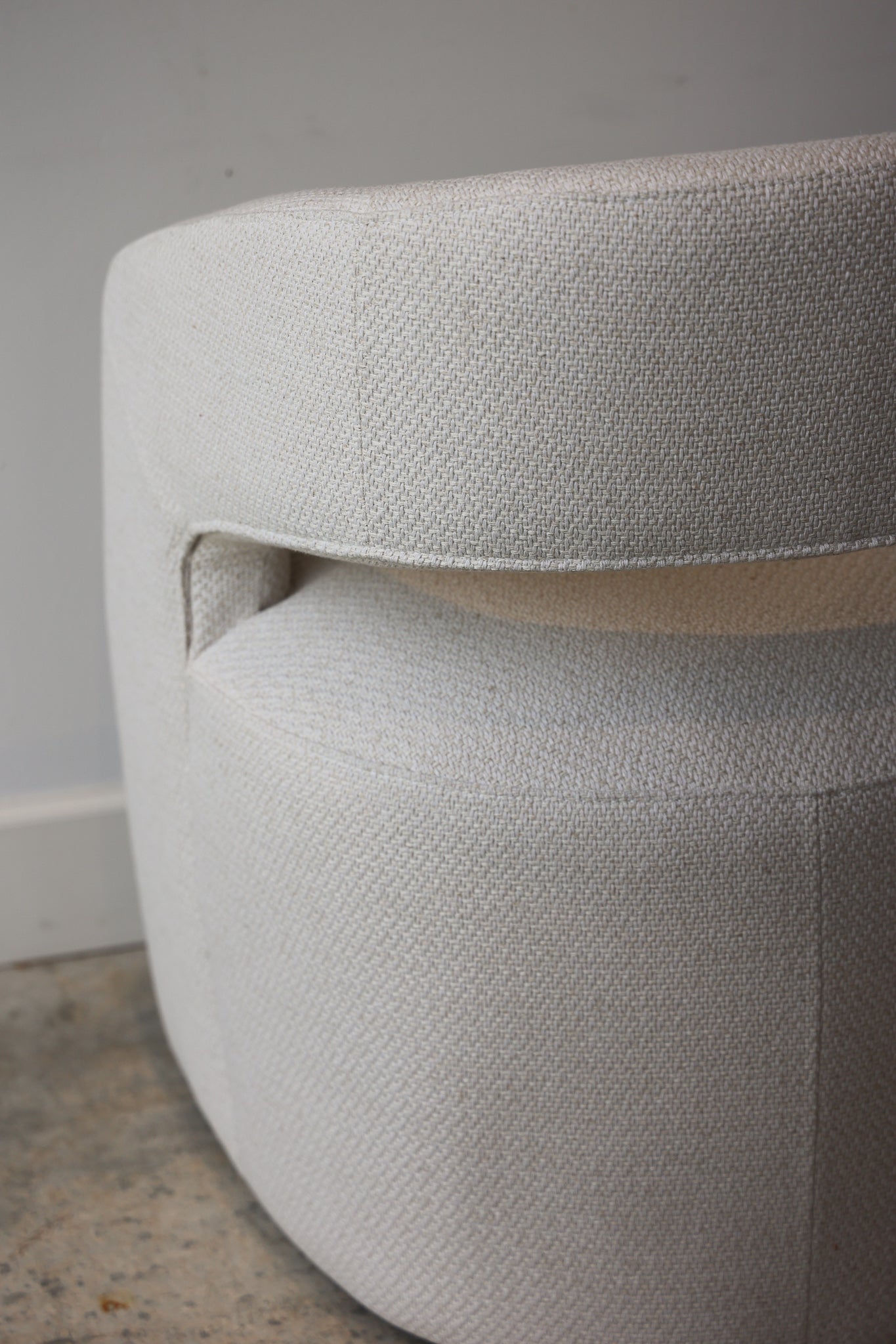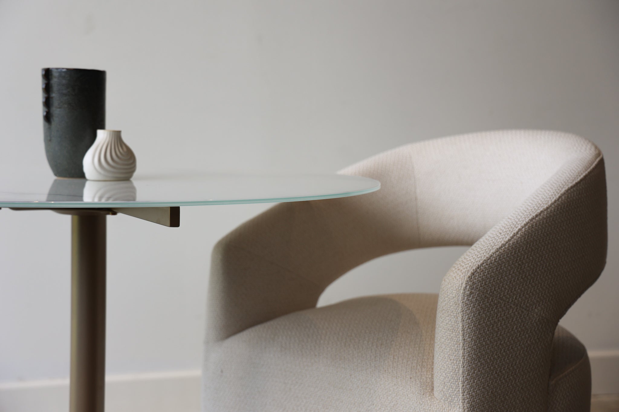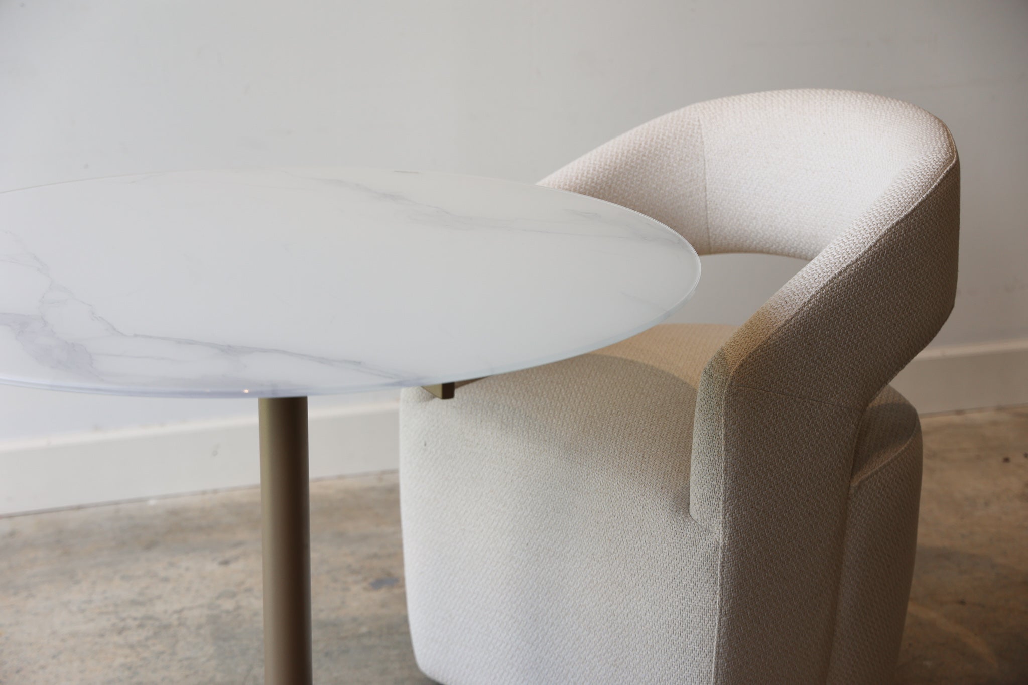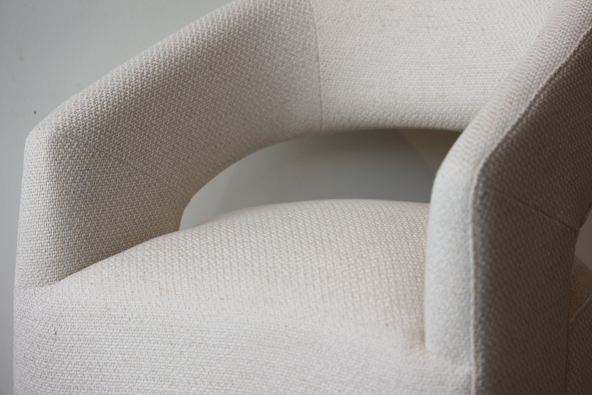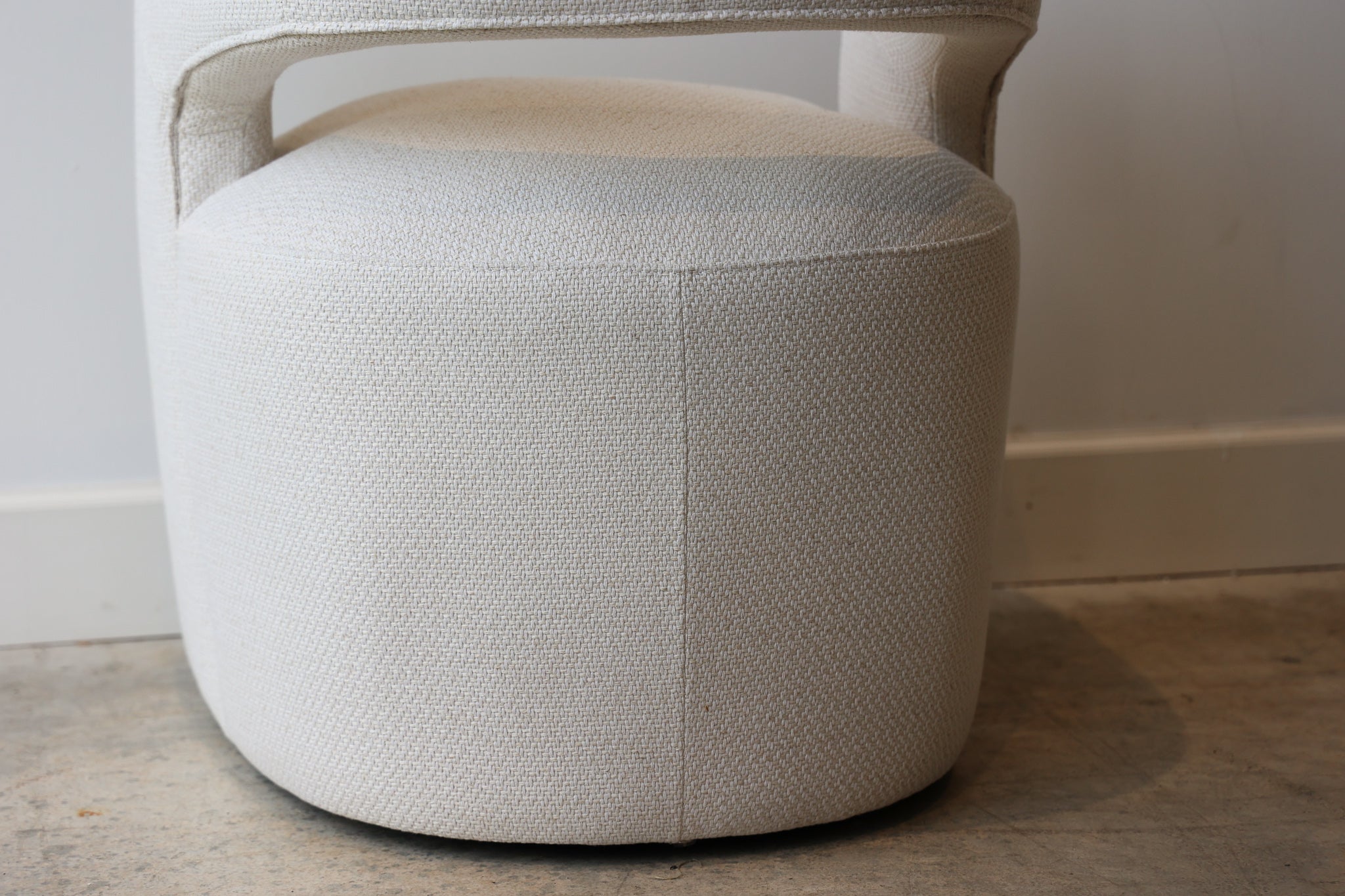 Our Fiona Rolling Dining Chair is the perfect addition to any dining room. Featuring a performance fabric upholstery and a warm white finish, this rolling dining chair adds both style and comfort to any space. With its contemporary look, it pairs well with existing décor.