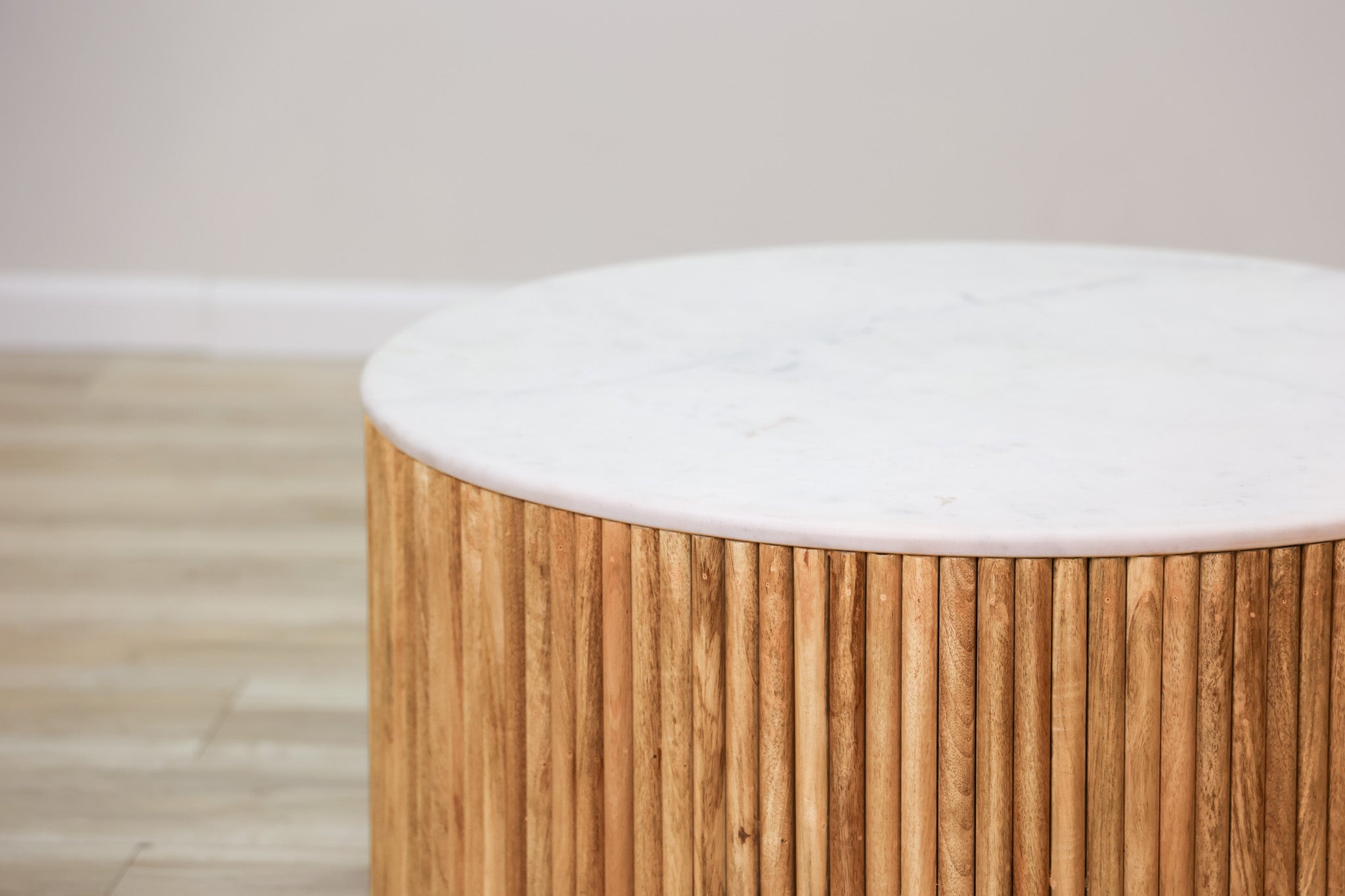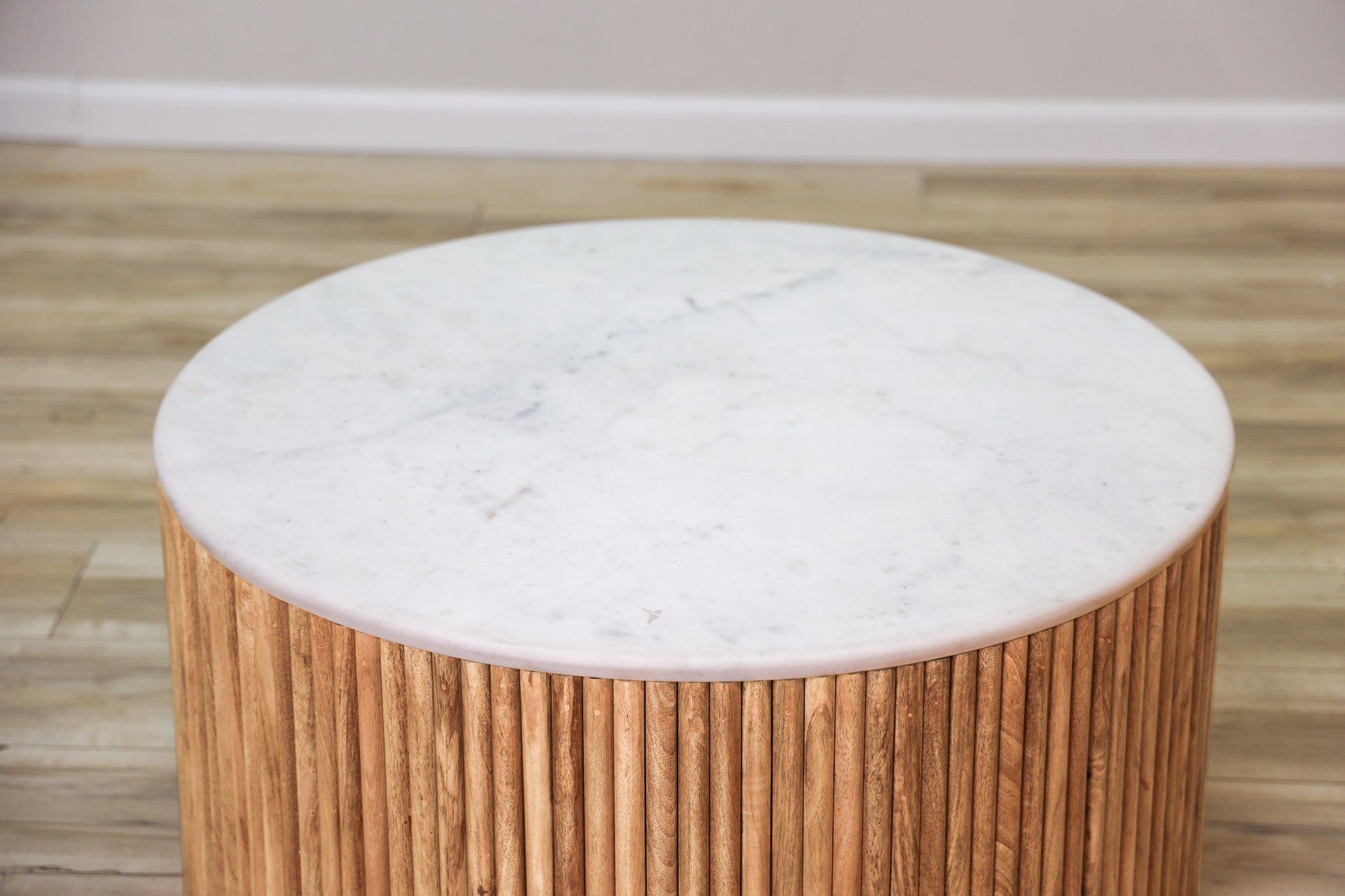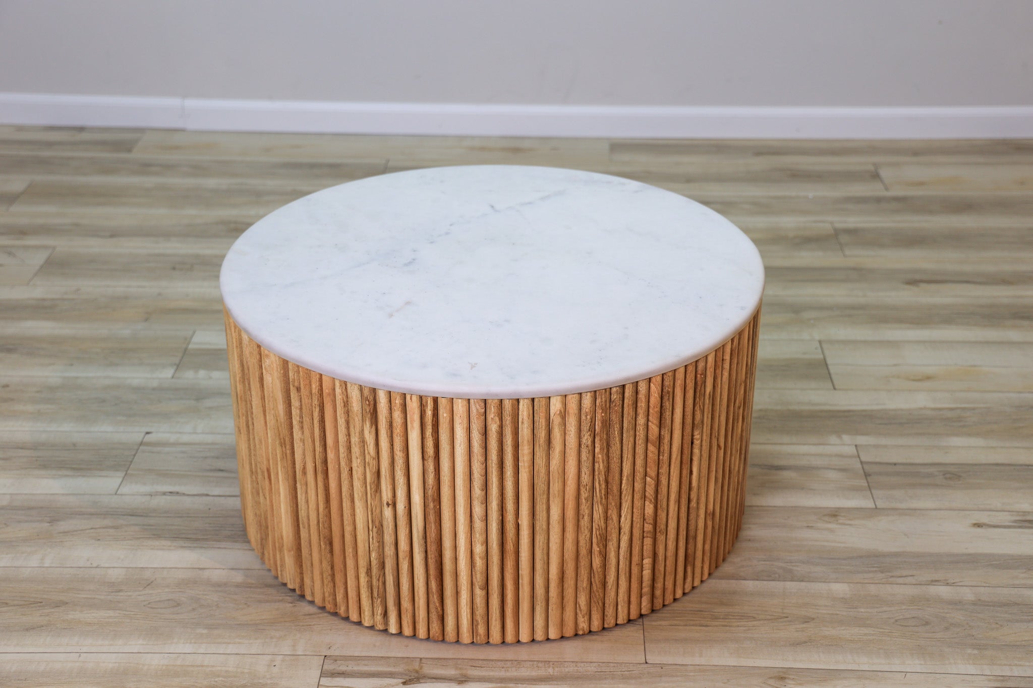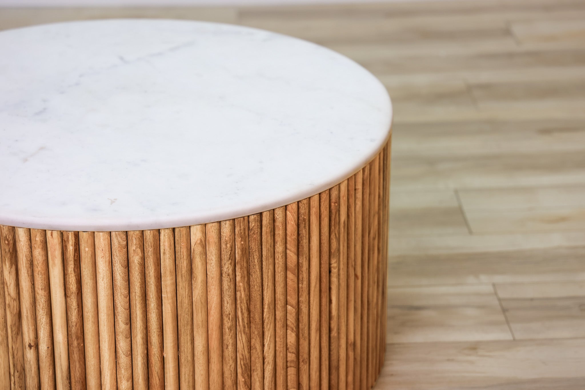 Banswara marble and mango wood combine in this simple yet elegant coffee table - The Fitzgerald Marble Coffee Table is the perfect addition for your living space! It's simple silhouette is complimented but the swirling texture of the marble and the reeded design of the wood - adding class and sophistication to a simple, modern, and timeless look.