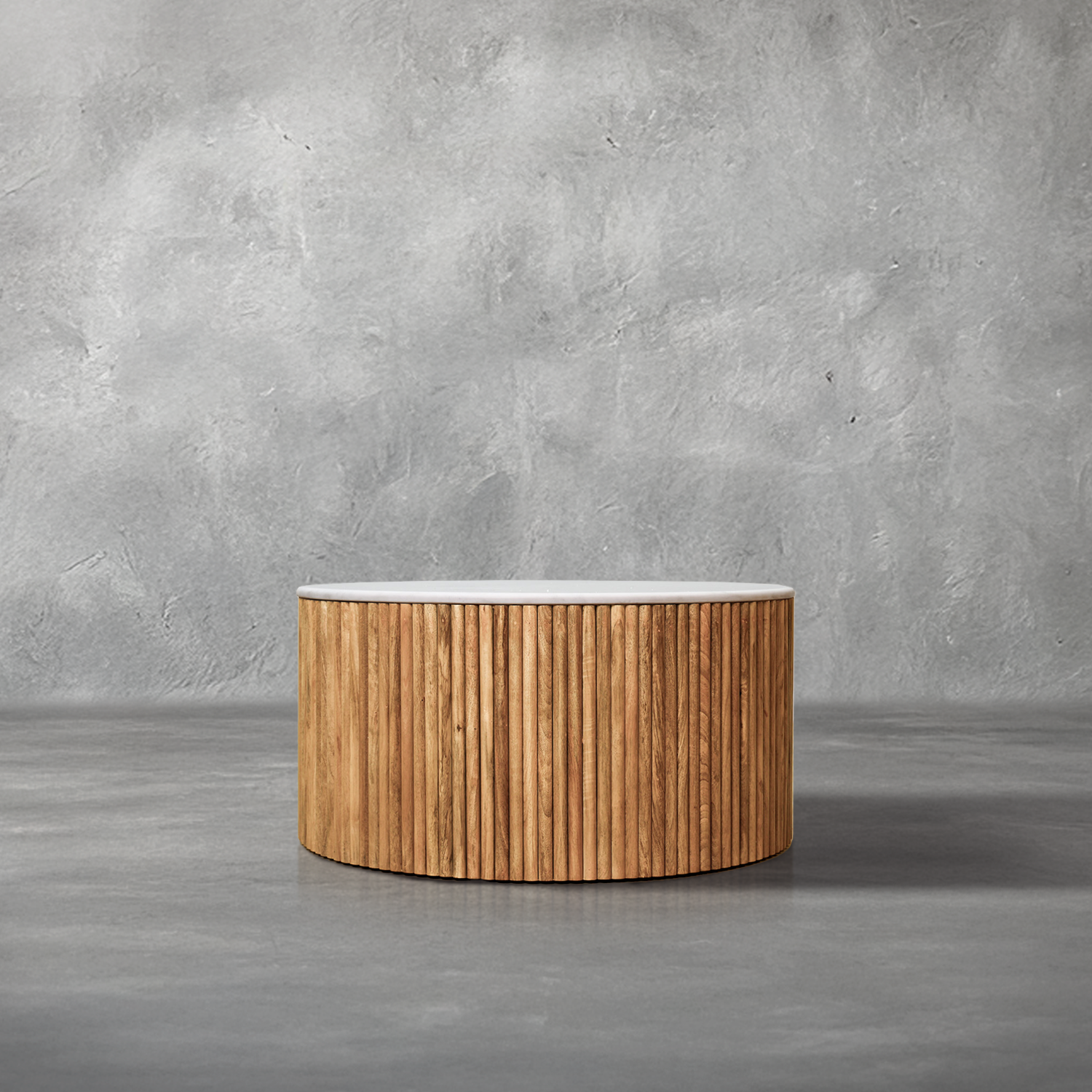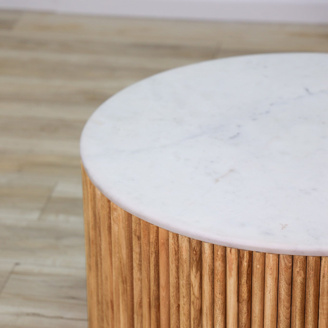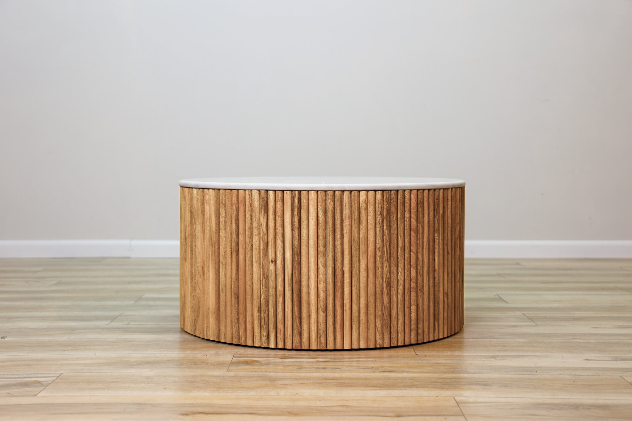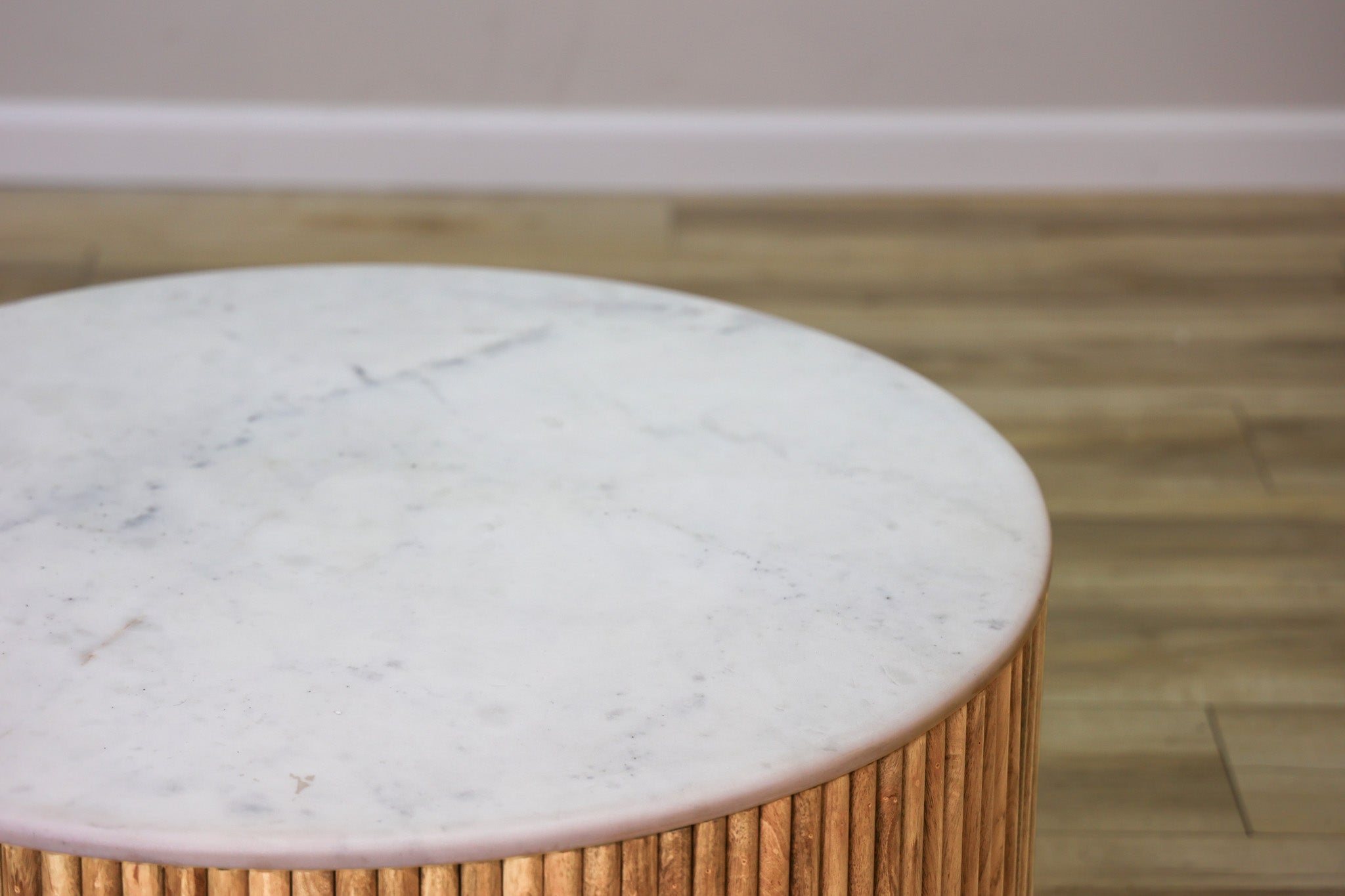 Banswara marble and mango wood combine in this simple yet elegant coffee table - The Fitzgerald Marble Coffee Table is the perfect addition for your living space! It's simple silhouette is complimented but the swirling texture of the marble and the reeded design of the wood - adding class and sophistication to a simple, modern, and timeless look.