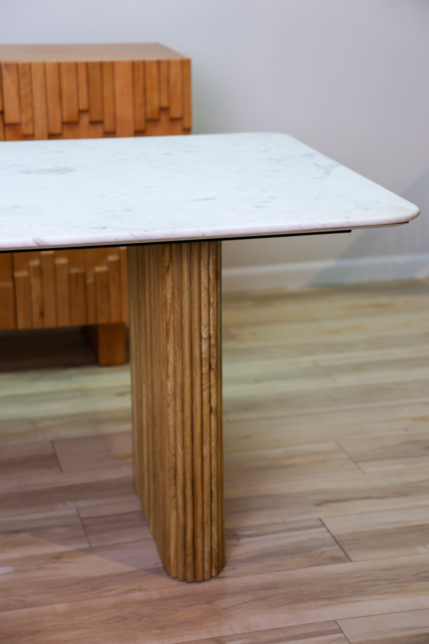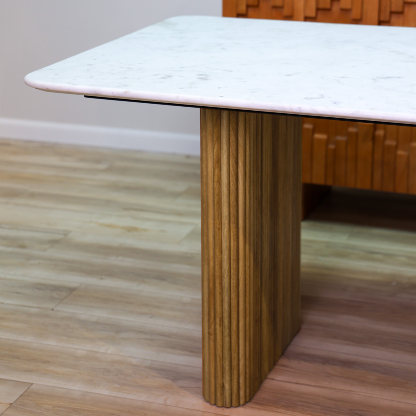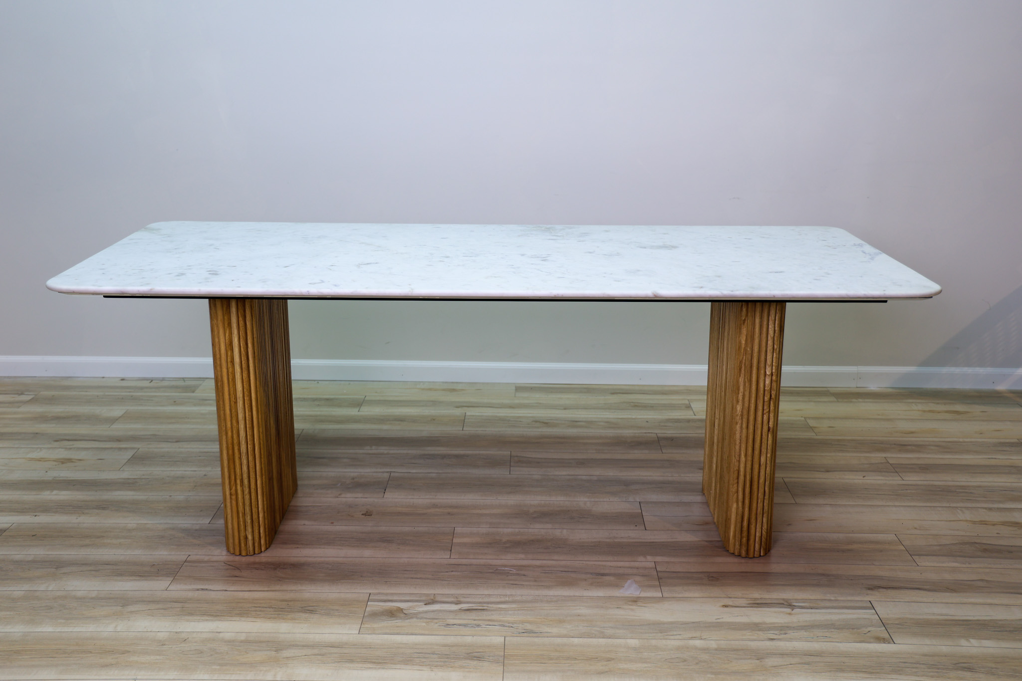 Introduce an elegant touch to your dining experience with the Fitzgerald Rectangular Dining Table. Its luxurious marble top exudes sophistication while the reeded wood legs provide sturdy support. Enjoy a timeless and stylish addition to your dining room with this expertly crafted table.