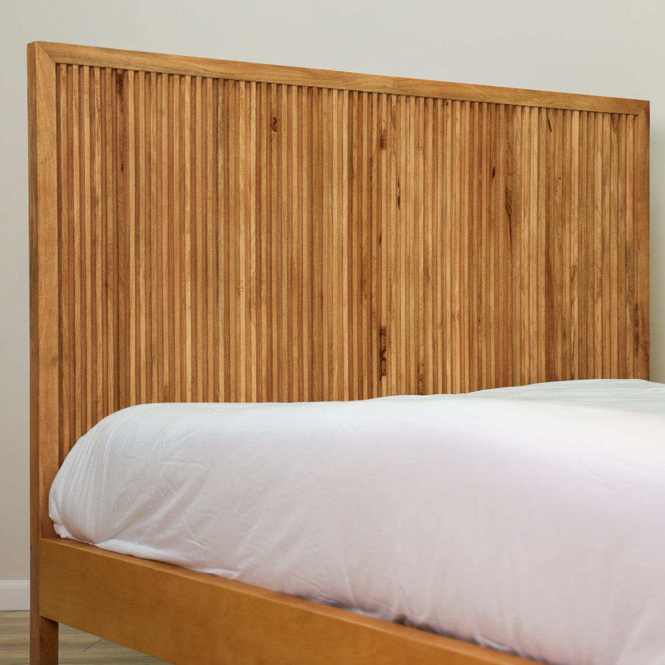 We've heard you ask for more bed frames, and we listened! Originally designed by Dwell & Company to compliment the Fluted Dresser, Fluted Chest, and Fluted Nightstand, this solid wood frame is made of sustainable mango and features a fluted design on the headboard, adding a timeless design to a simple silhouette! Available in King and Queen Sizes!