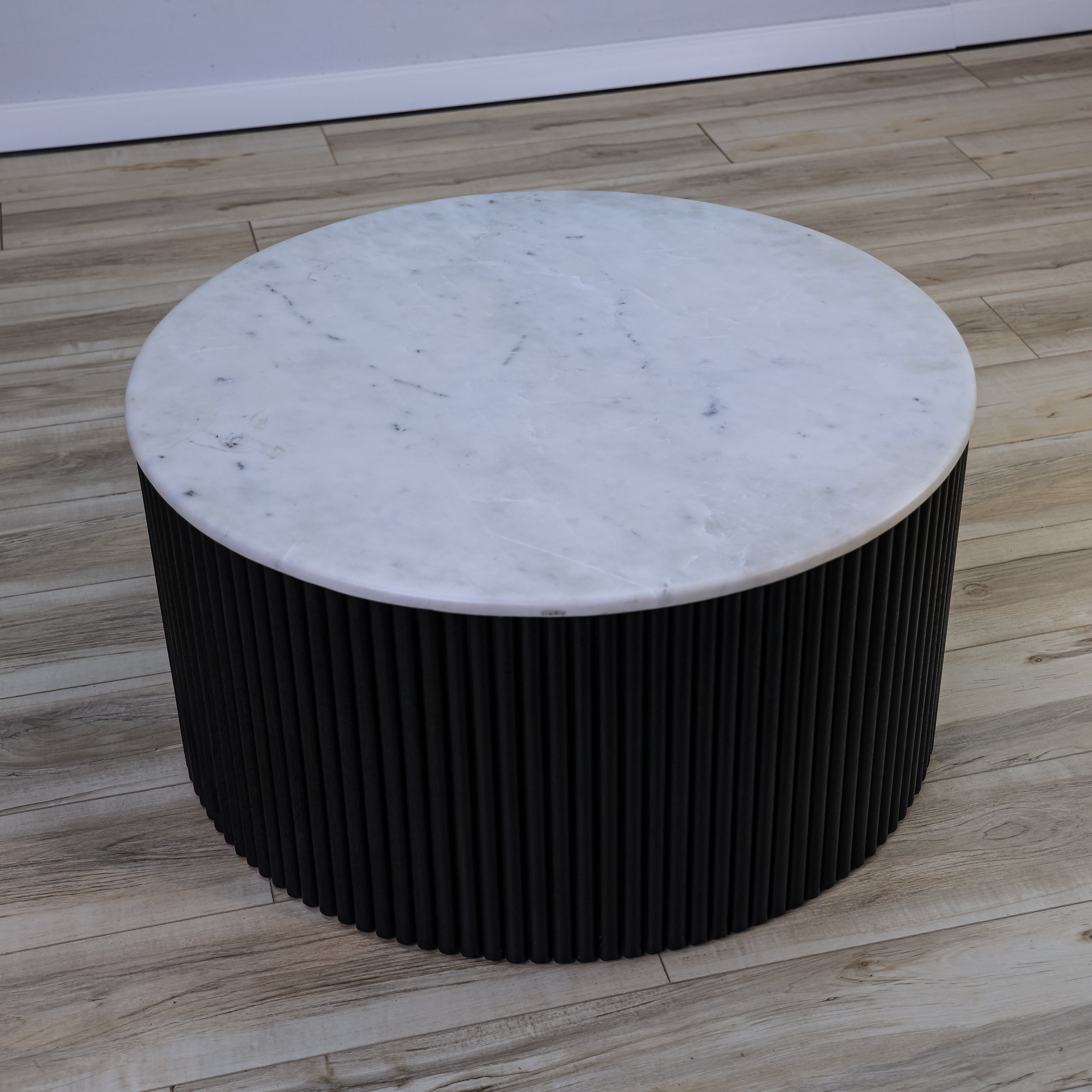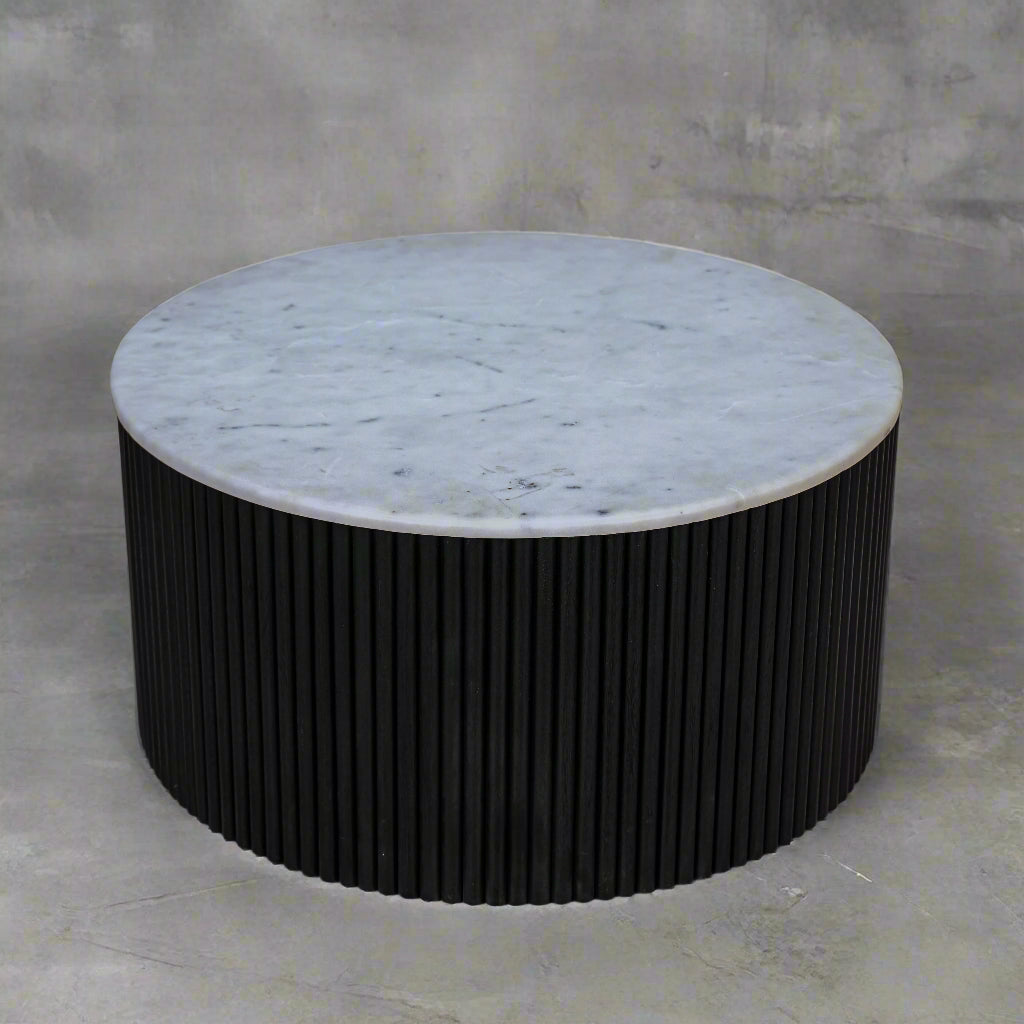 Elevate your living space with the Gatsby Coffee Table. Crafted with a sleek marble top and elegant black fluted base, this modern piece adds sophistication to any room. Enjoy the perfect blend of style and functionality with this expertly designed coffee table.