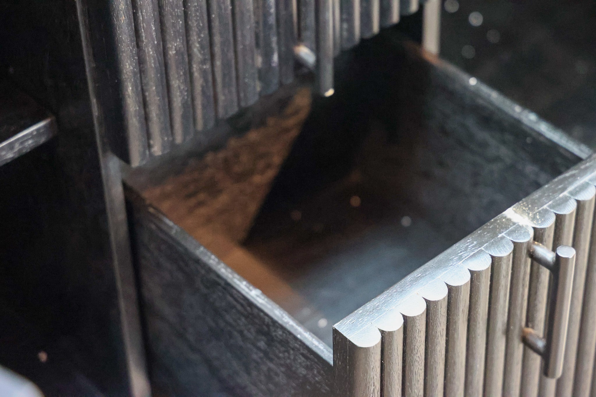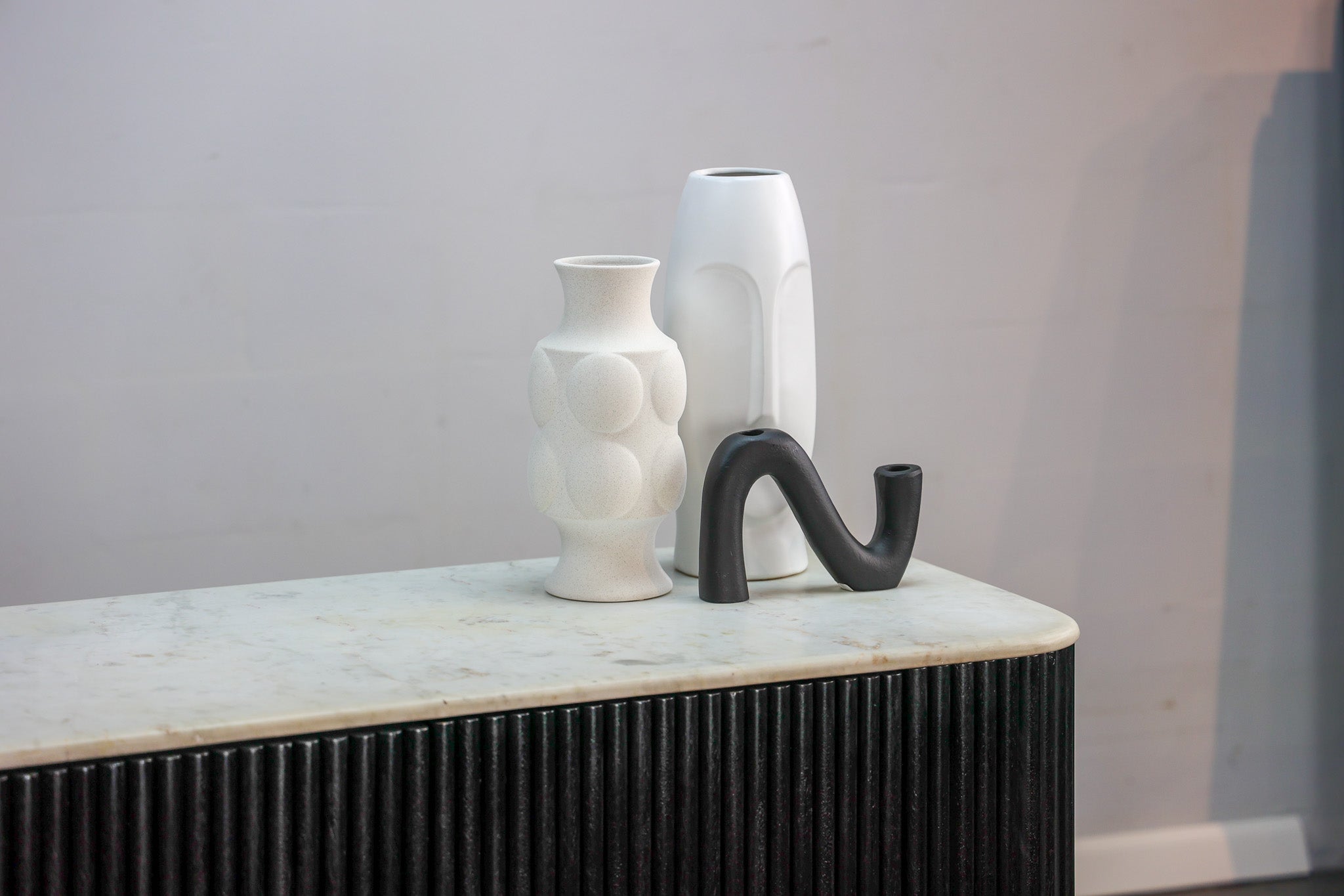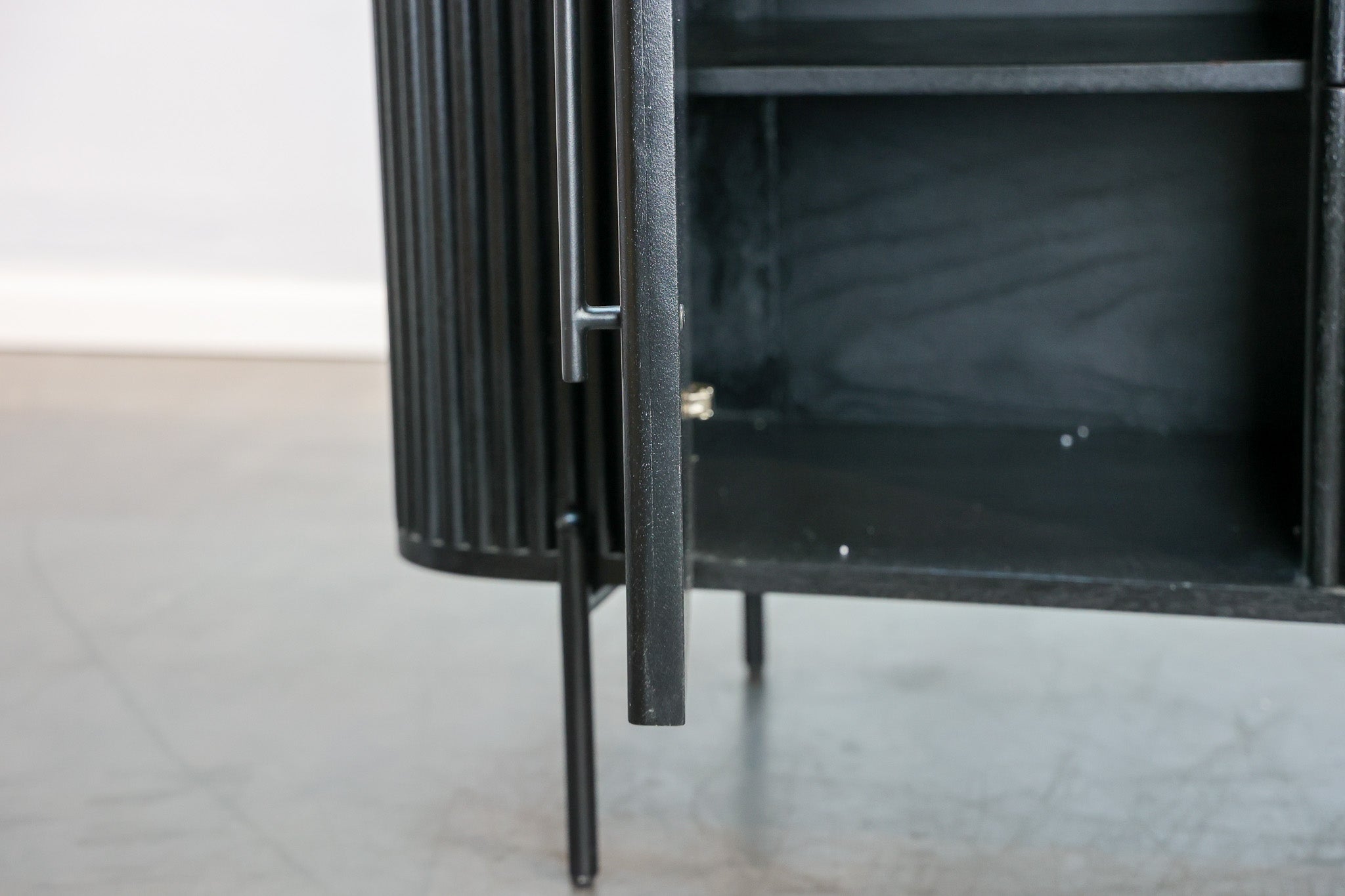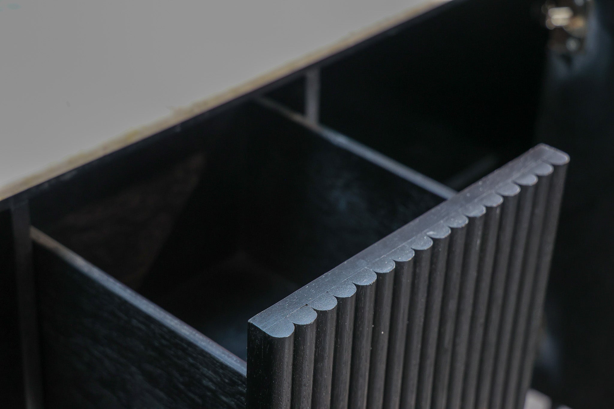 The Gatsby Credenza is a high-end piece made from black mango wood, featuring soft close drawers and doors for a sleek and polished look. The marble top adds an elegant touch to this original Dwell design. Enjoy the sophisticated style and functionality of the Gatsby Credenza in your home.