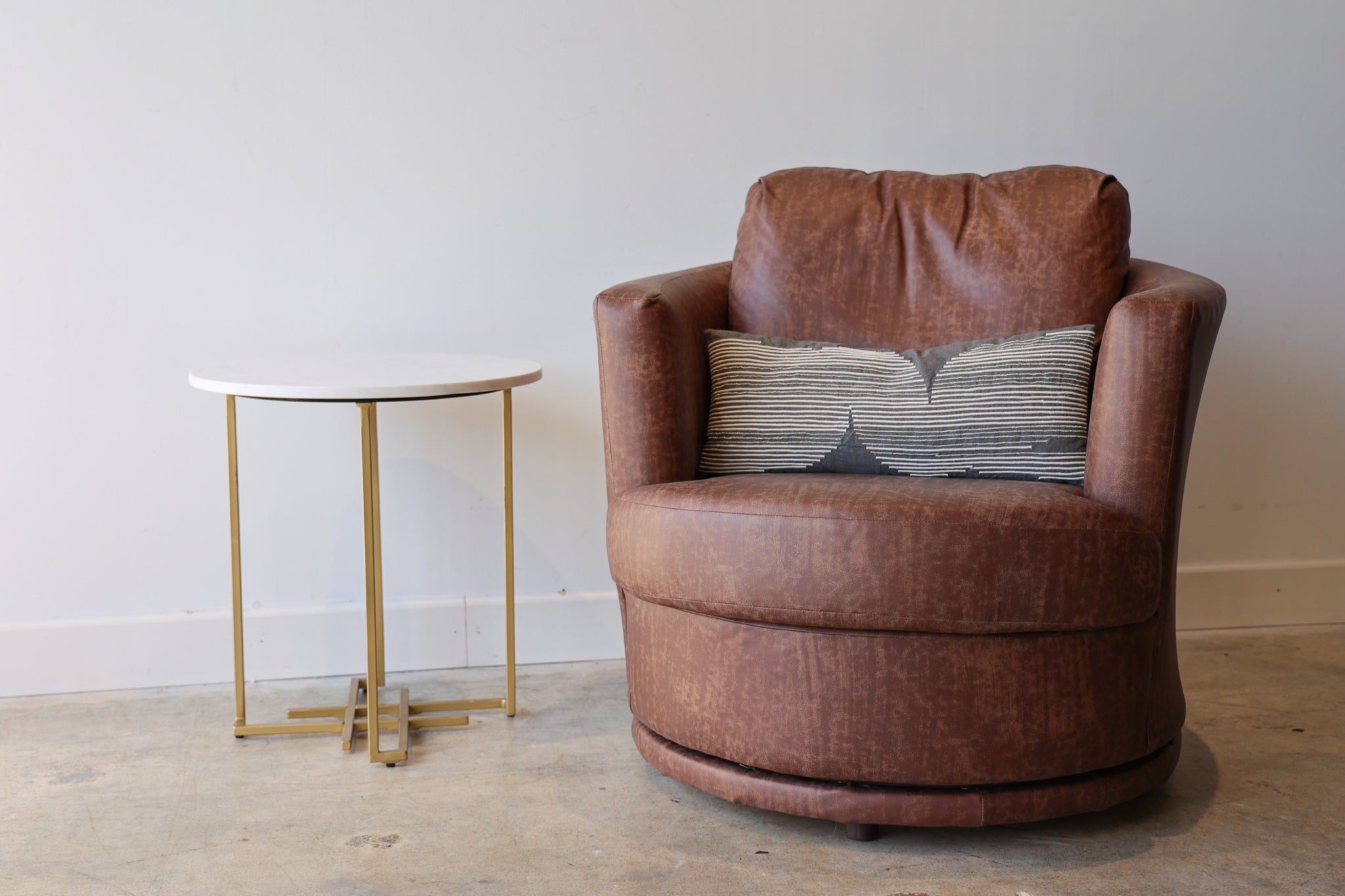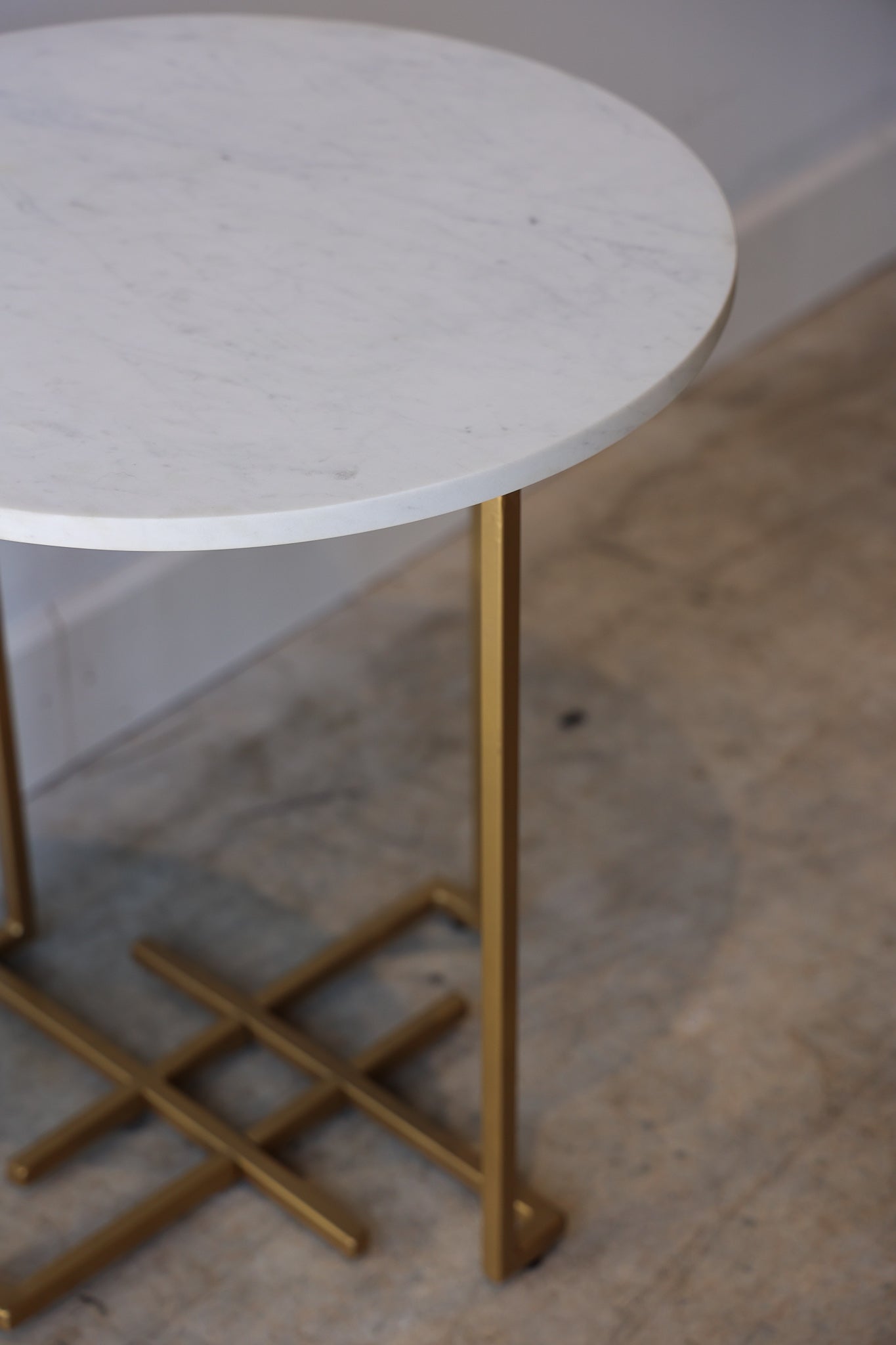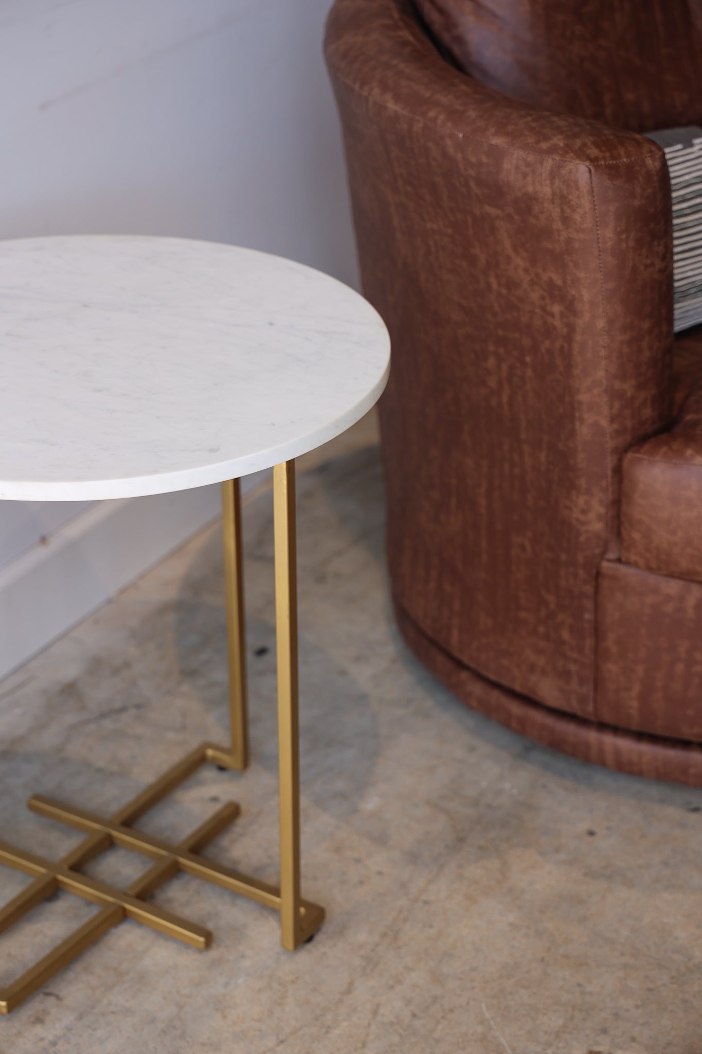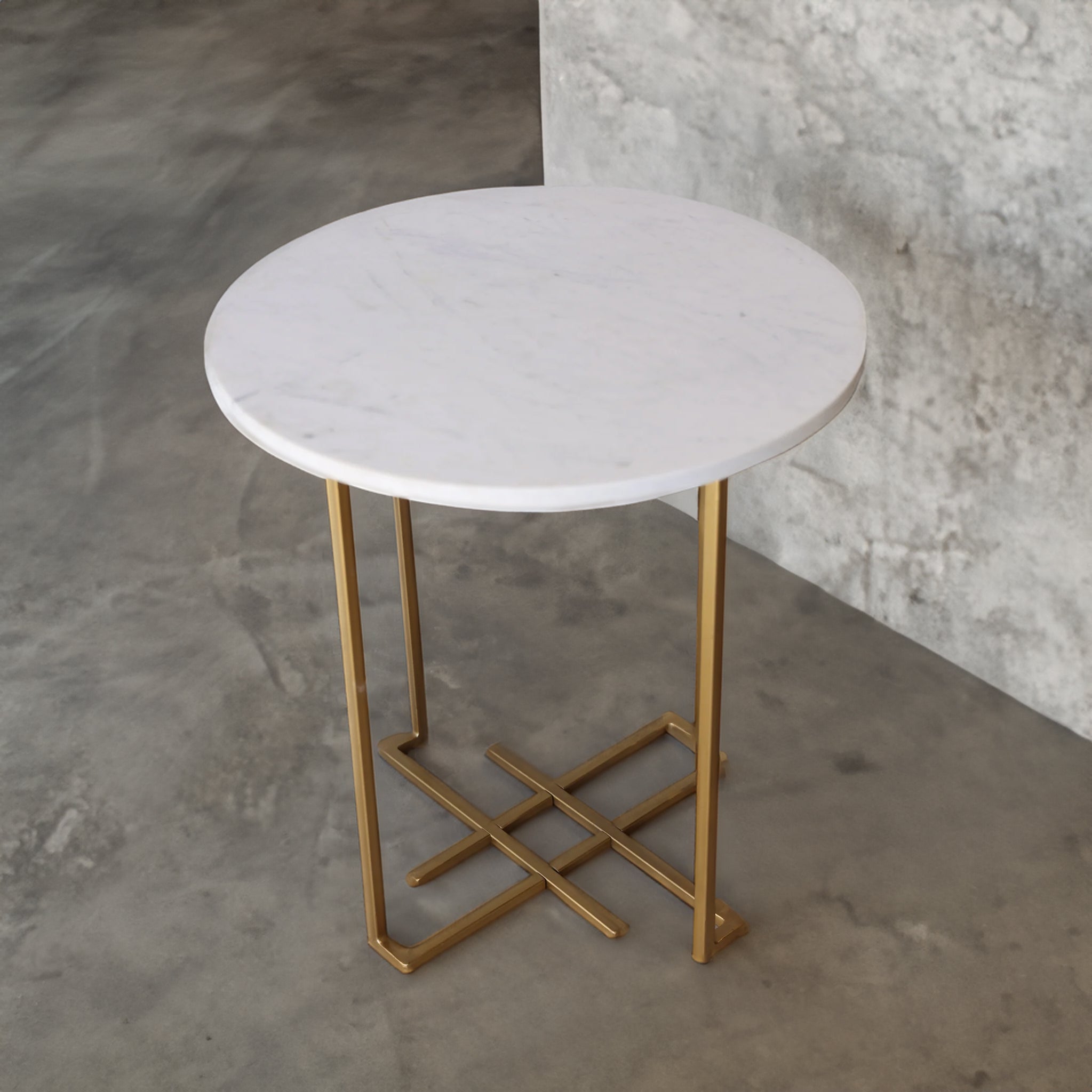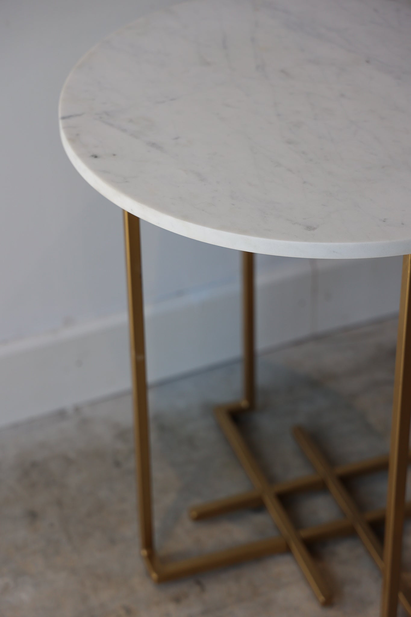 Crafted by industry experts, the Glenda Side Table boasts an elegant and sleek design. Its organic marble top is complemented by sturdy gold legs, adding a touch of luxury to any room. With its high-quality materials, this side table is a durable and stylish addition to any home.