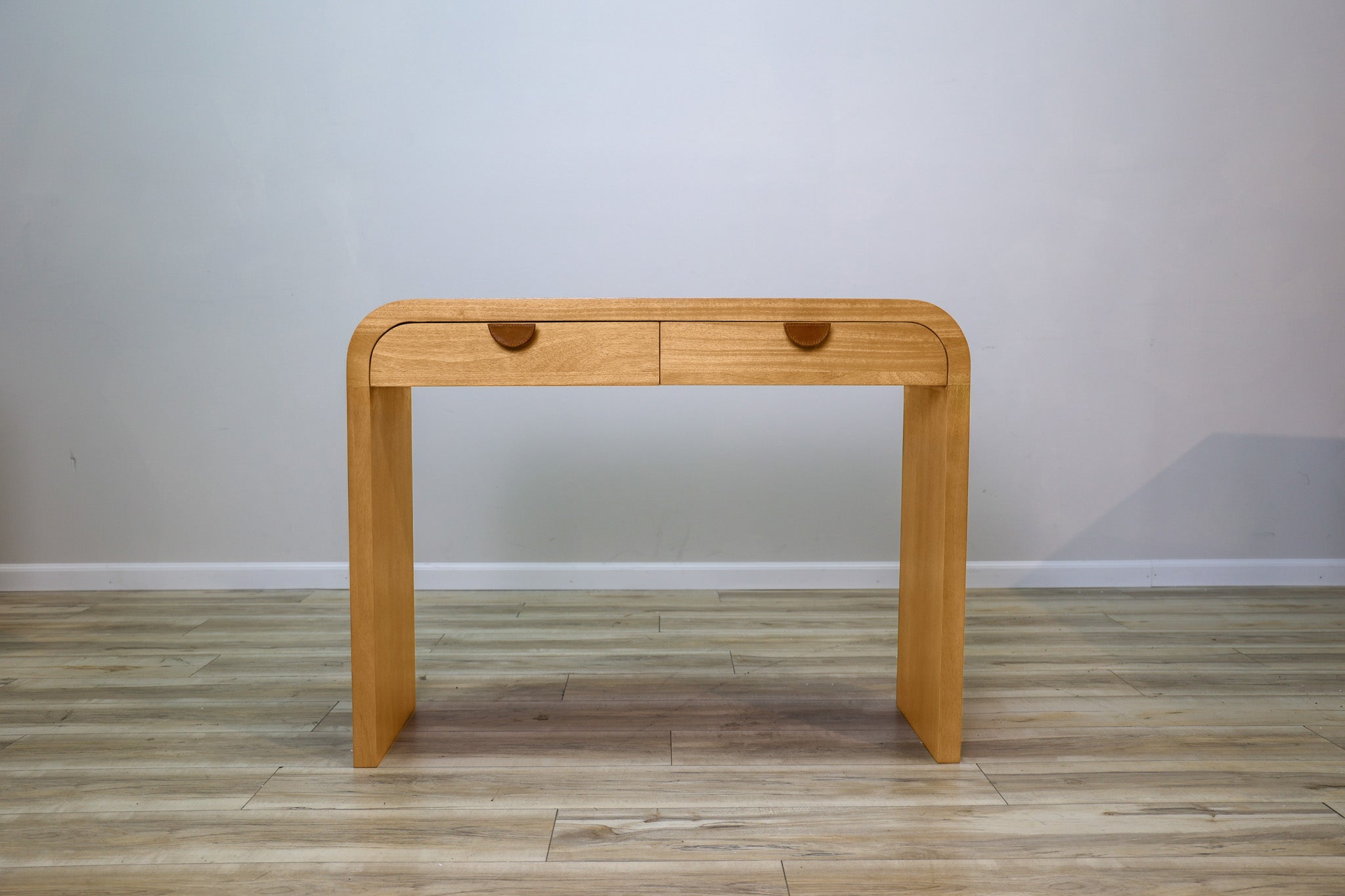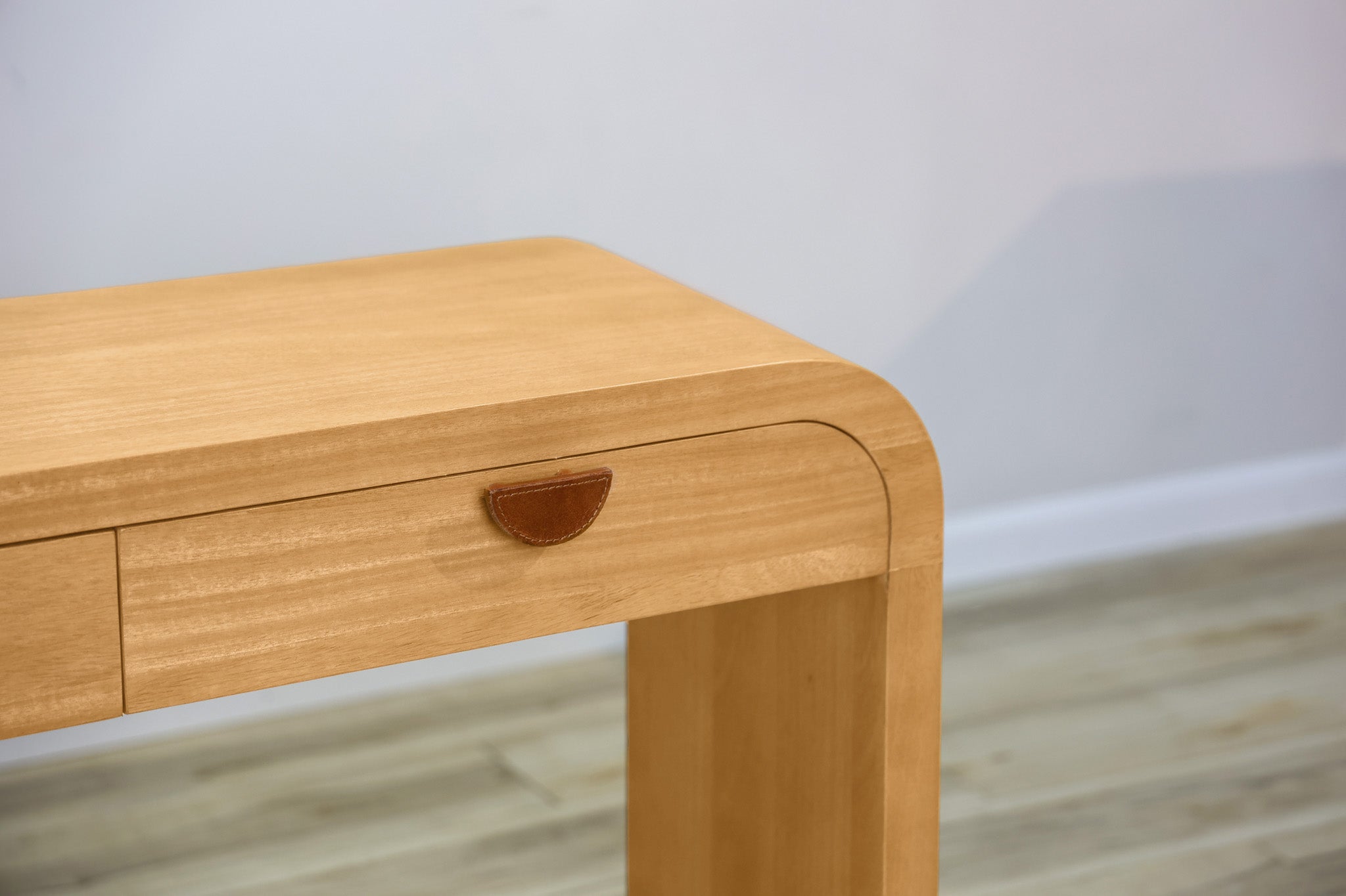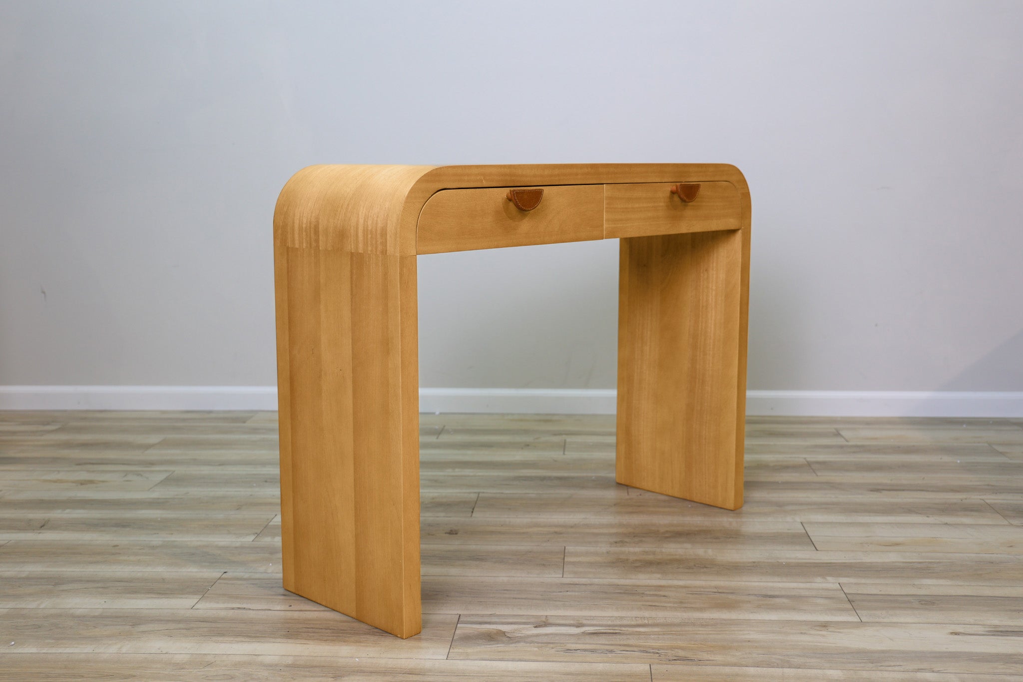 Here at Dwell, we saw the need for a smaller, versatile desk to accommodate a larger variety of spaces - so we designed the Harmony to meet that need! This Dwell & Company original is crafted with solid wood and features a unique leather wrapped handle - adding an organic touch to the design while softening the feel of the handles, making them more comfortable to the touch. It features two drawers providing ample storage space for your pens and papers. Liven up your work space with the Harmony Desk today!