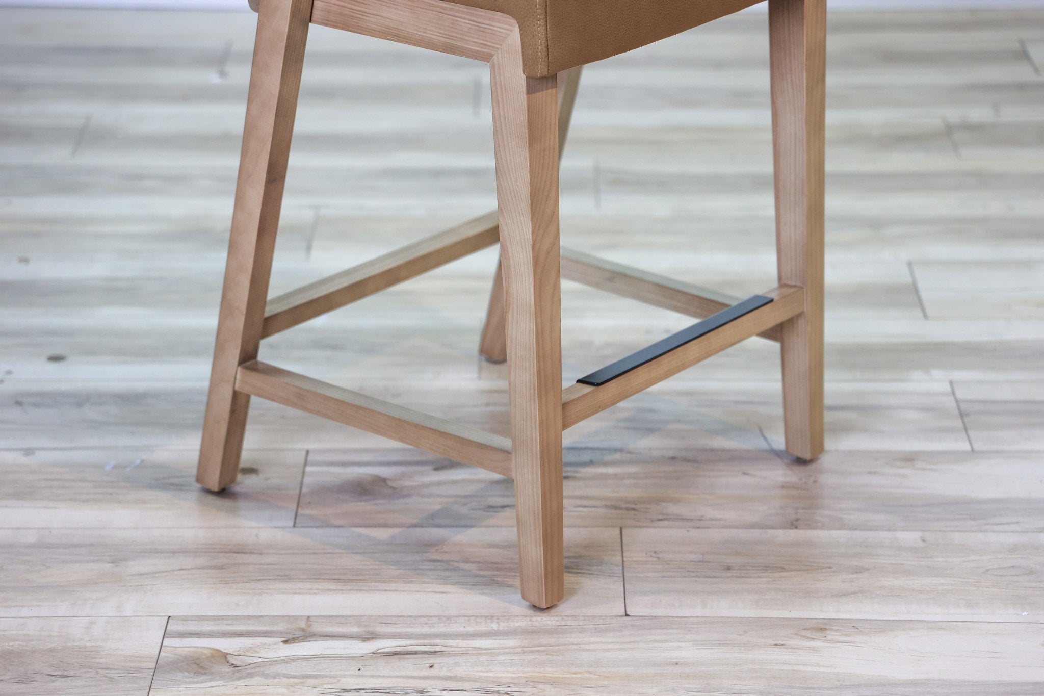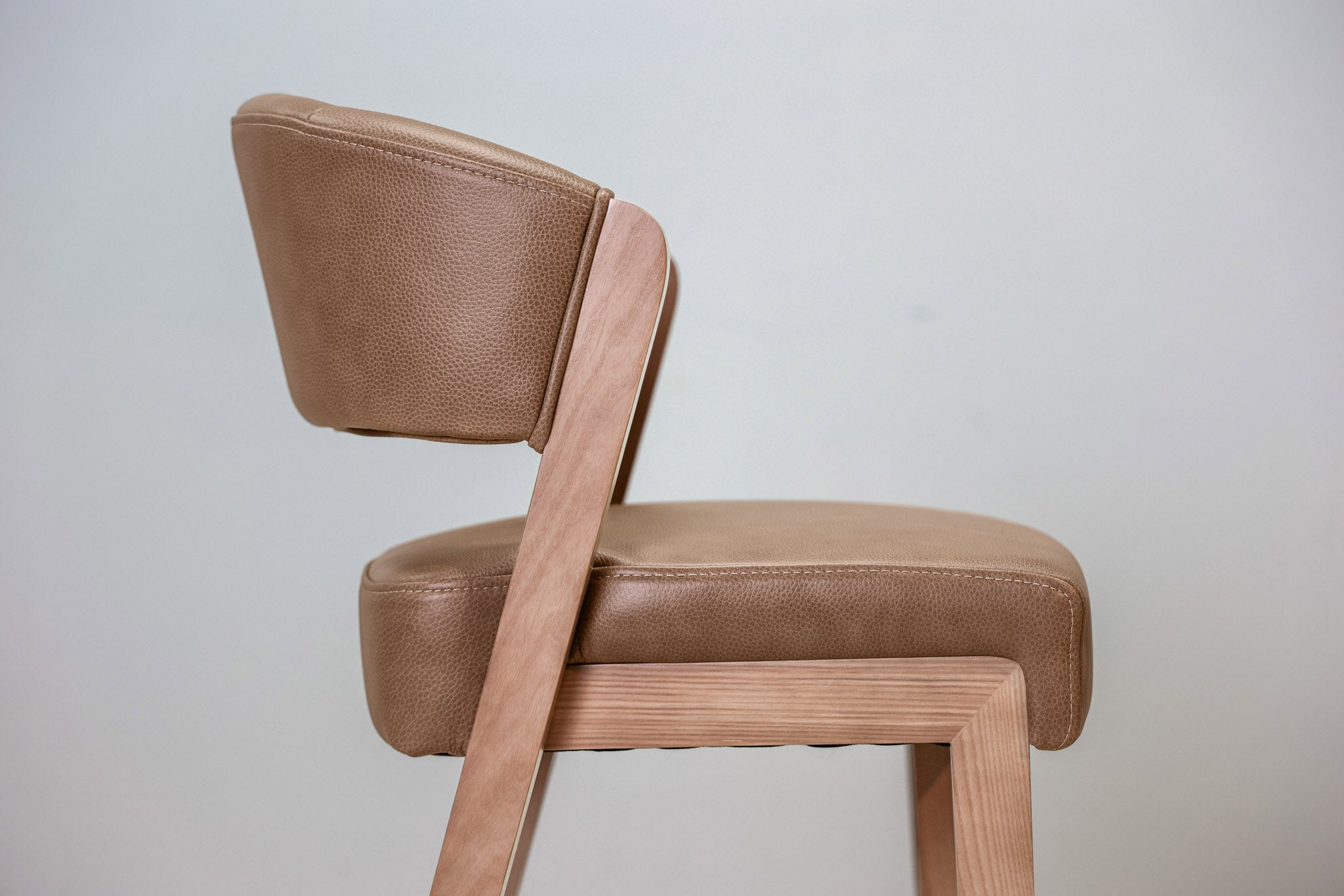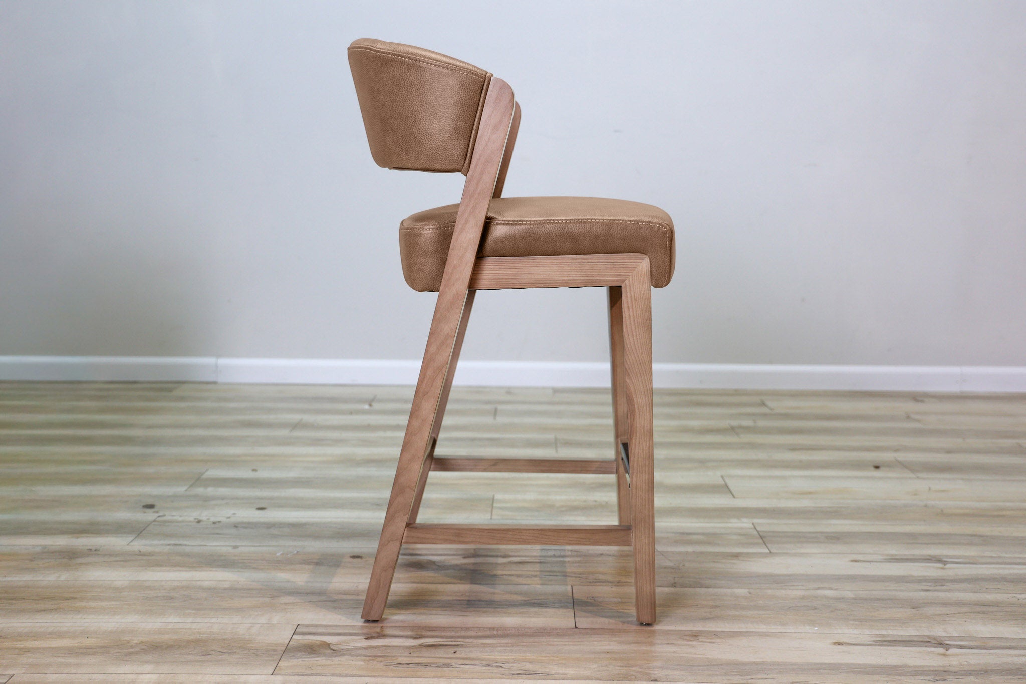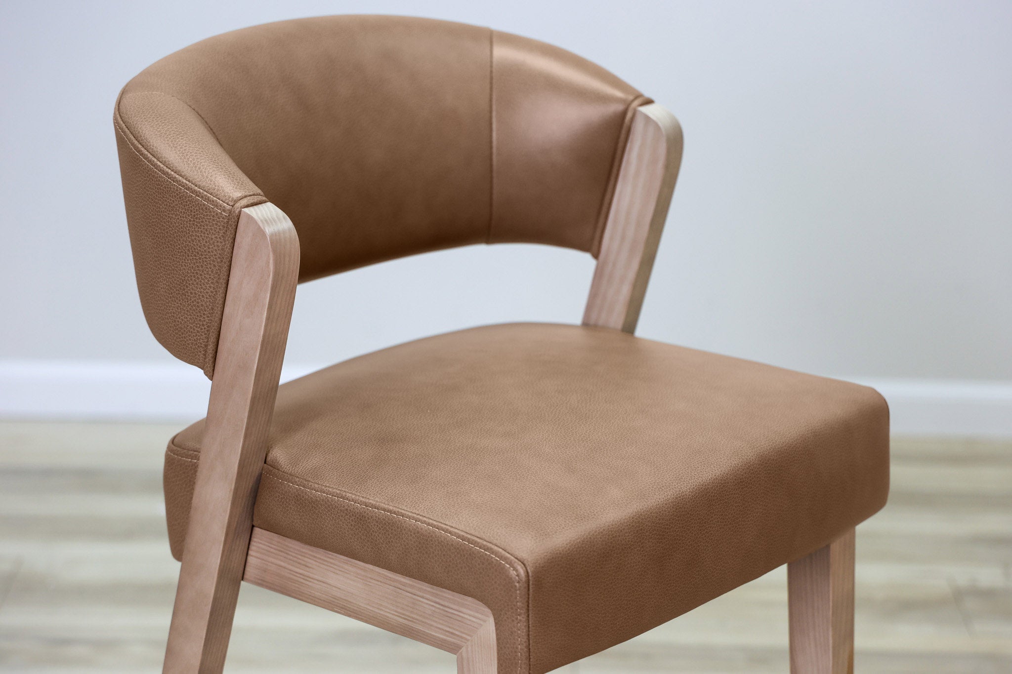 Warm Brown top grain leather wrapped around high density foam and all supported by a solid wood frame - this stool is as durable as it is stylish. Designed to stand the test of time in both performance and style, this sleek and modern dining chair is the perfect addition to any dining or bar space!
