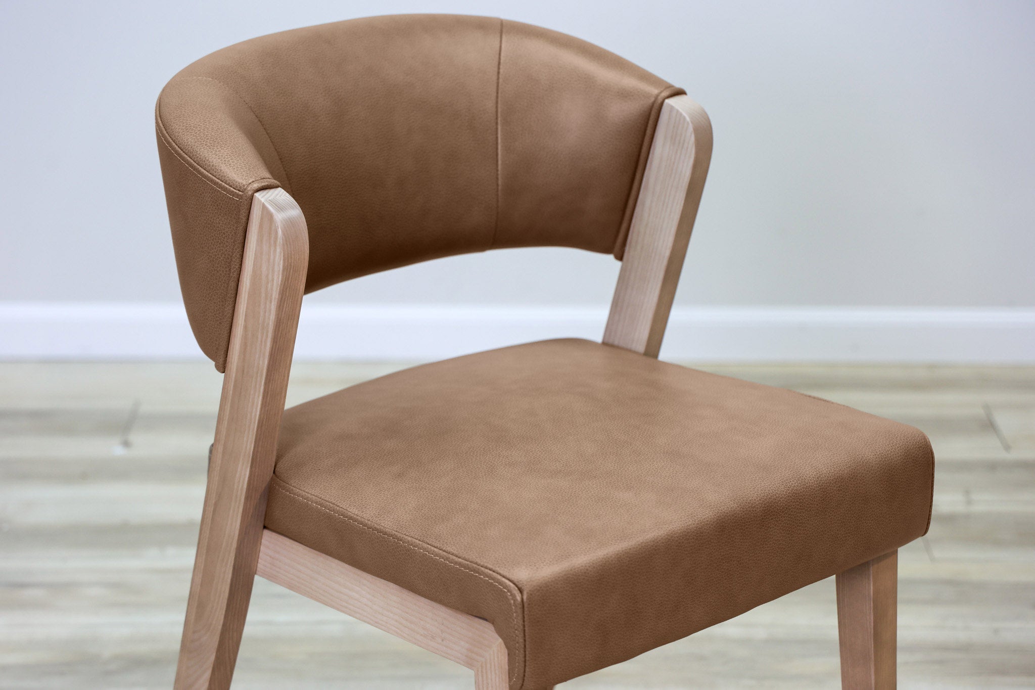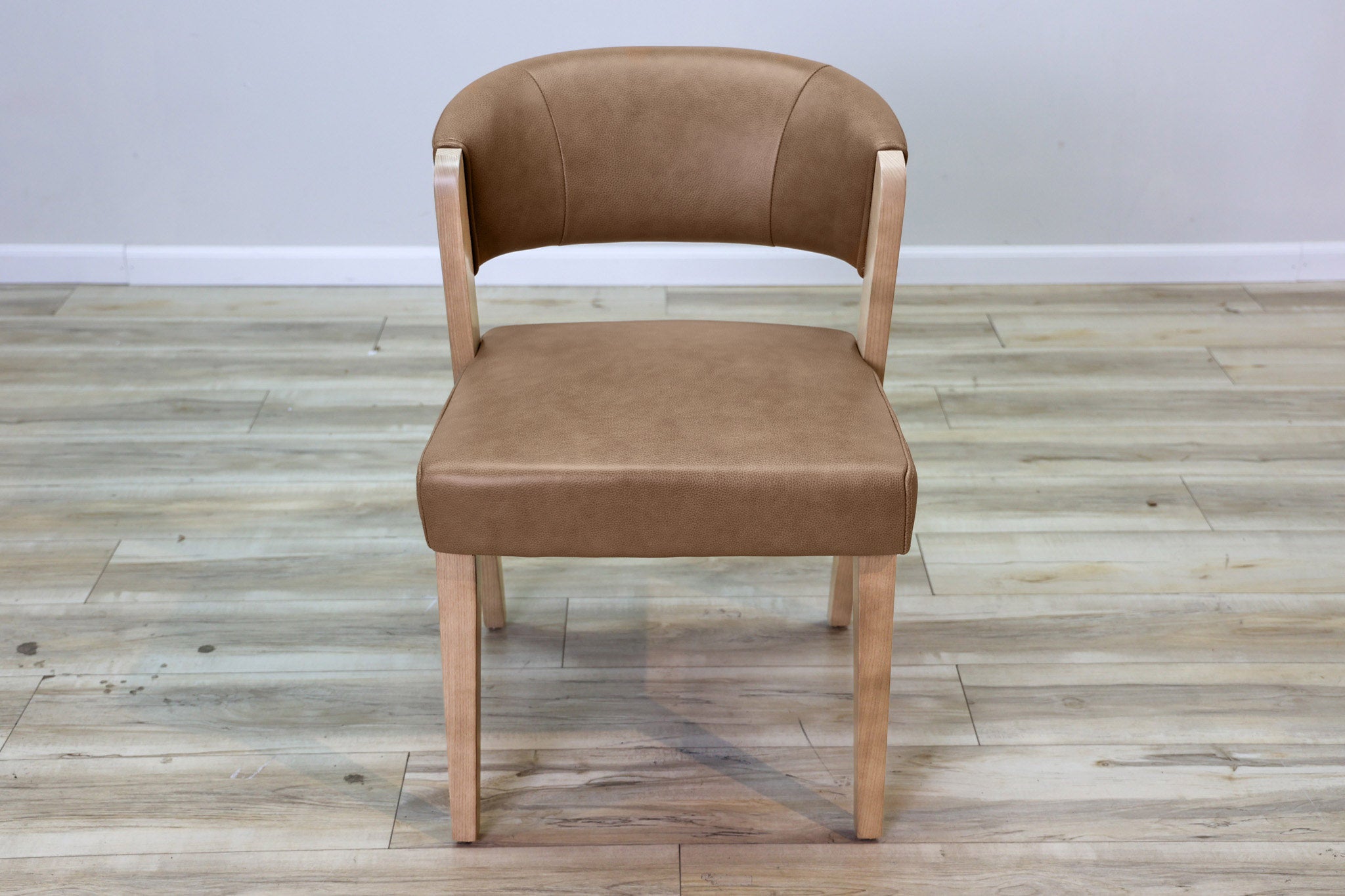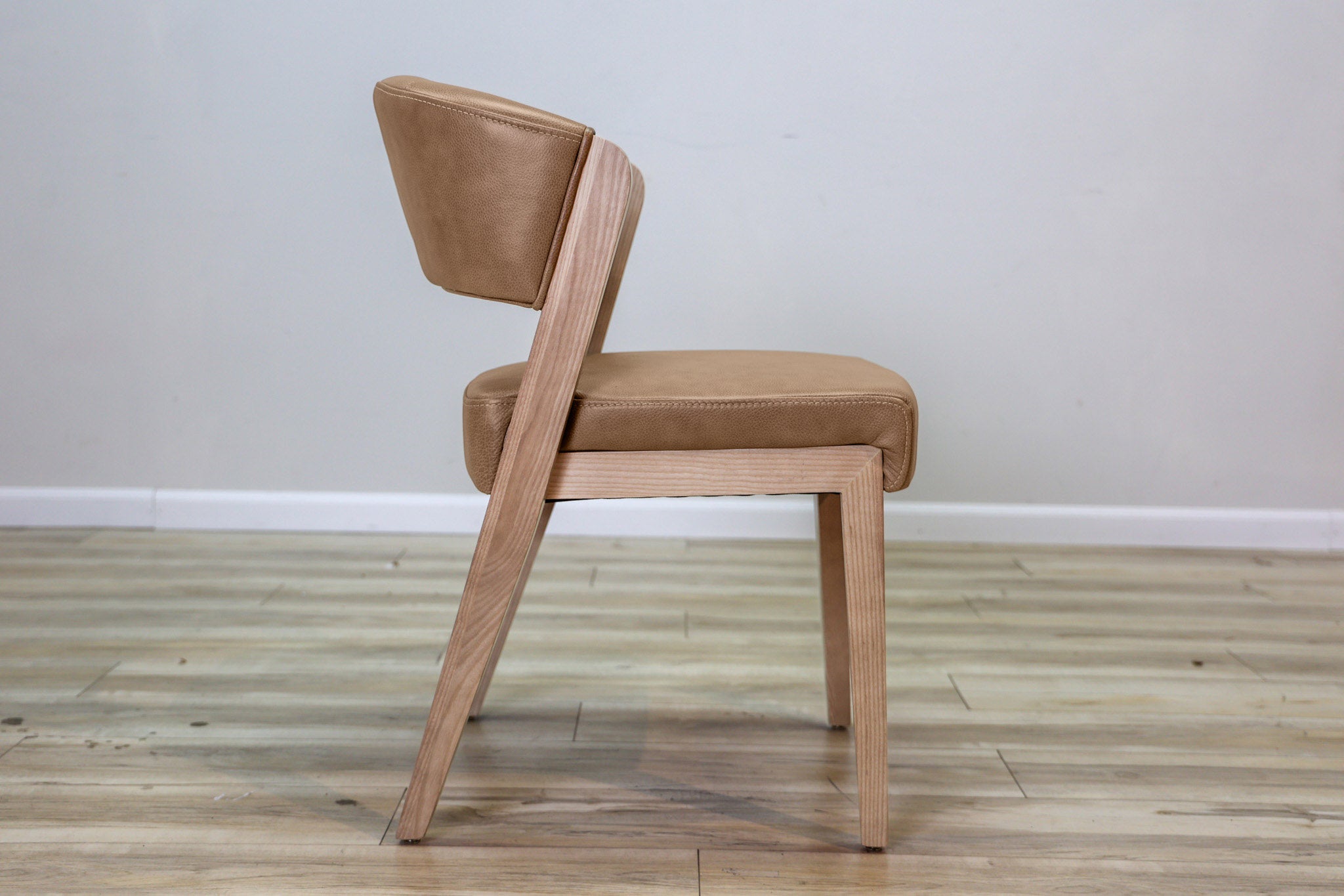 Warm brown top grain leather wrapped around high density foam and all supported by a solid wood frame - this chair is as durable as it is stylish. Designed to stand the test of time in both performance and style, this sleek and modern dining chair is the perfect addition to any dining space!