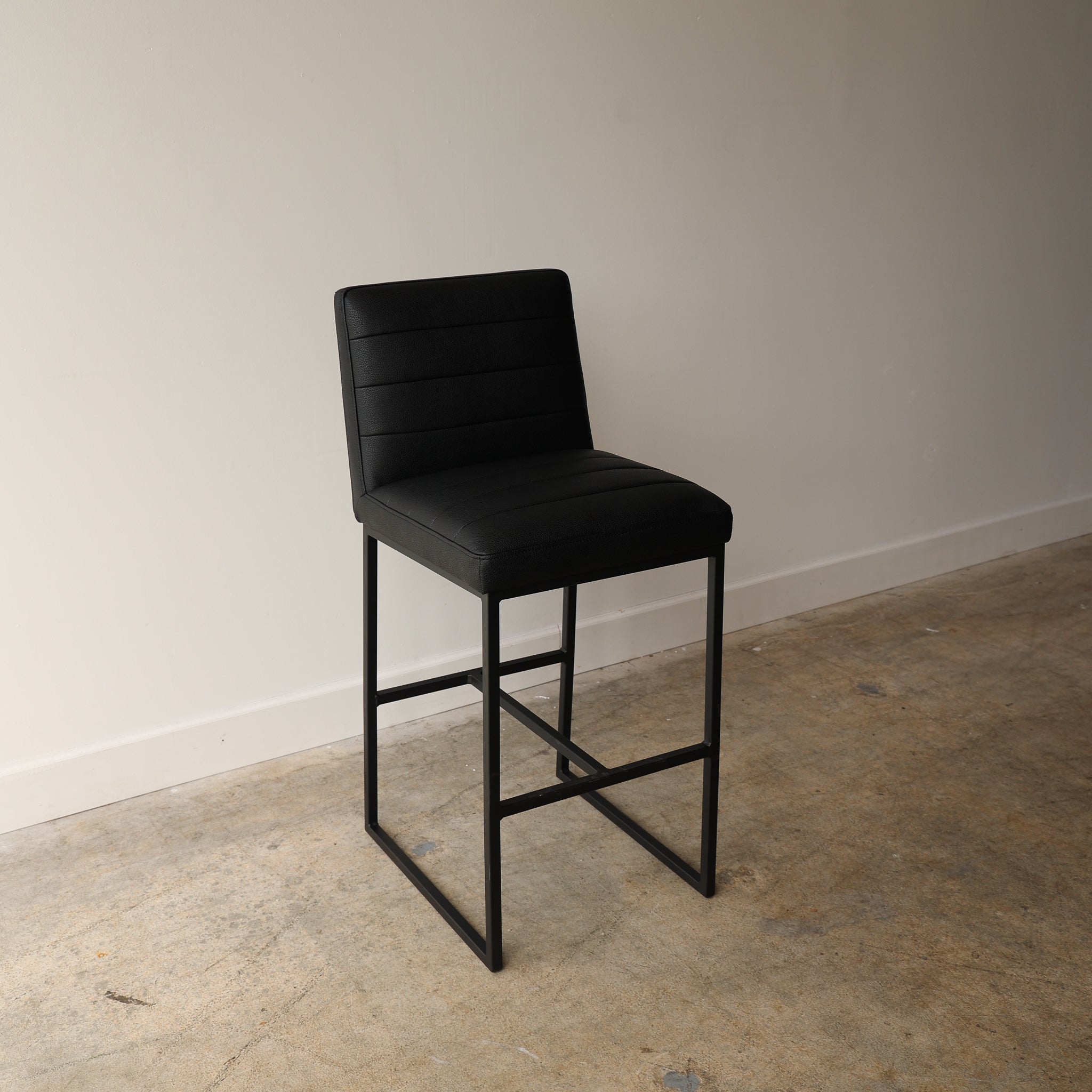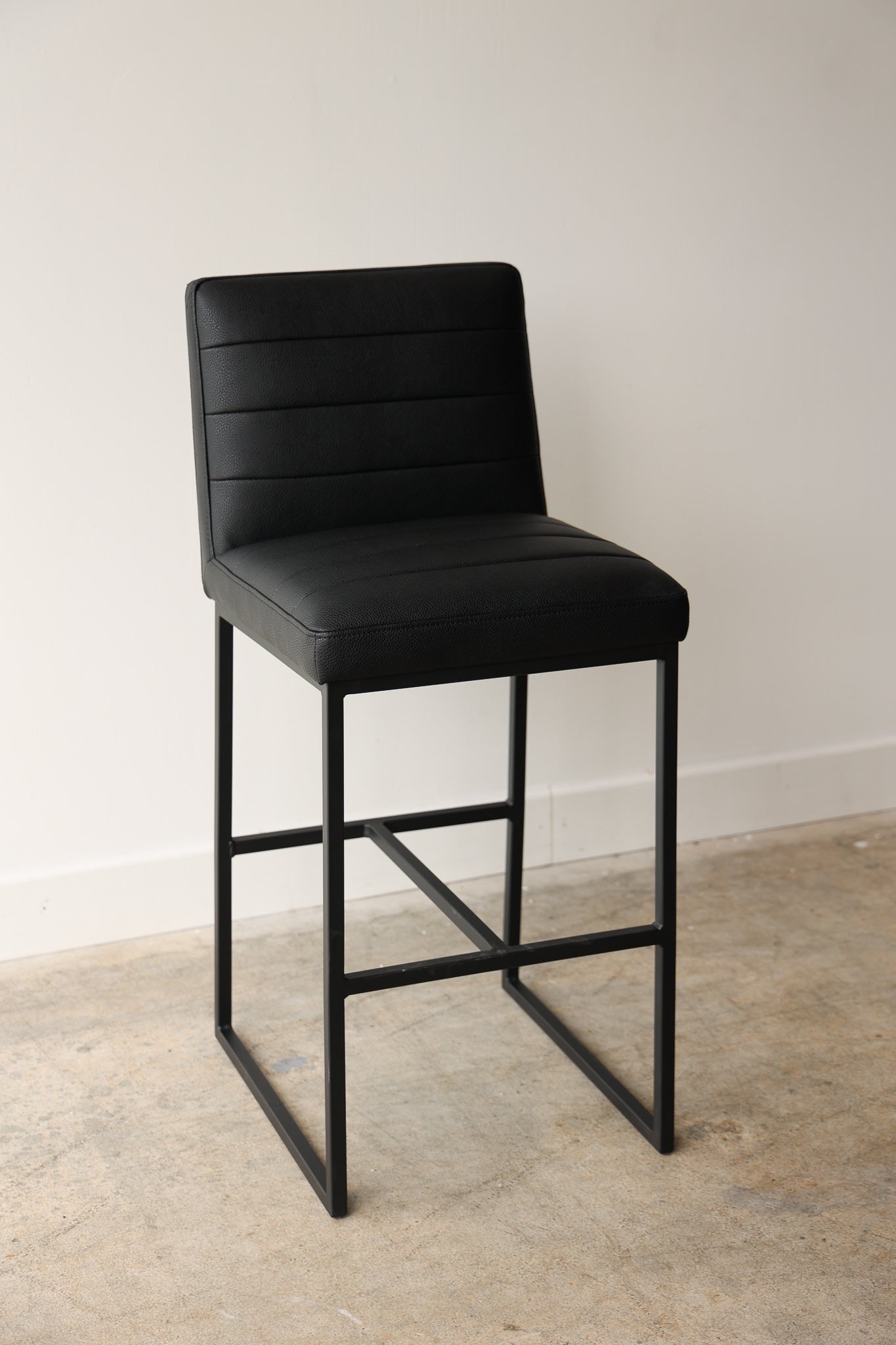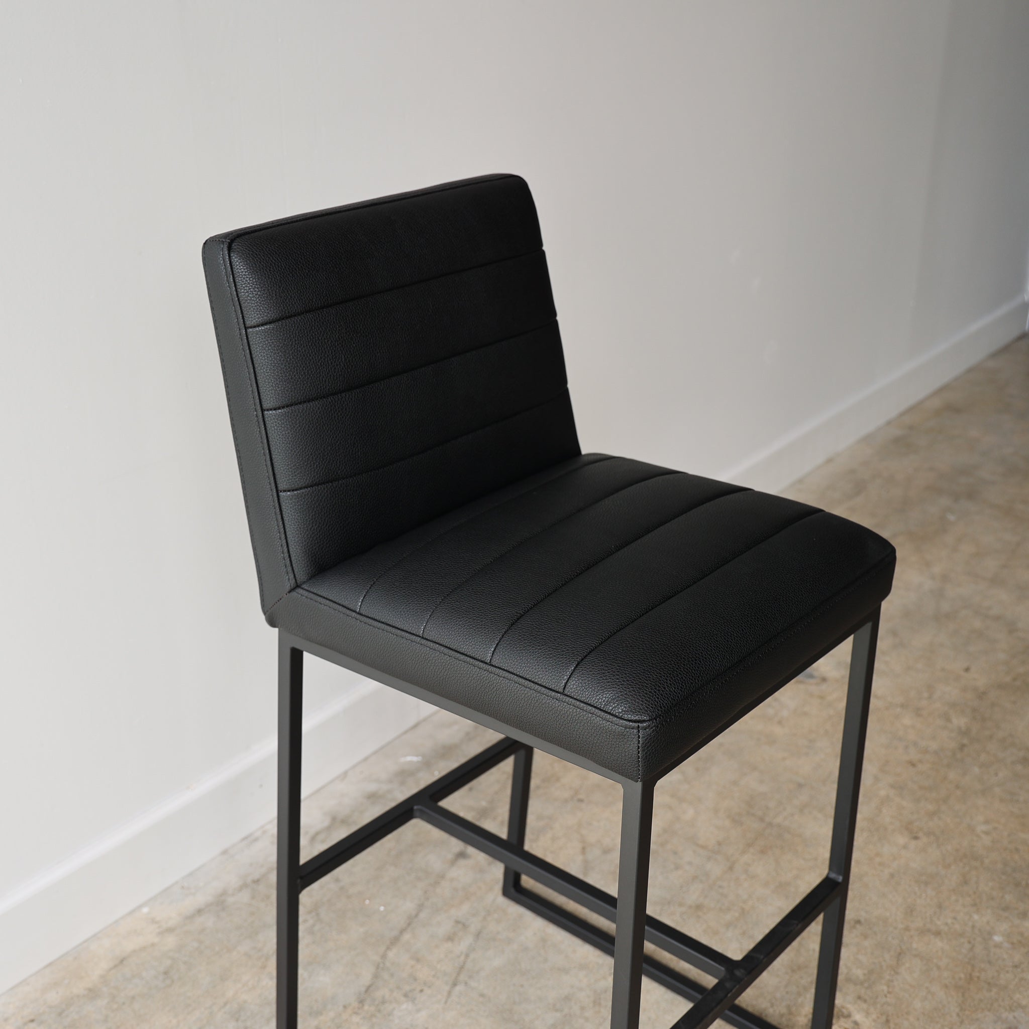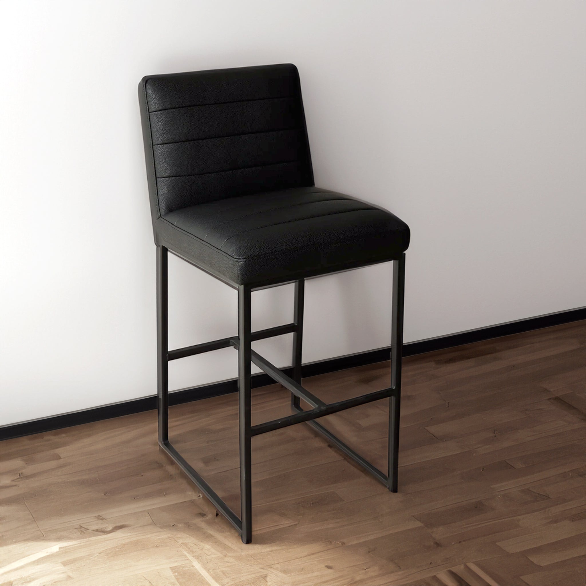The Julio Black Barstool is the perfect blend of modern style and comfort. Upholstered with vegan leather, this barstool is designed for long-lasting use. Its sleek lines and thin frame provide the perfect accent to any living space.