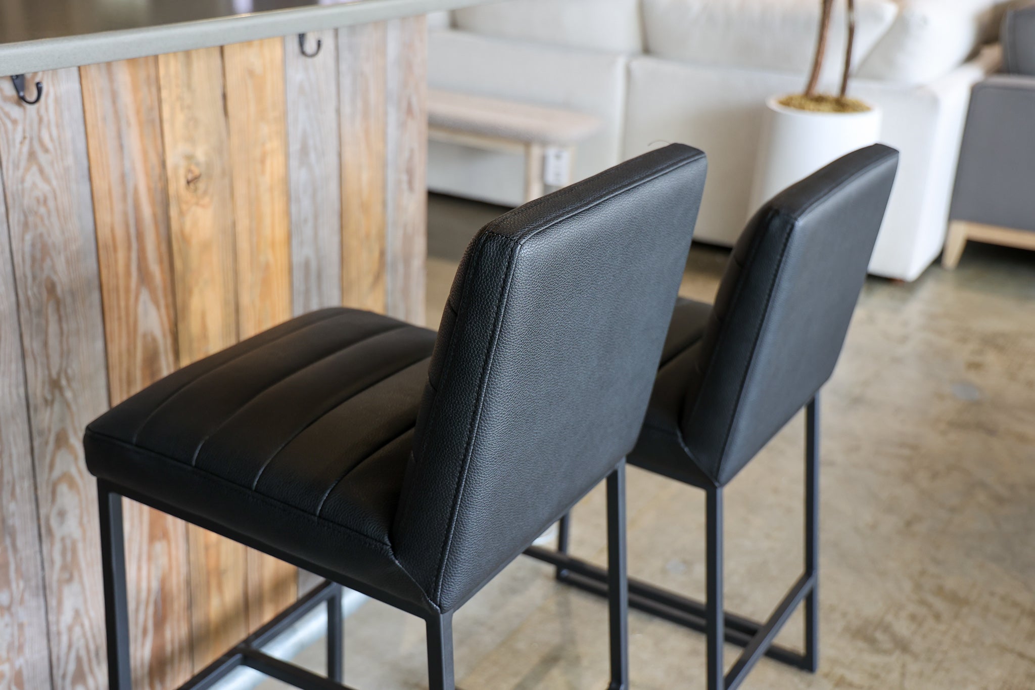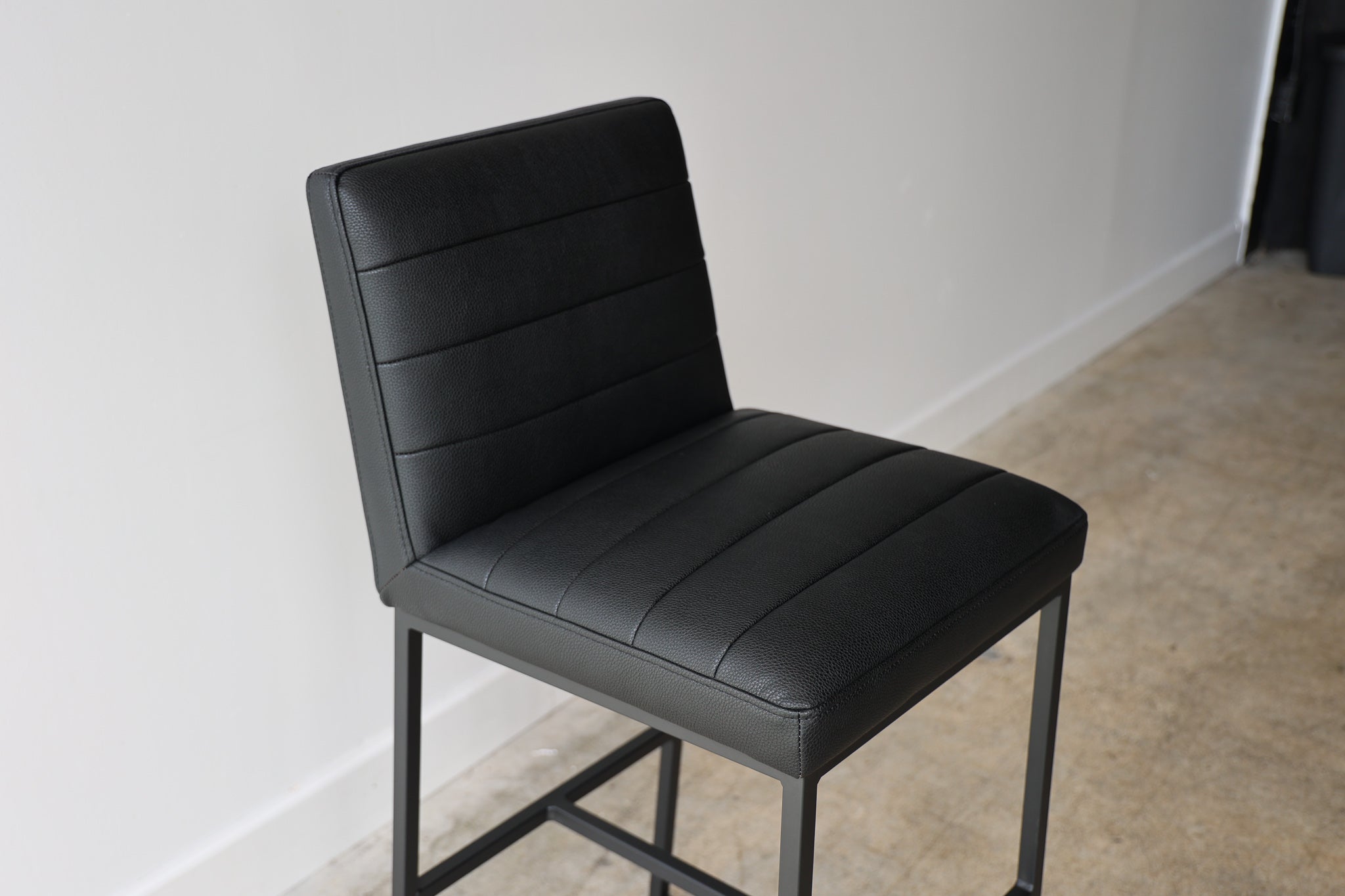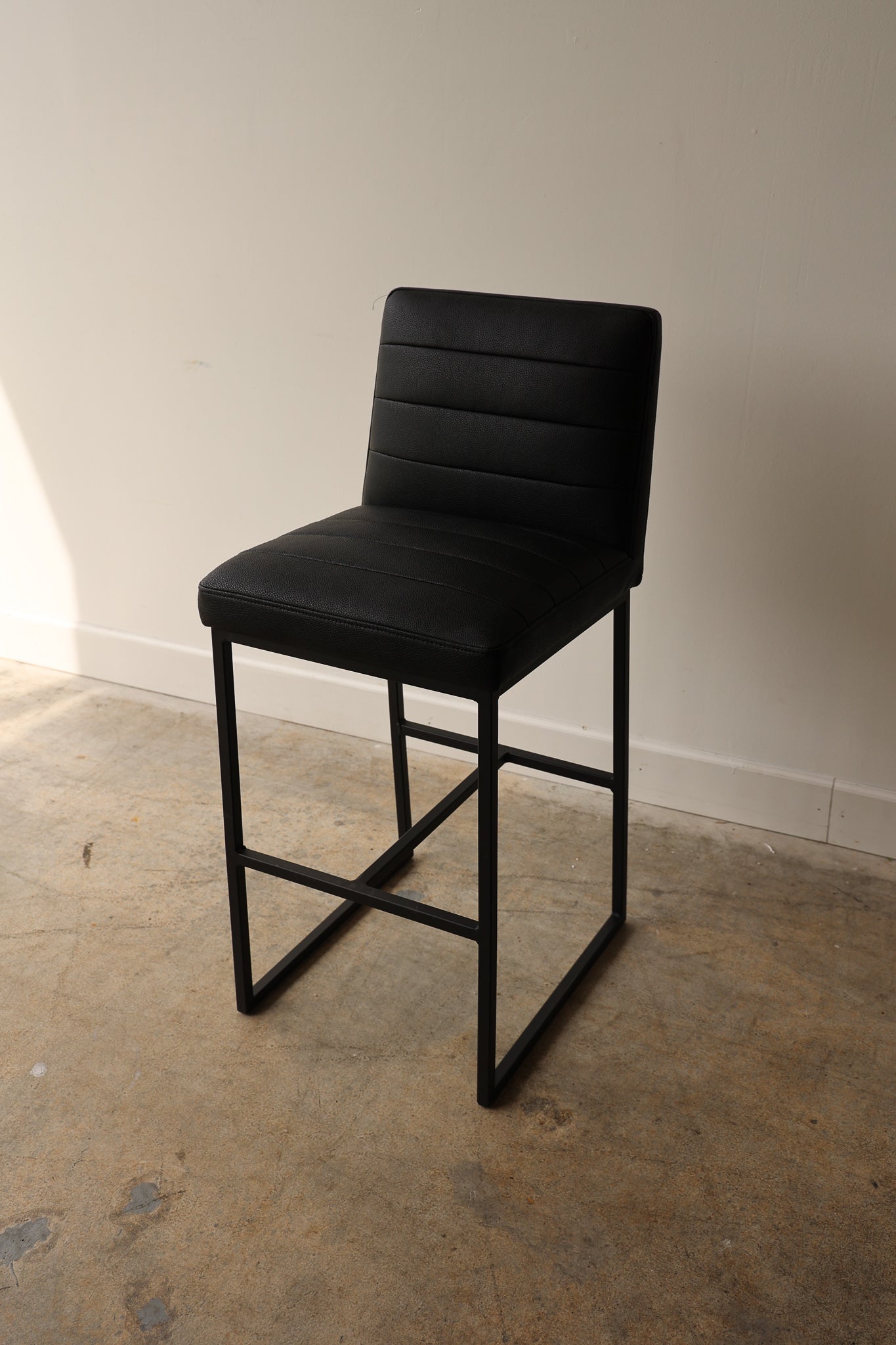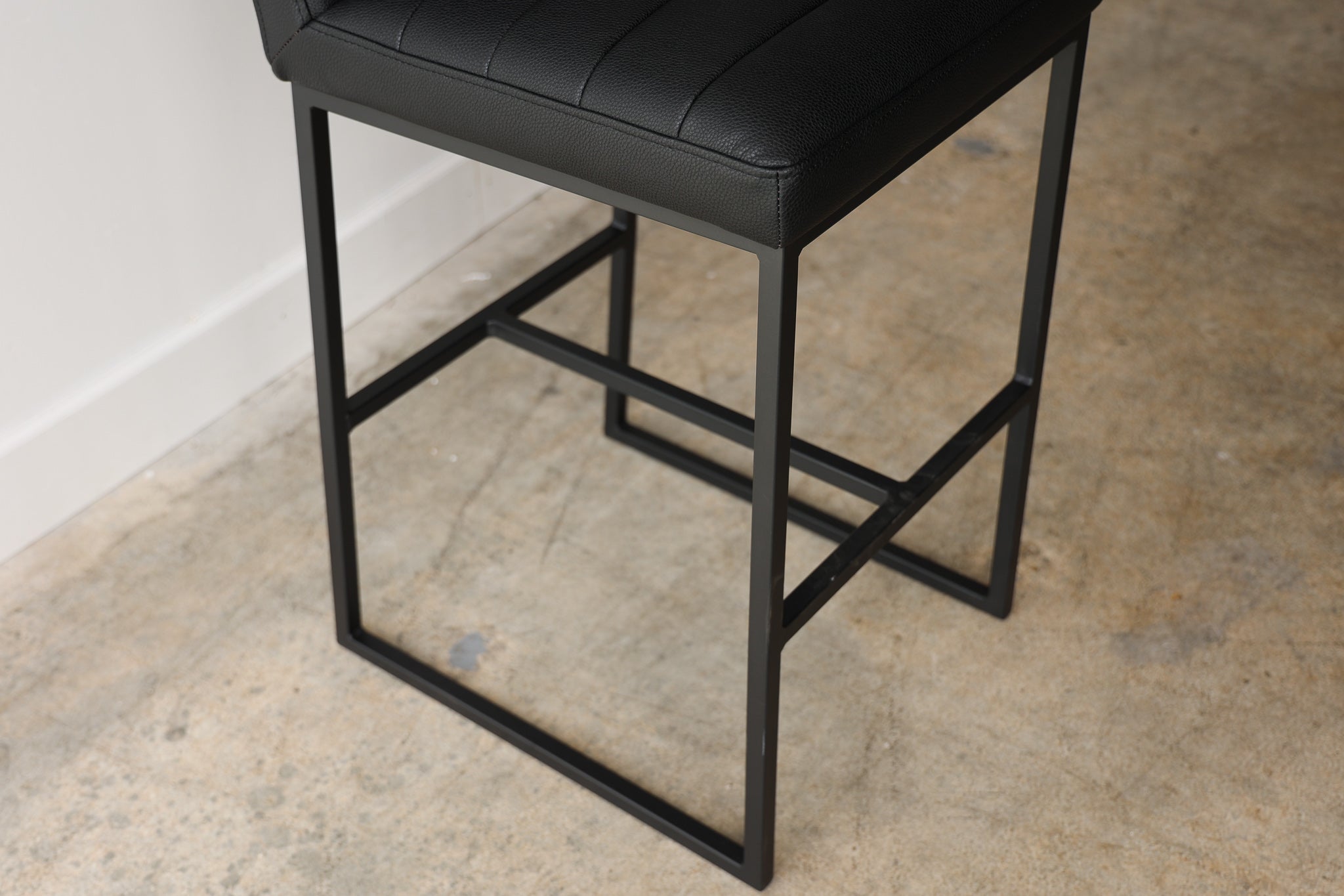 The Julio Black Barstool is the perfect blend of modern style and comfort. Upholstered with vegan leather, this barstool is designed for long-lasting use. Its sleek lines and thin frame provide the perfect accent to any living space.