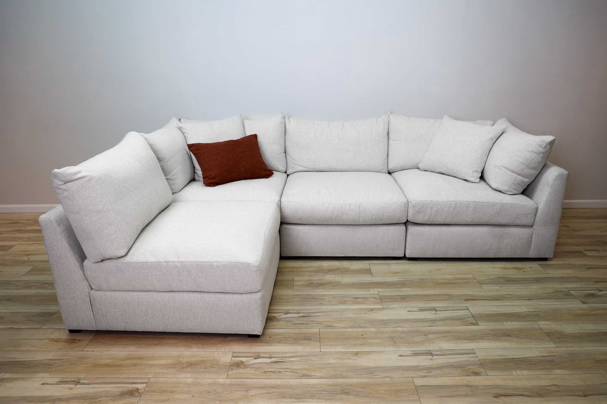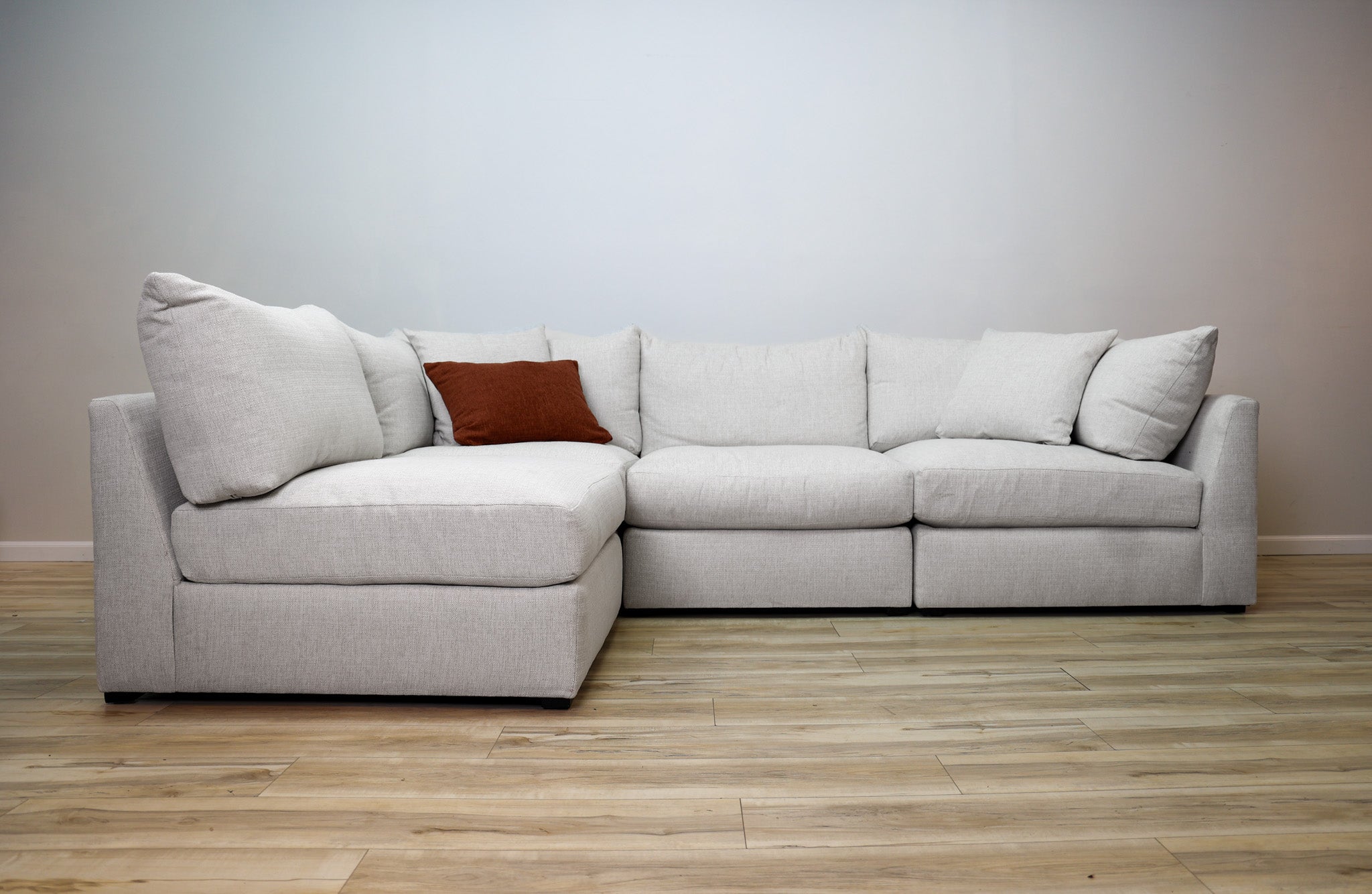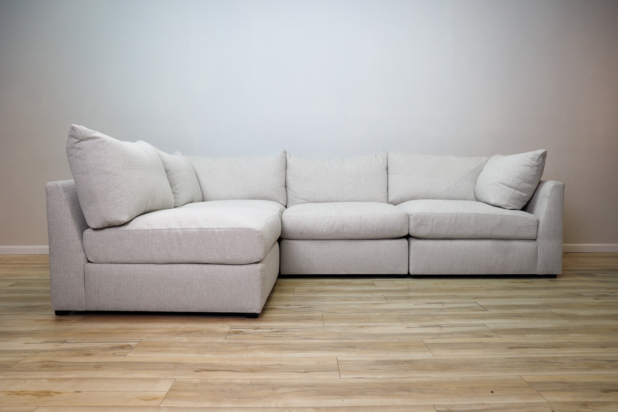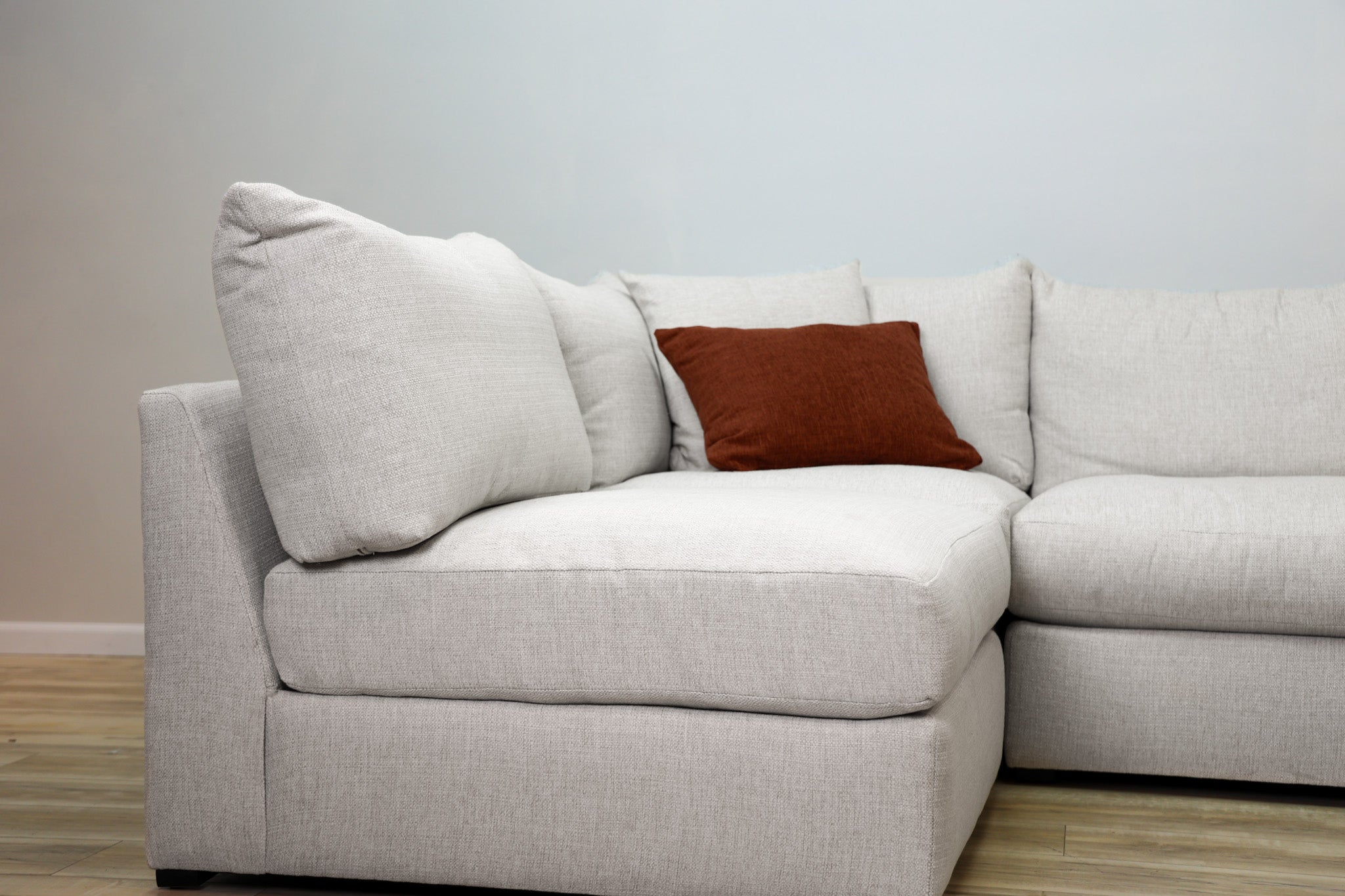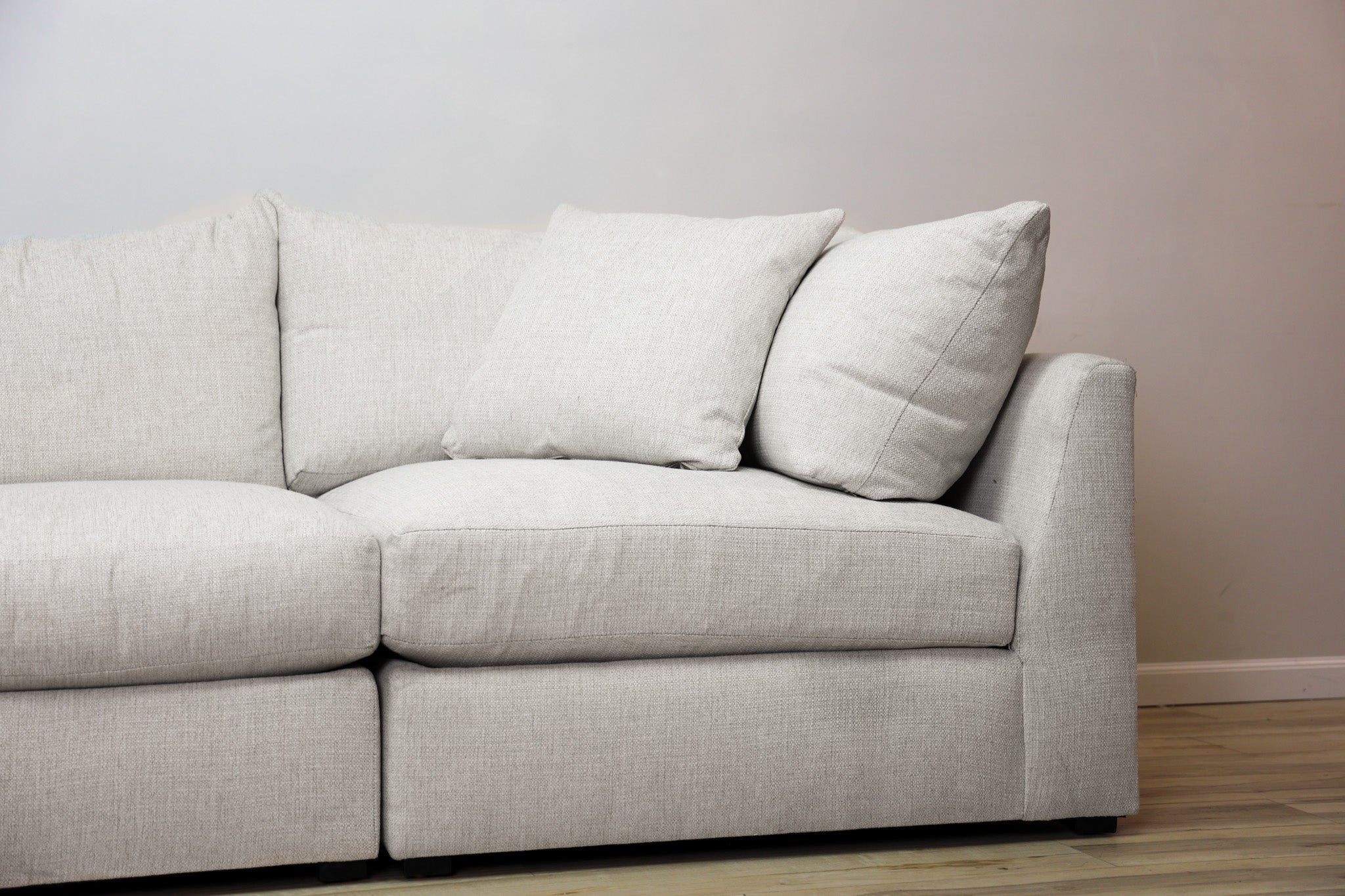 The latest in elegance and comfort has hit the floor at Dwell. This sectional features a foam core cushion system wrapped in down - providing optimal comfort without sacrificing support. The Lily Modular Sectional offers limitless configurations allowing you to optimize its look for your space! Color is White