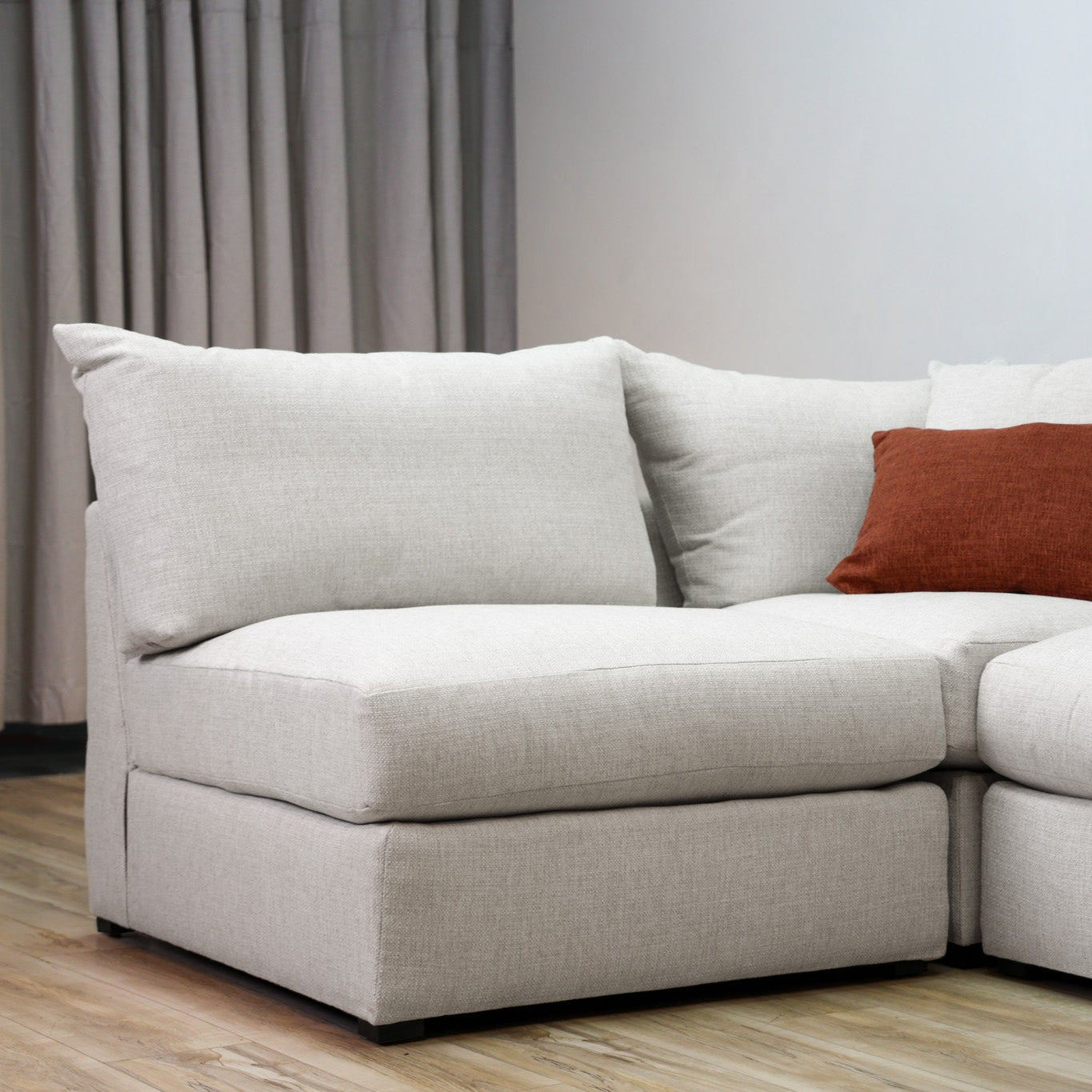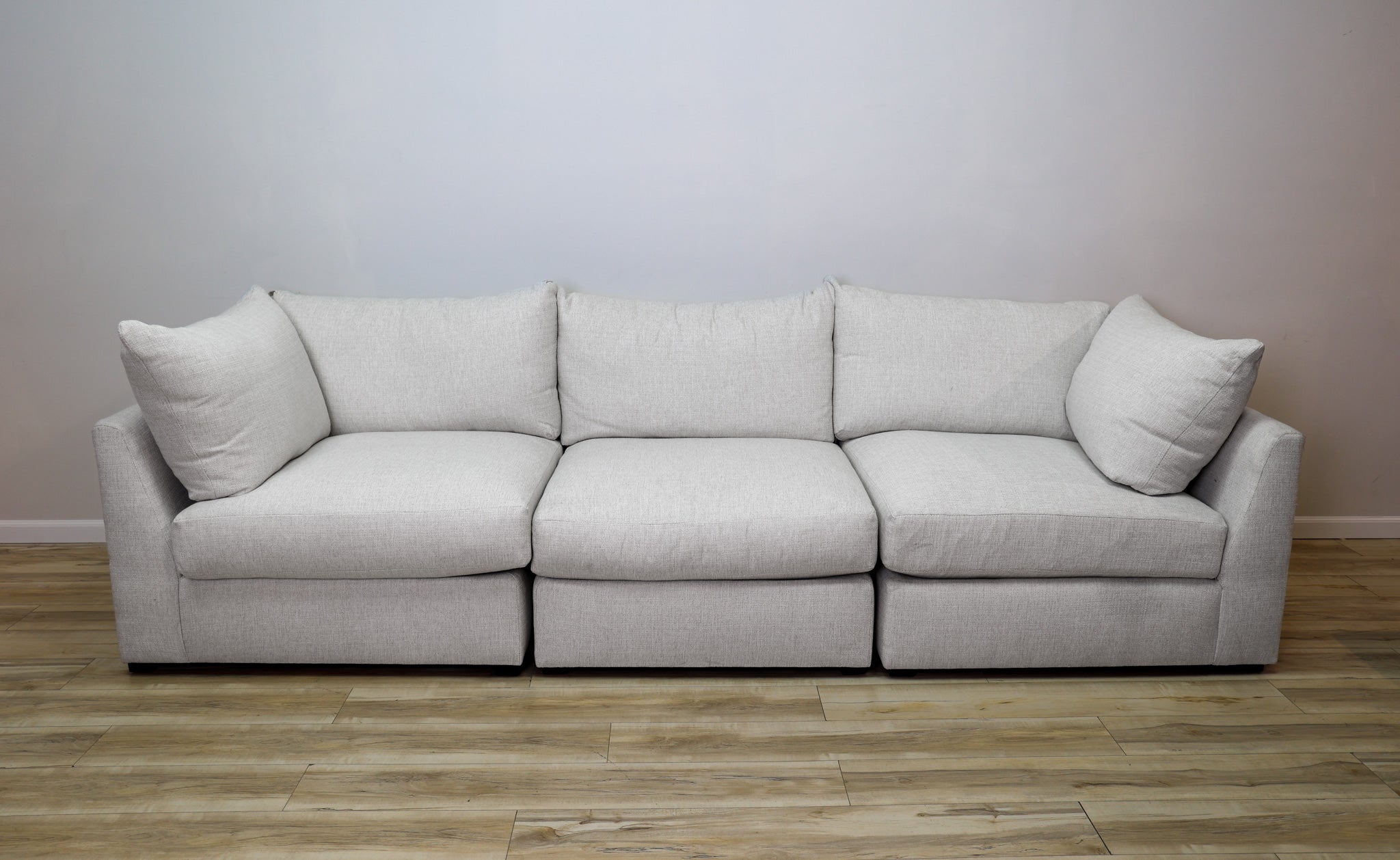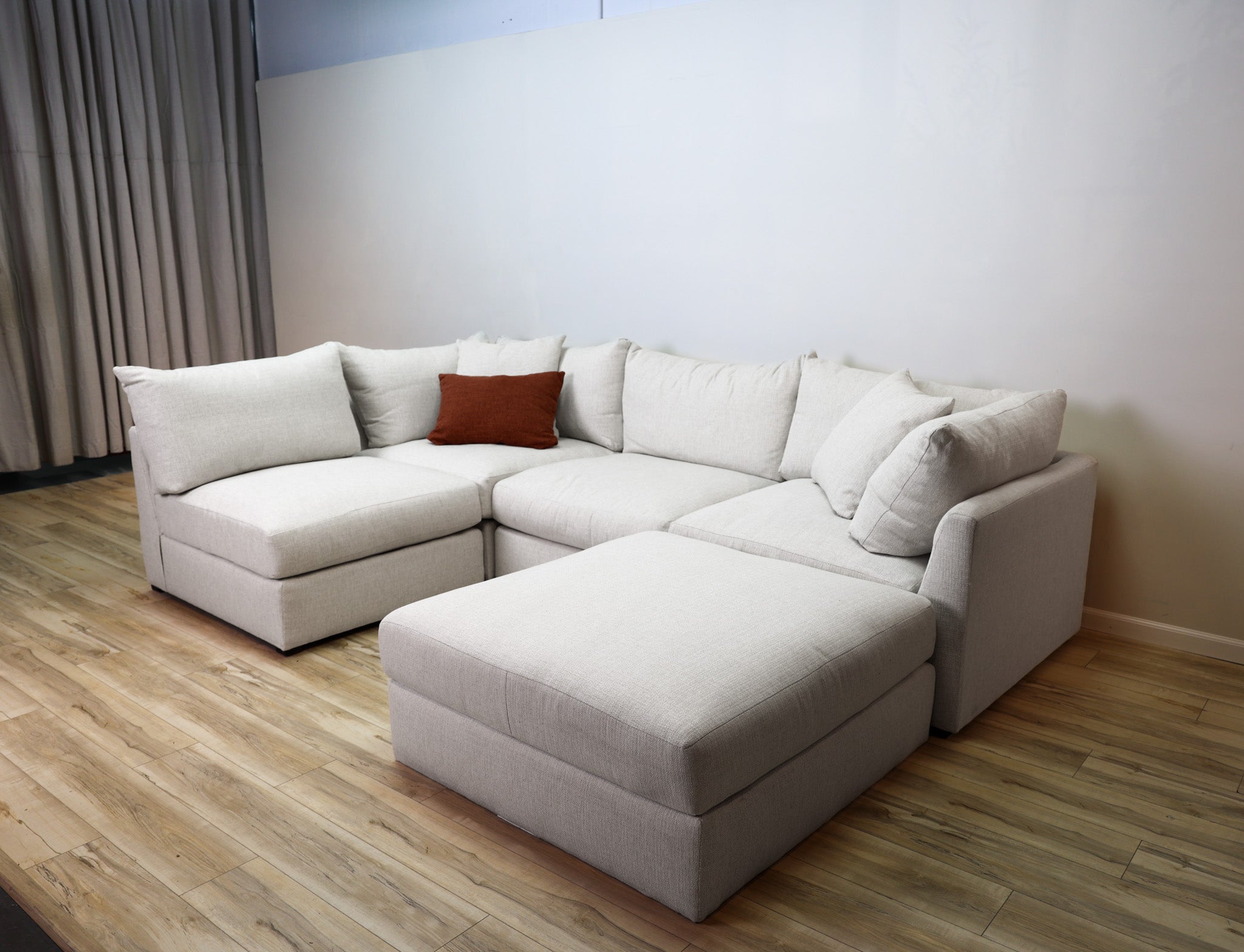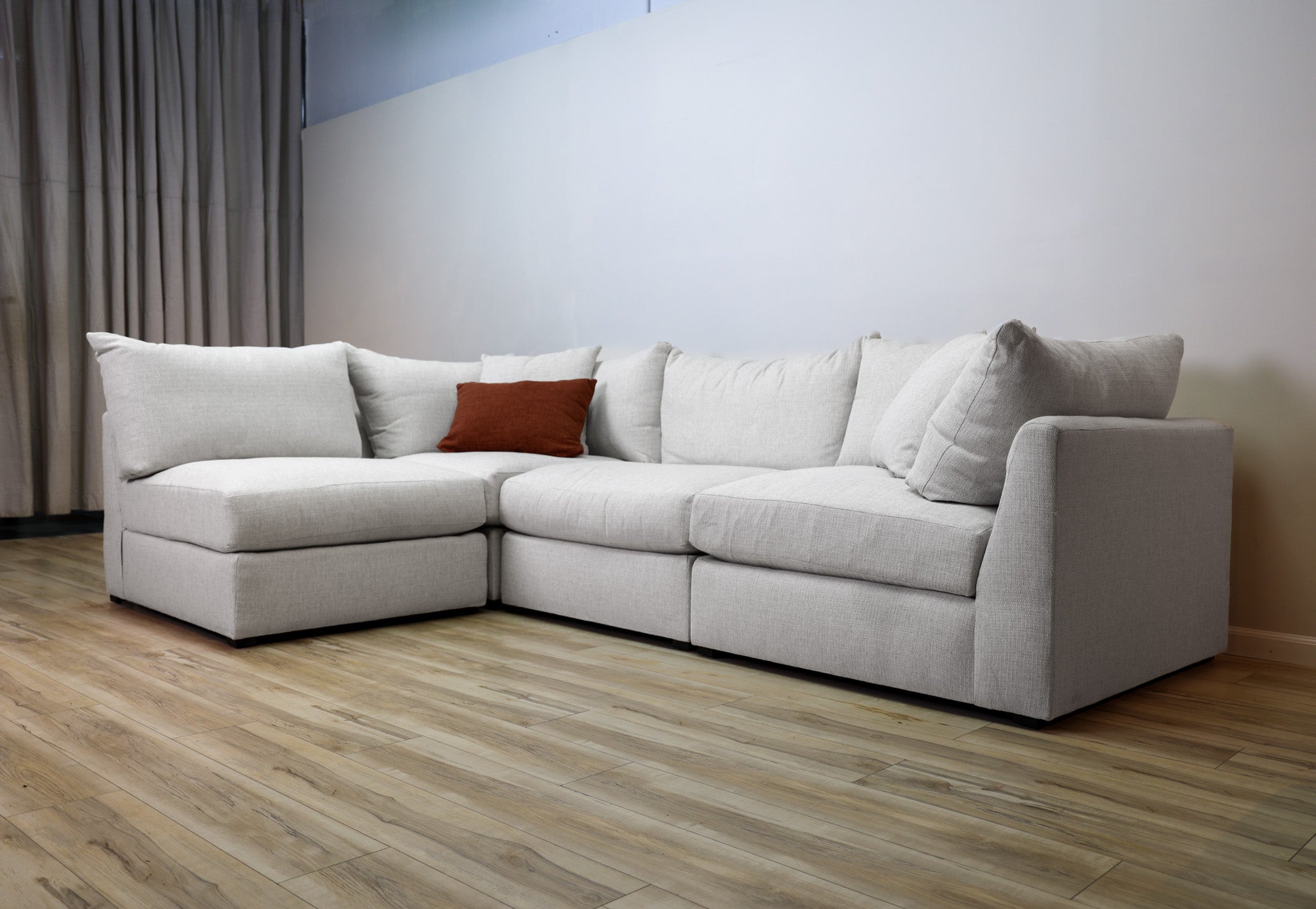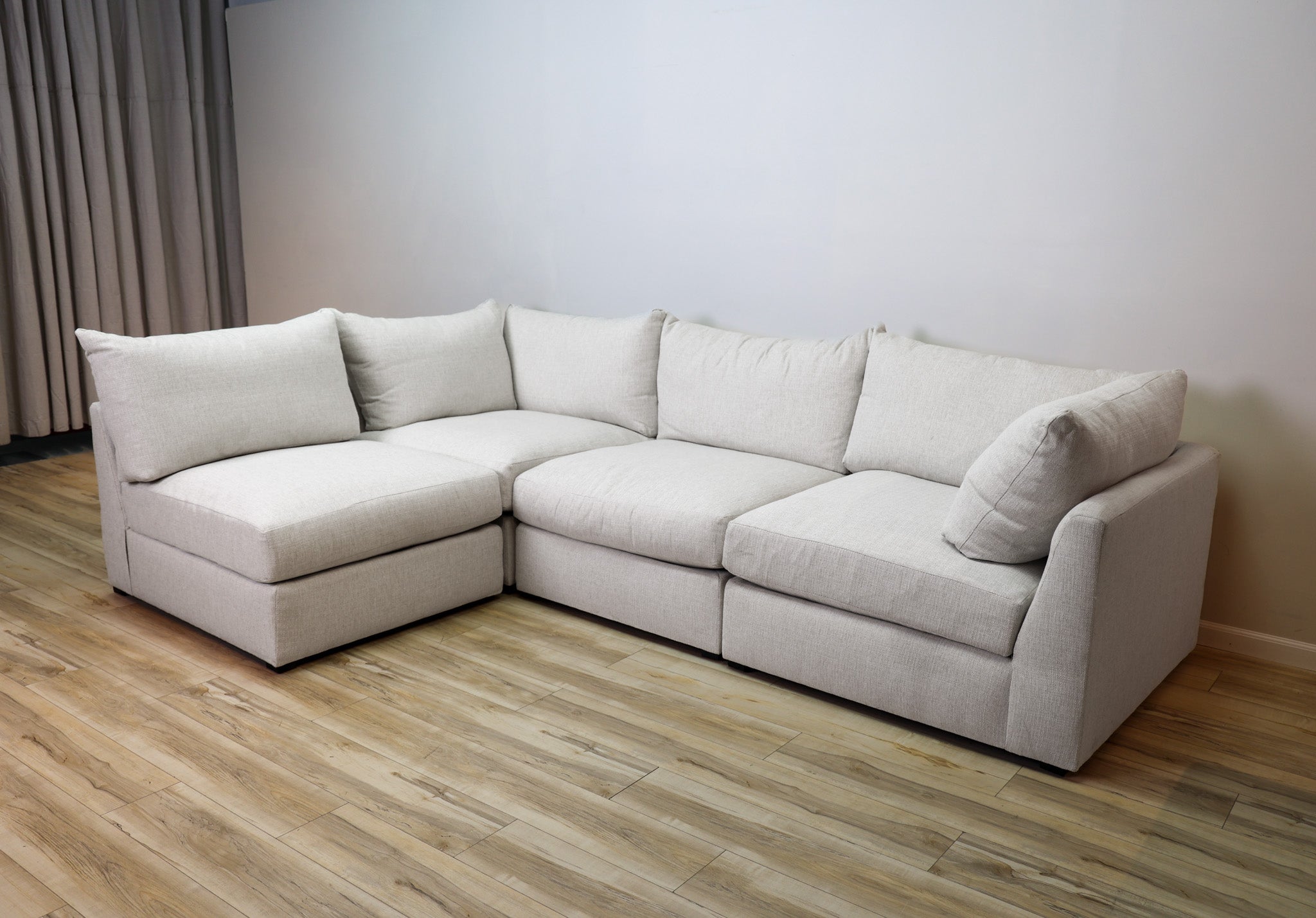 The latest in elegance and comfort has hit the floor at Dwell. This sectional features a foam core cushion system wrapped in down - providing optimal comfort without sacrificing support. The Lily Modular Sectional offers limitless configurations allowing you to optimize its look for your space! Color is White