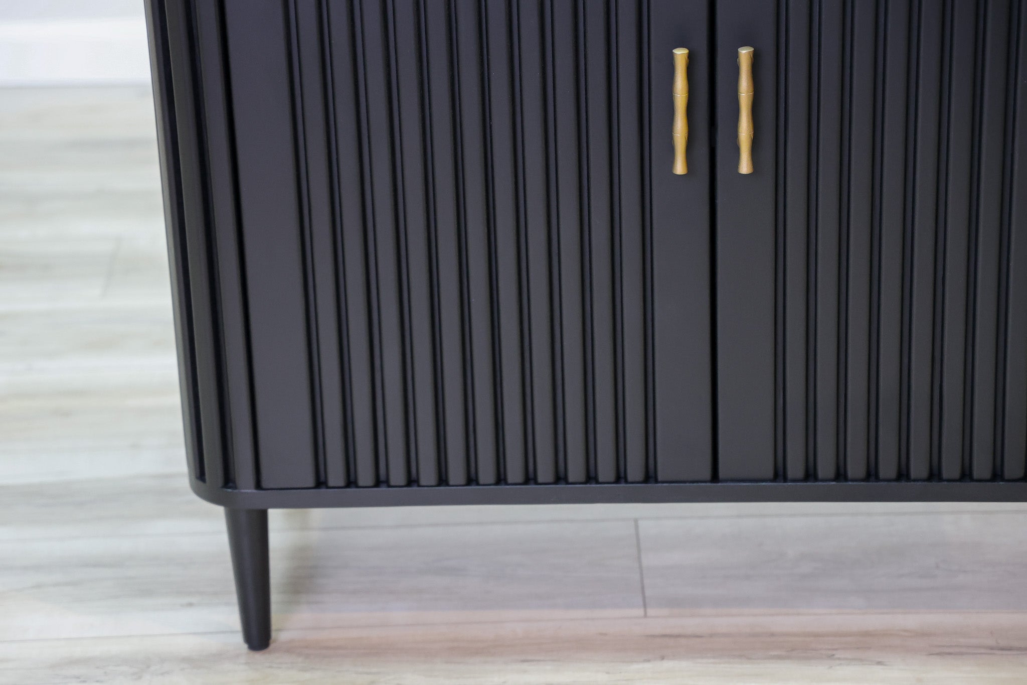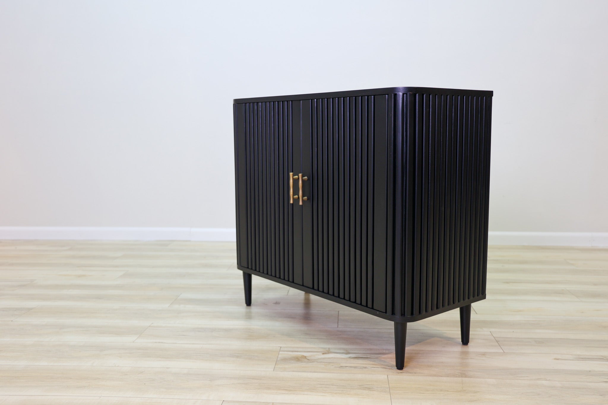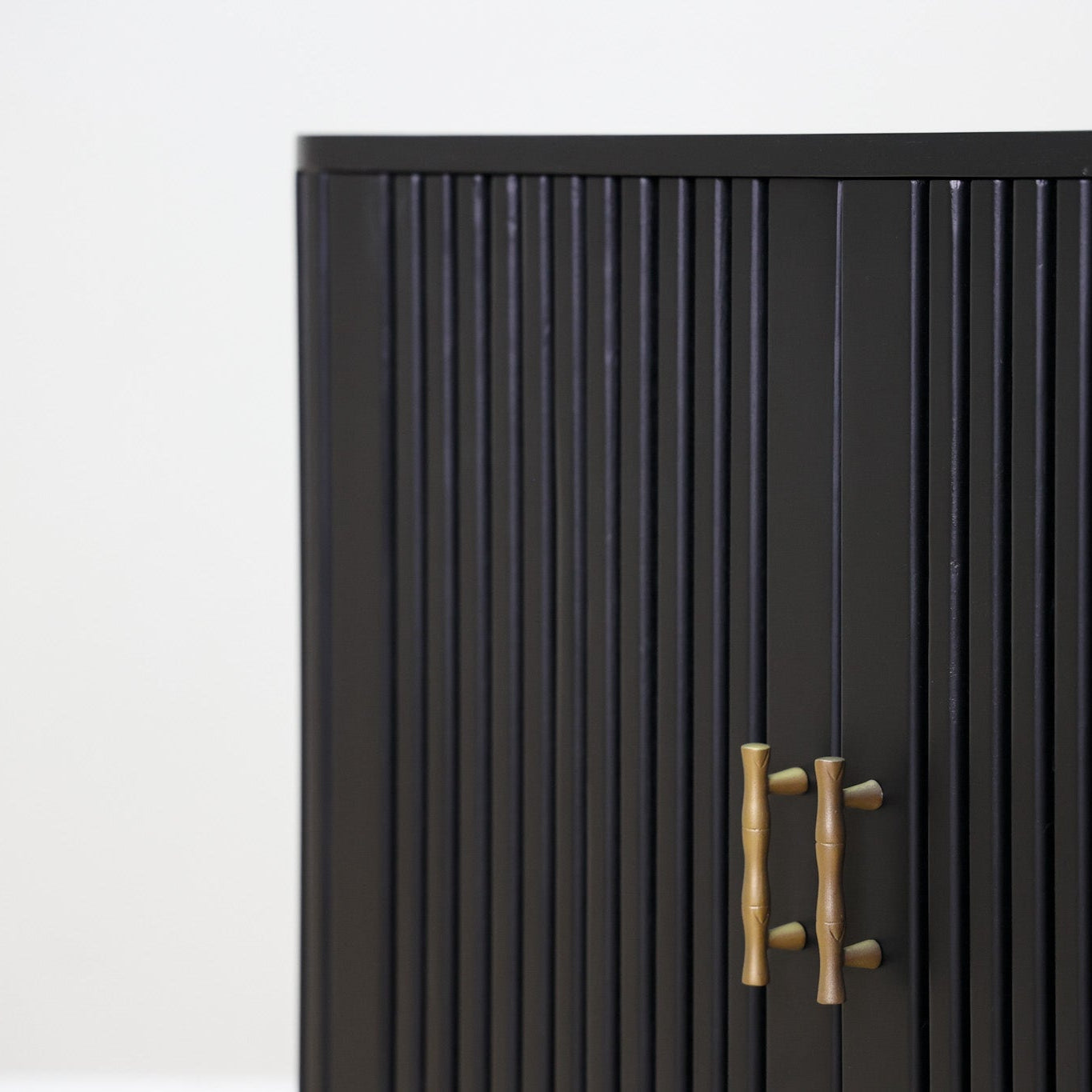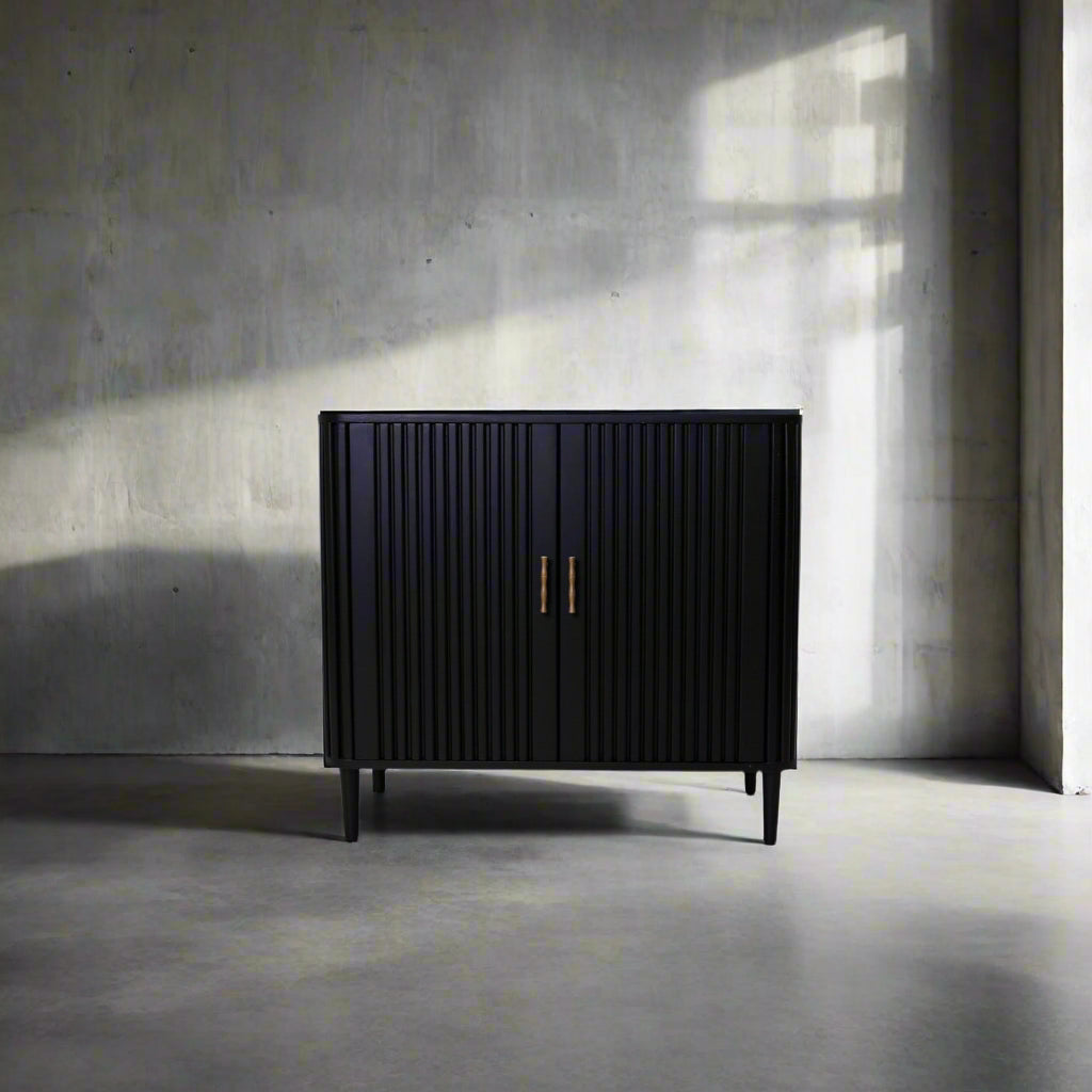 The Lewis Cabinet boasts both style and functionality with its intricate fluted design and luxurious black wood finish. Featuring ample storage space and elegant gold finishes, this cabinet is perfect for organizing and displaying your belongings. Elevate your space with this expertly crafted piece.