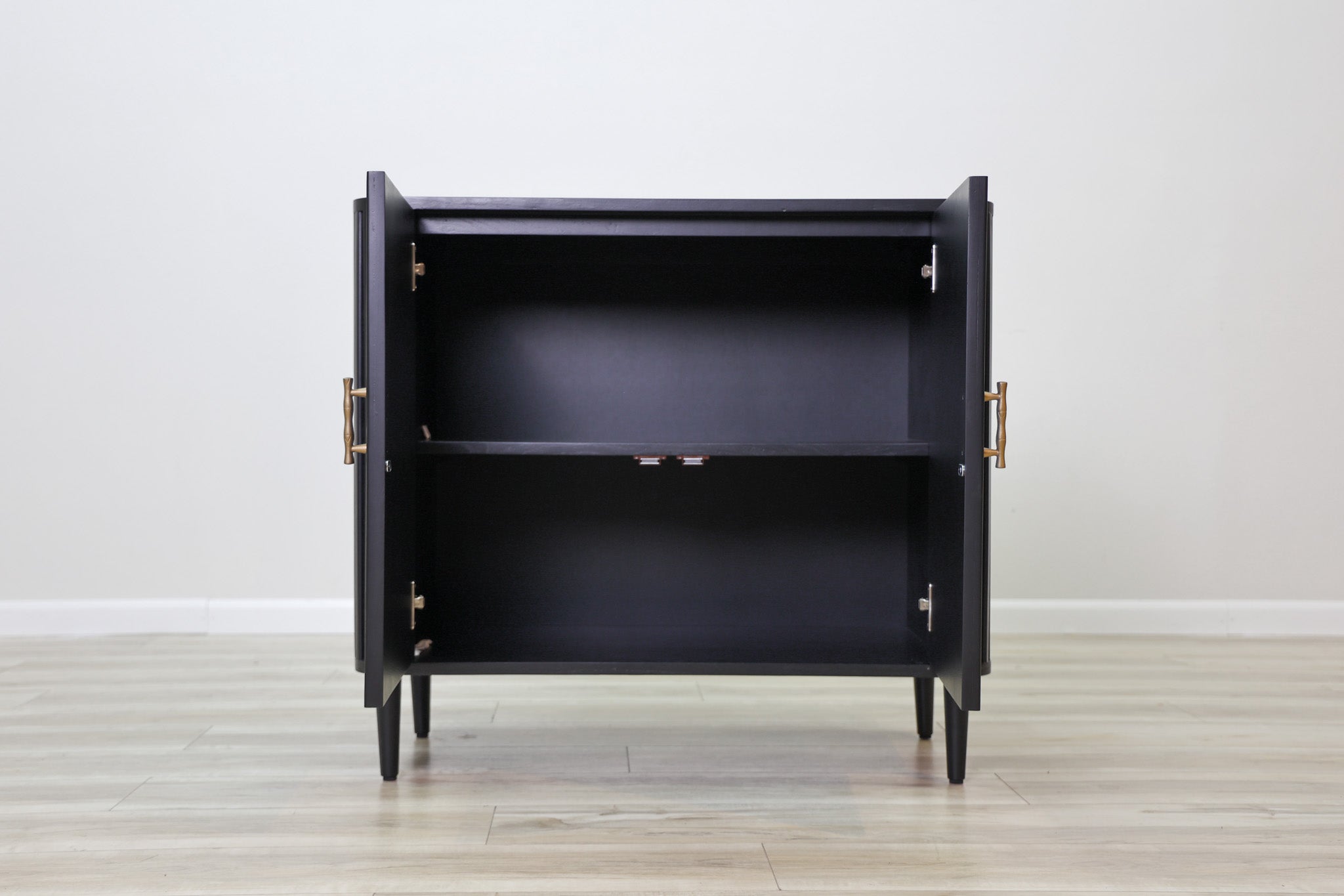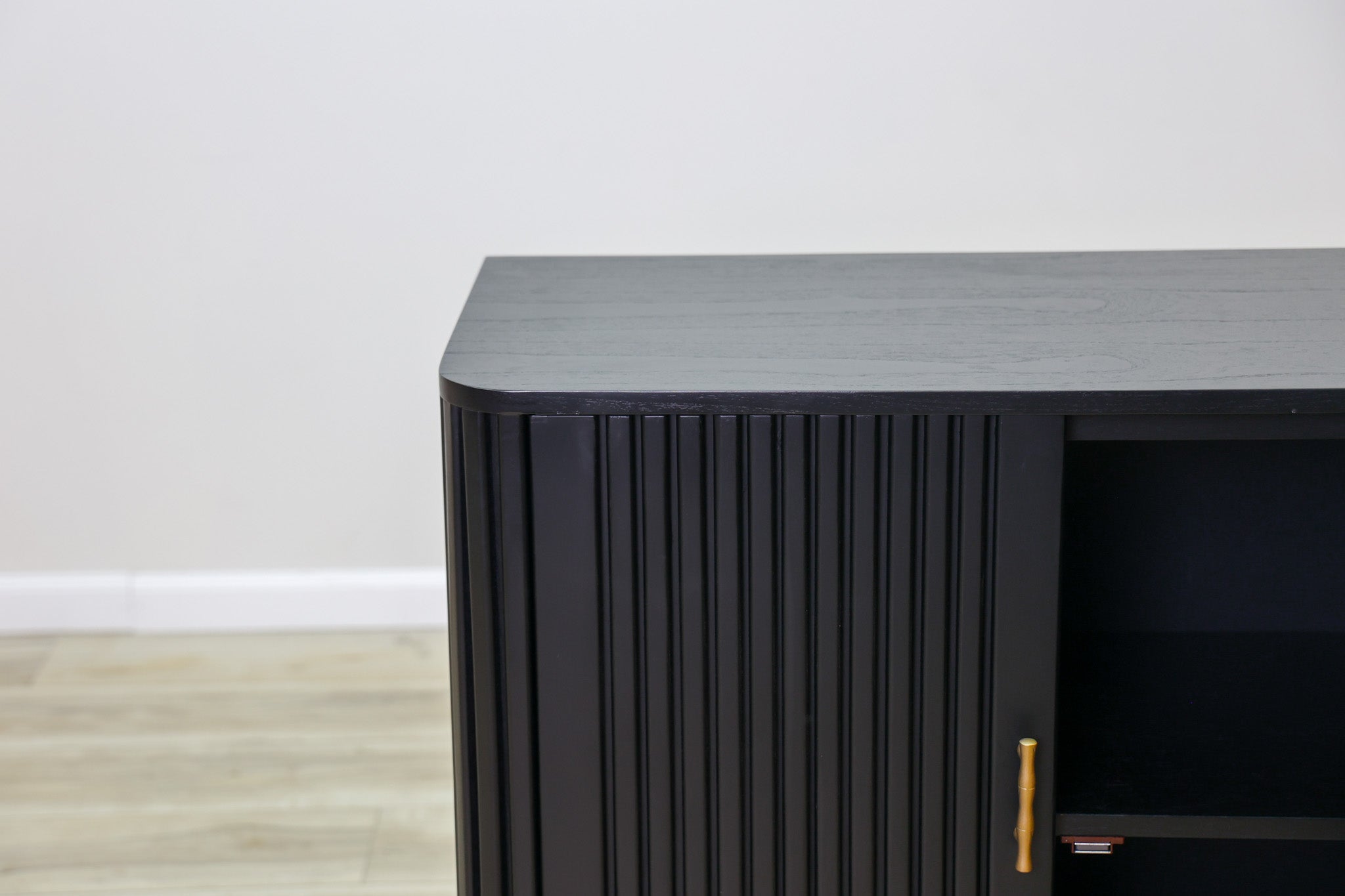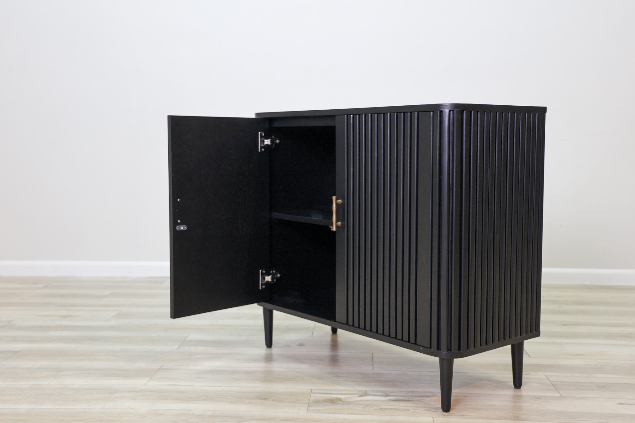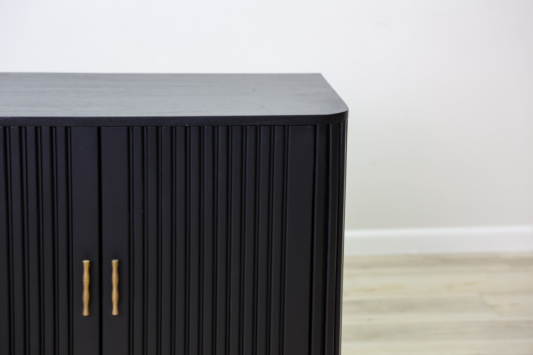 The Lewis Cabinet boasts both style and functionality with its intricate fluted design and luxurious black wood finish. Featuring ample storage space and elegant gold finishes, this cabinet is perfect for organizing and displaying your belongings. Elevate your space with this expertly crafted piece.