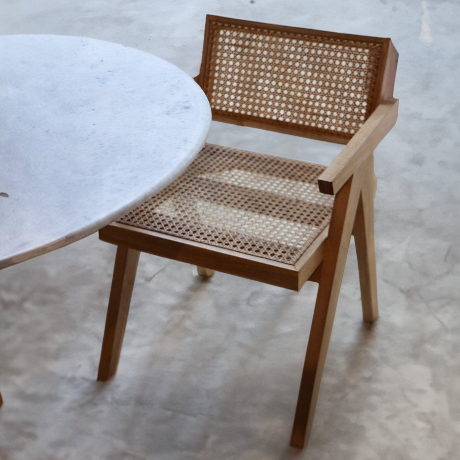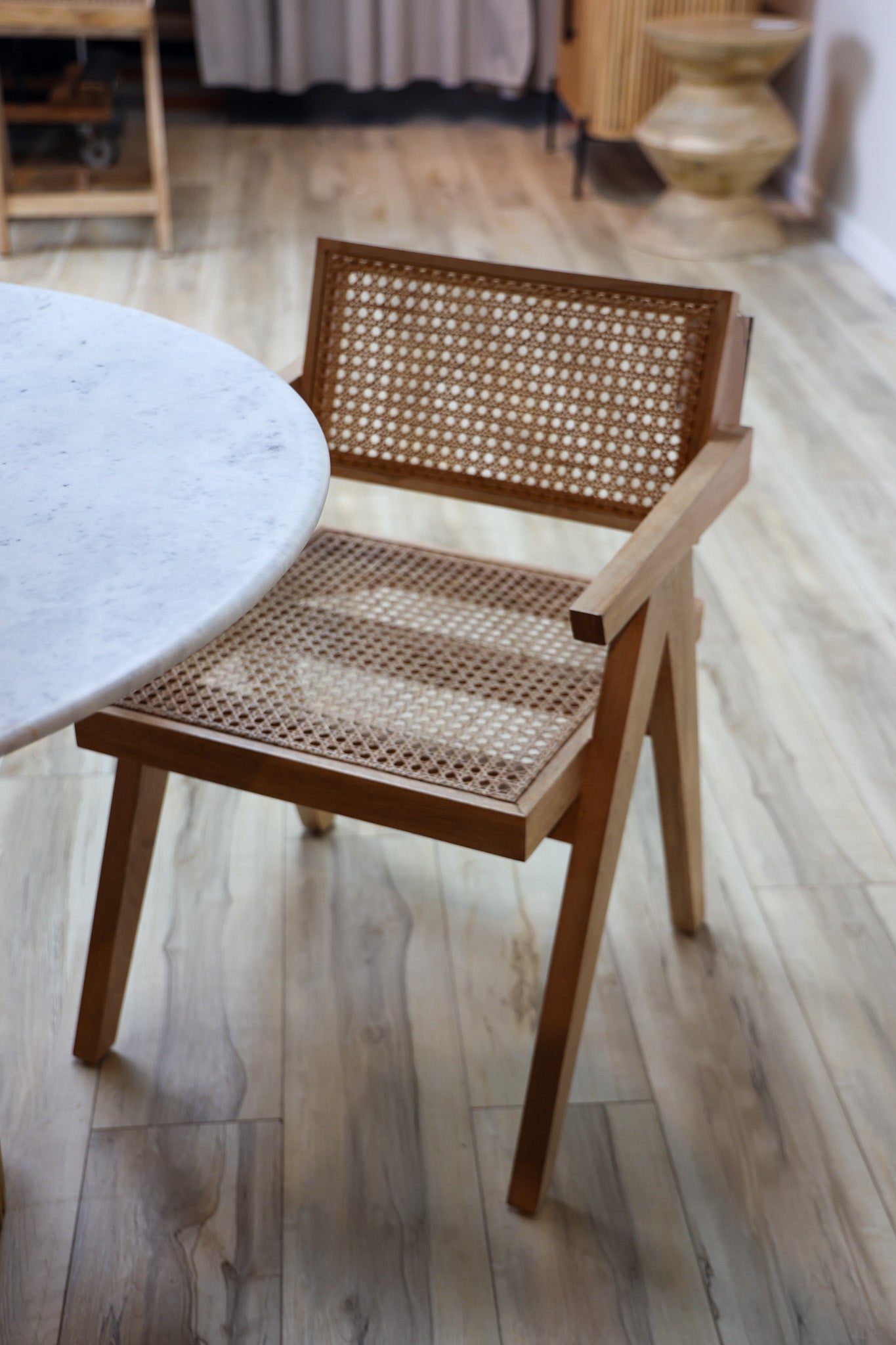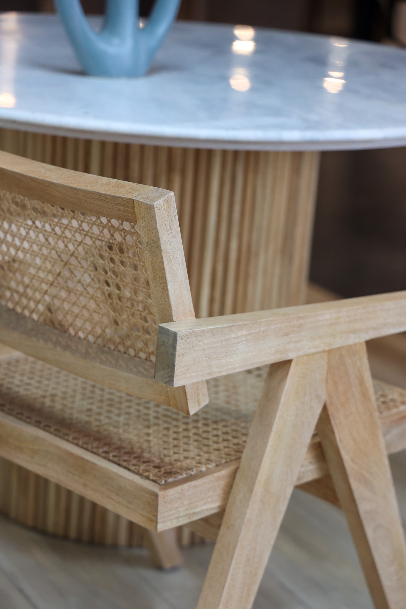 Expertly crafted with a seamless blend of rattan caning and wood materials, the Lois Dining Chair brings a touch of natural elegance to any dining space. This durable chair offers both comfort and style, making it the perfect addition to any home.