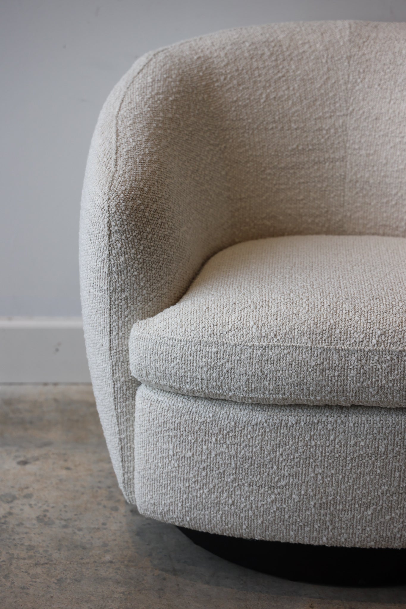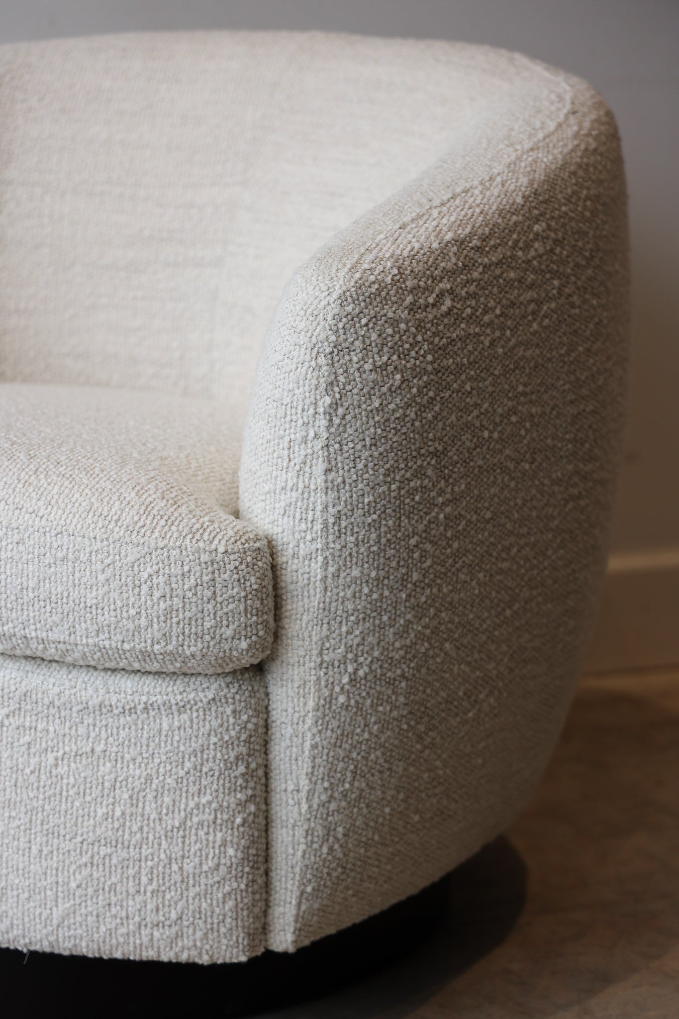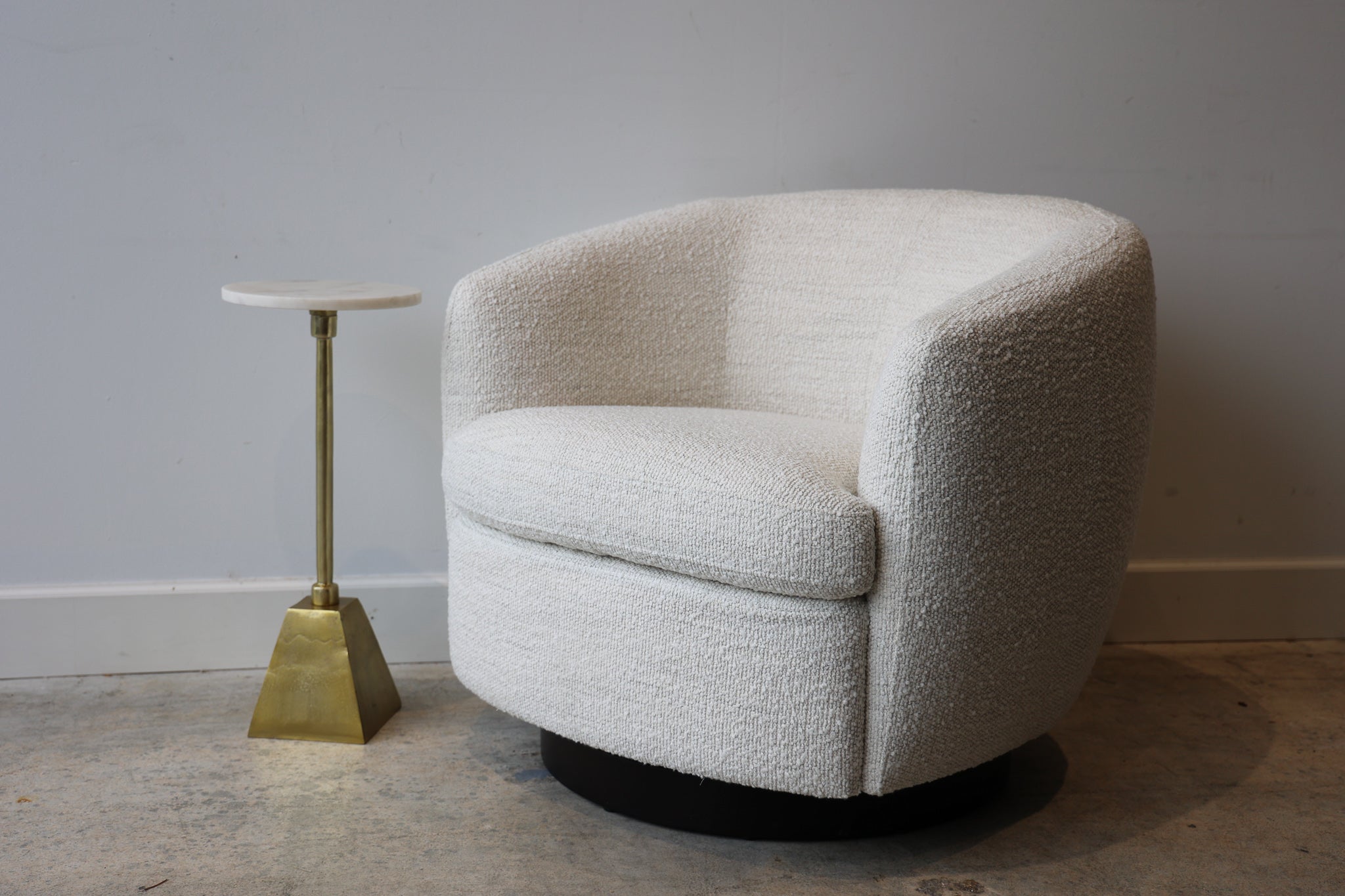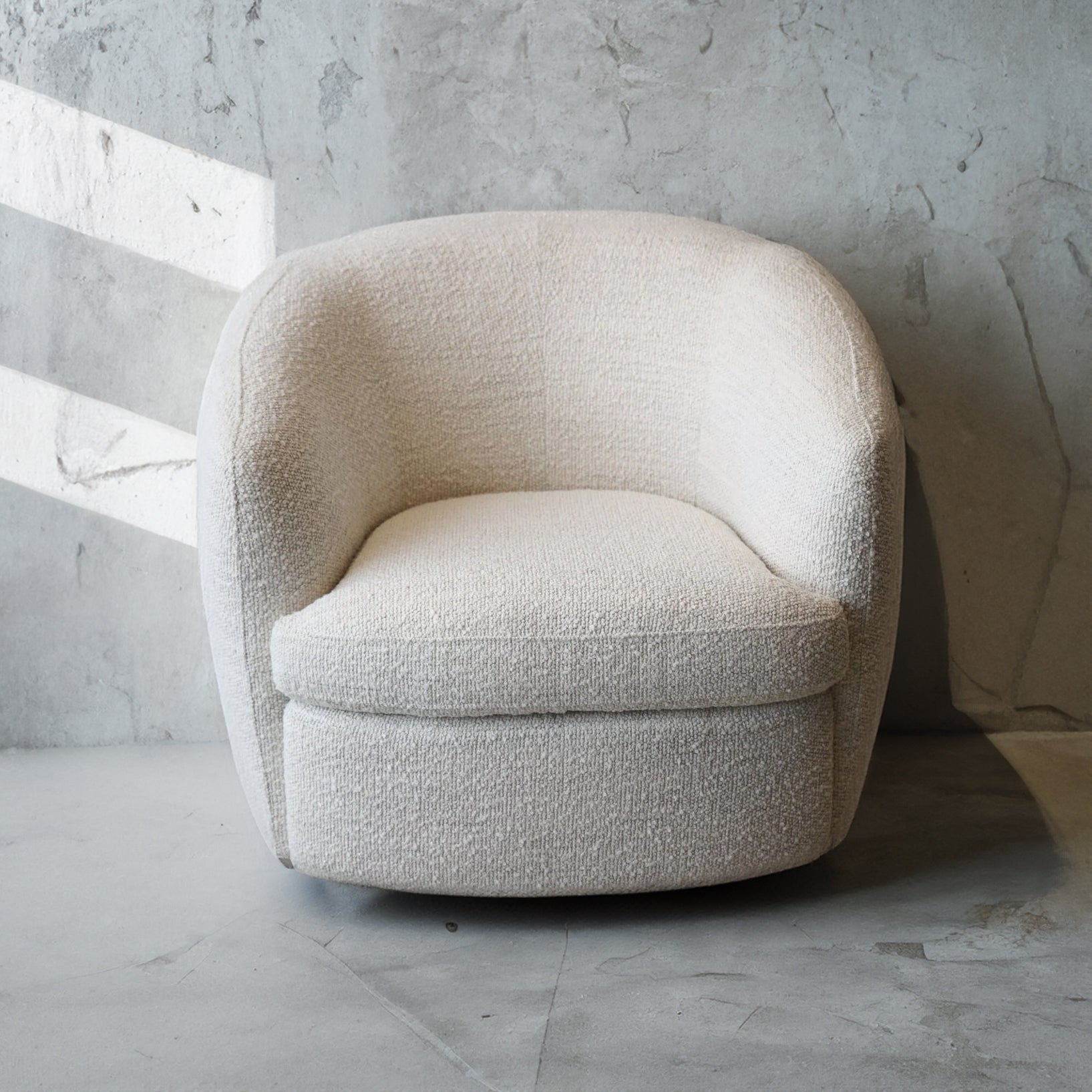 Experience style and comfort with the Madison Swivel Chair. Made with luxurious boucle material, this chair adds a touch of sophistication to any space. With a swivel feature for added versatility, it's perfect for lounging or entertaining guests. Elevate your seating experience with the Madison Swivel Chair.