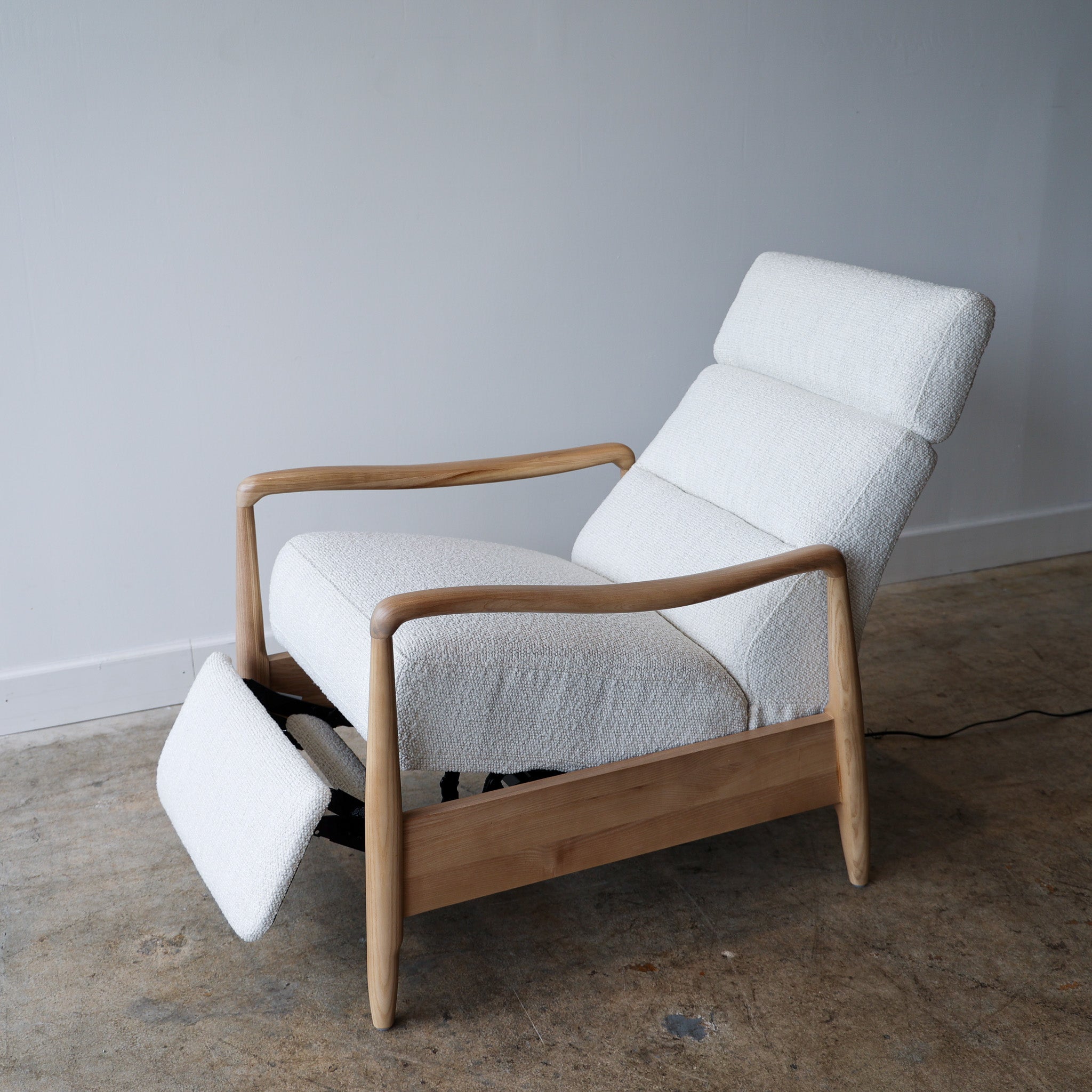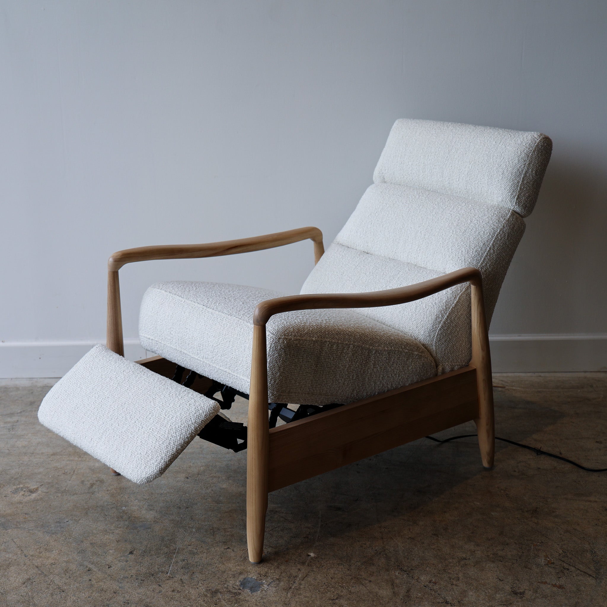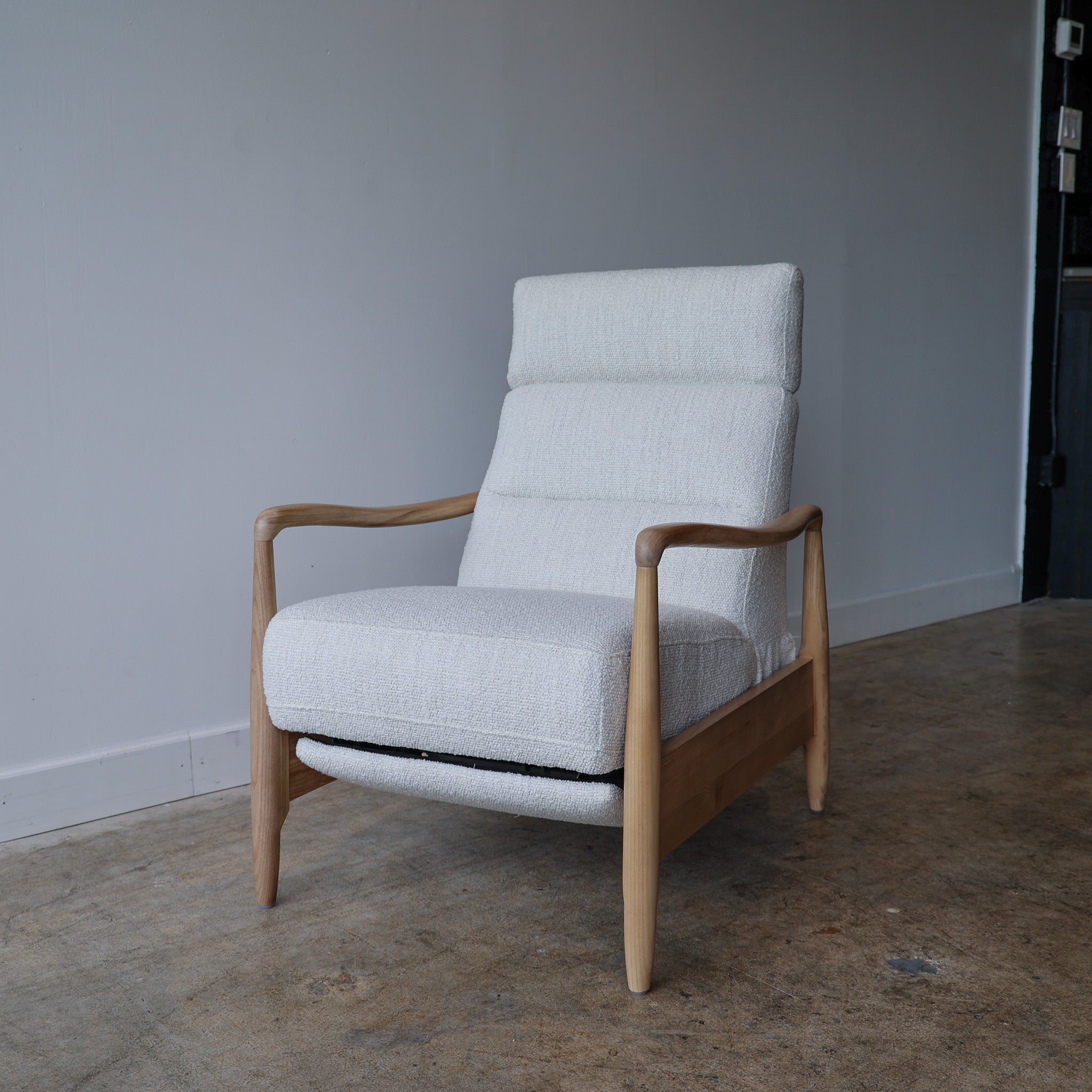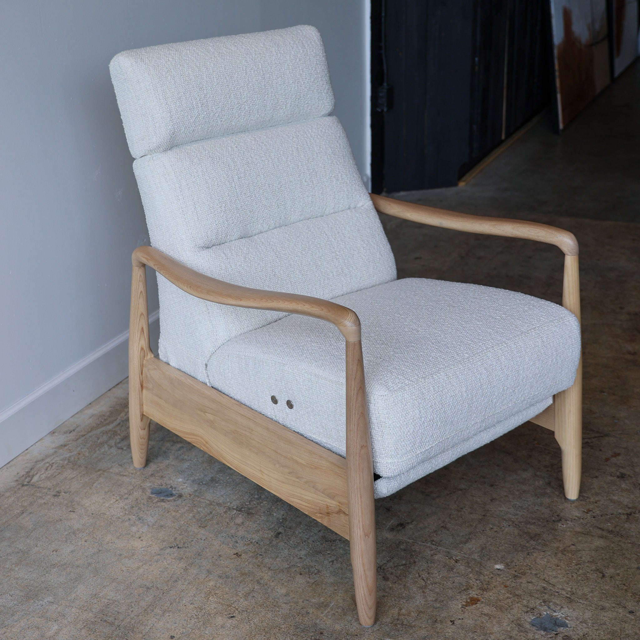 Experience luxurious comfort and style with our Magnolia Boucle Reclining Chair. With its soft boucle fabric and elegant lightwood accents, this chair adds a touch of sophistication to any room. Relax and recline in total bliss as you sink into the plush cushioning and ergonomic design. Upgrade your space today!