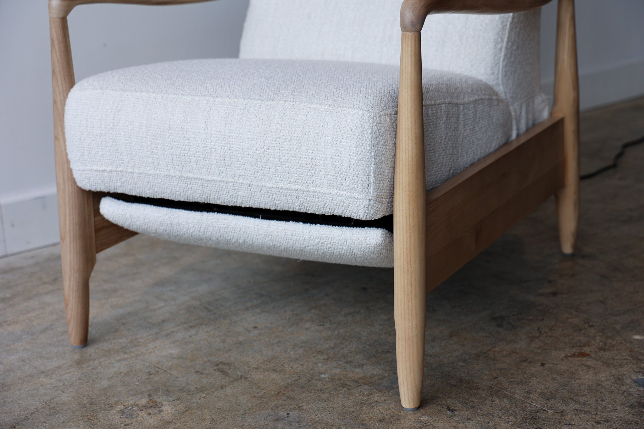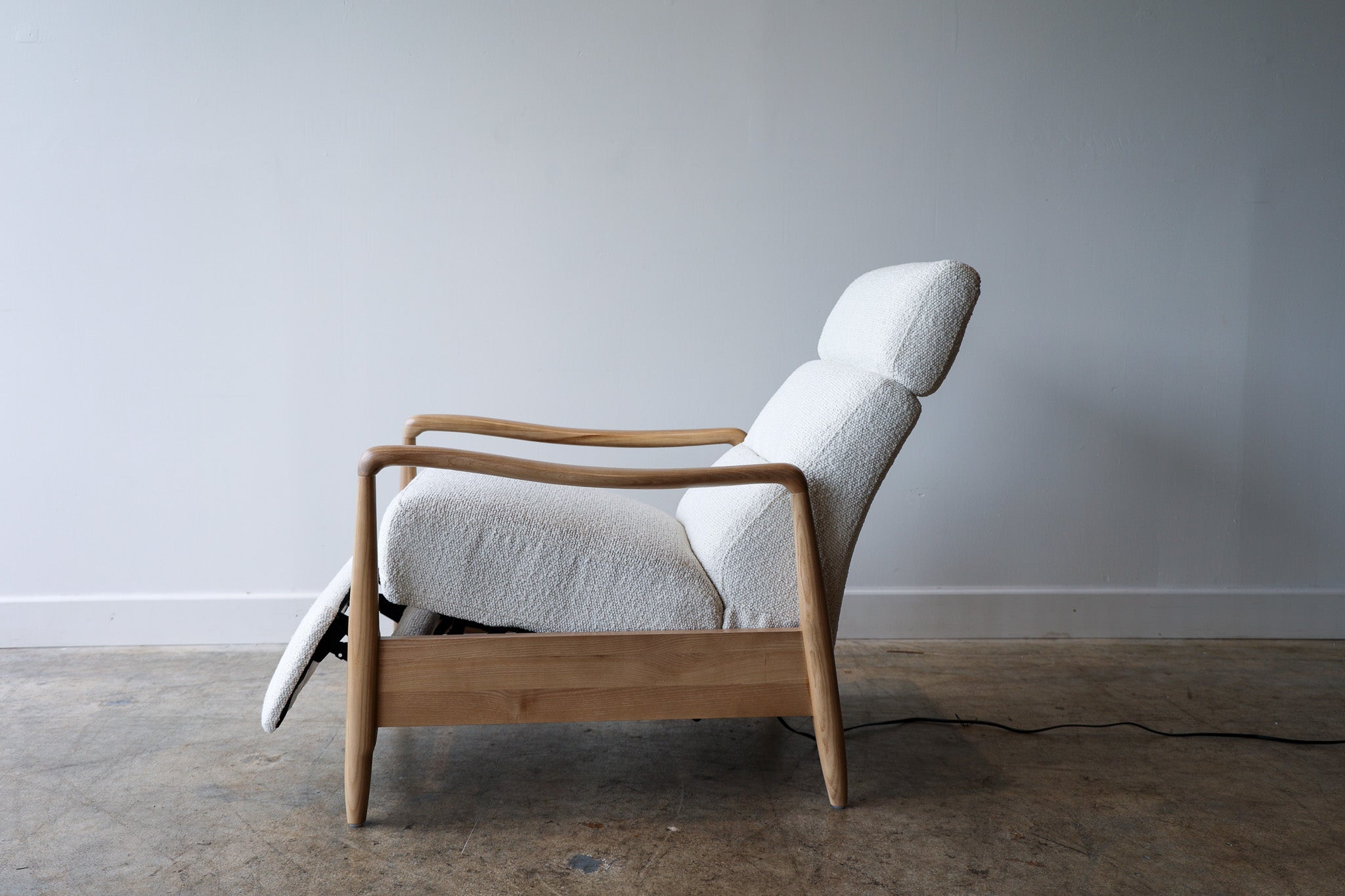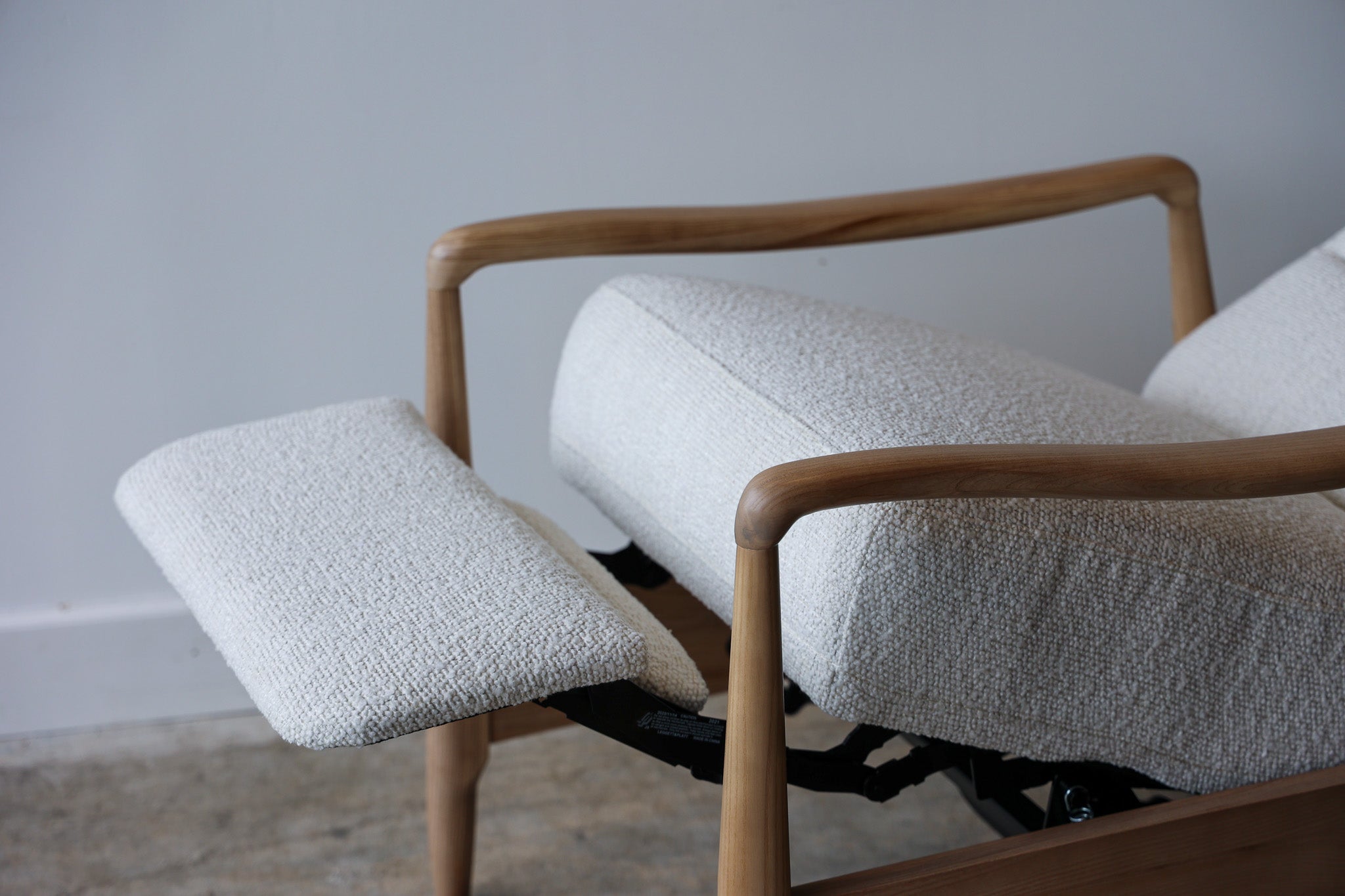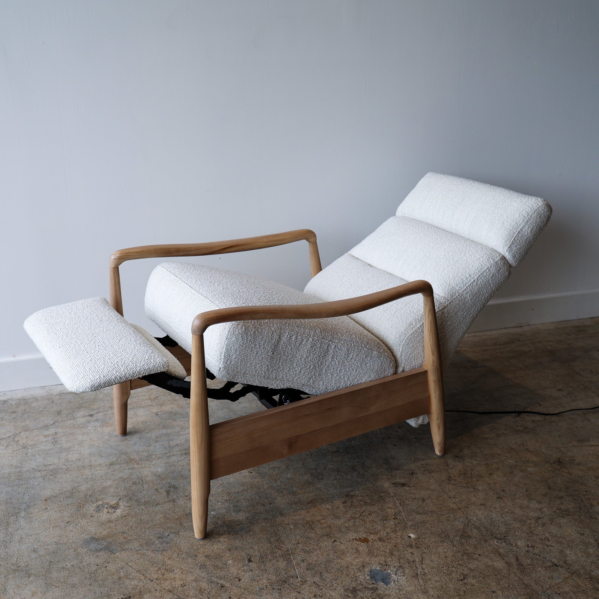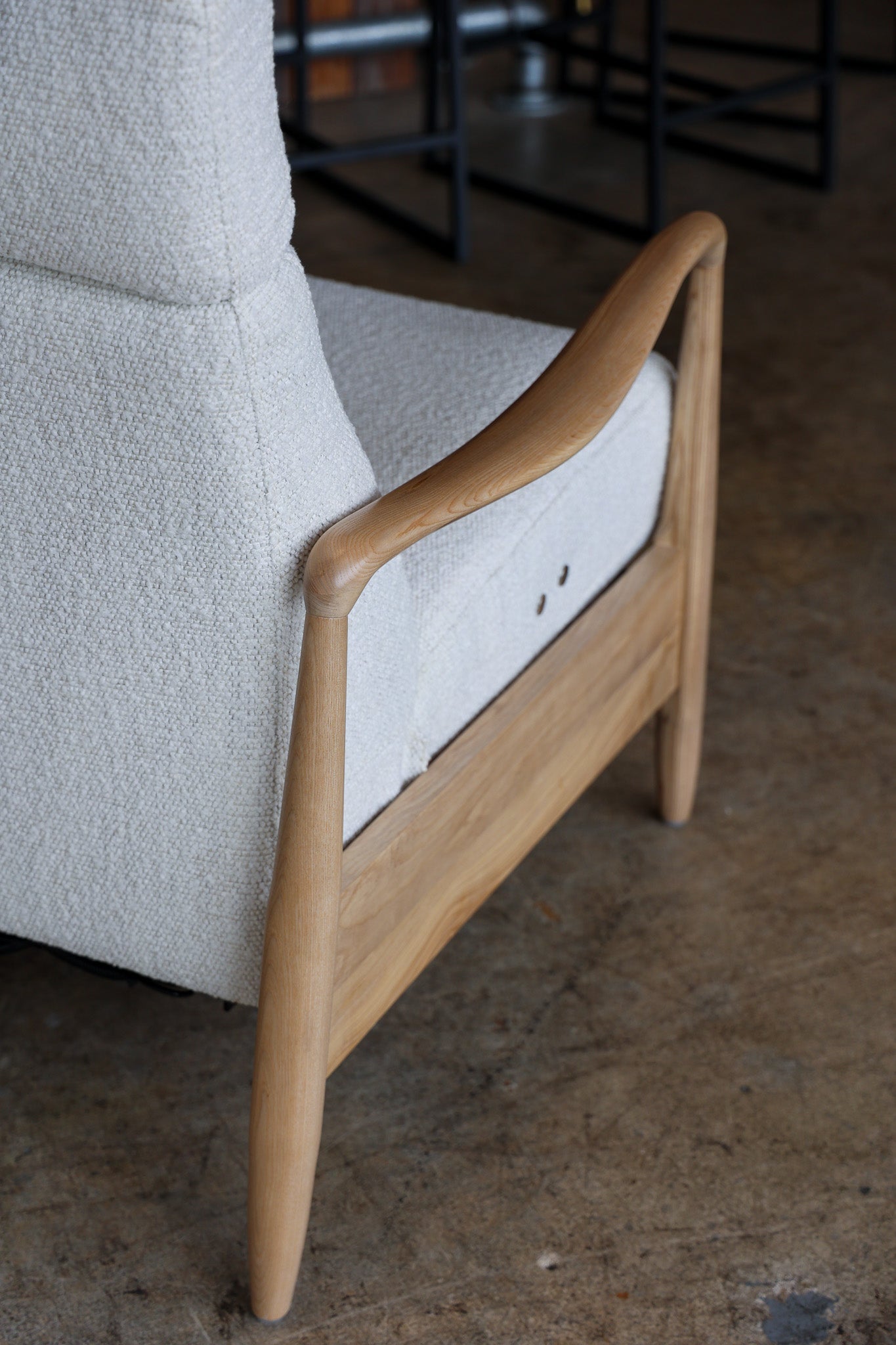 Experience luxurious comfort and style with our Magnolia Boucle Reclining Chair. With its soft boucle fabric and elegant lightwood accents, this chair adds a touch of sophistication to any room. Relax and recline in total bliss as you sink into the plush cushioning and ergonomic design. Upgrade your space today!