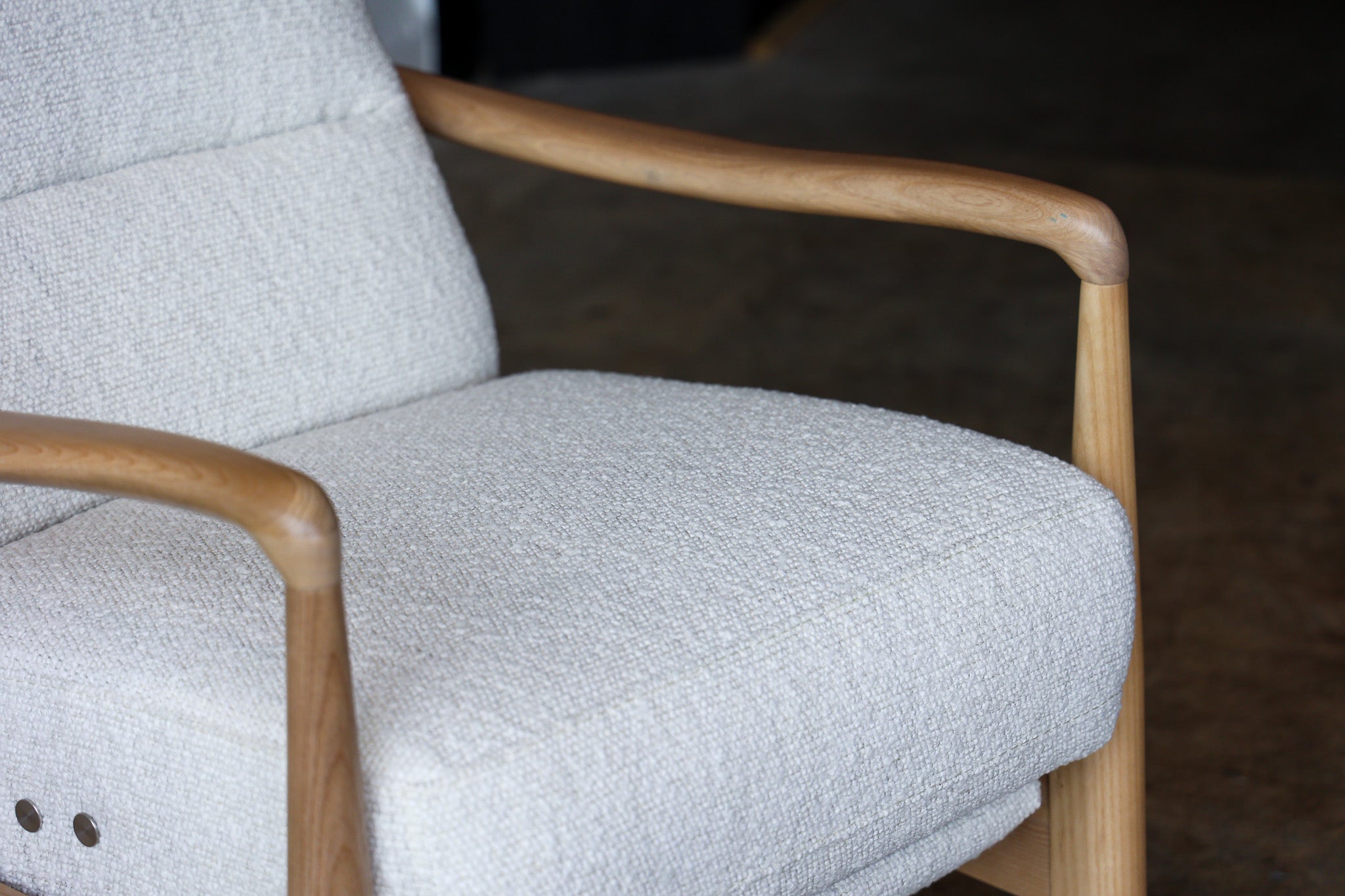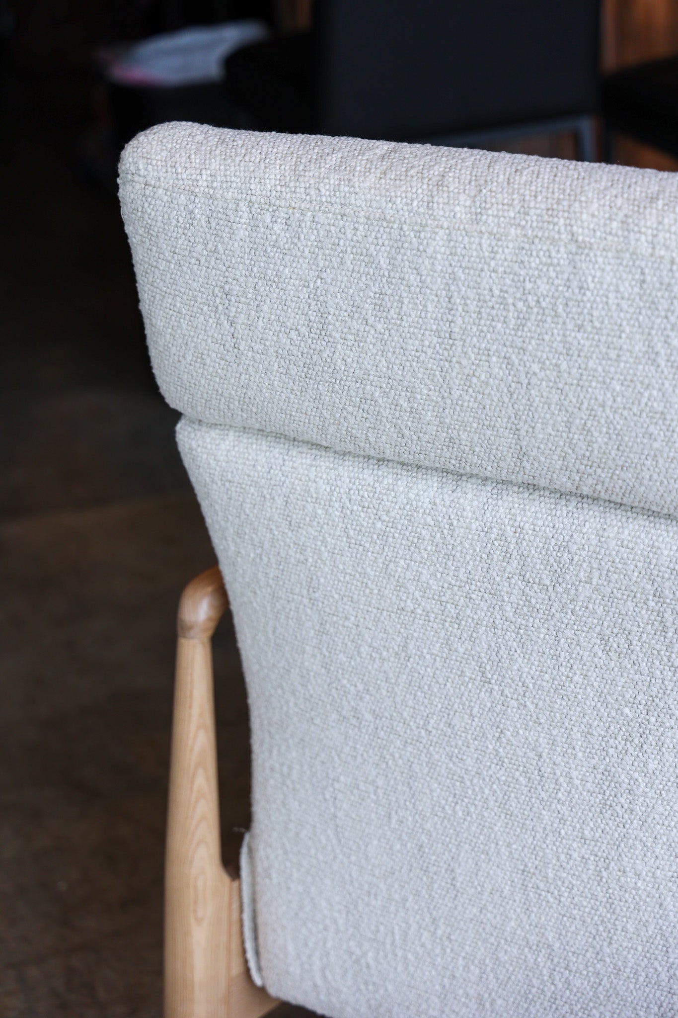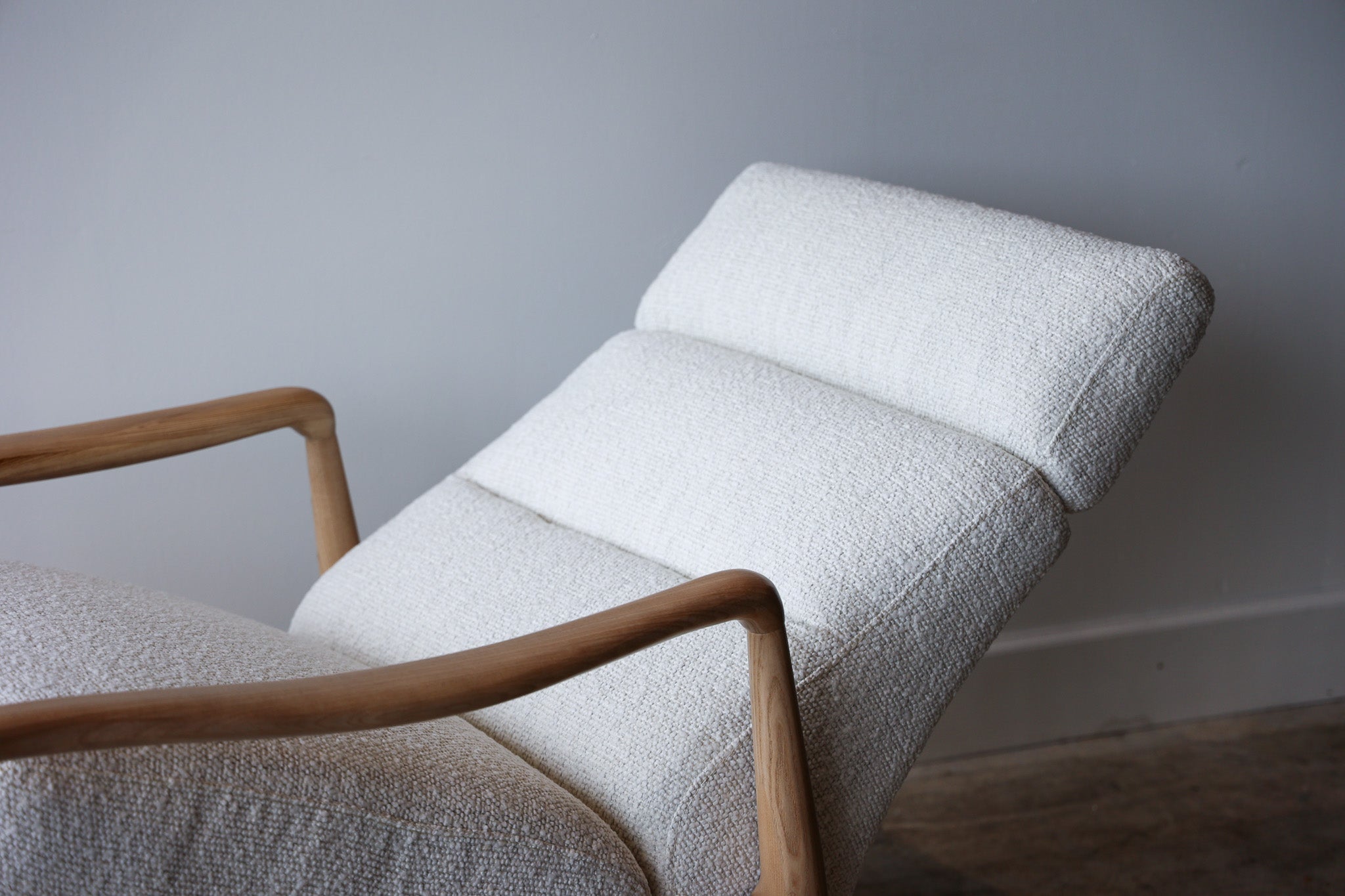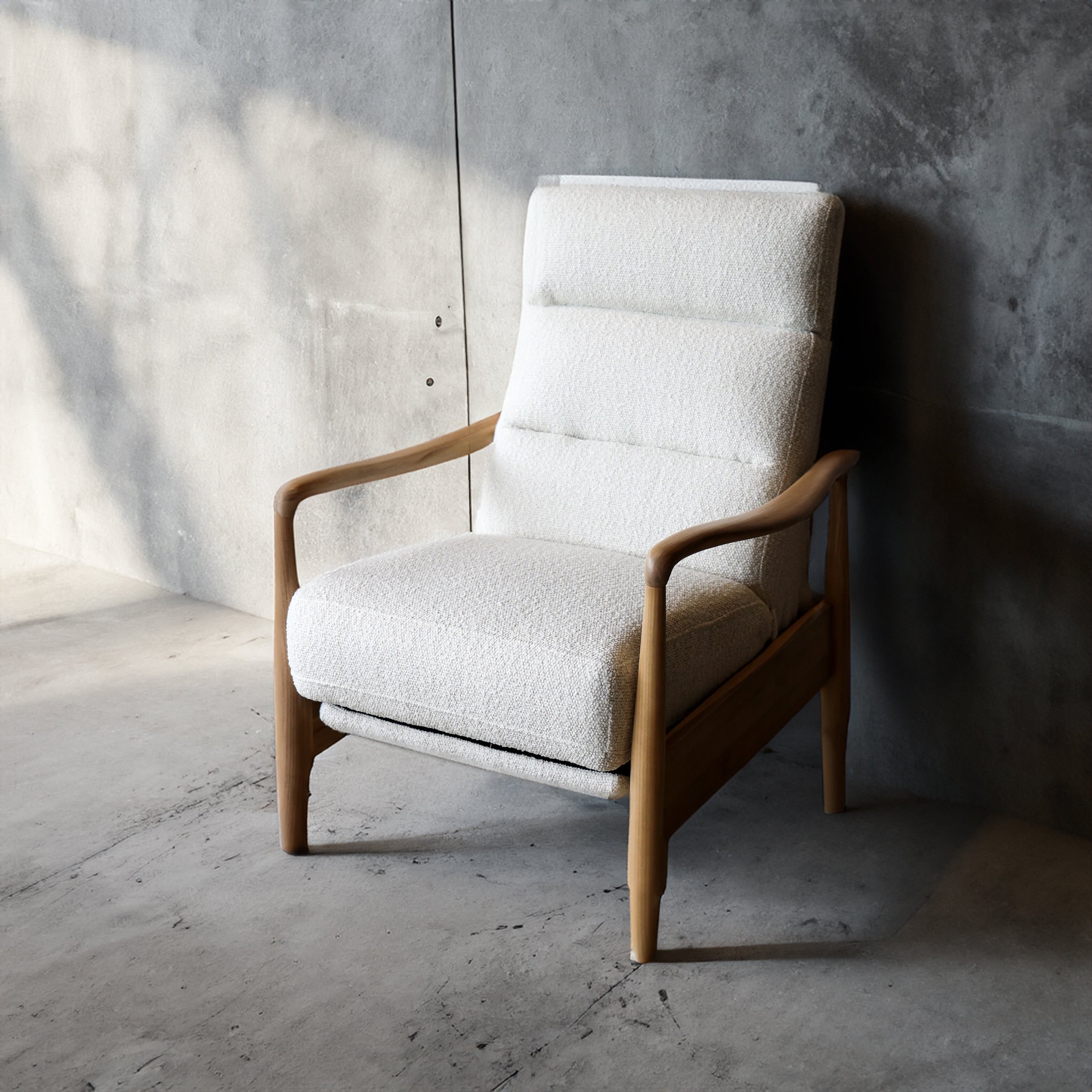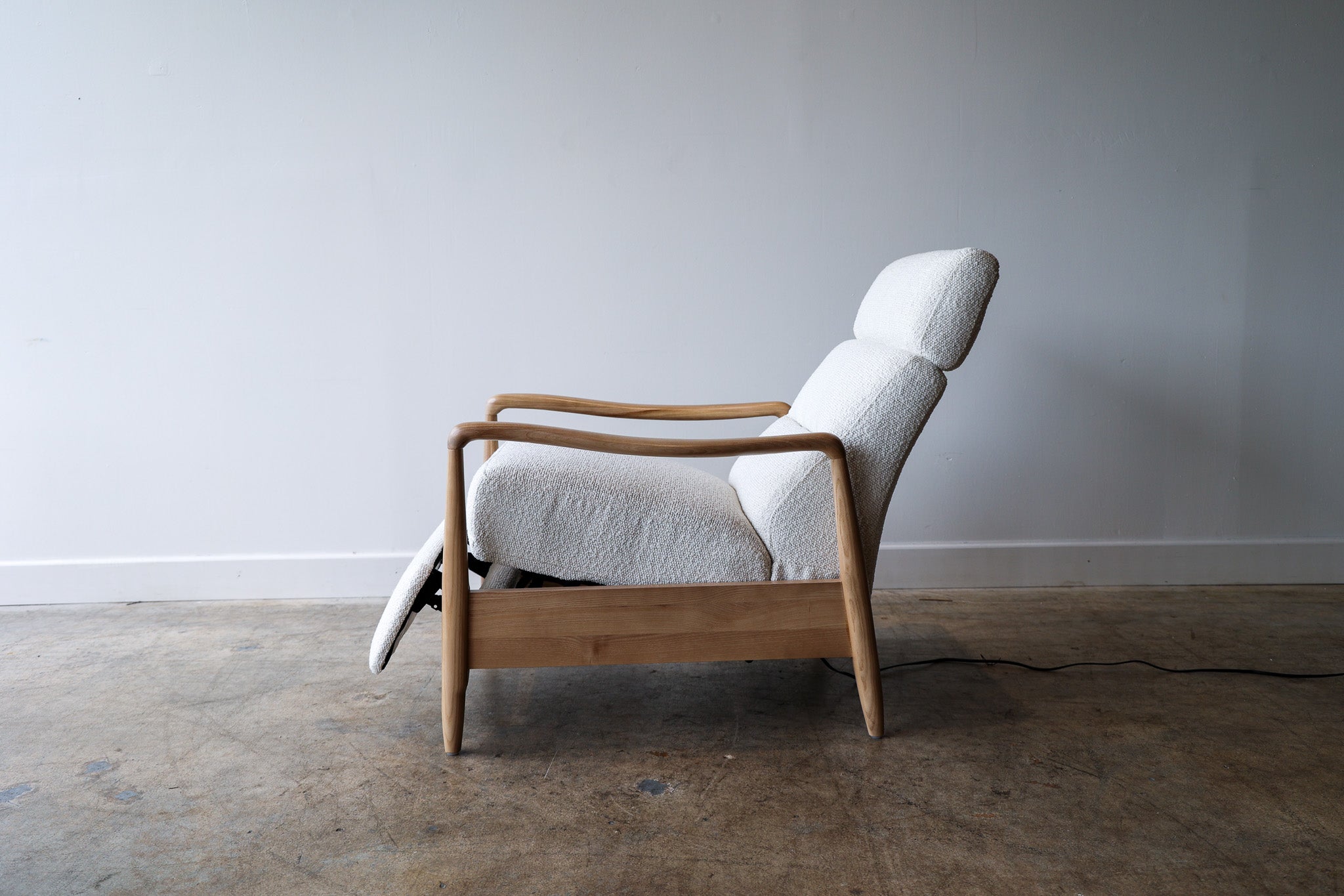 Experience luxurious comfort and style with our Magnolia Boucle Reclining Chair. With its soft boucle fabric and elegant lightwood accents, this chair adds a touch of sophistication to any room. Relax and recline in total bliss as you sink into the plush cushioning and ergonomic design. Upgrade your space today!