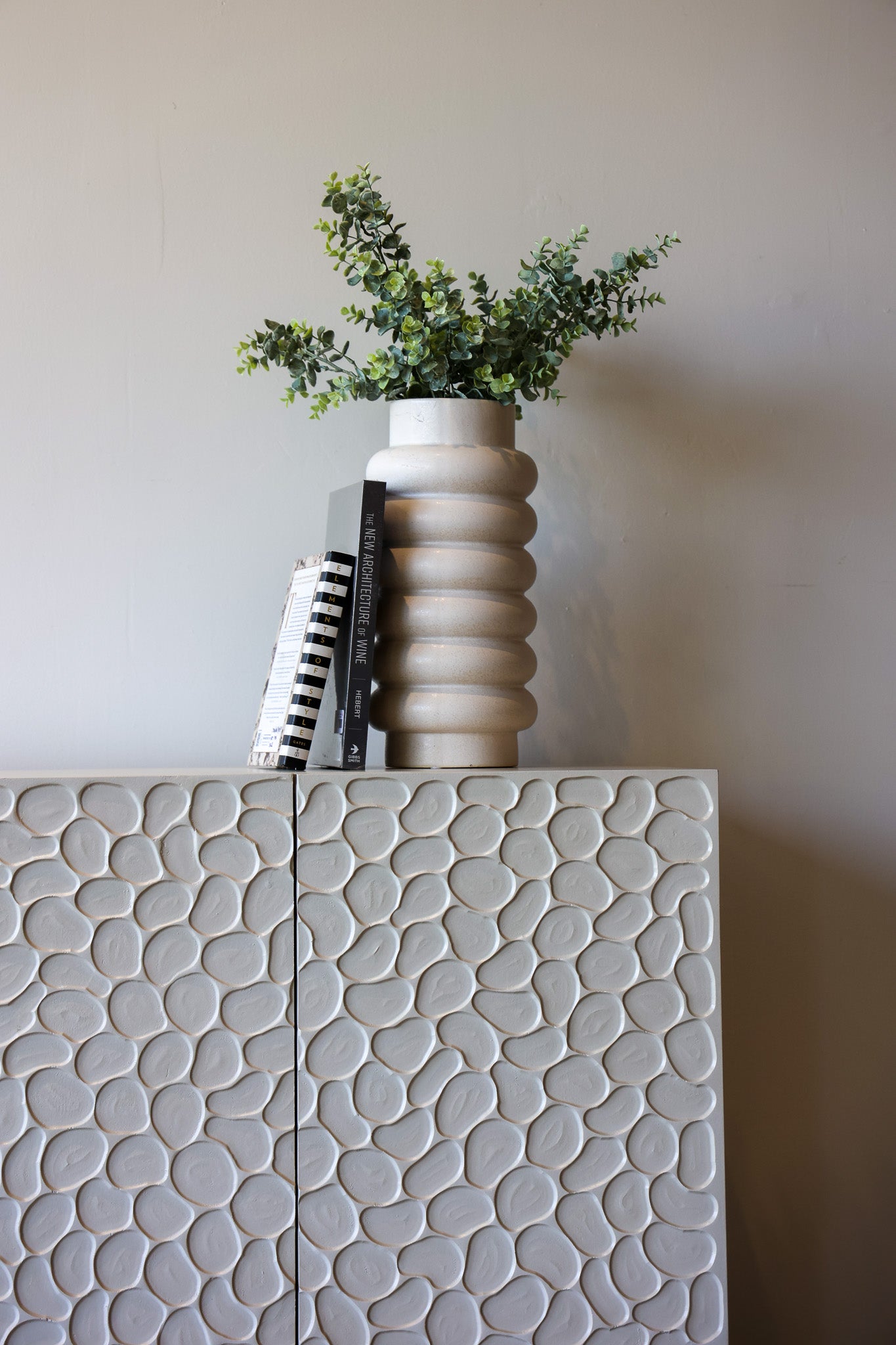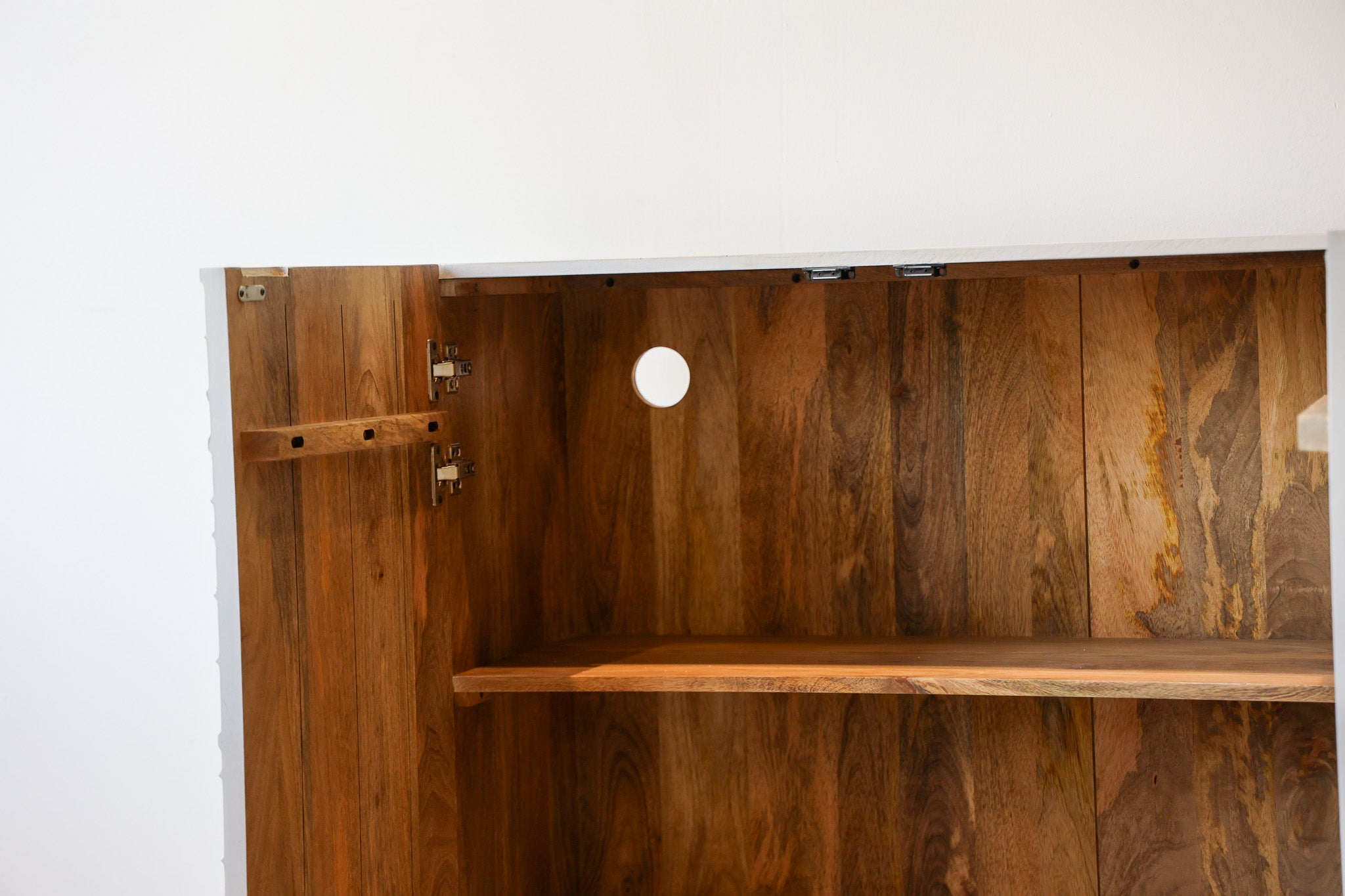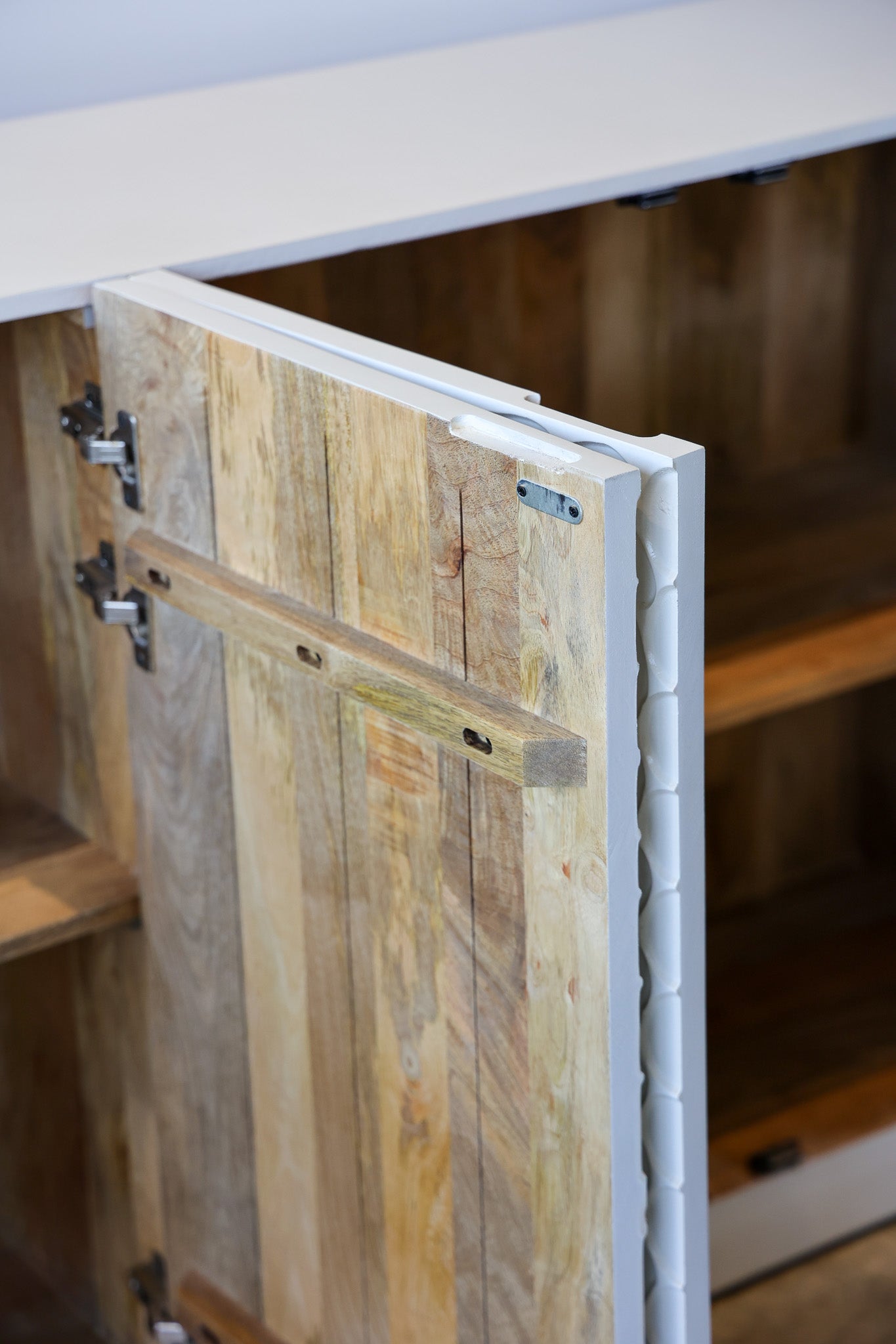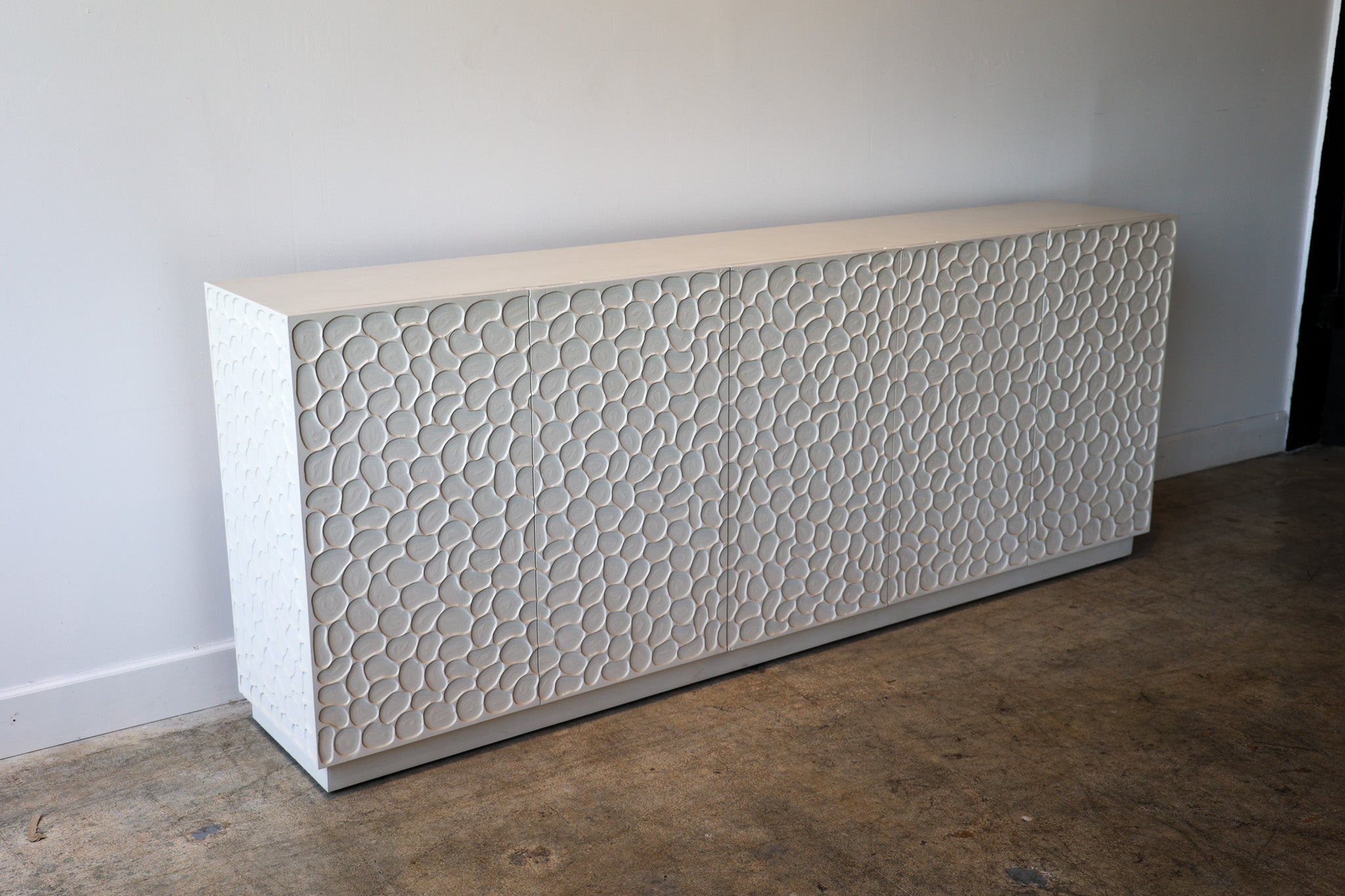 Crafted from the finest solid wood, the Mayfield Credenza boasts elegant hand-carved details and a sleek white finish. Perfect for storing and displaying your belongings, this credenza adds a touch of sophistication to any space.