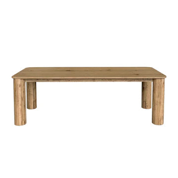 Solid oak wood finished with a warm oak veneer - this table exudes durability, style, and strength. Perfect for larger dining spaces at 94 inches long, this table is perfect for hosting those large family dinners. It's neutral finish makes it compatible with most spaces and color tones while its natural grain finish adds an organic touch to its sleek silhouette.