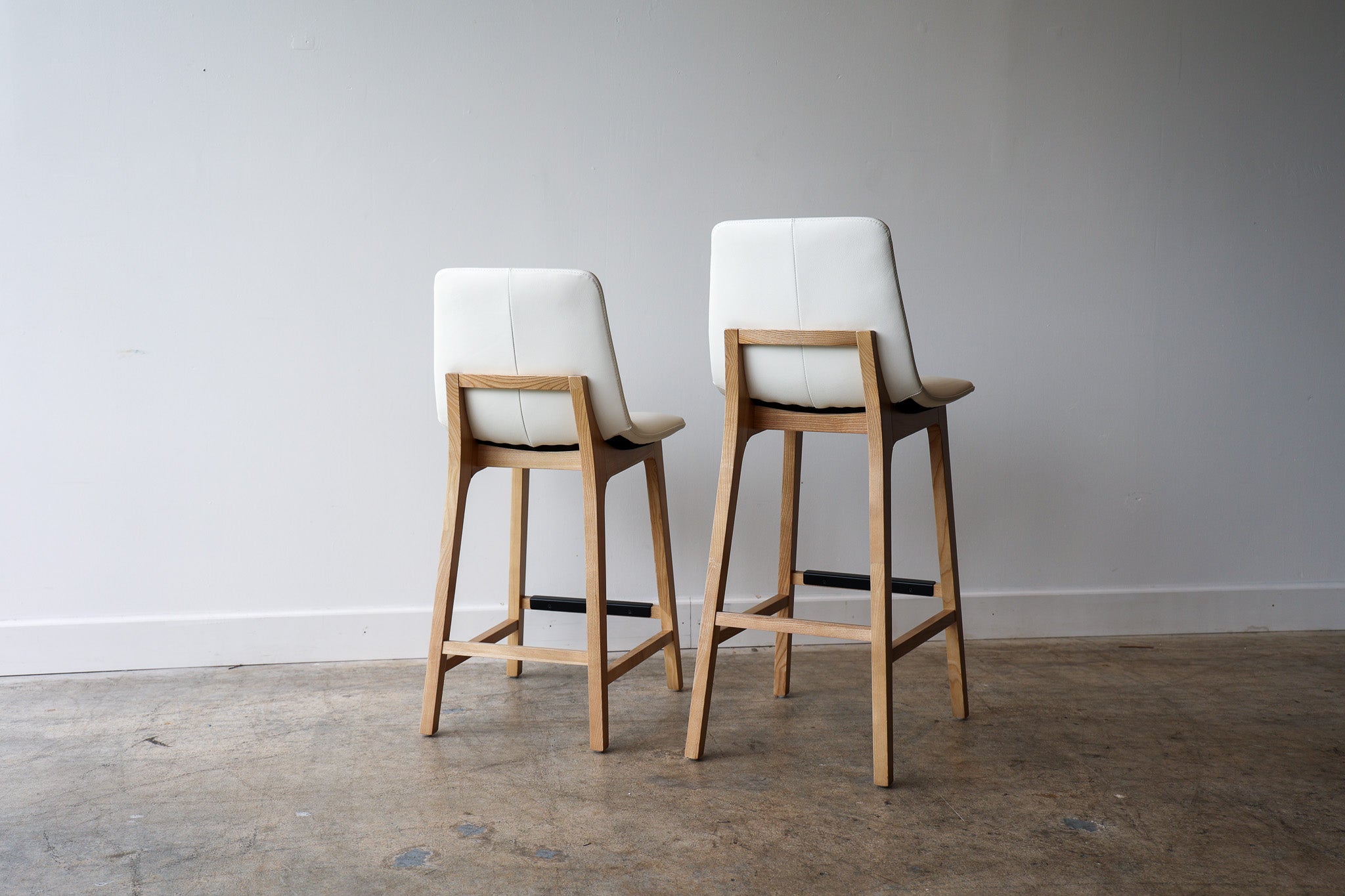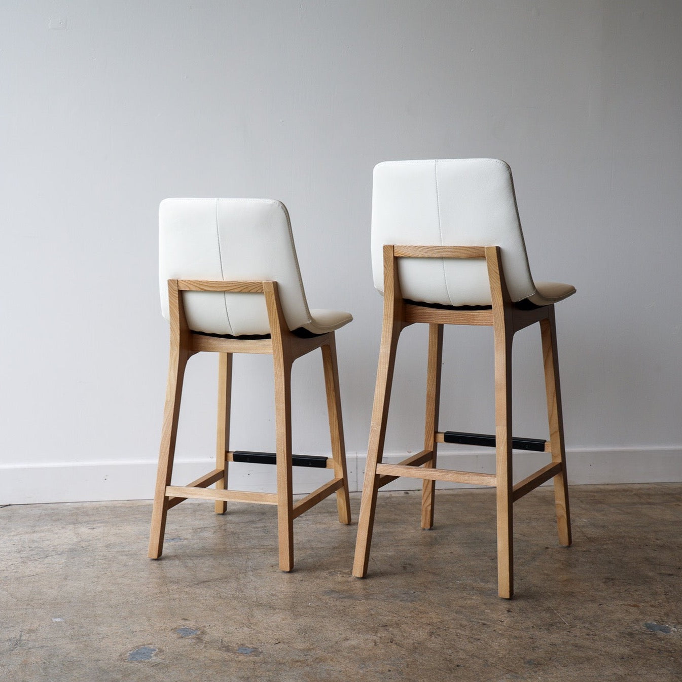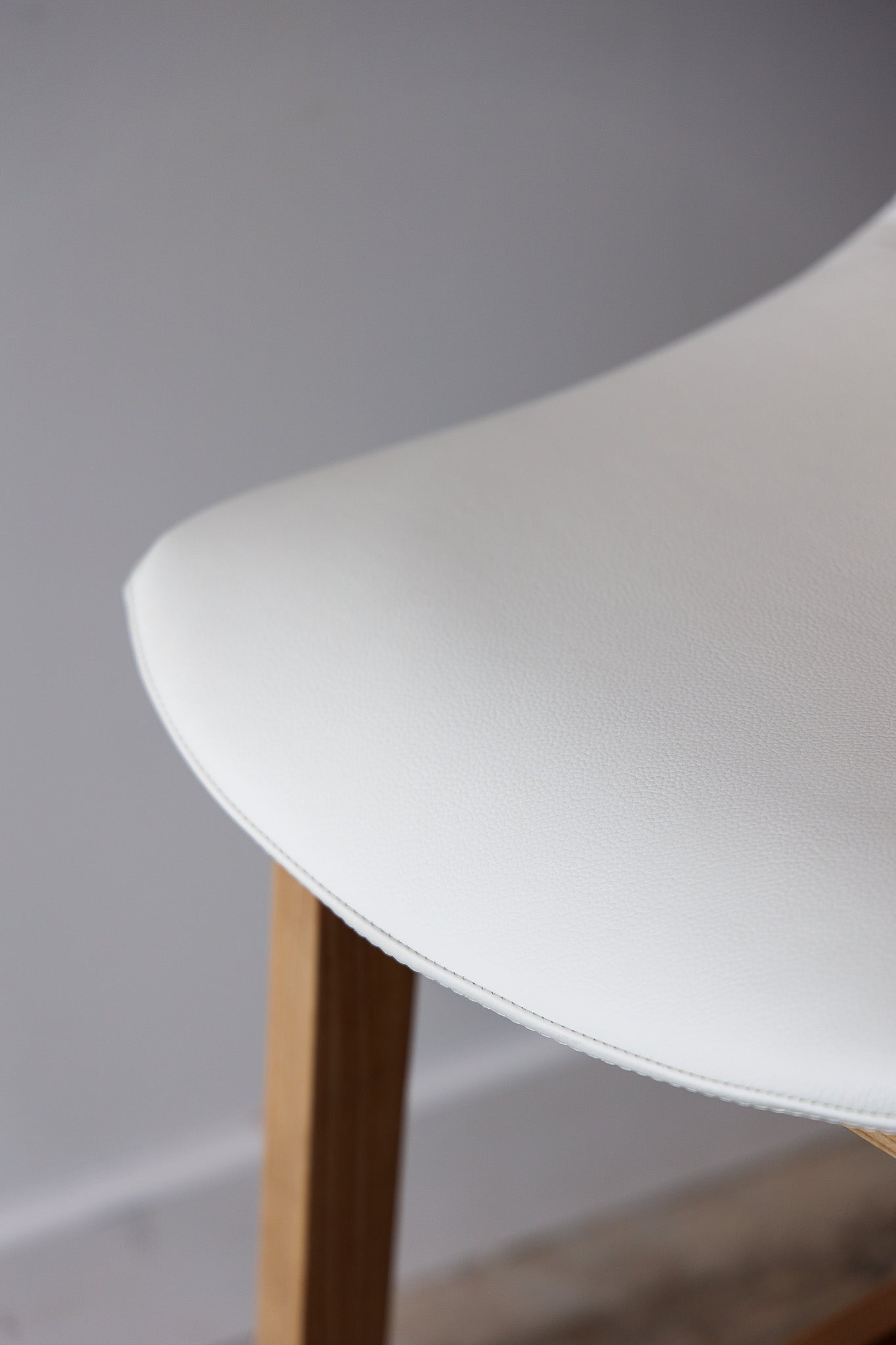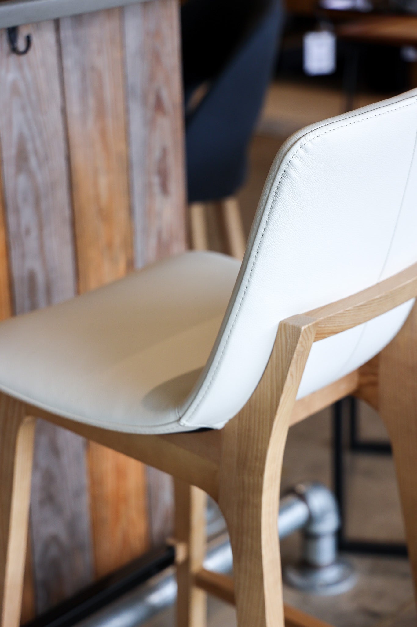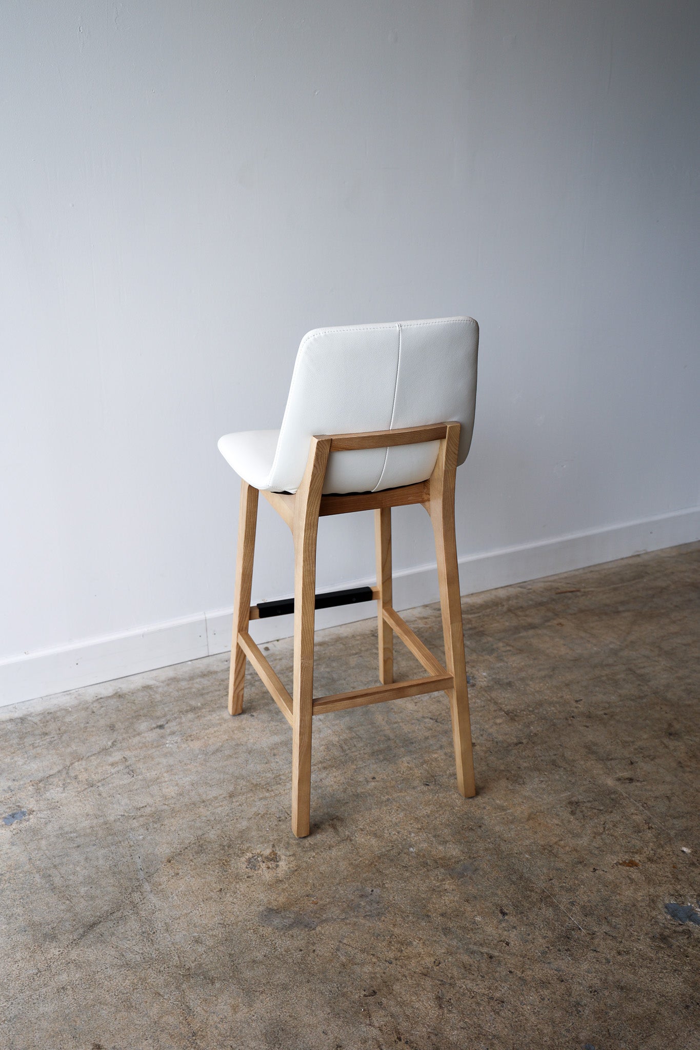 Elevate your kitchen or bar with our Noble Bar Stool. Crafted with genuine white leather and sturdy mango wood legs, it exudes luxury and durability. Indulge in ultimate comfort while enjoying your favorite meals or drinks. Upgrade your space with this elegant and timeless addition.