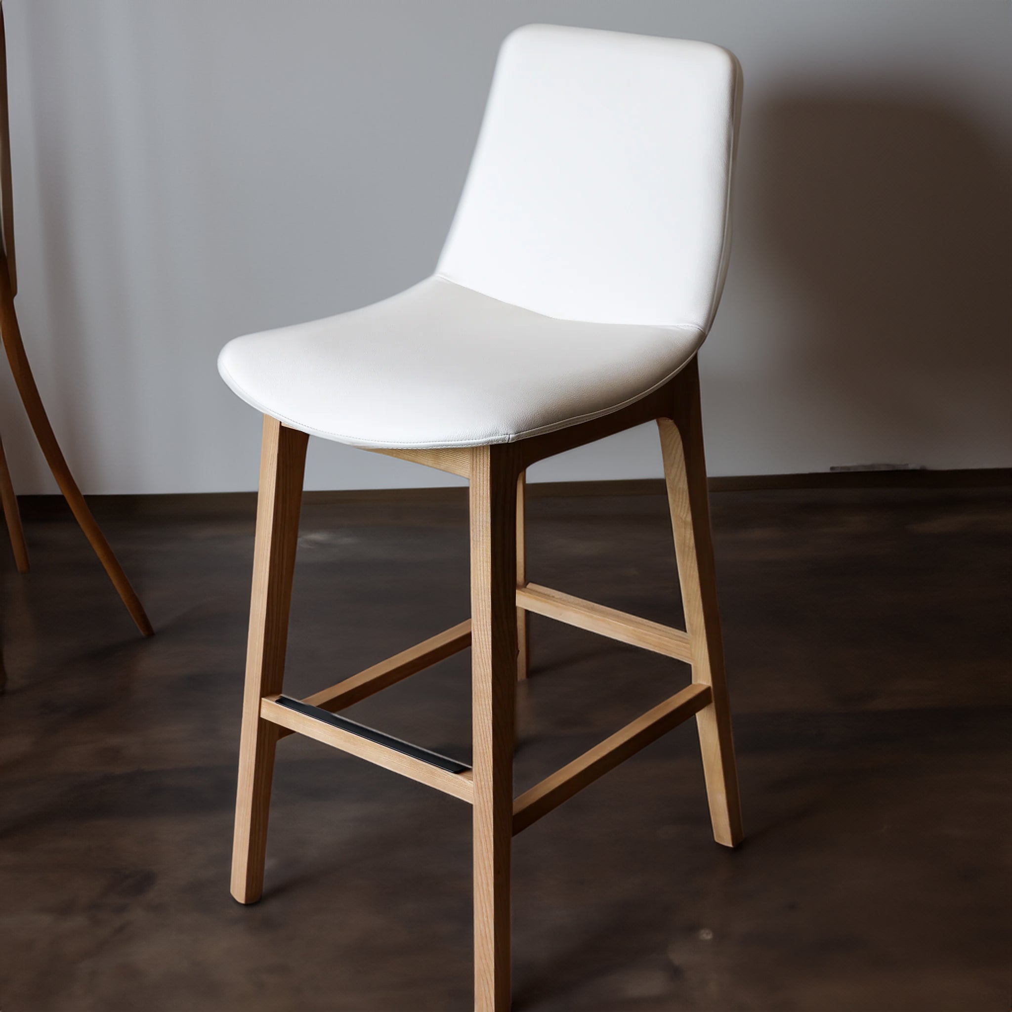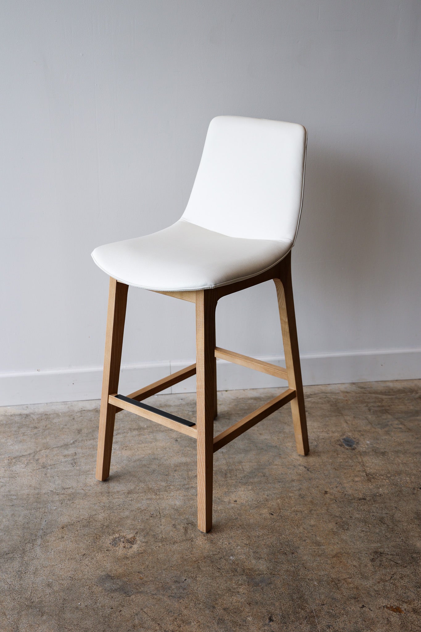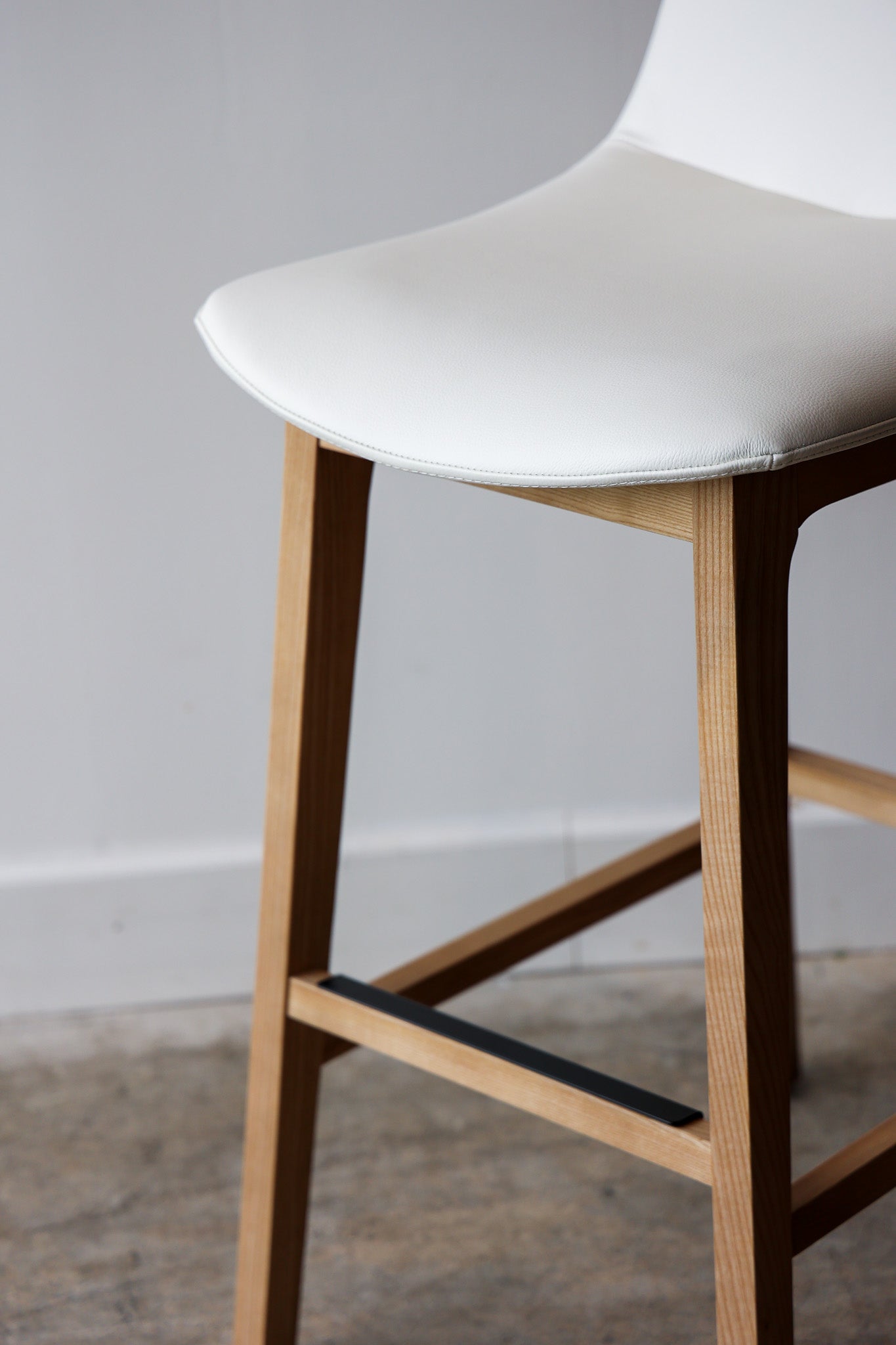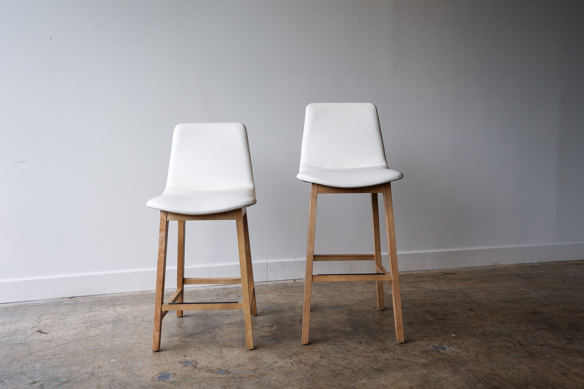 Elevate your kitchen or bar with our Noble Bar Stool. Crafted with genuine white leather and sturdy mango wood legs, it exudes luxury and durability. Indulge in ultimate comfort while enjoying your favorite meals or drinks. Upgrade your space with this elegant and timeless addition.
