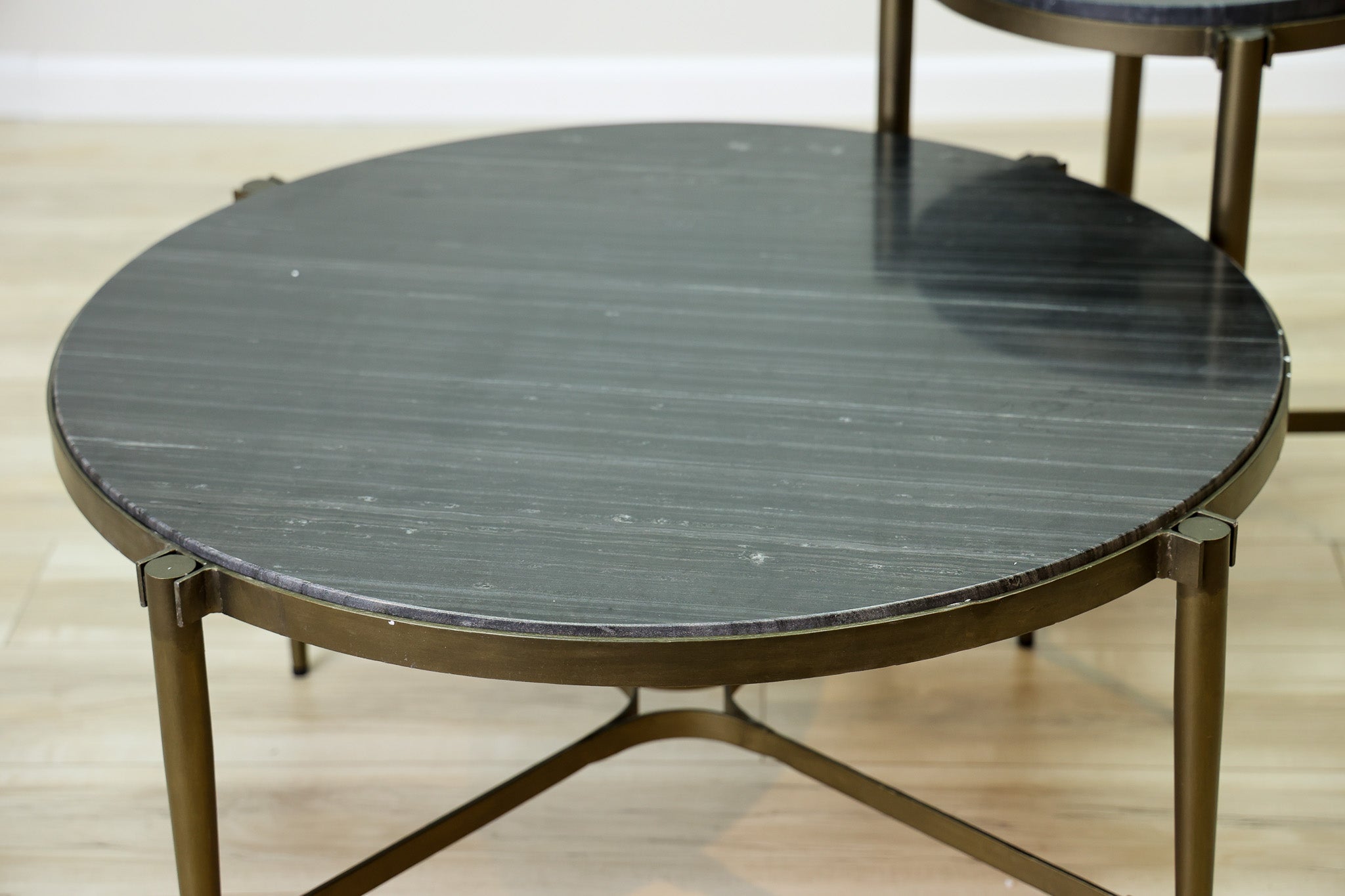 The Poe Coffee Table features a sleek design with a black marble top and elegant brass metal base. Its high-quality materials add a touch of sophistication to any living space. Enhance your home with this stylish and durable coffee table.